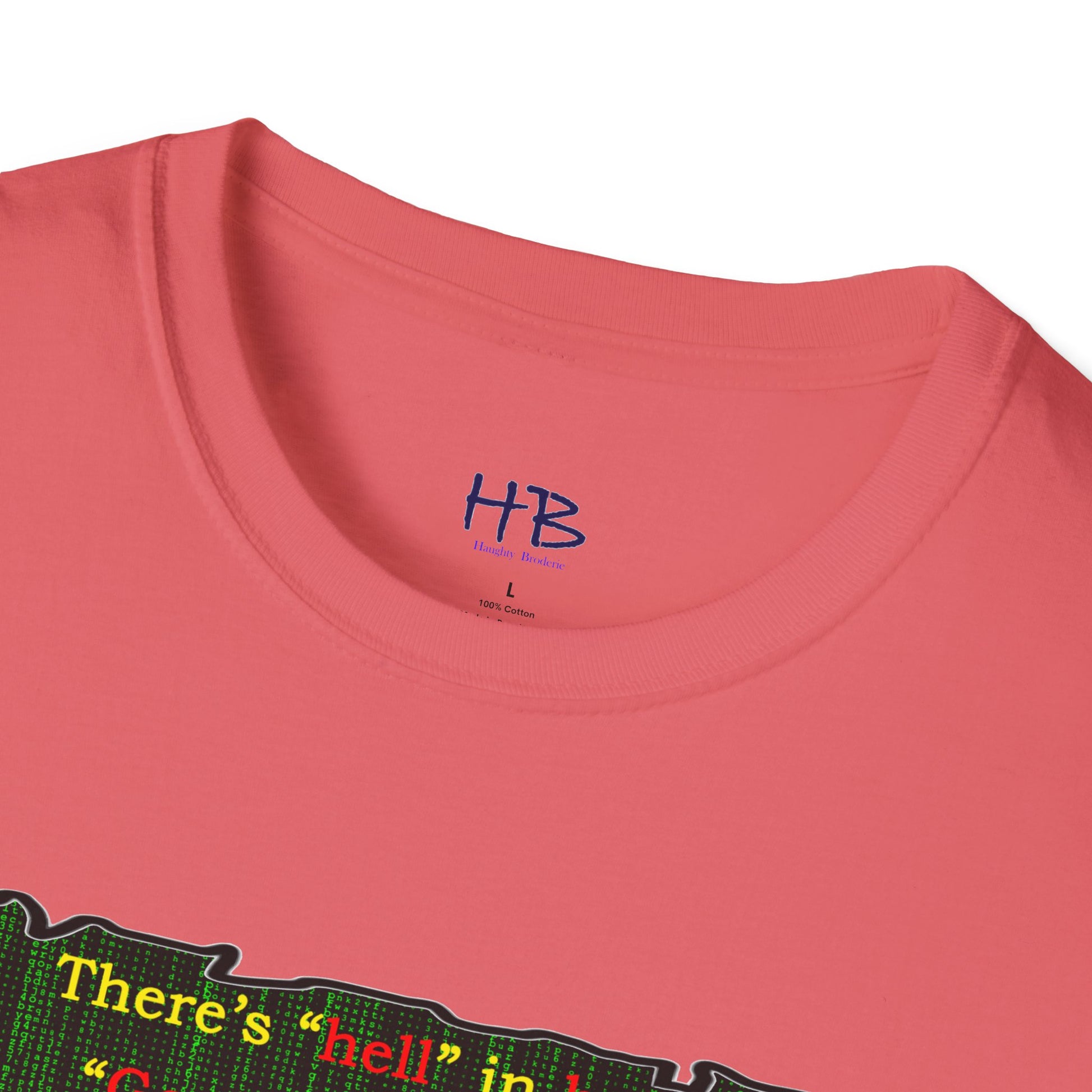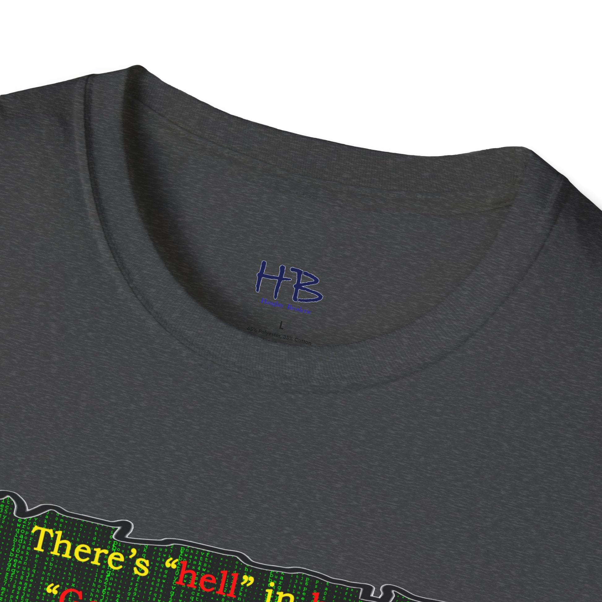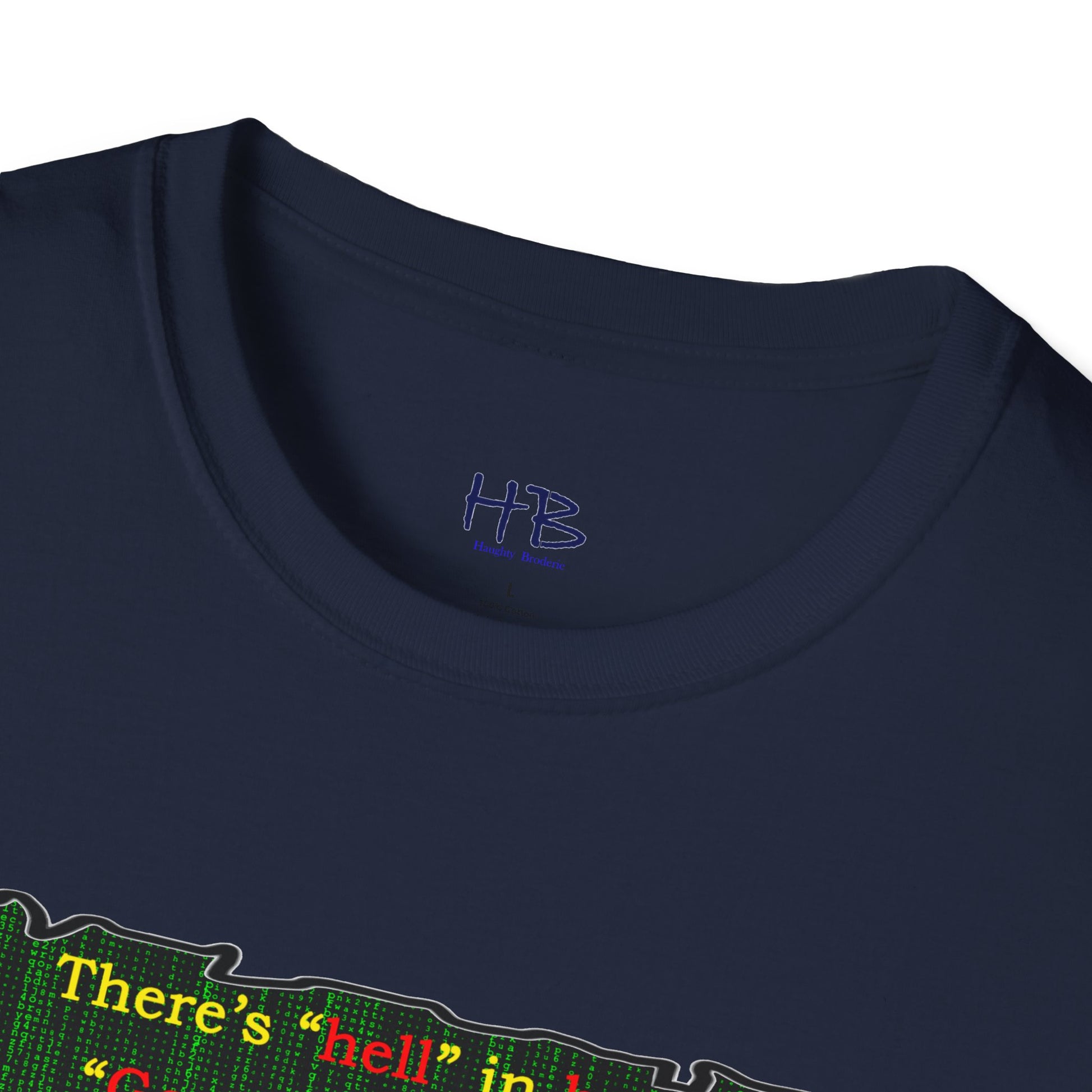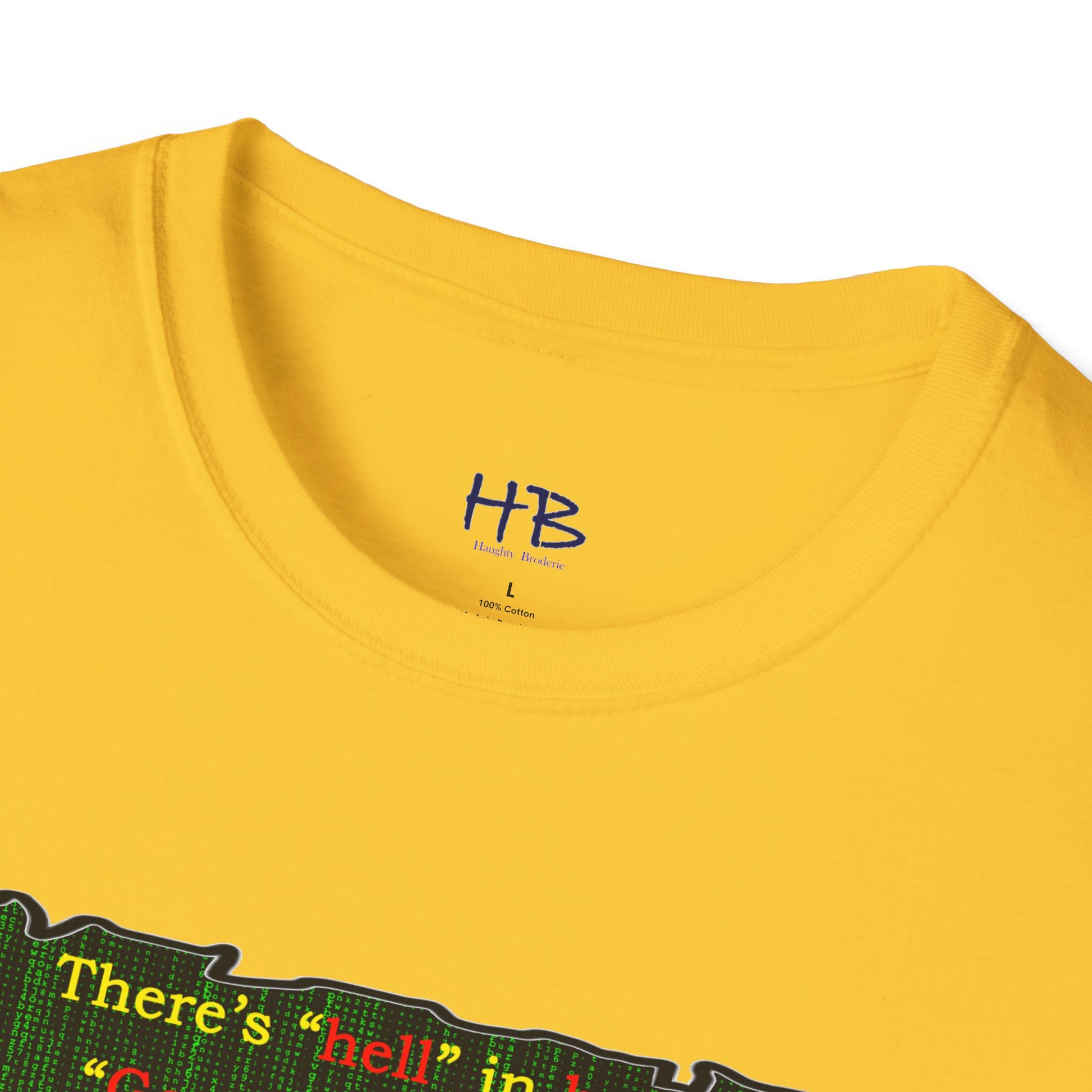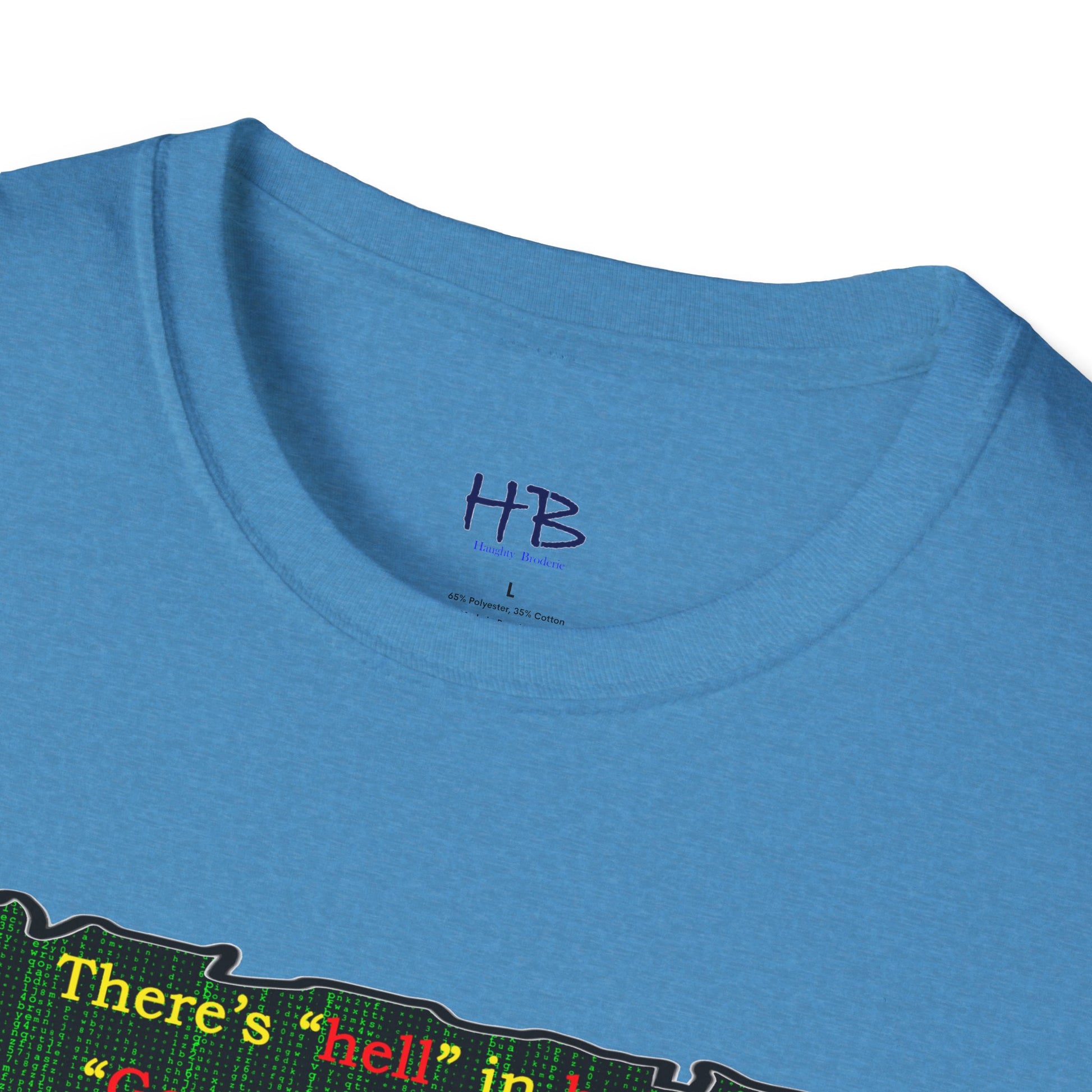 Introducing a tee shirt that will pique your interest with its witty play on words. The design on this shirt showcases a vibrant green matrix background with a thought-provoking message. The text boldly proclaims the hidden words in everyday words such as "hell" in hello, "good" in goodbye, "lie" in believe, "over" in lover, "end" in friend, "ex" in next, and "if" in life.