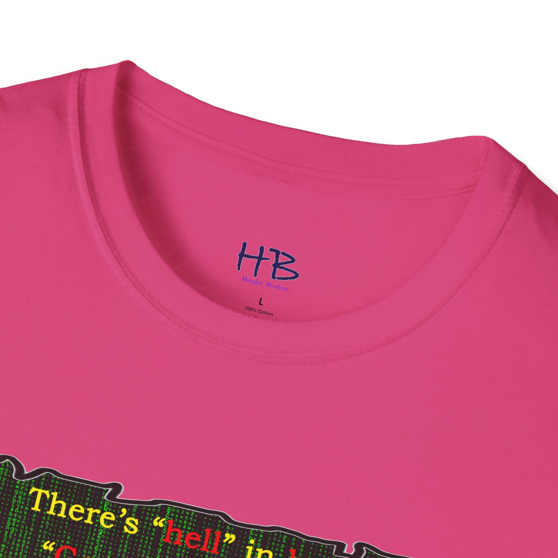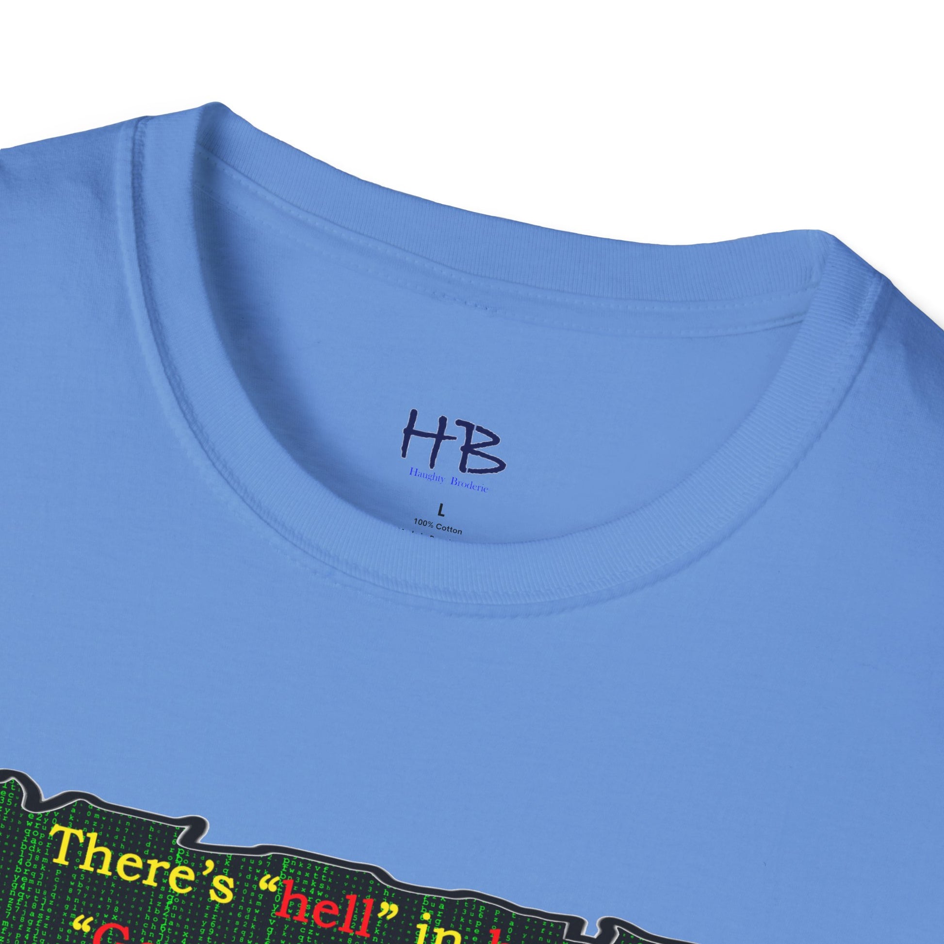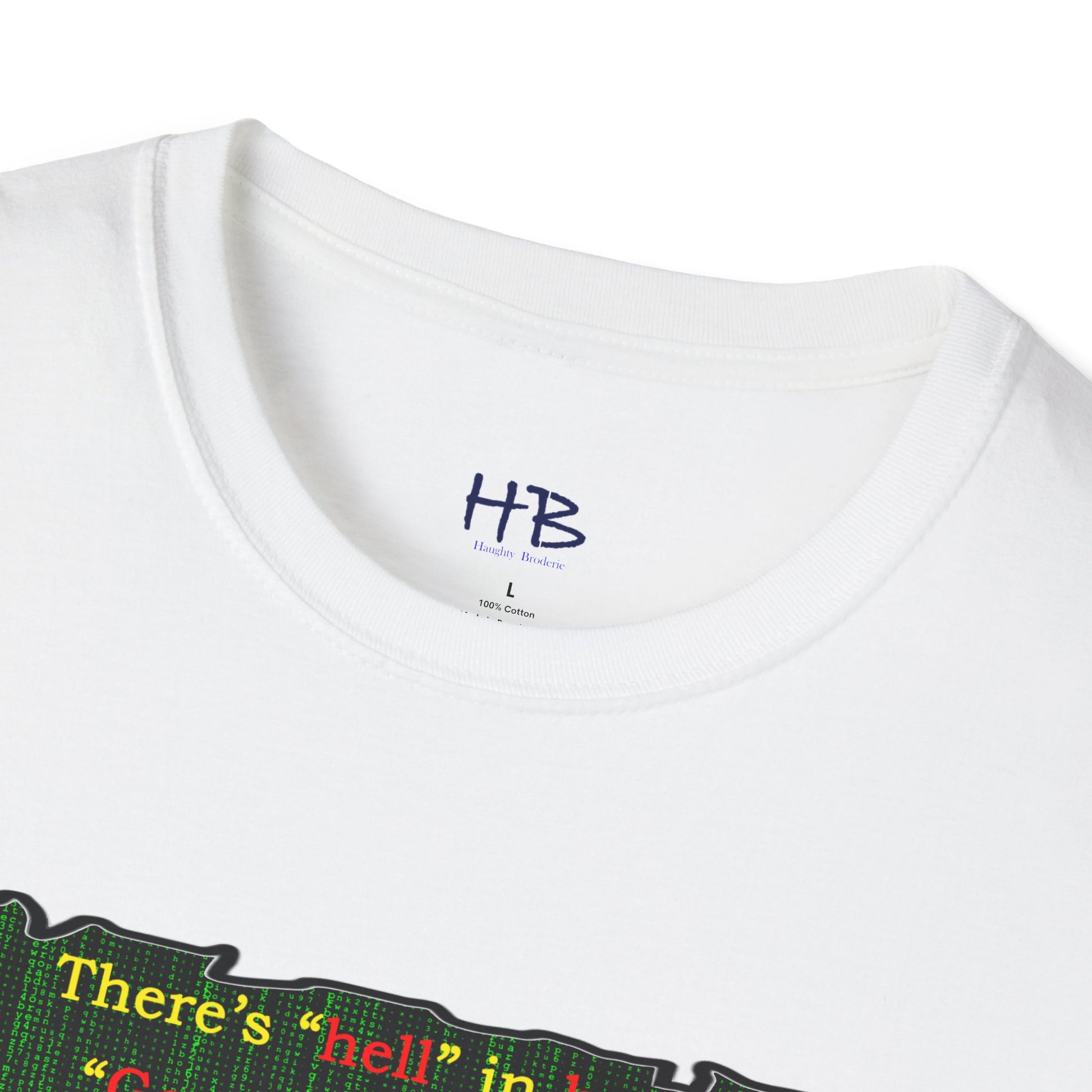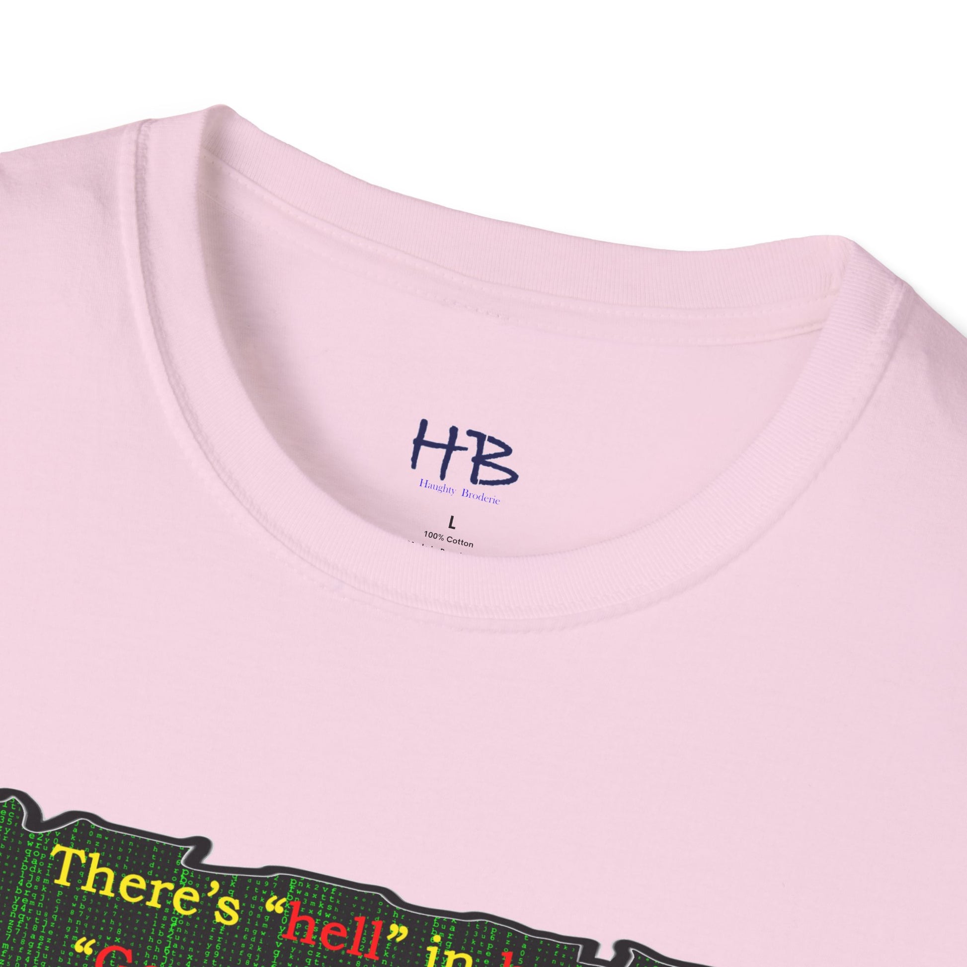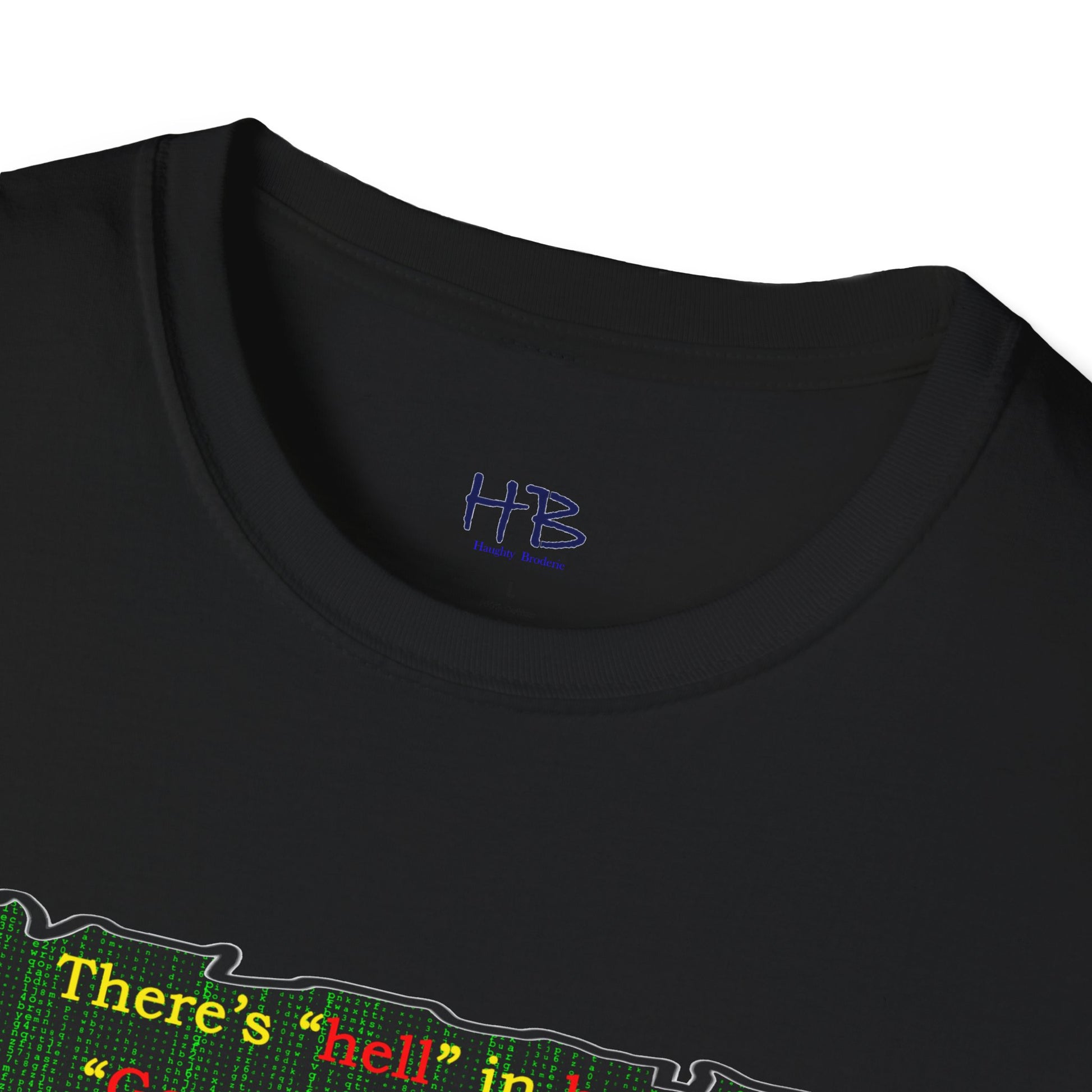 Introducing a tee shirt that will pique your interest with its witty play on words. The design on this shirt showcases a vibrant green matrix background with a thought-provoking message. The text boldly proclaims the hidden words in everyday words such as "hell" in hello, "good" in goodbye, "lie" in believe, "over" in lover, "end" in friend, "ex" in next, and "if" in life.