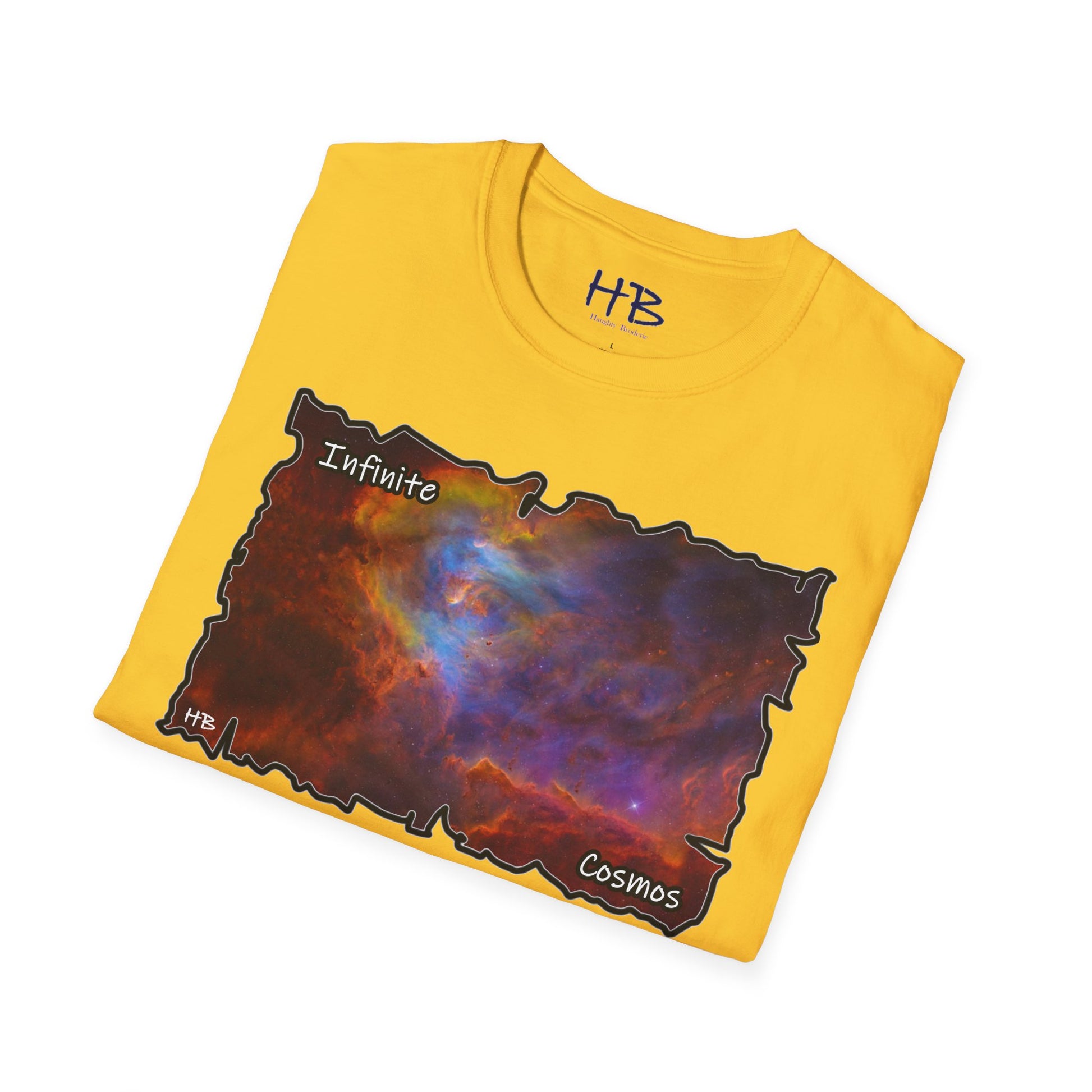 The intricately designed image on this shirt captures the essence of cosmic majesty, featuring swirling nebulas, distant galaxies, and a mesmerizing play of colors that evoke a sense of awe and wonder. Each element of this celestial tableau is rendered with meticulous detail, making it a wearable work of art that invites exploration.