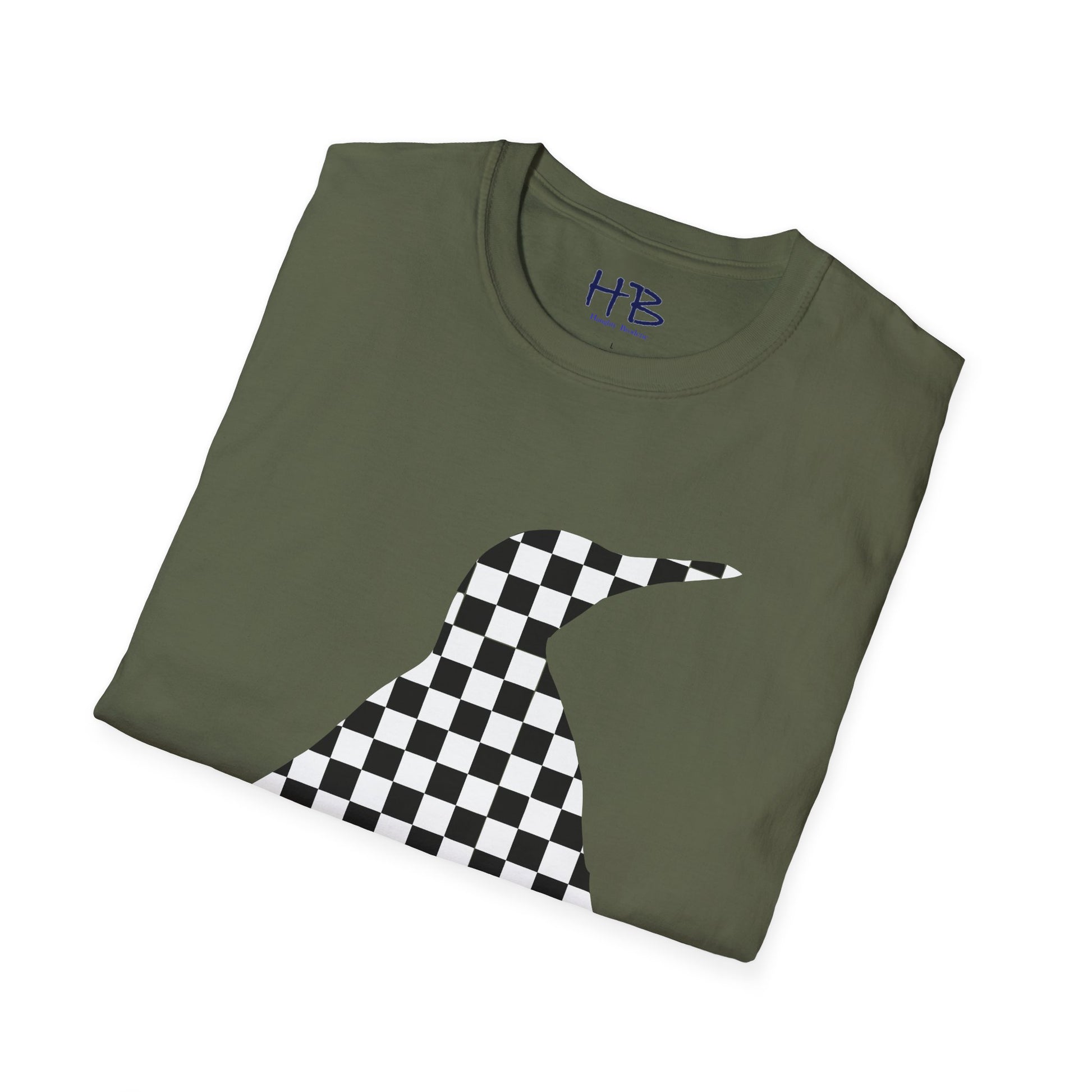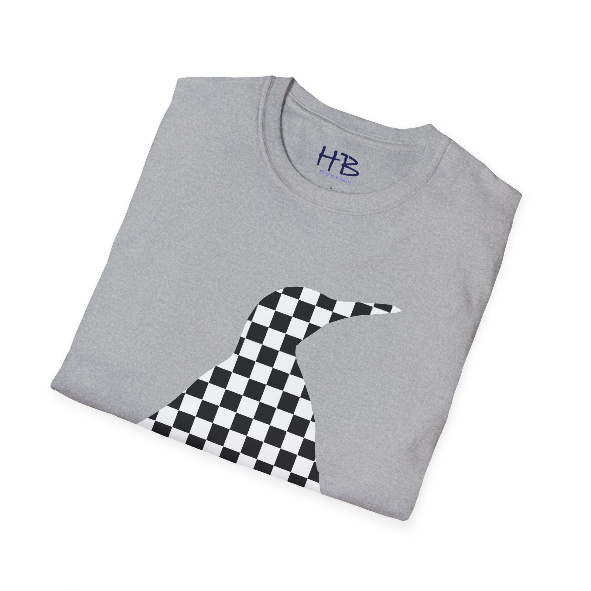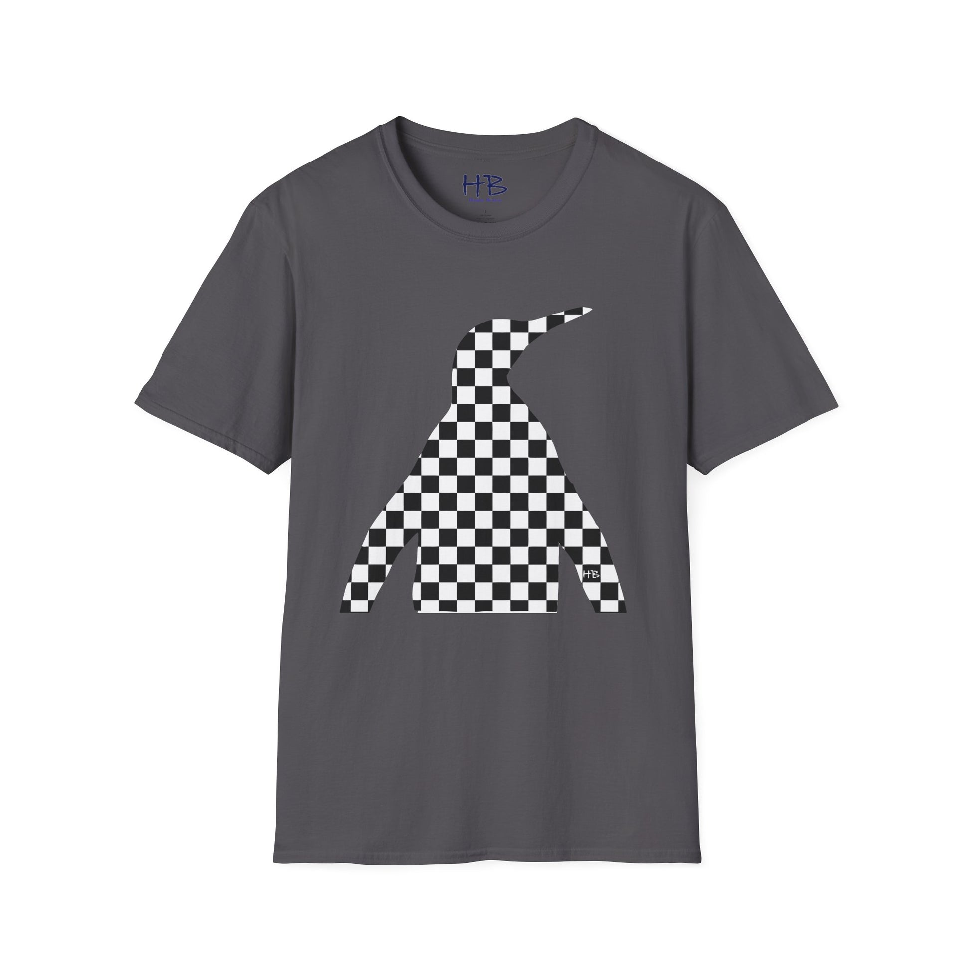 In summary, owning a tee shirt adorned with a shaded drawing of a penguin and a black and white checkered module pattern is not simply a fashion choice; it is a statement about embracing artistic expression, celebrating individuality, and appreciating unconventional beauty. By wearing this tee shirt, you project an image of elegance and refinement, inspiring those around you to embrace their own unique sense of style. Join the ranks of the fashion-forward individuals who understand the significance of visual storytelling and make a lasting impression wherever you go.