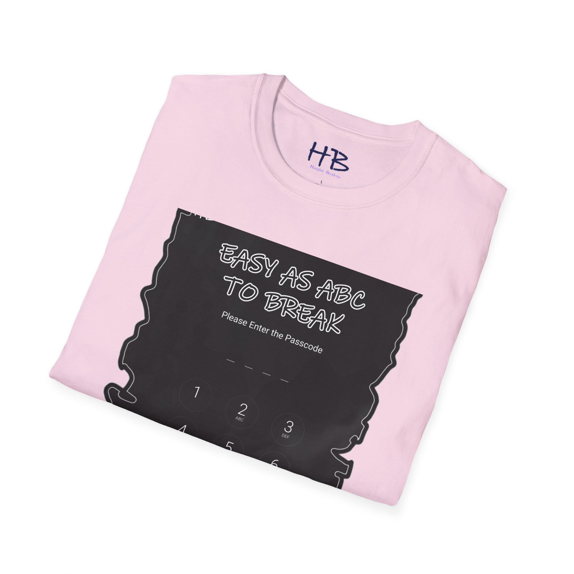 In a world where connections are often forged through screens, this T-shirt breaks the digital barrier with a playful paradox. The juxtaposition of security and vulnerability in the passcode sparks intrigue, inviting those around to perceive the wearer as an open book. The "Easy as ABC" declaration becomes a conversational bridge, suggesting that the wearer is not just digitally accessible but socially affable—a person one can approach with ease and anticipation.