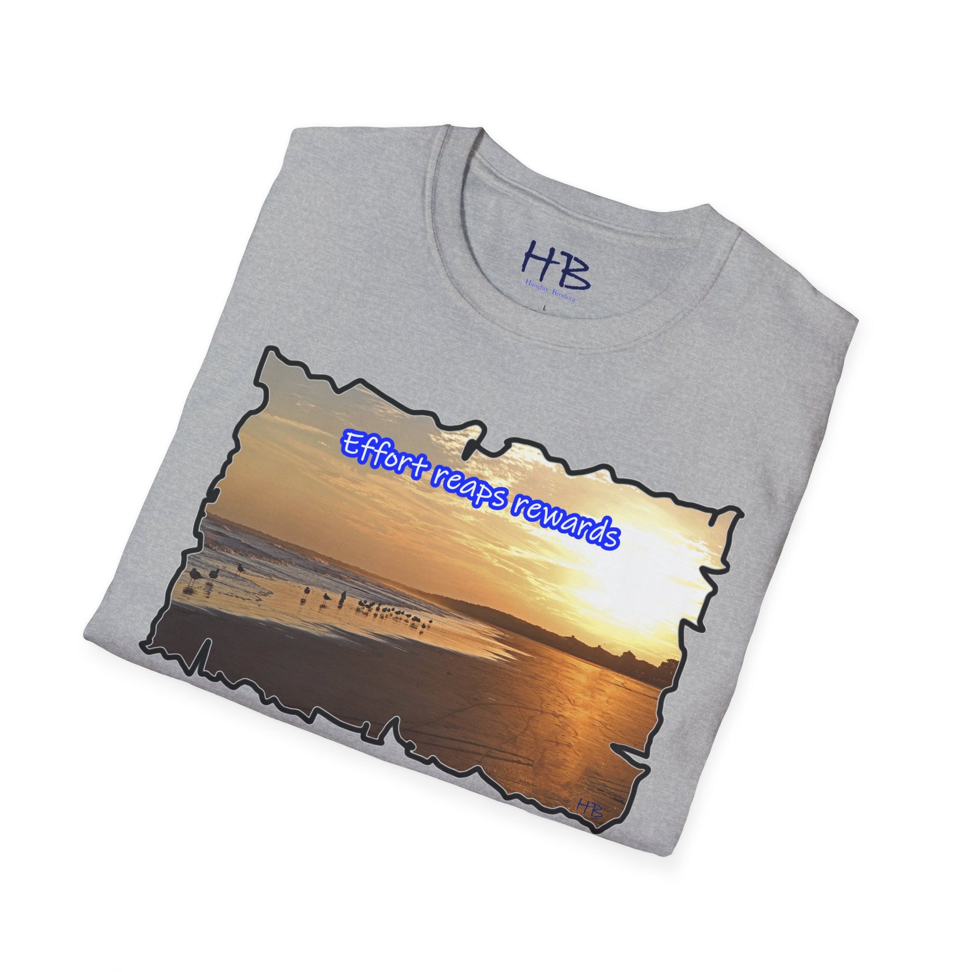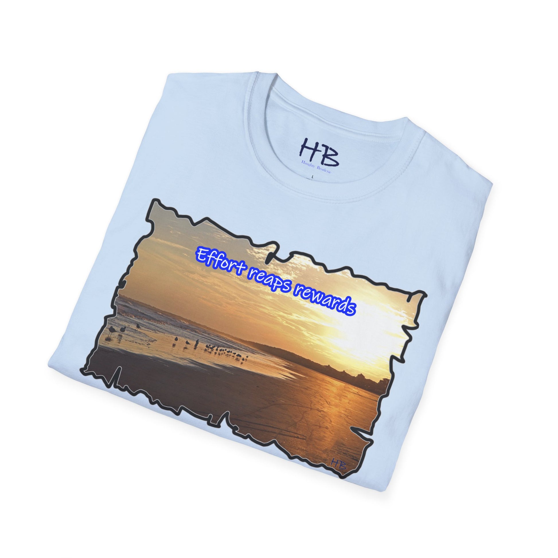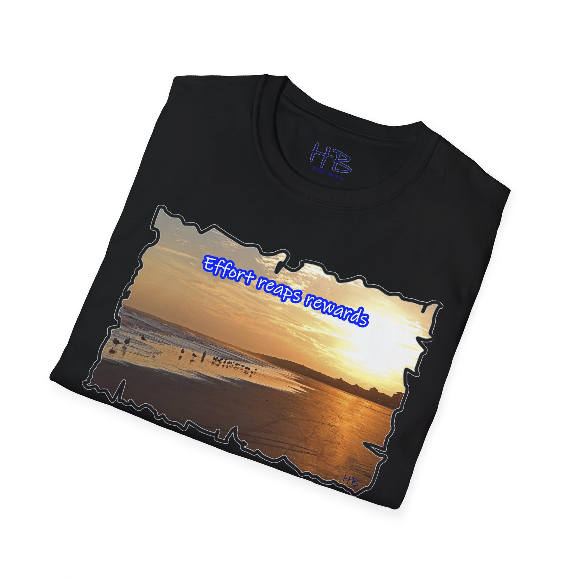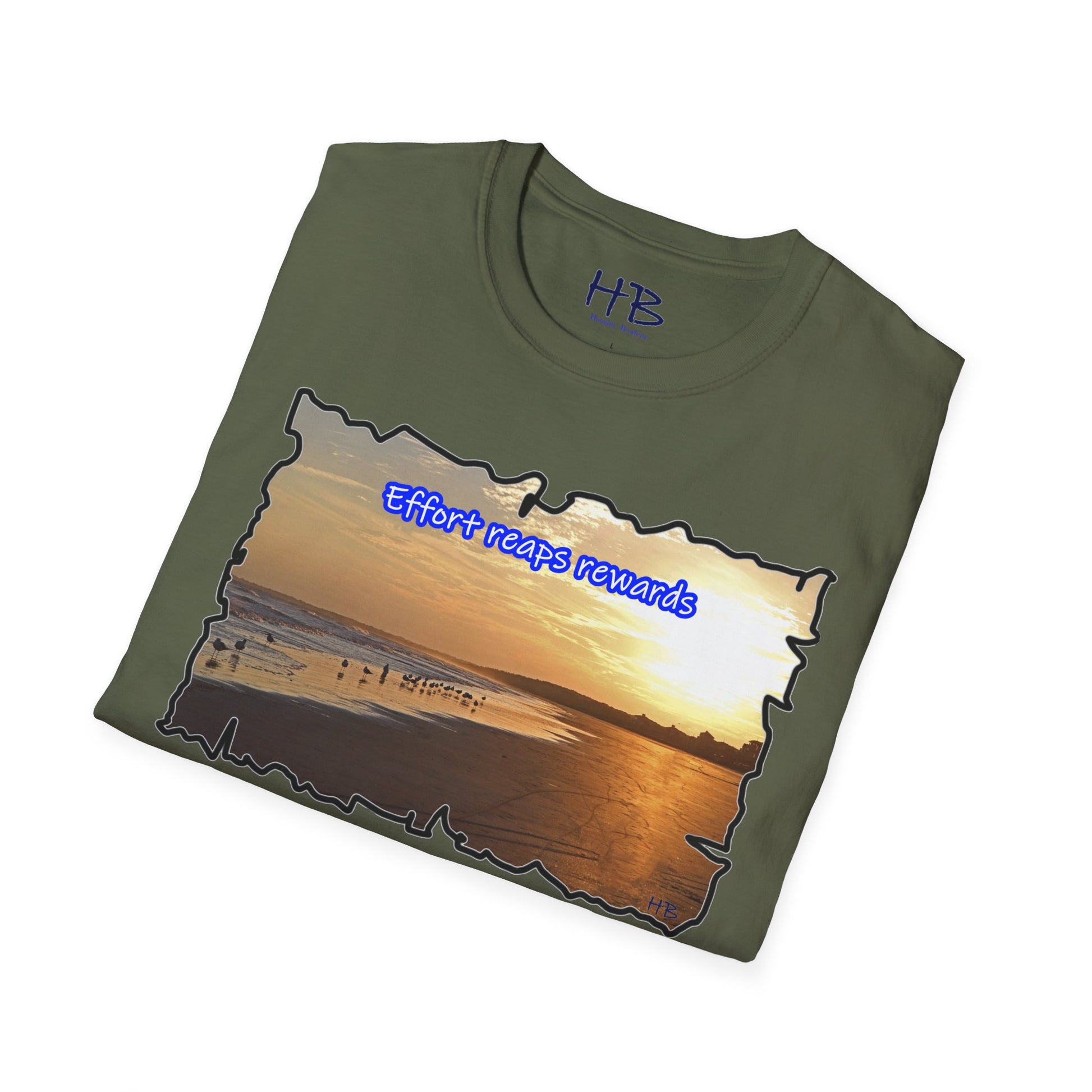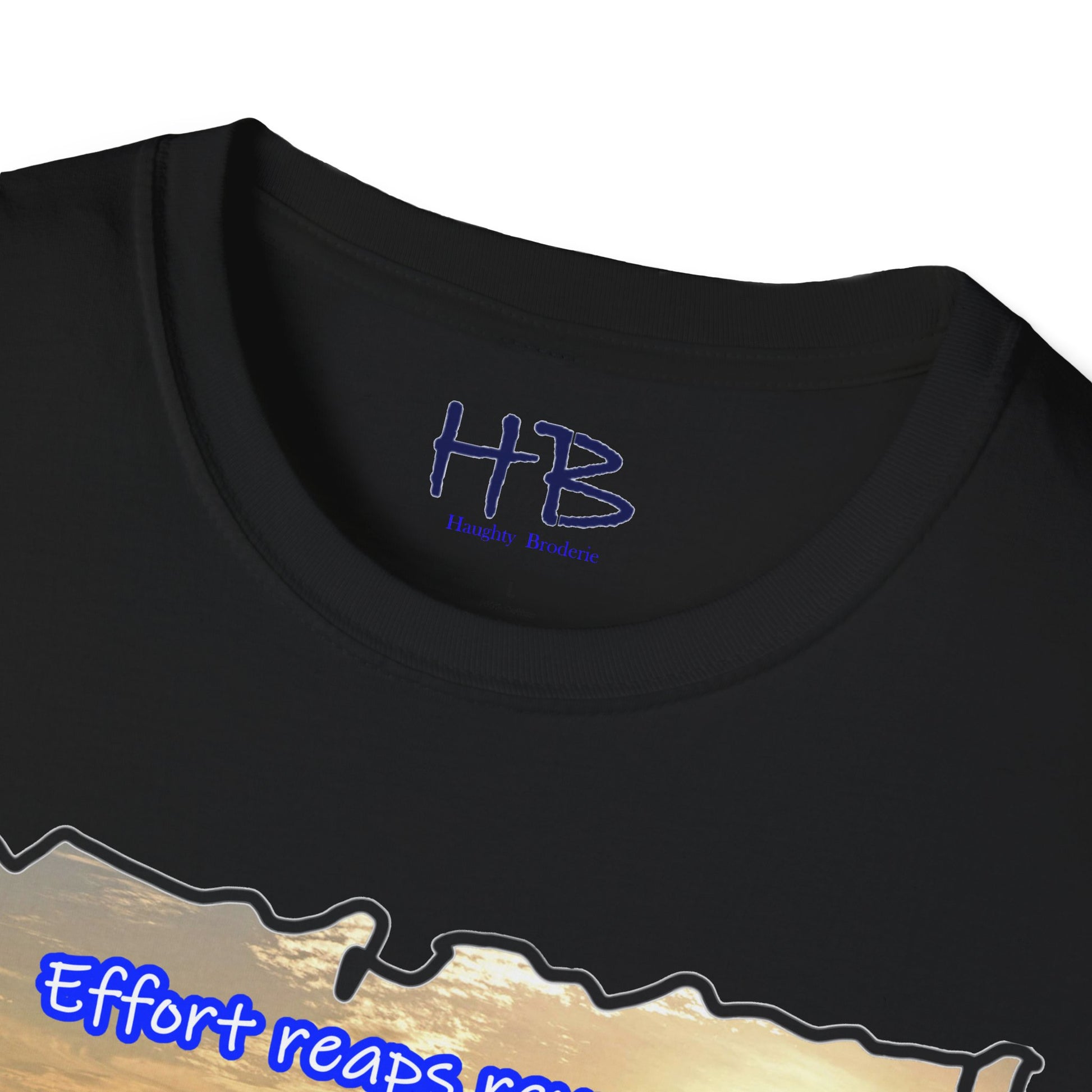 Immerse yourself in the narrative of triumph and serenity, and let the world witness the embodiment of "Effort reaps rewards" with every step you take in this wearable masterpiece.