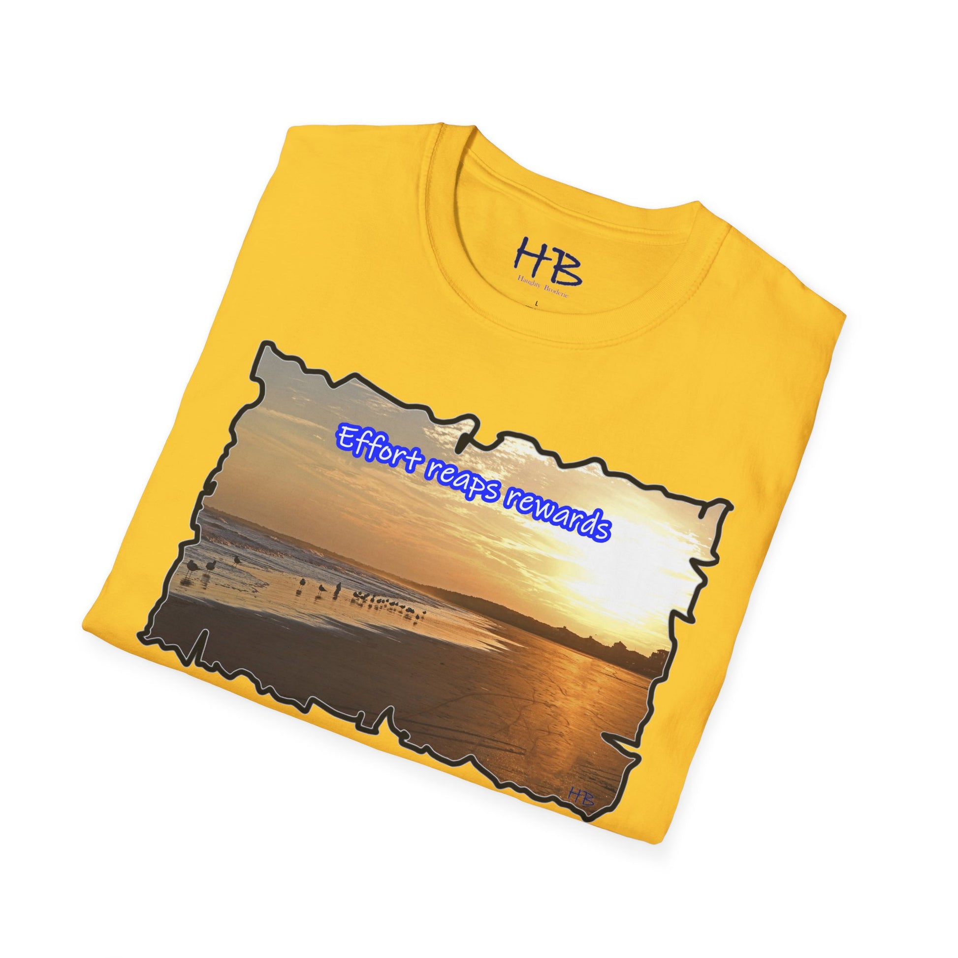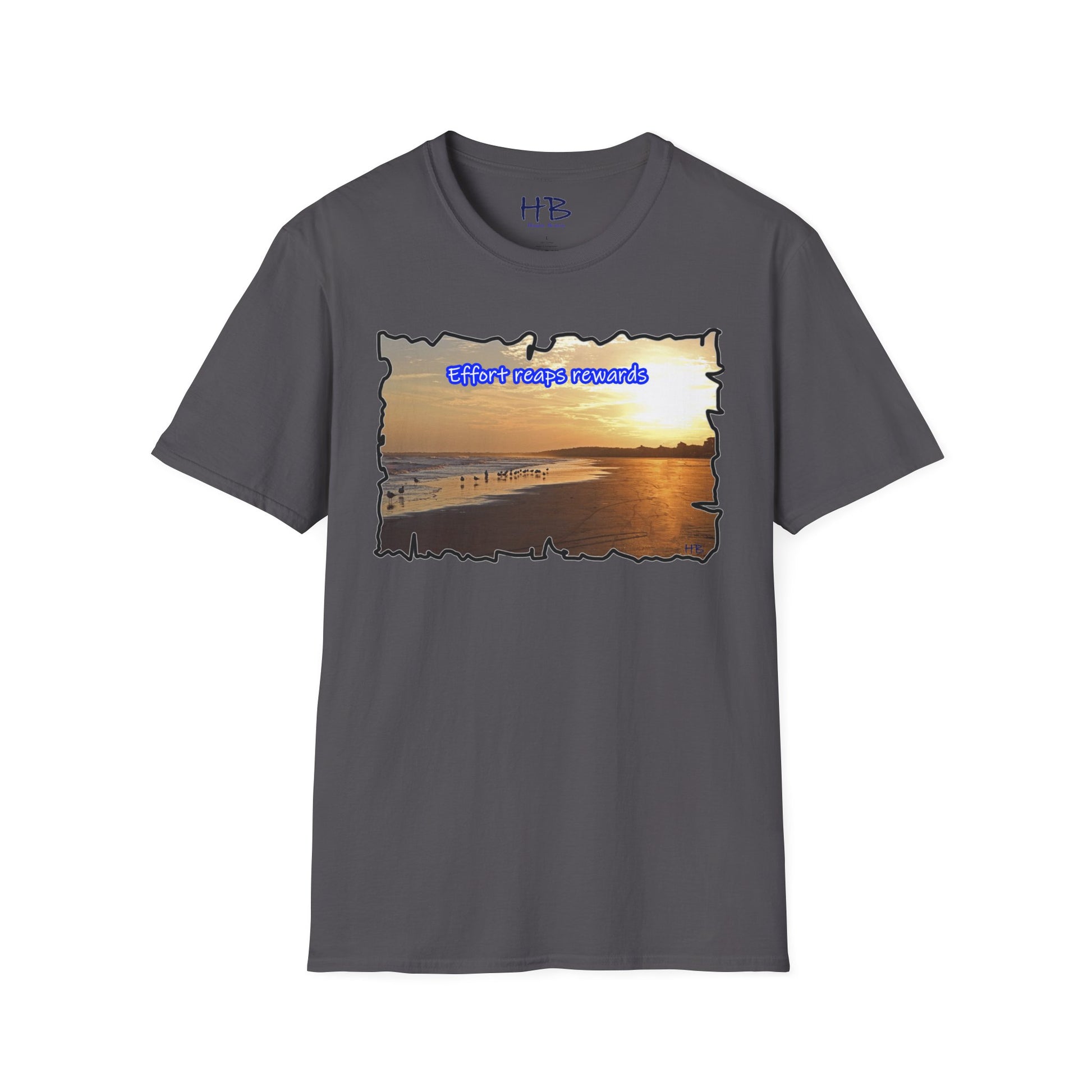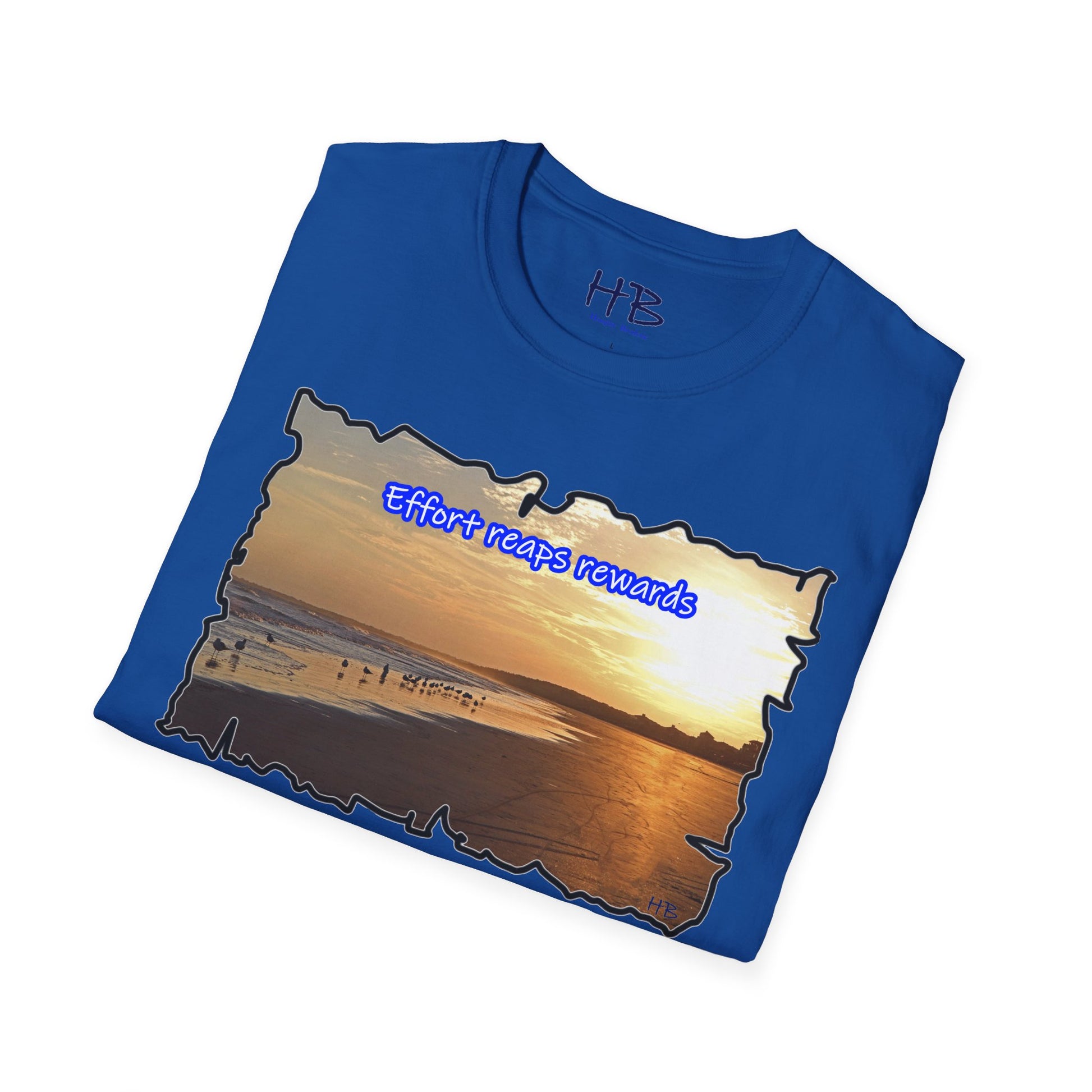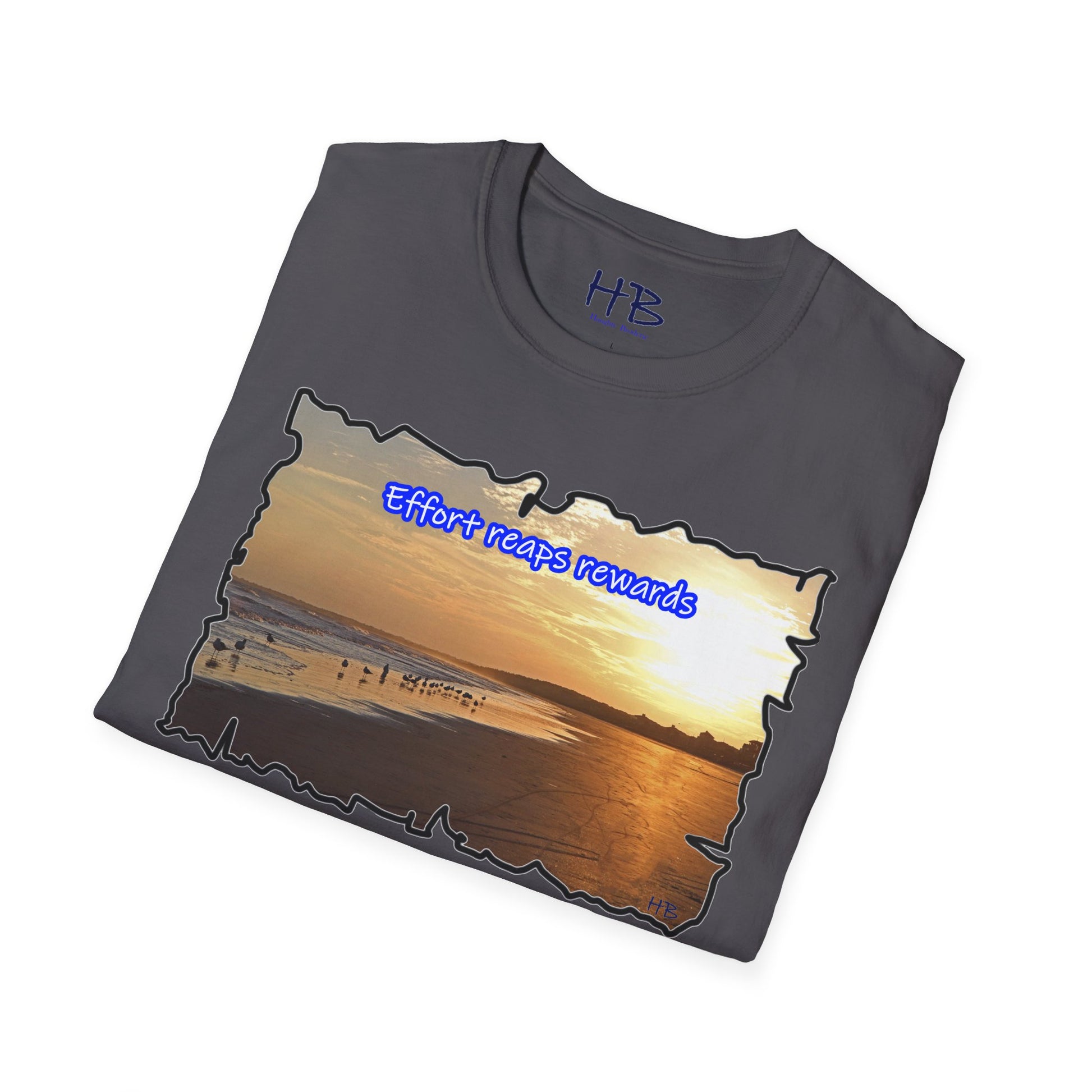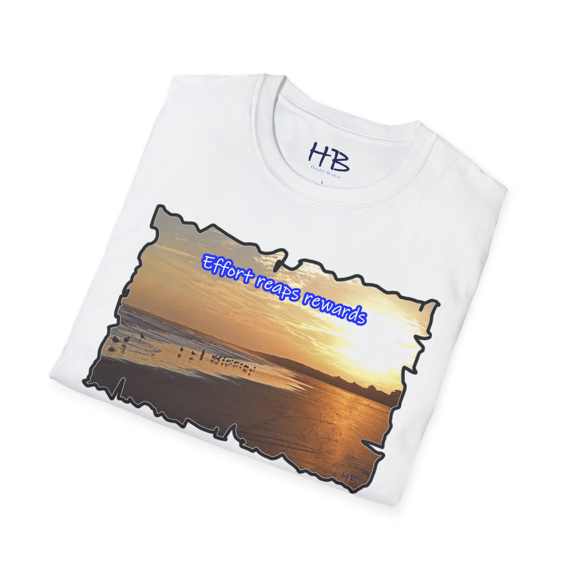 Immerse yourself in the narrative of triumph and serenity, and let the world witness the embodiment of "Effort reaps rewards" with every step you take in this wearable masterpiece.