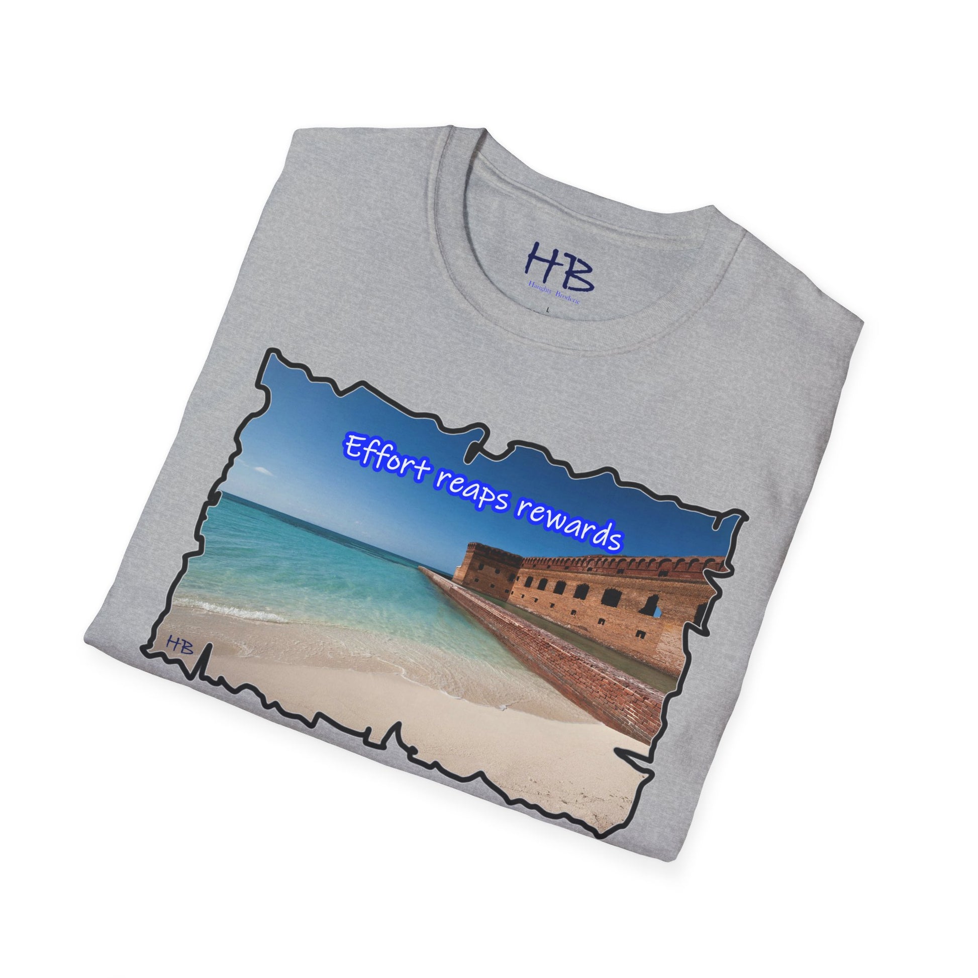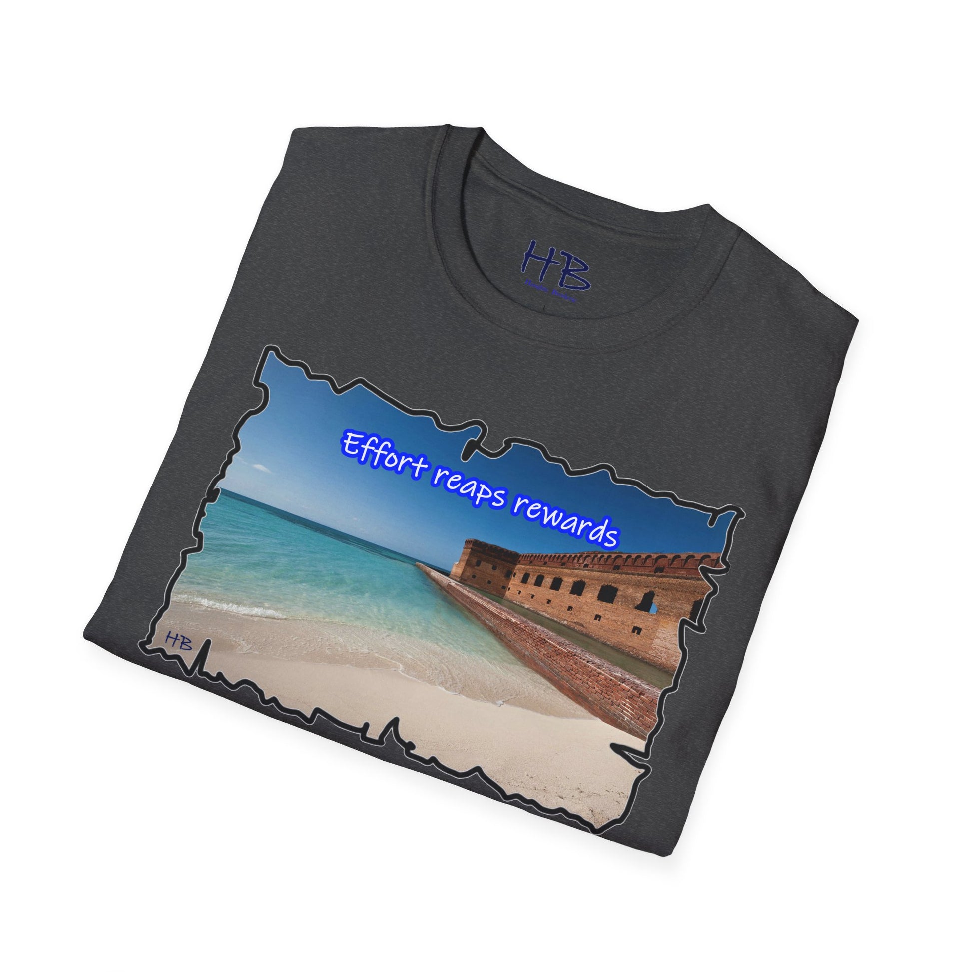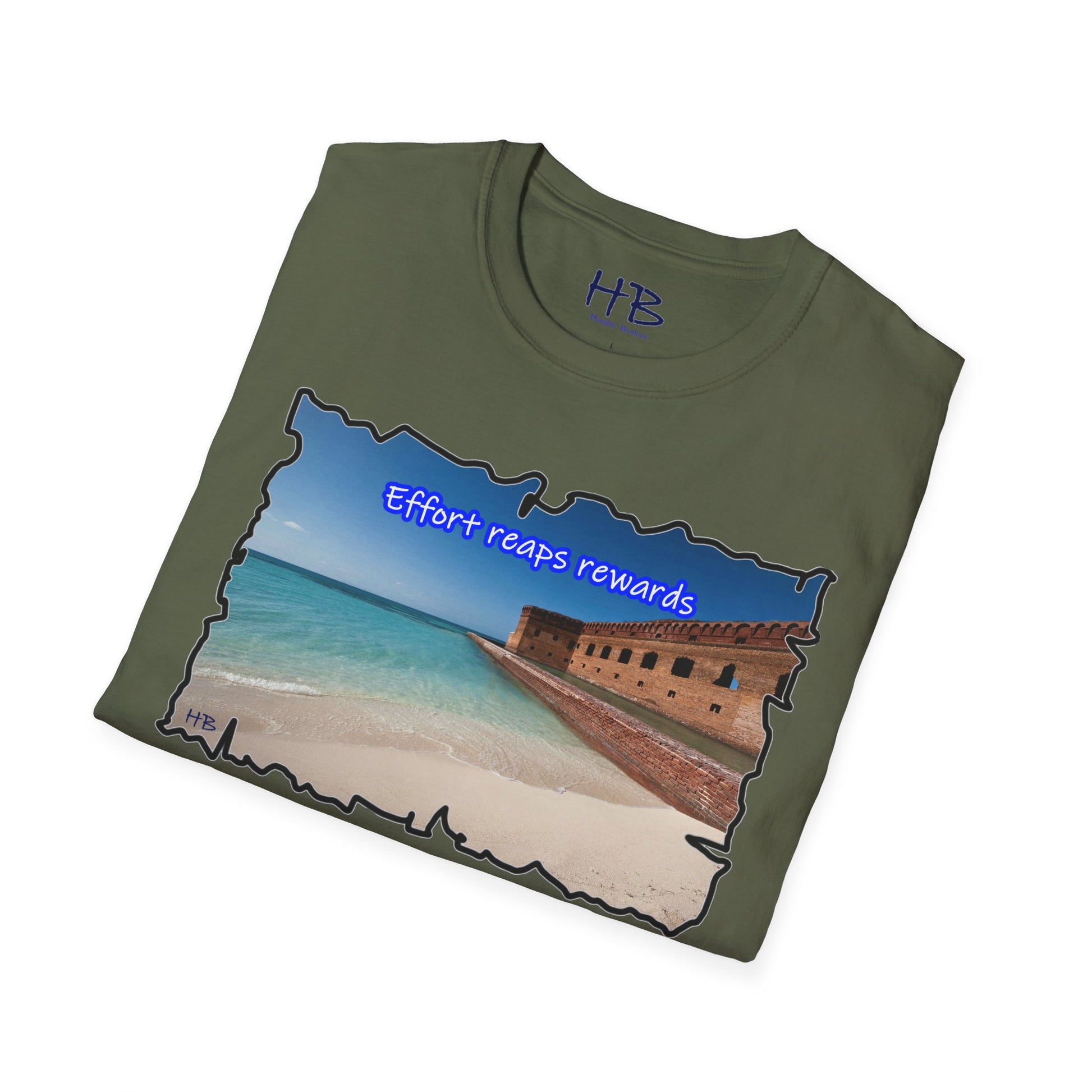 Immerse yourself in the symbolic synergy of Dry Tortugas' sandy beauty and the mantra that encapsulates the human spirit. Become a beacon of inspiration to those who recognize the significance of earnest endeavors. This t-shirt is more than a garment; it's a visual proclamation of the rewards that await those who invest effort with unwavering determination.