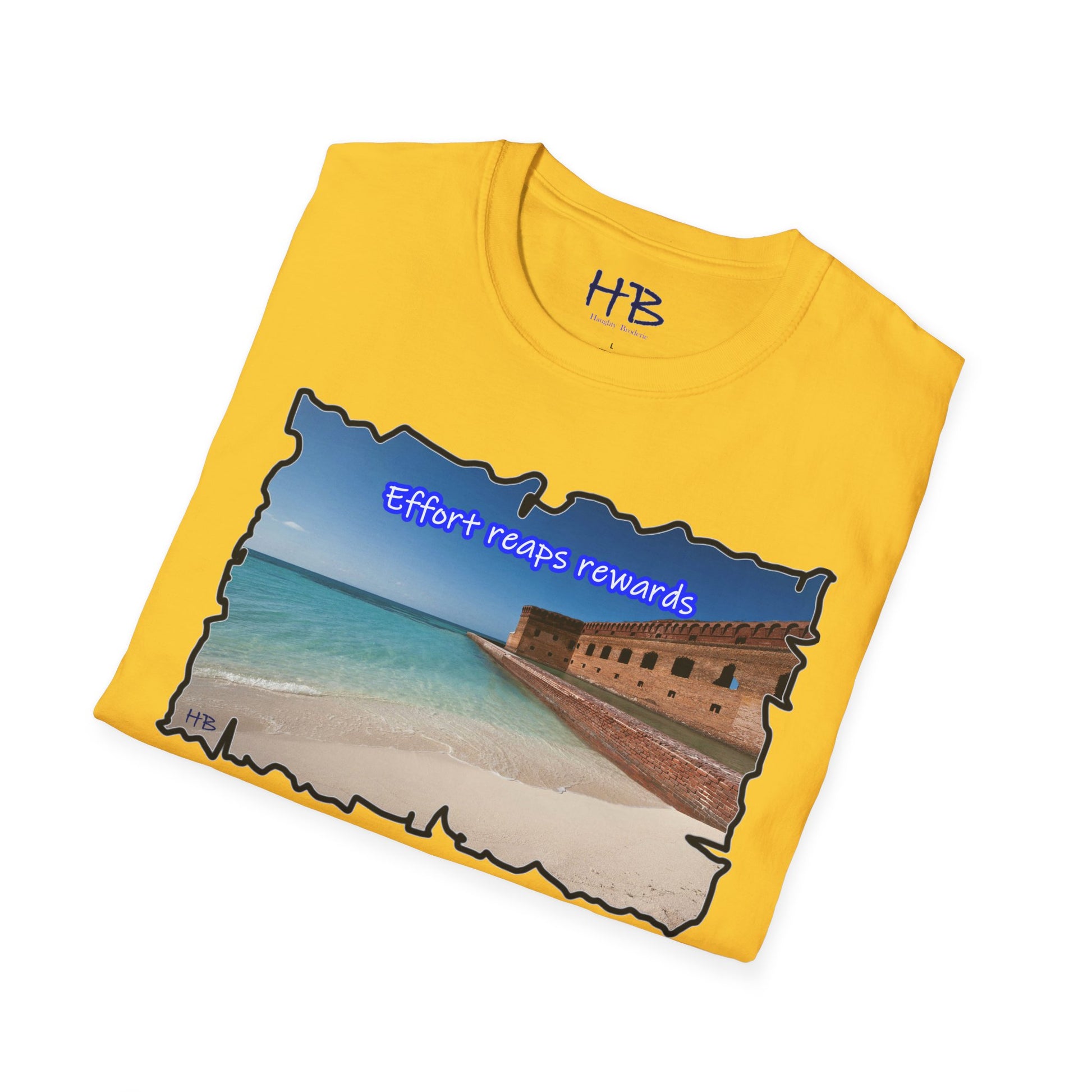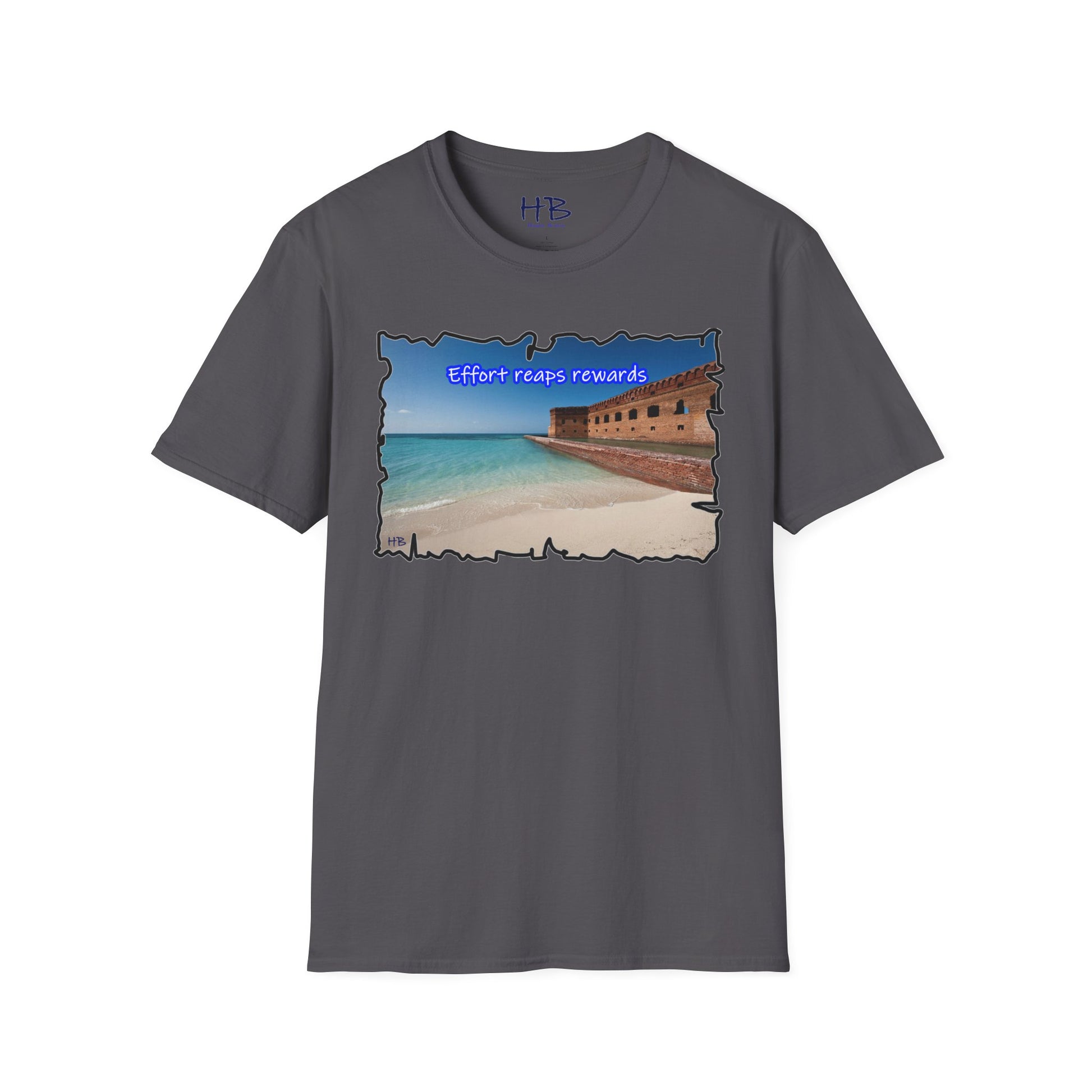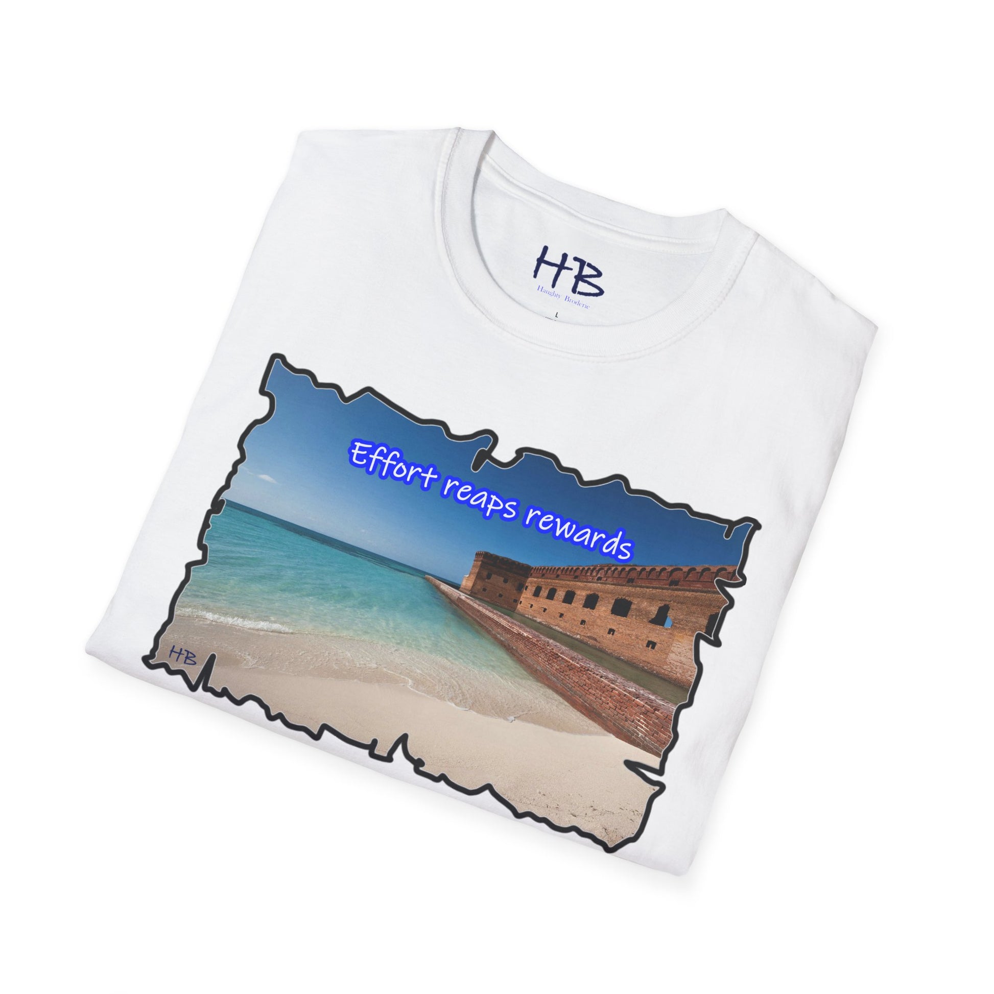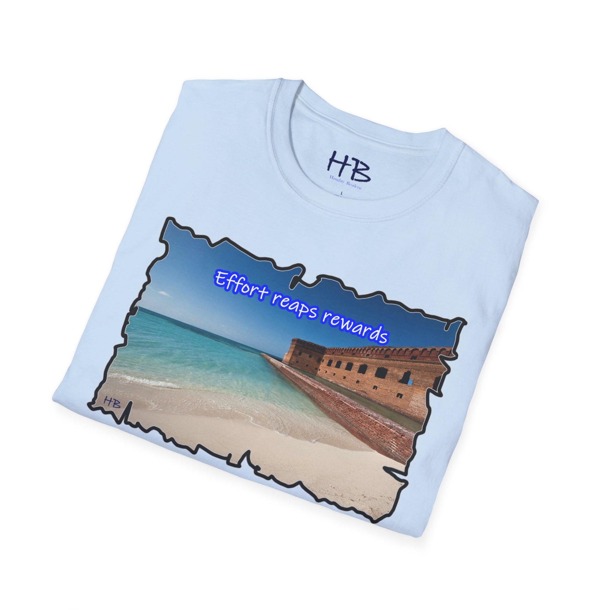 Immerse yourself in the symbolic synergy of Dry Tortugas' sandy beauty and the mantra that encapsulates the human spirit. Become a beacon of inspiration to those who recognize the significance of earnest endeavors. This t-shirt is more than a garment; it's a visual proclamation of the rewards that await those who invest effort with unwavering determination.