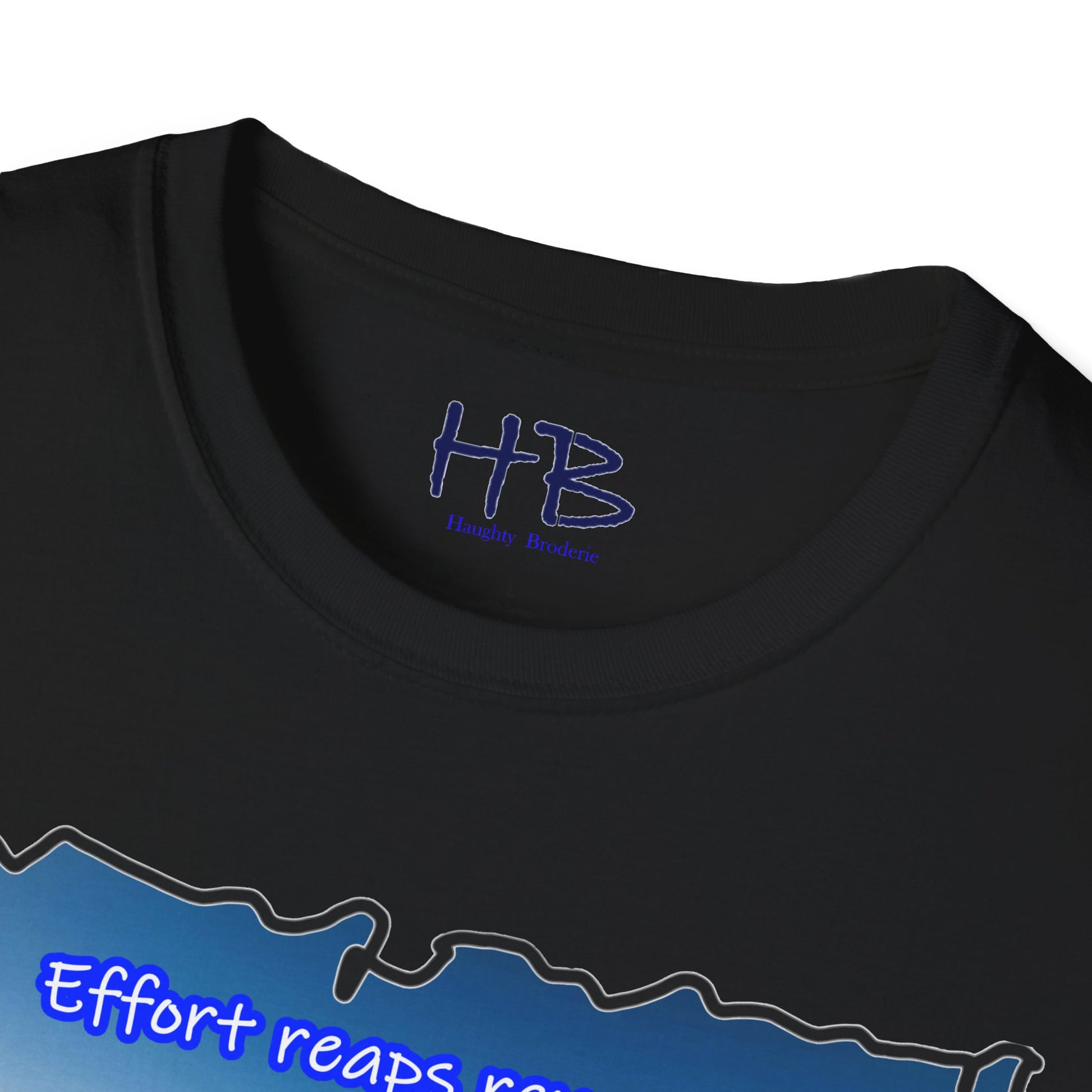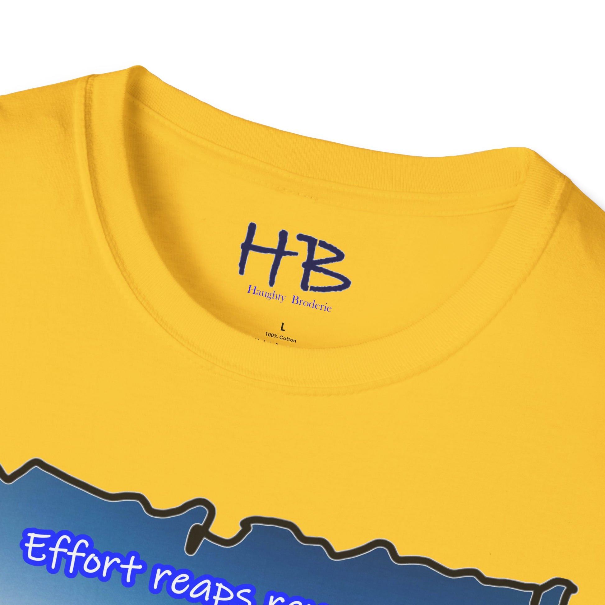 In the contemporary tapestry of our lives, the significance of this idyllic scene resonates profoundly. The juxtaposition of the breathtaking scenery with the empowering mantra "Effort reaps rewards" serves as a poignant reminder of the relentless pursuit of our aspirations. This isn't merely a garment; it's a testament to the dedication and hard work that pave the way to moments of serenity and joy, akin to the well-deserved vacation earned through year-round diligence.