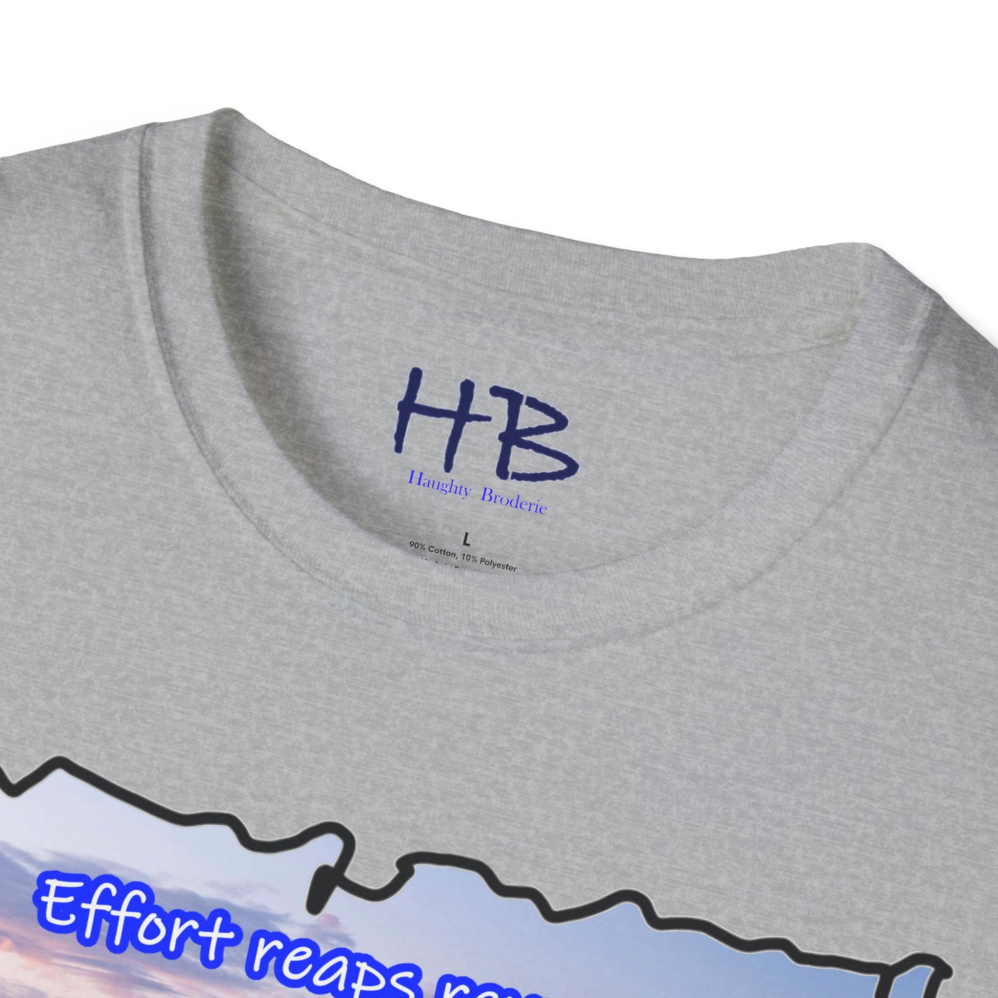 Wearing this shirt is not just a style statement; it's a proclamation of your commitment to the grind, a reminder that every ounce of effort you invest will yield a picturesque reward. As you don this wearable masterpiece, you become a walking testament to the belief that dedication and hard work lead to moments of tranquility and fulfillment.