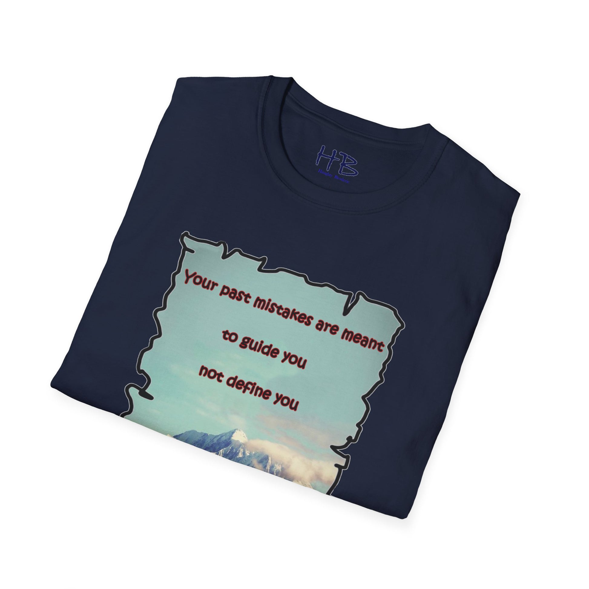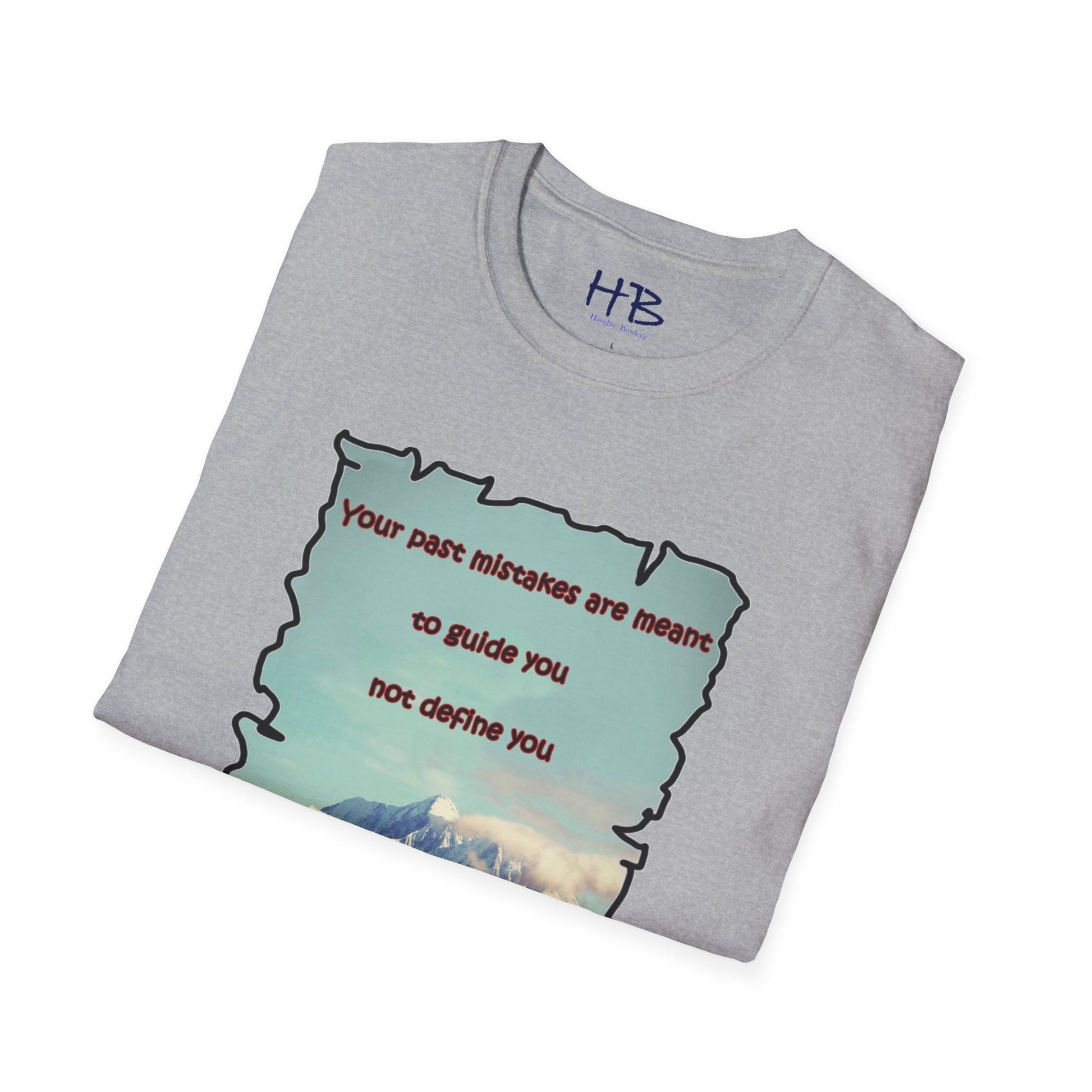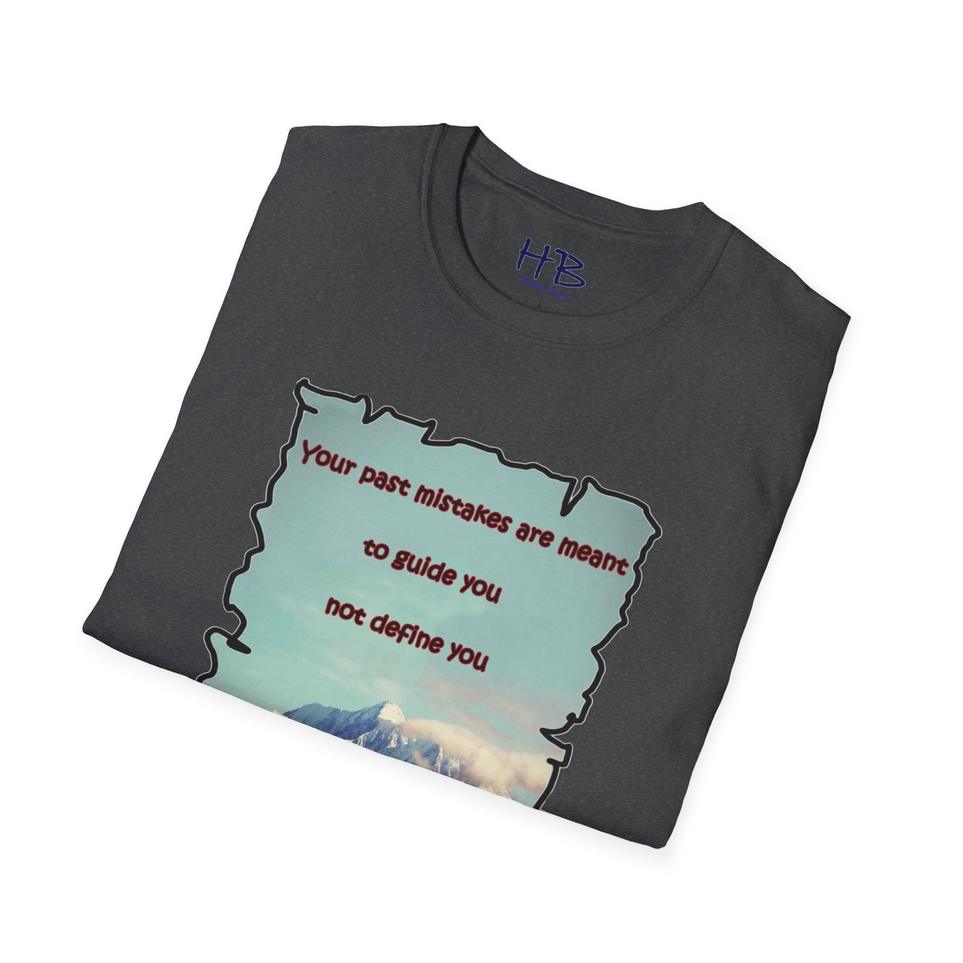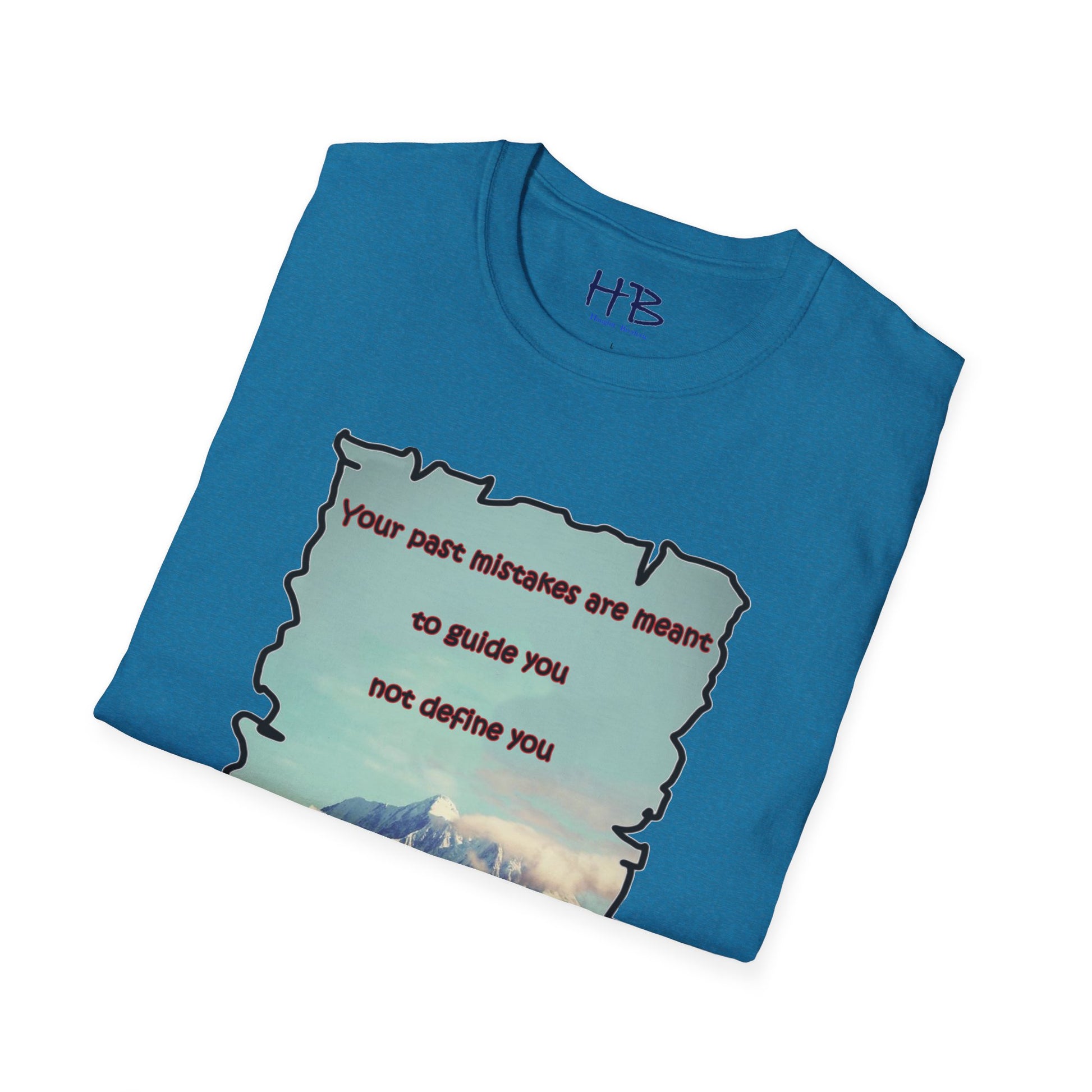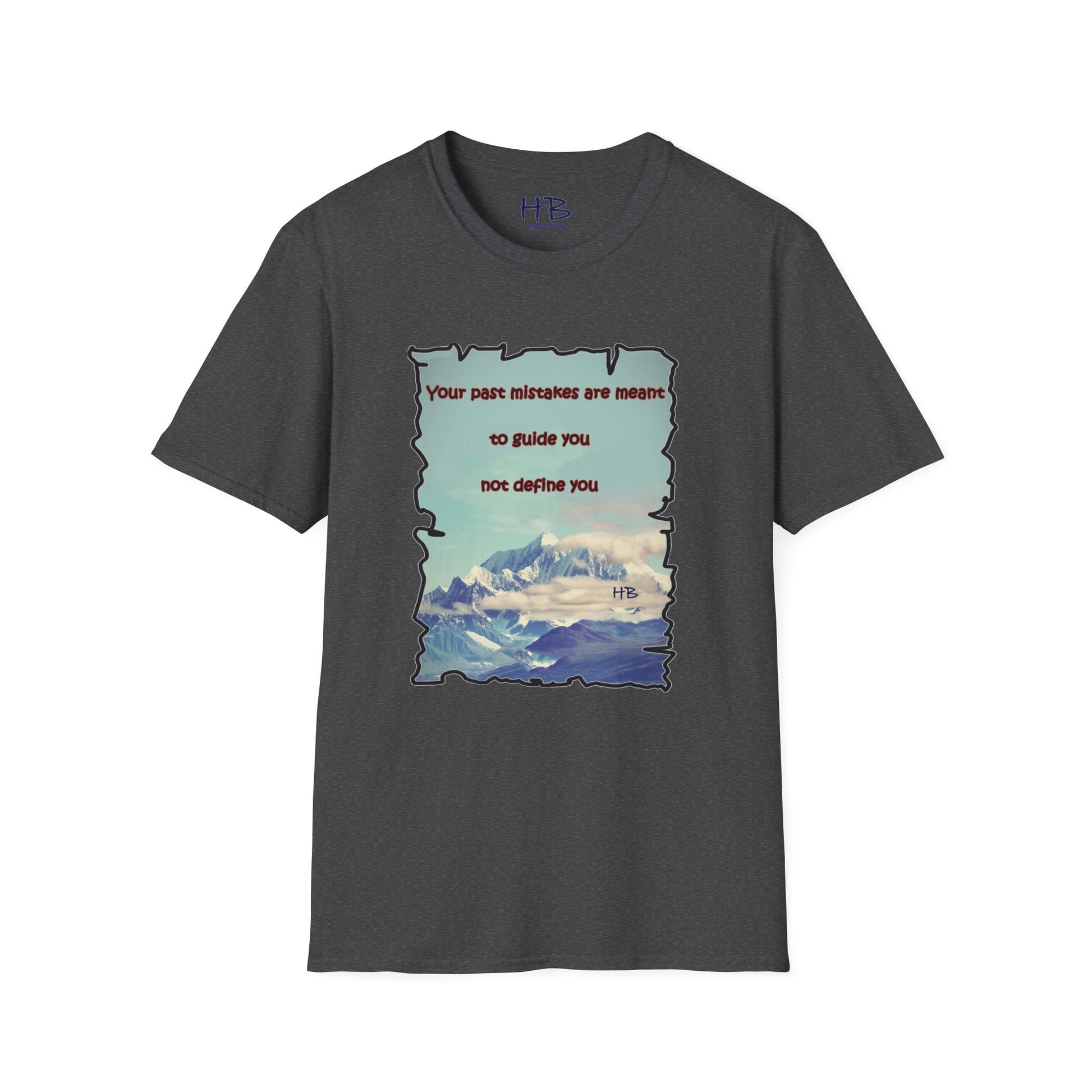 Introducing our exceptional tee shirt adorned with a breathtaking illustration of a scenic backdrop featuring majestic snowy mountains. Emblazoned on this tee is an inspiring message that reads, "Your past mistakes are meant to guide you, not define you." We believe this tee shirt is more than just a piece of clothing; it's a powerful symbol of resilience, growth, and self-discovery.