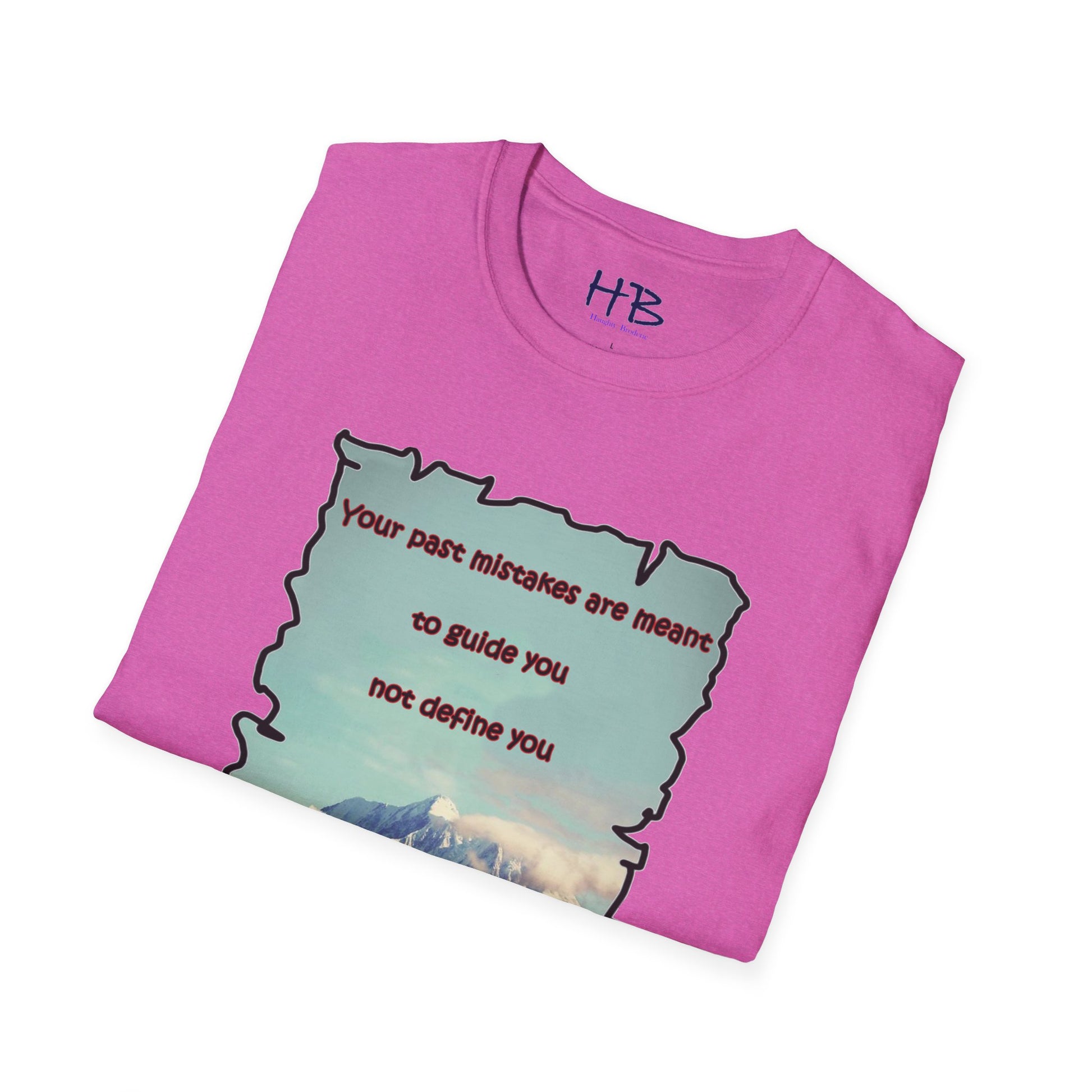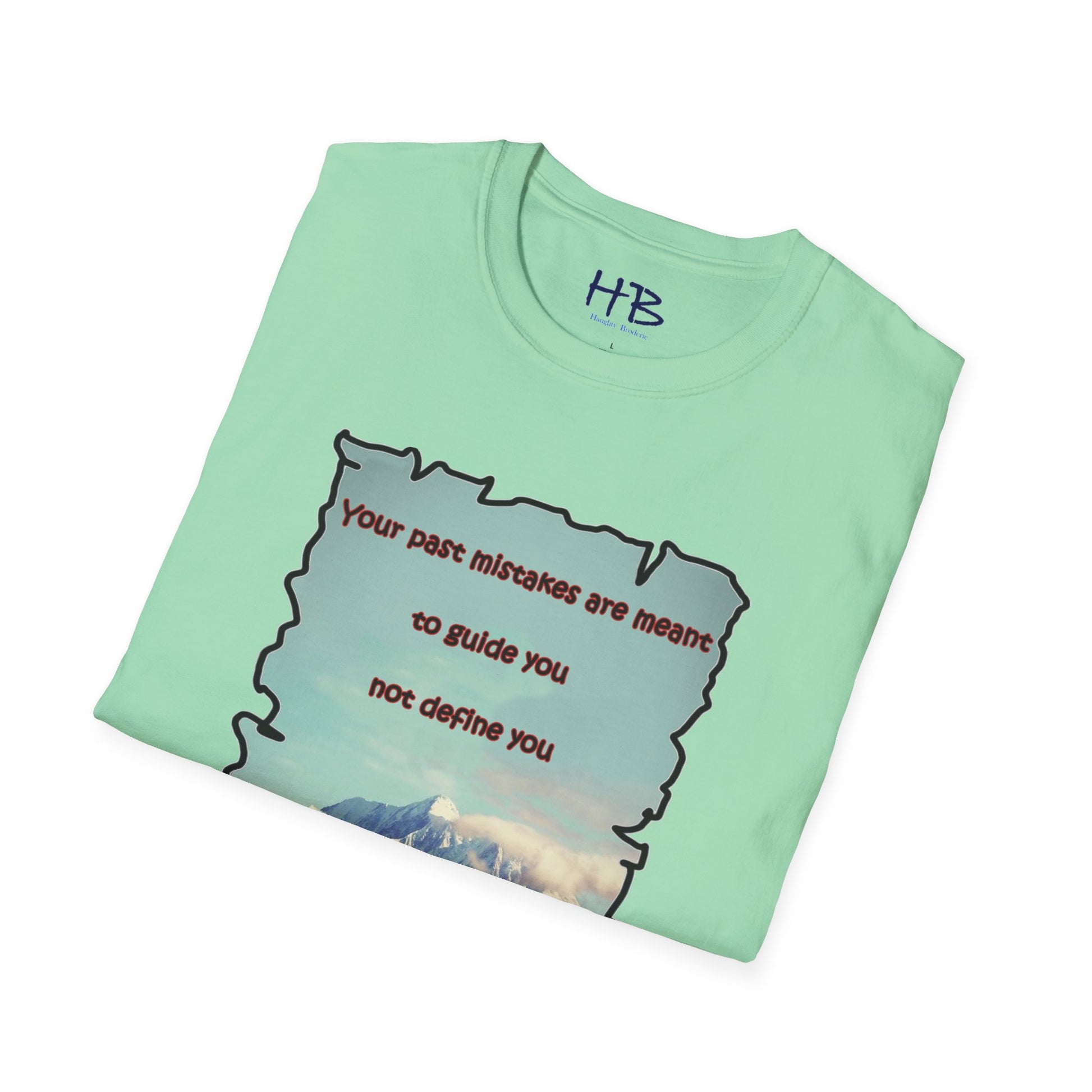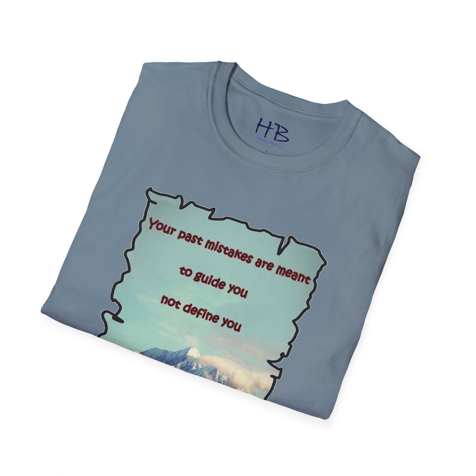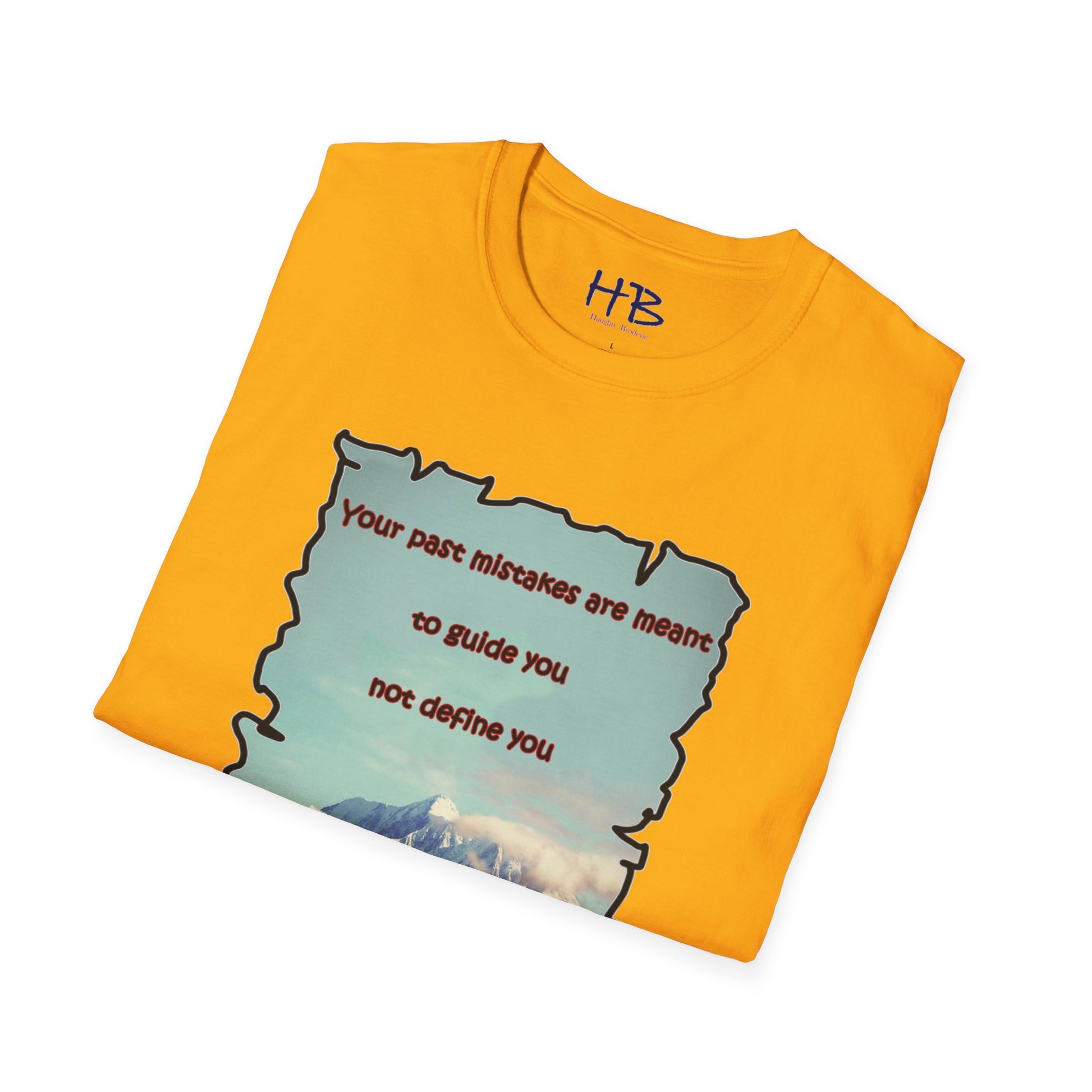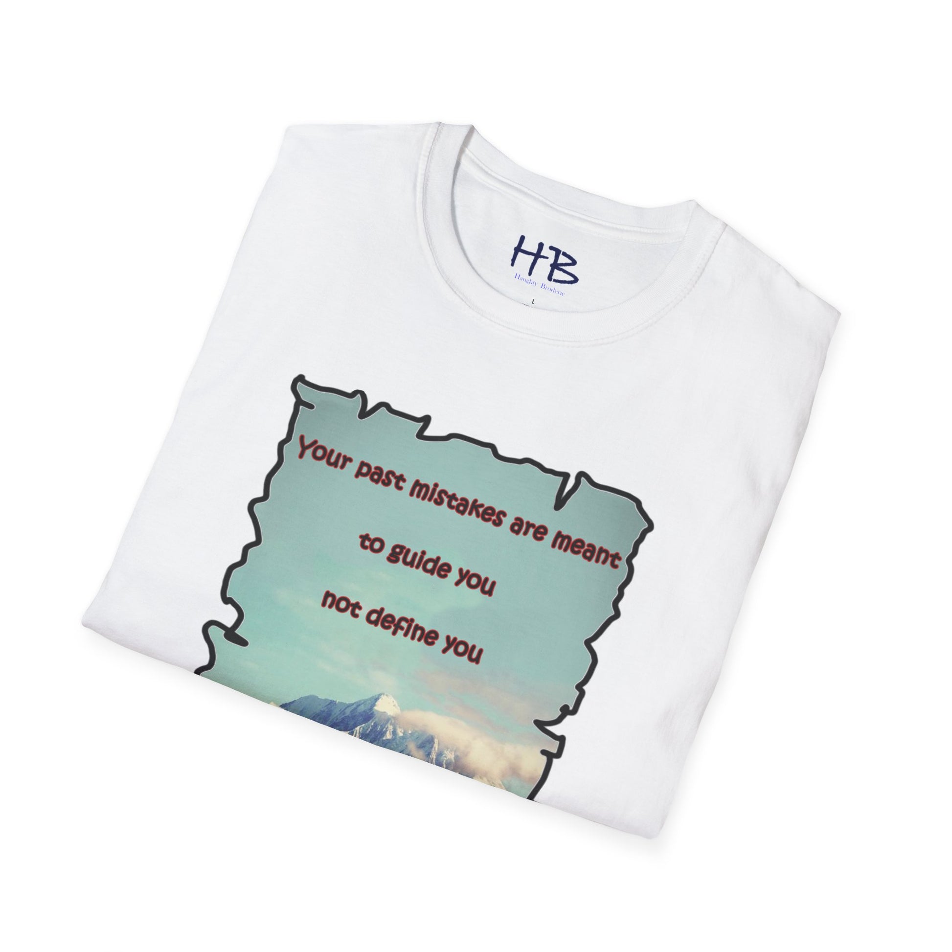 Introducing our exceptional tee shirt adorned with a breathtaking illustration of a scenic backdrop featuring majestic snowy mountains. Emblazoned on this tee is an inspiring message that reads, "Your past mistakes are meant to guide you, not define you." We believe this tee shirt is more than just a piece of clothing; it's a powerful symbol of resilience, growth, and self-discovery.