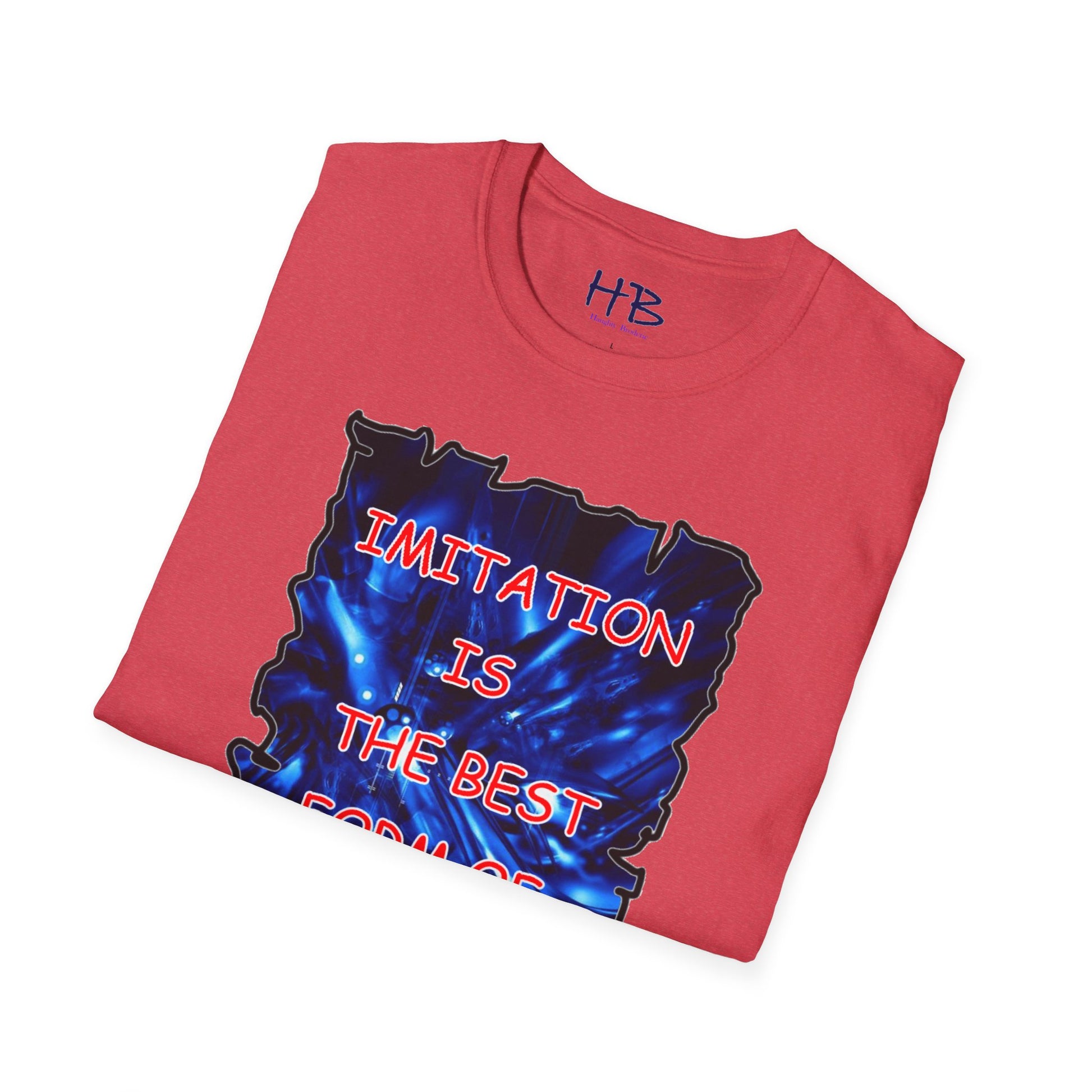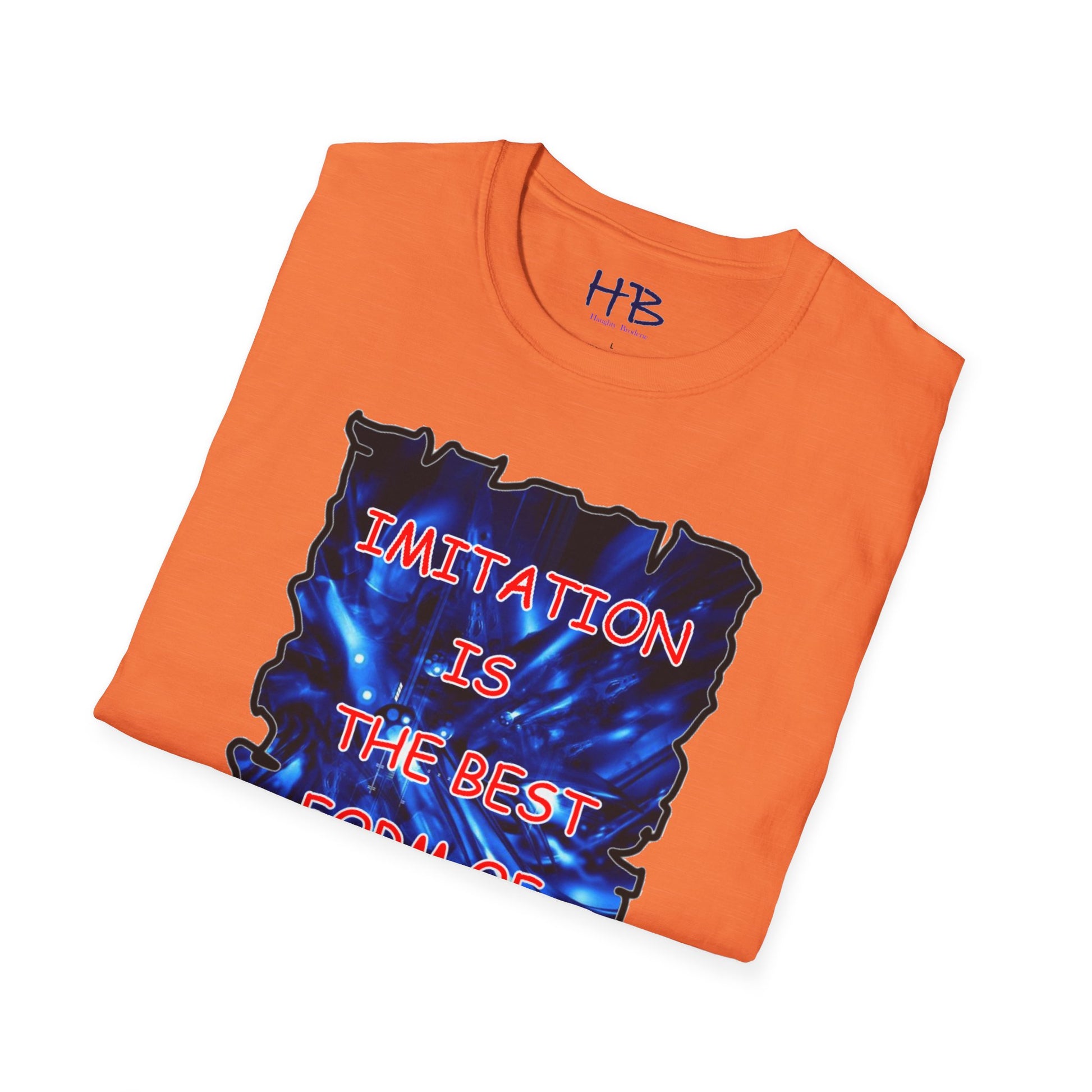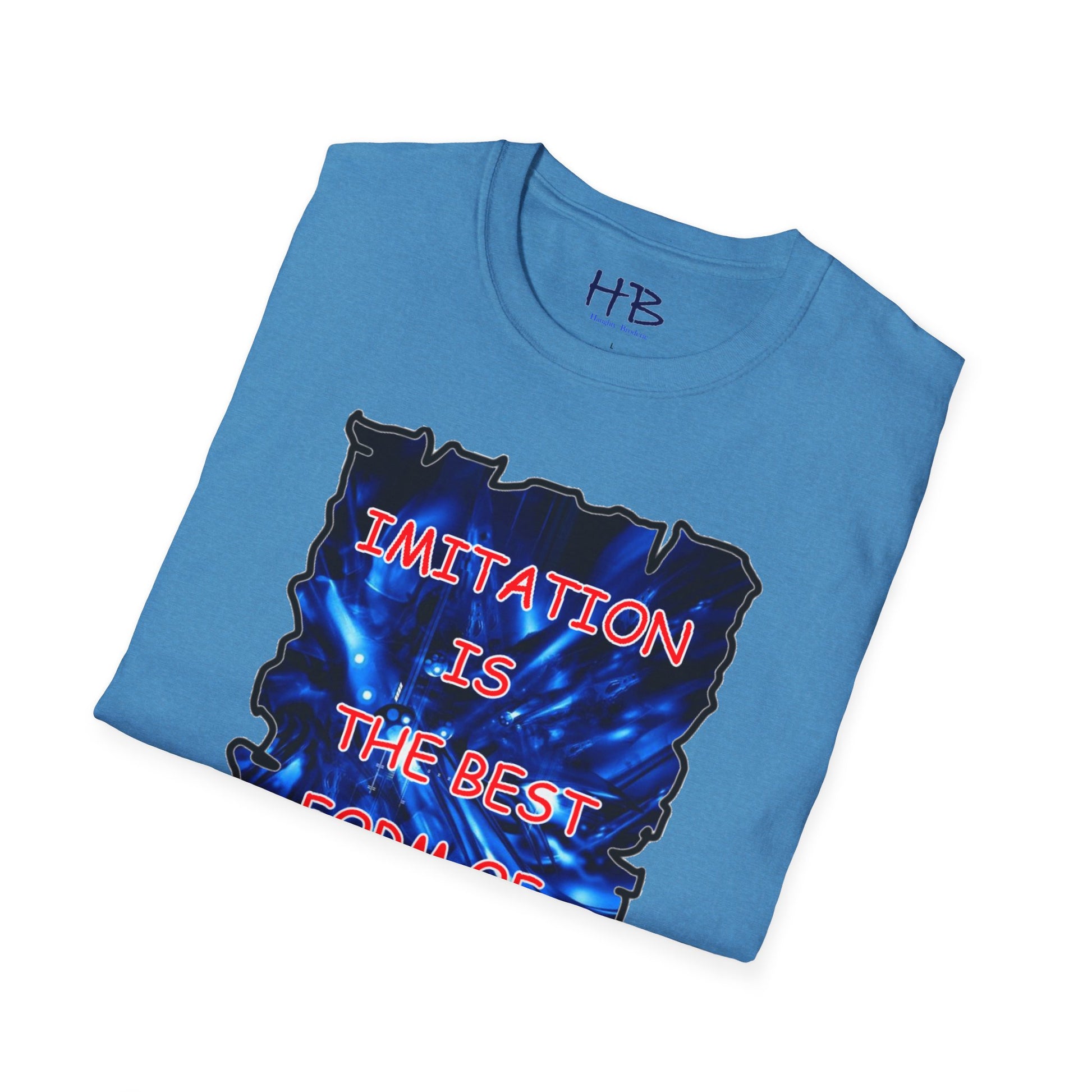 Introducing our captivating garment featuring a stunning combination of hues in blue, black, and white. This remarkable tee shirt proudly showcases the empowering statement, "Imitation is the best form of flattery." With a thought-provoking design, this shirt sparks conversations and stands as a powerful symbol in today's world.