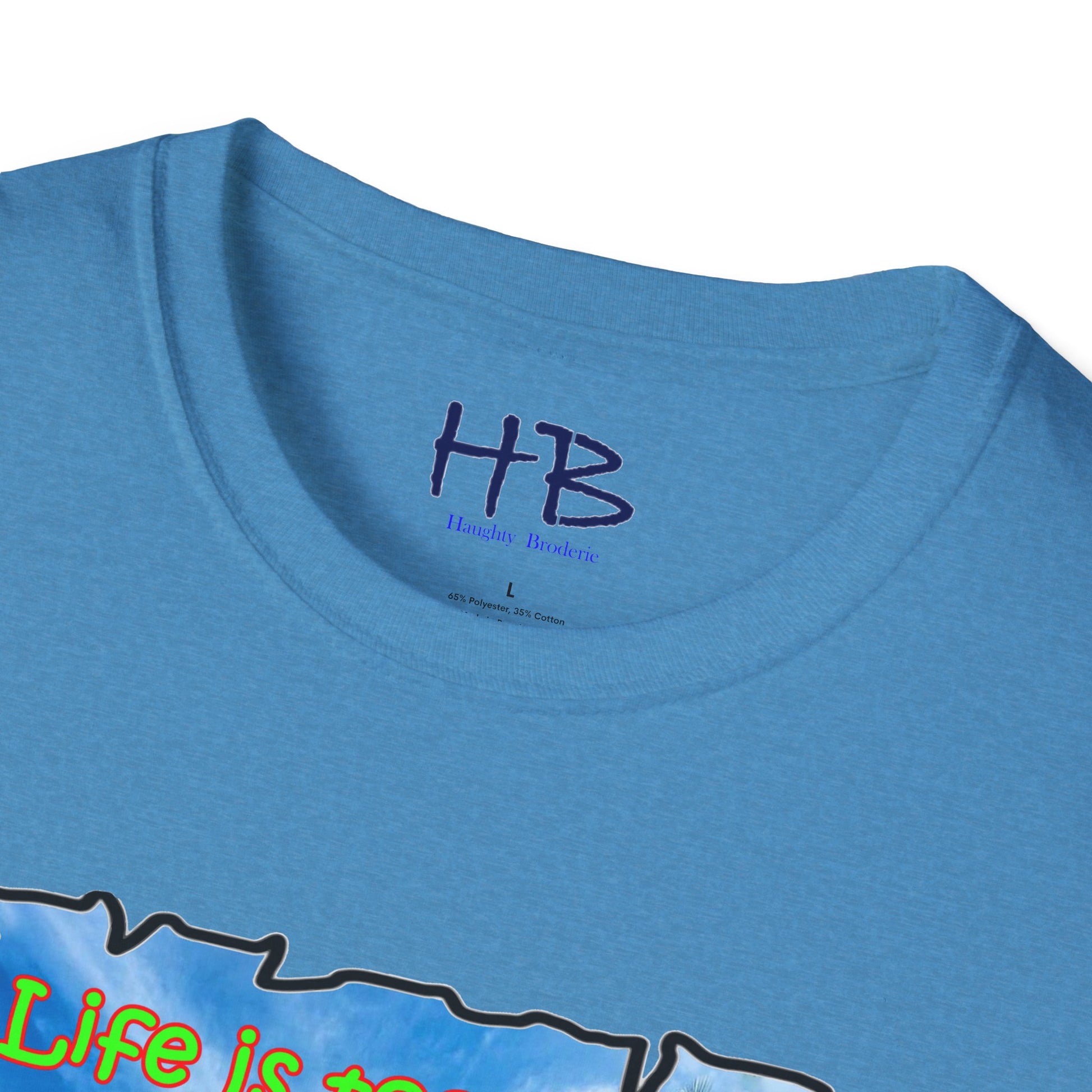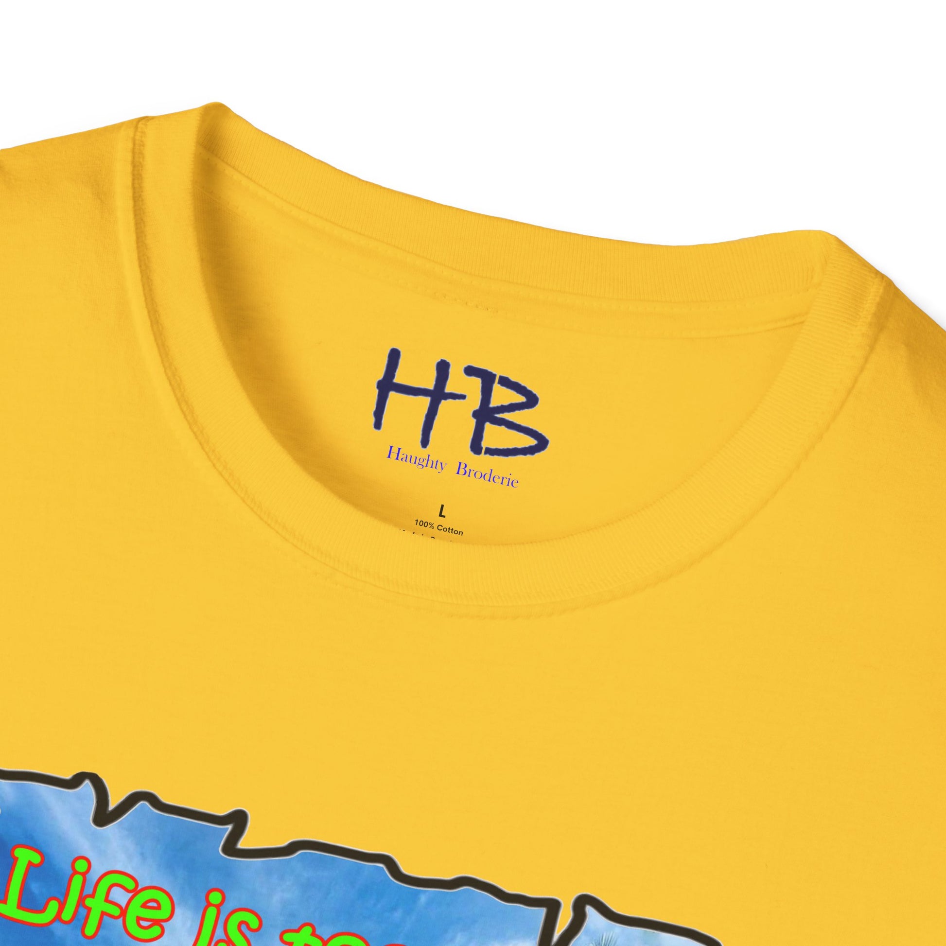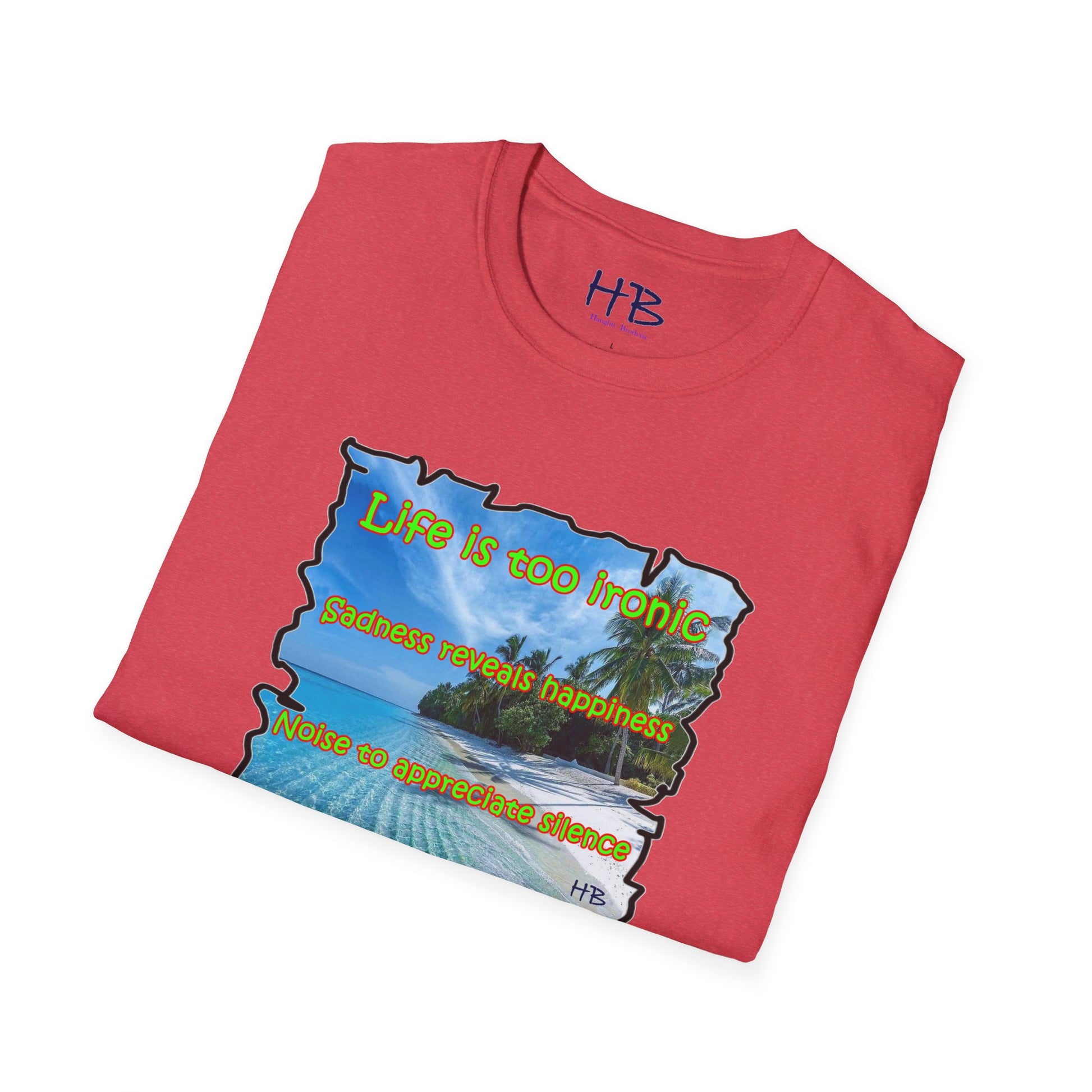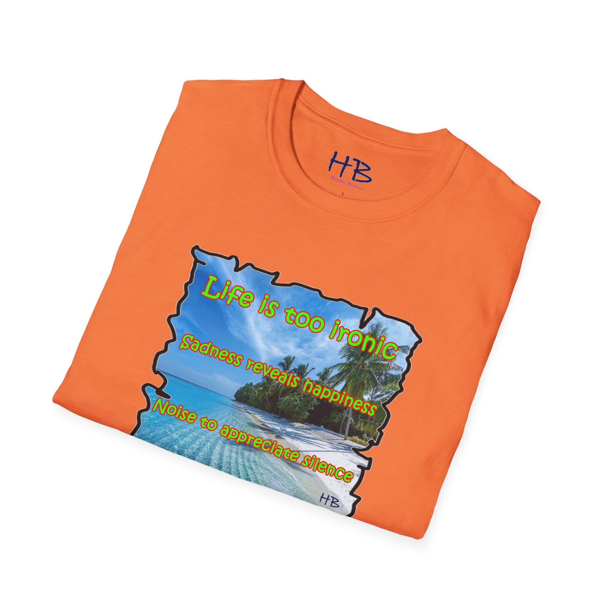 Introducing our latest creation, a stunning piece of wearable art that captures the essence of life's paradoxes and the beauty of self-discovery. Behold the marvelous tee shirt, featuring a breathtaking sandy beach with crystal-clear blue waters, gently swaying palm trees, and a profound message that reads:
