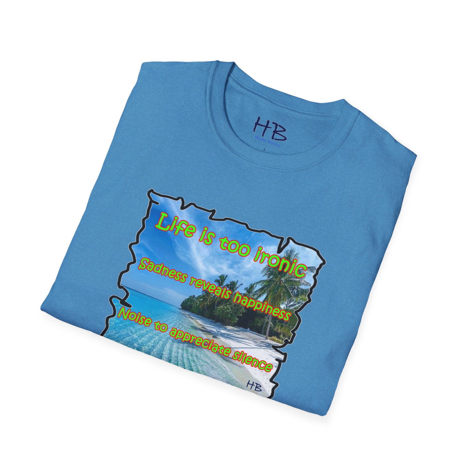 In today's fast-paced world, owning this tee shirt not only serves as a fashion statement but also as a symbol of mindfulness and introspection. Wearing it, you'll radiate a sense of wisdom, positivity, and understanding, drawing admiration and agreement from those around you. As you walk through the city, people will be captivated by the thoughtful message, finding comfort in knowing that they are not alone in navigating life's ironies.