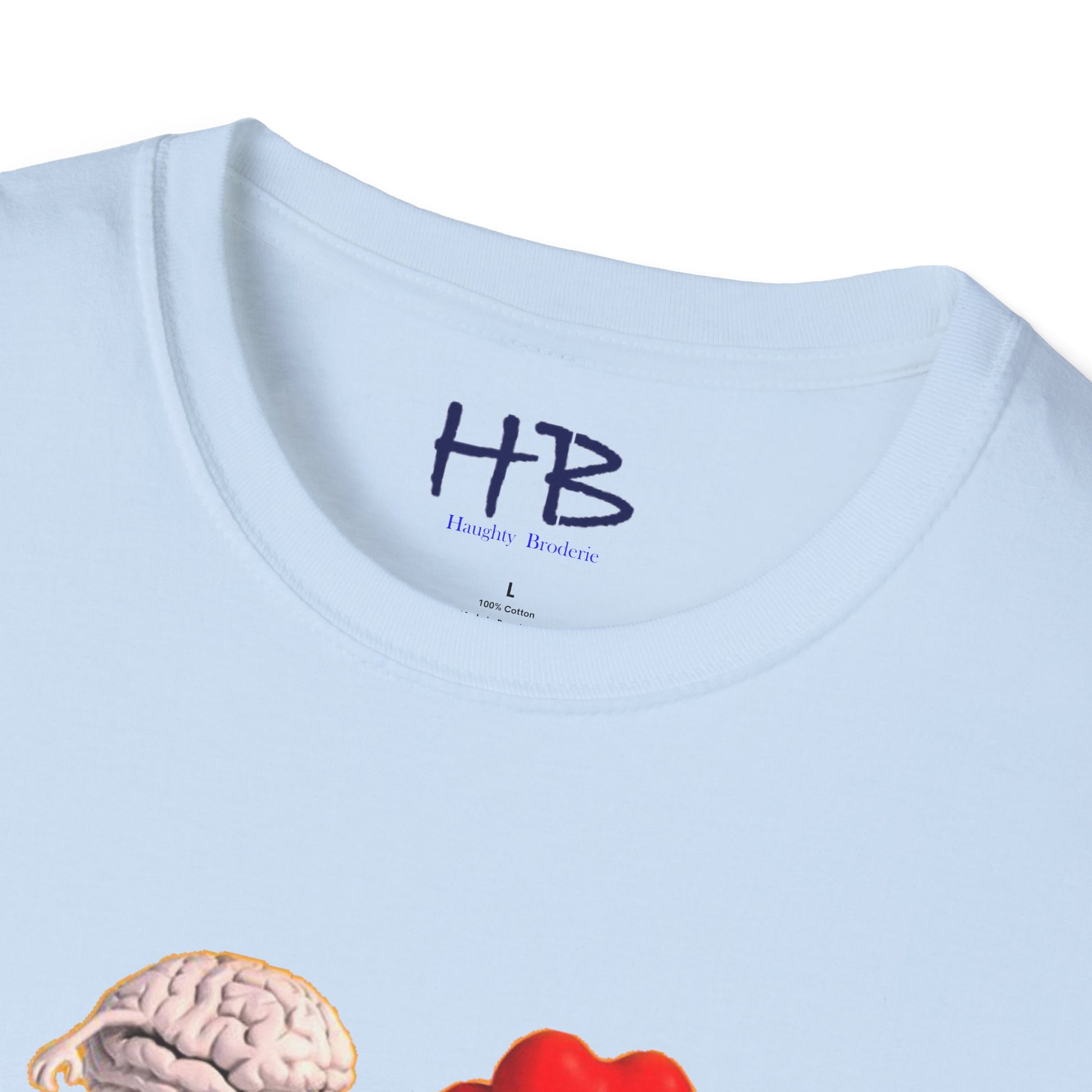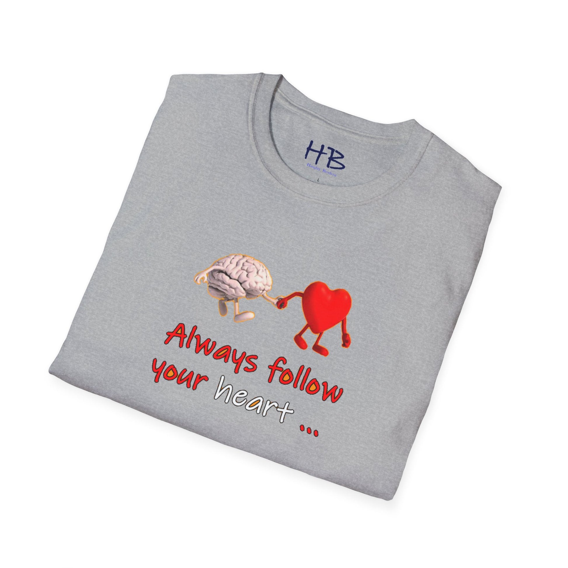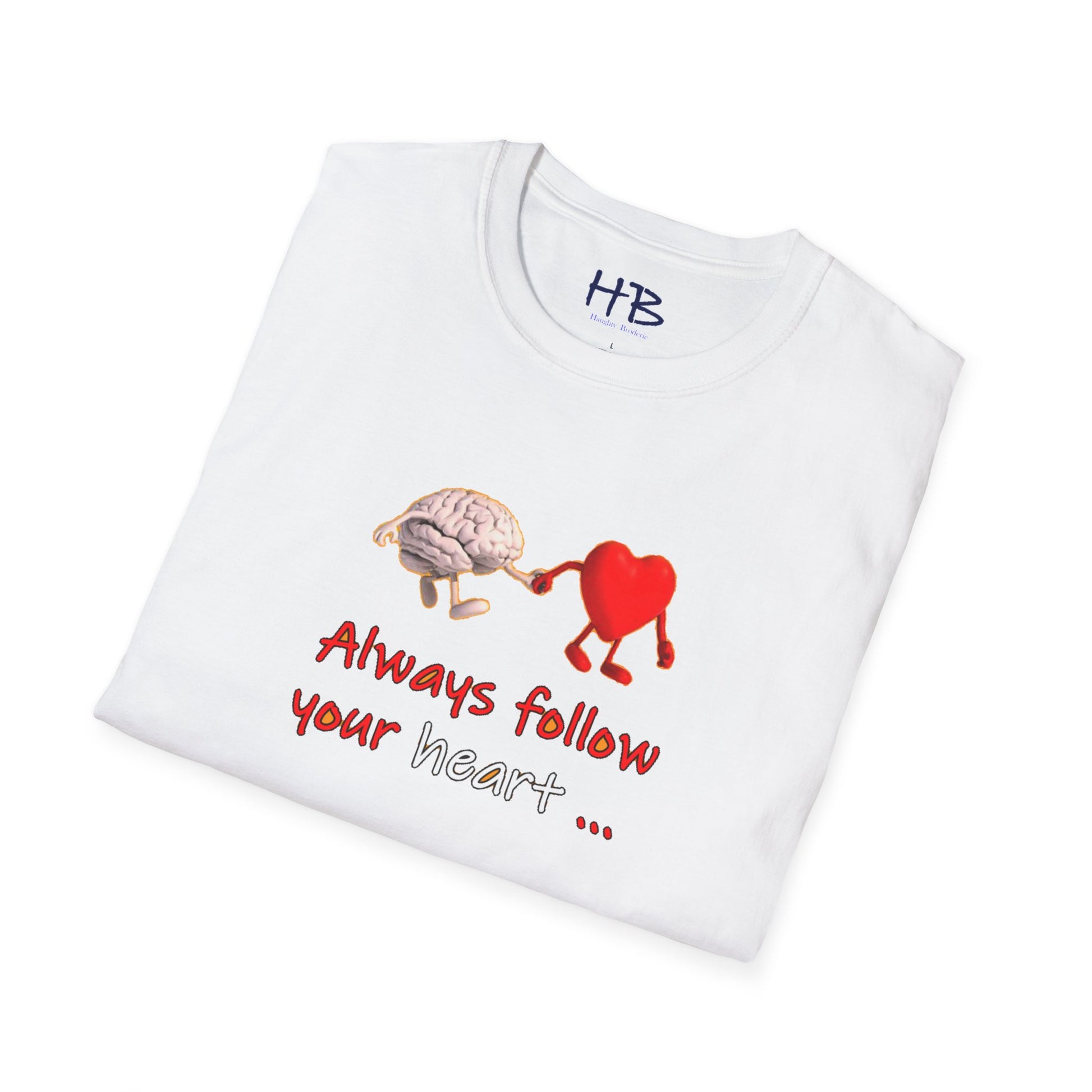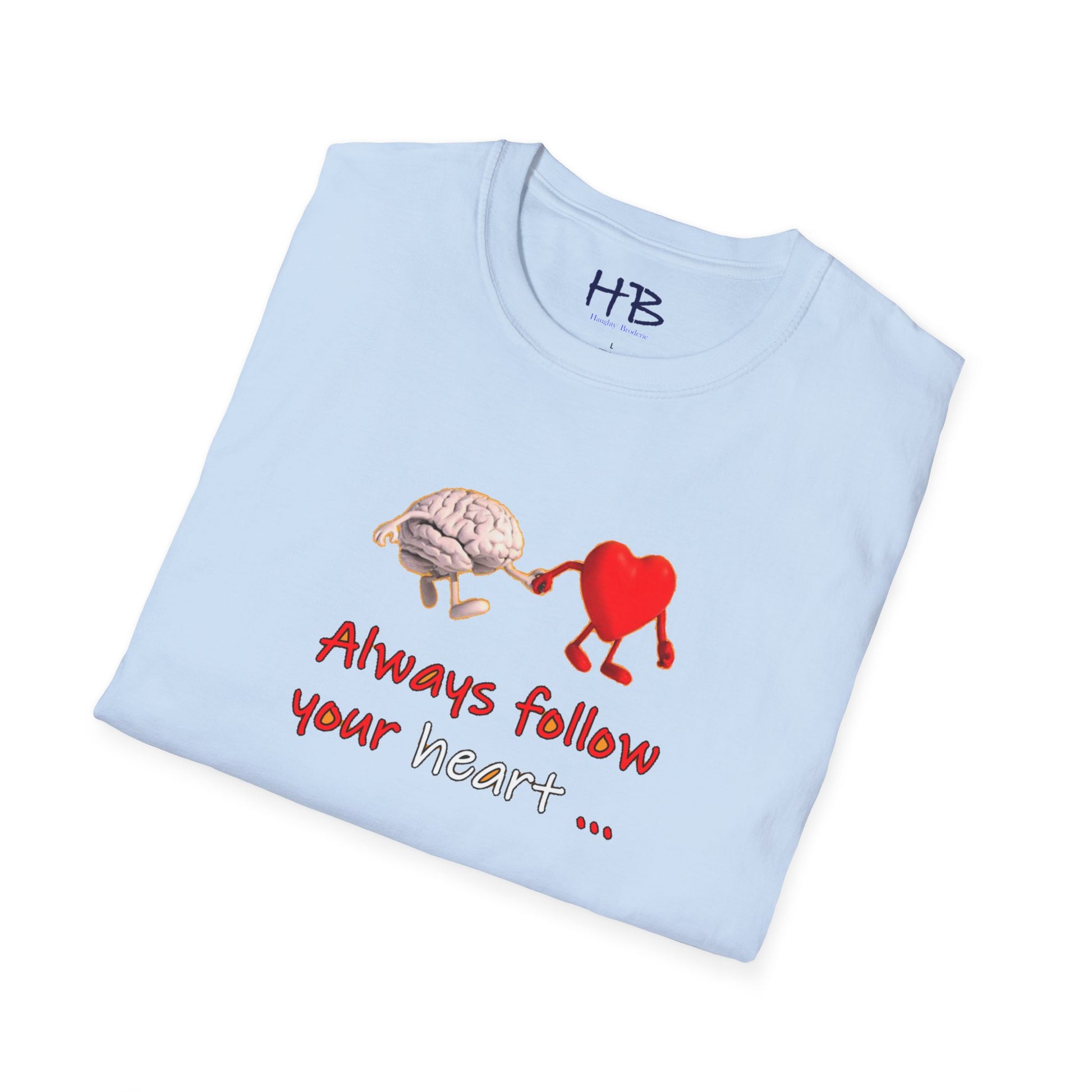 Step into a world where fashion becomes a medium for inspiration, where style and substance intertwine effortlessly. Choose our tee shirt adorned with a captivating image of a heart guiding a brain, and embark on a journey of self-discovery and transformation. Embrace the power of balanced decision-making and inspire those around you to follow their heart while taking their brain along for the ride. This tee shirt is not merely a garment; it is a statement of purpose, a symbol of empowerment, and a catalyst for change.