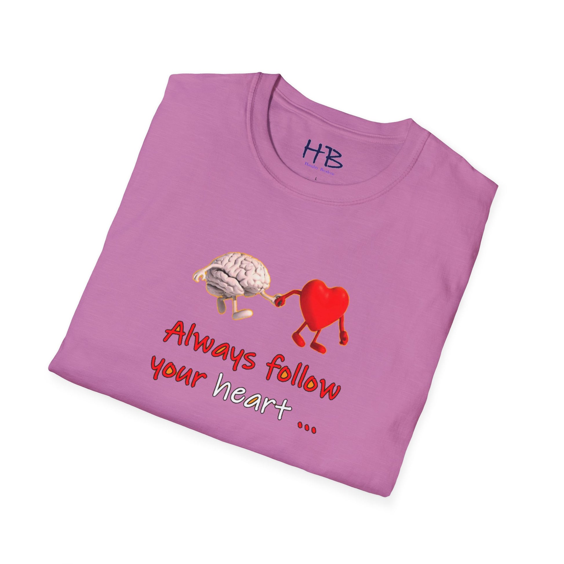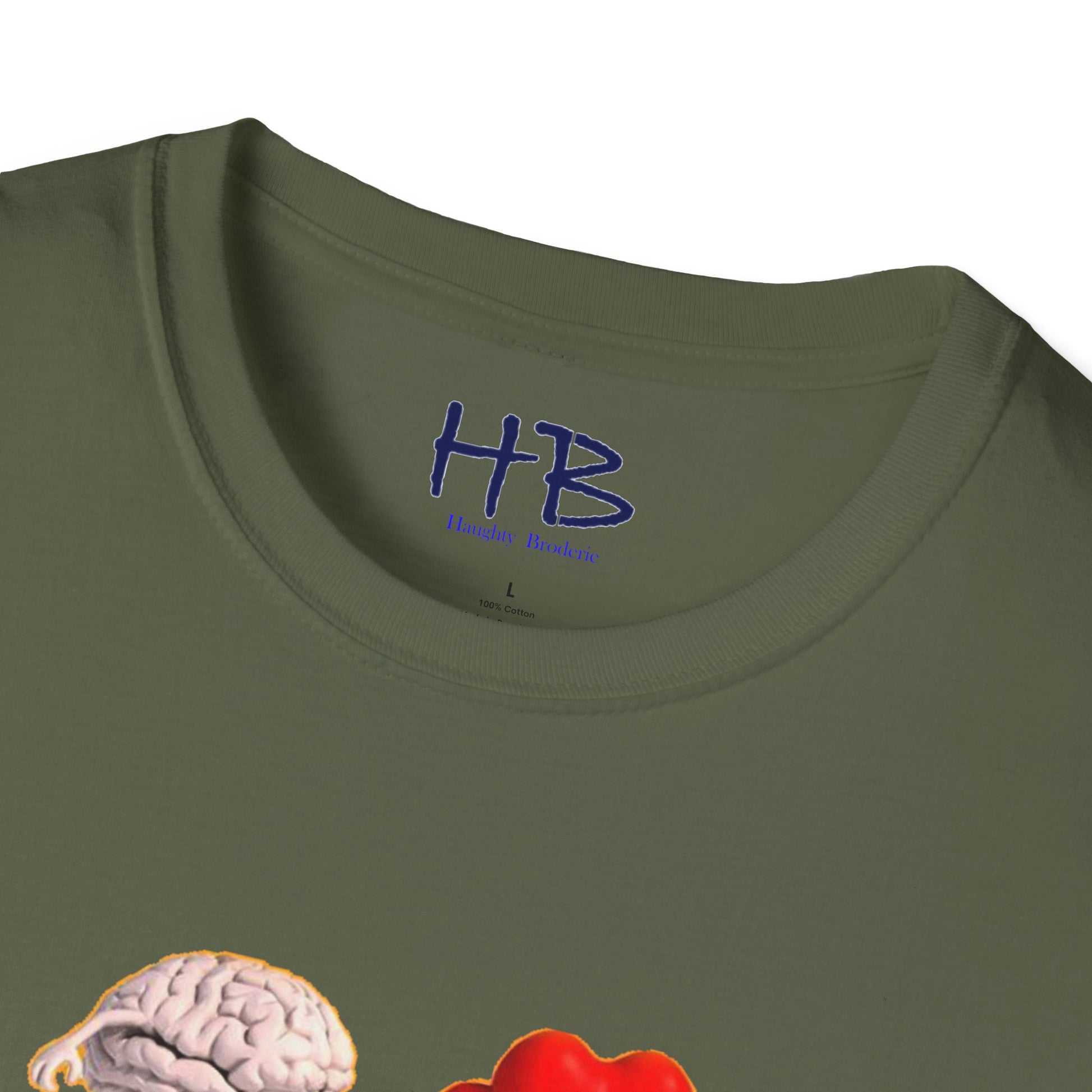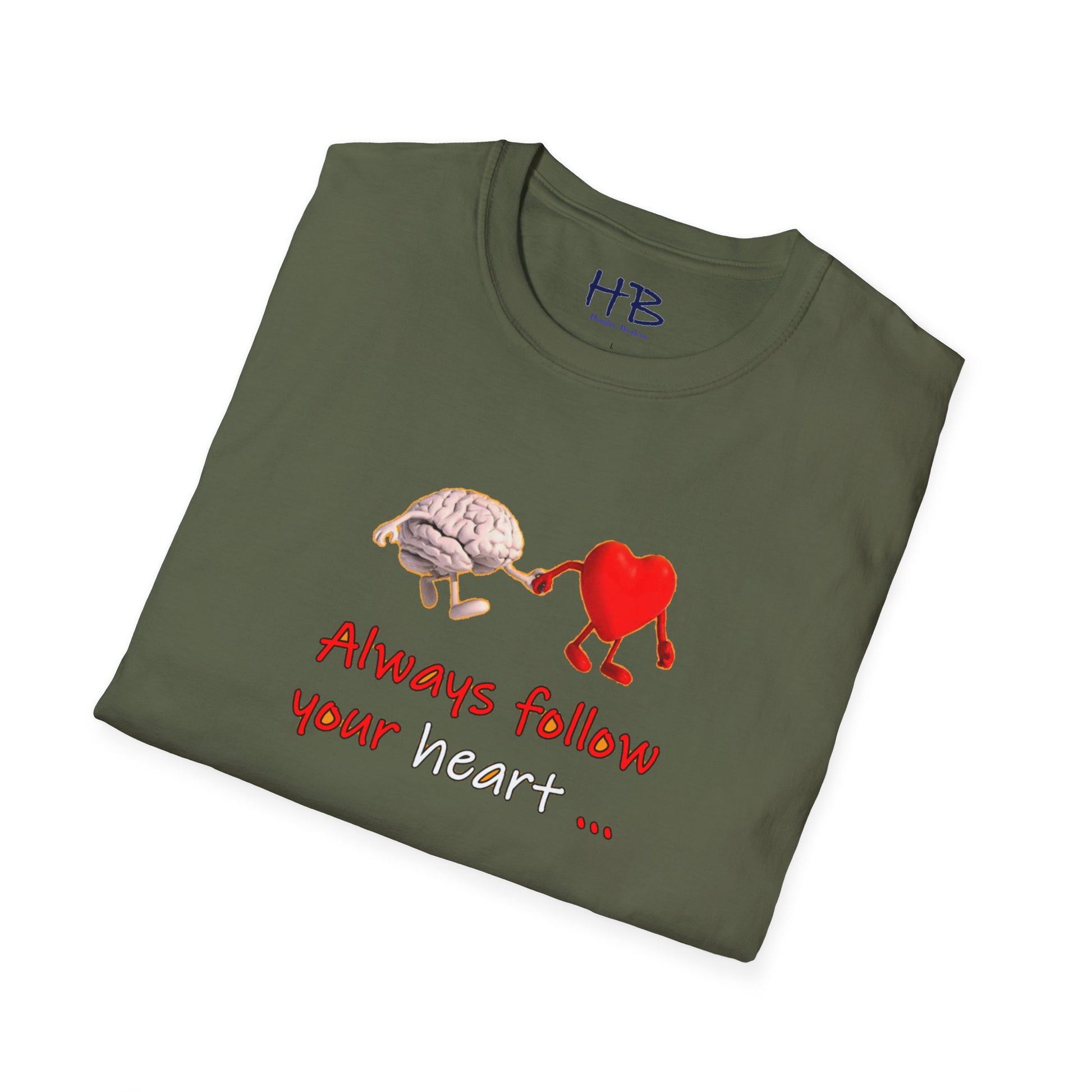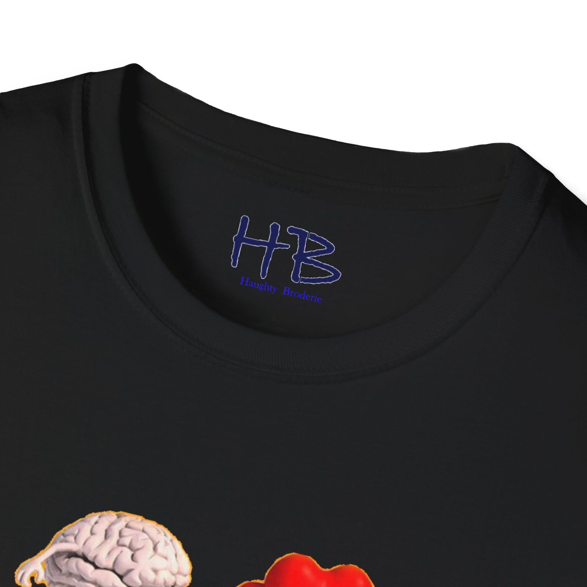 Step into a world where fashion becomes a medium for inspiration, where style and substance intertwine effortlessly. Choose our tee shirt adorned with a captivating image of a heart guiding a brain, and embark on a journey of self-discovery and transformation. Embrace the power of balanced decision-making and inspire those around you to follow their heart while taking their brain along for the ride. This tee shirt is not merely a garment; it is a statement of purpose, a symbol of empowerment, and a catalyst for change.