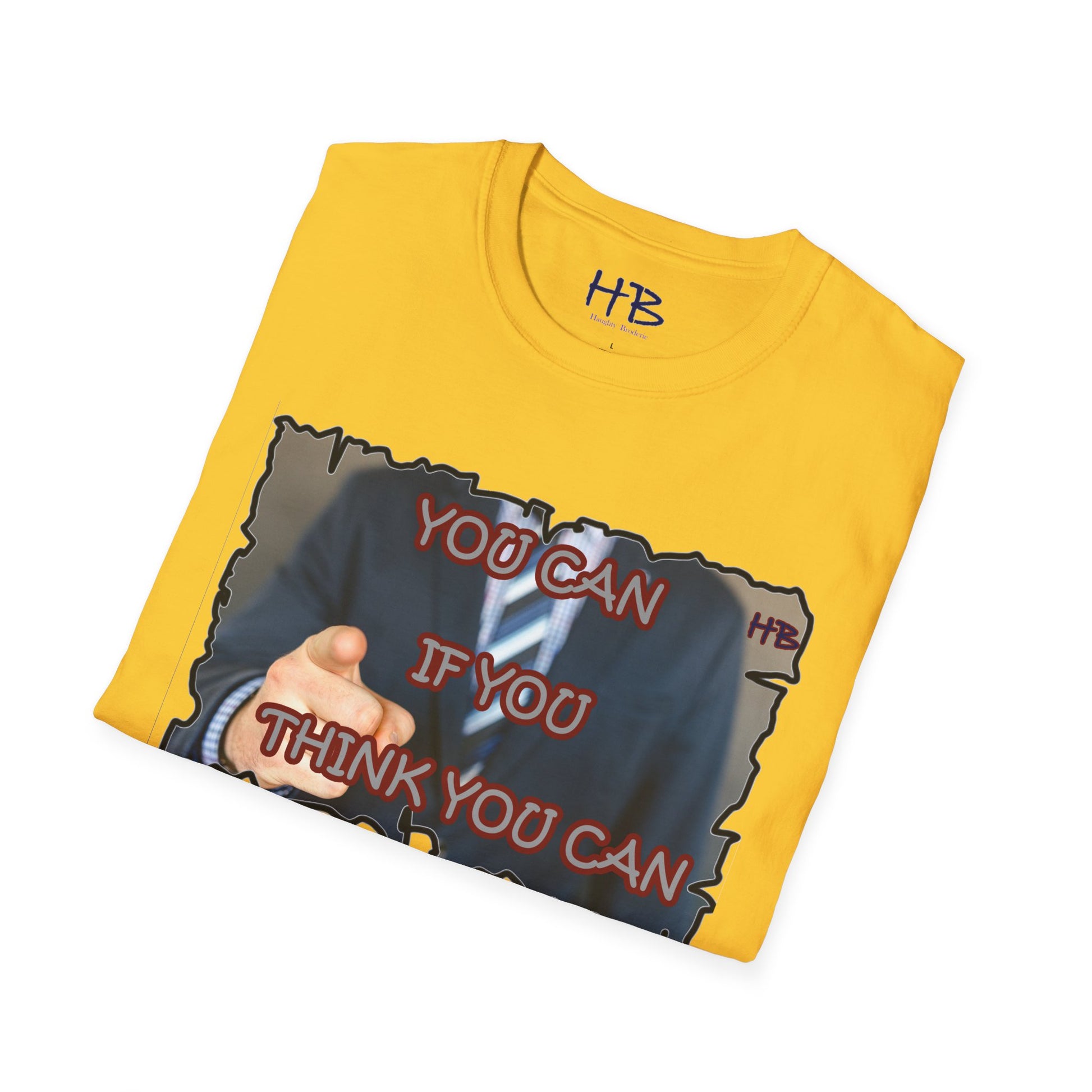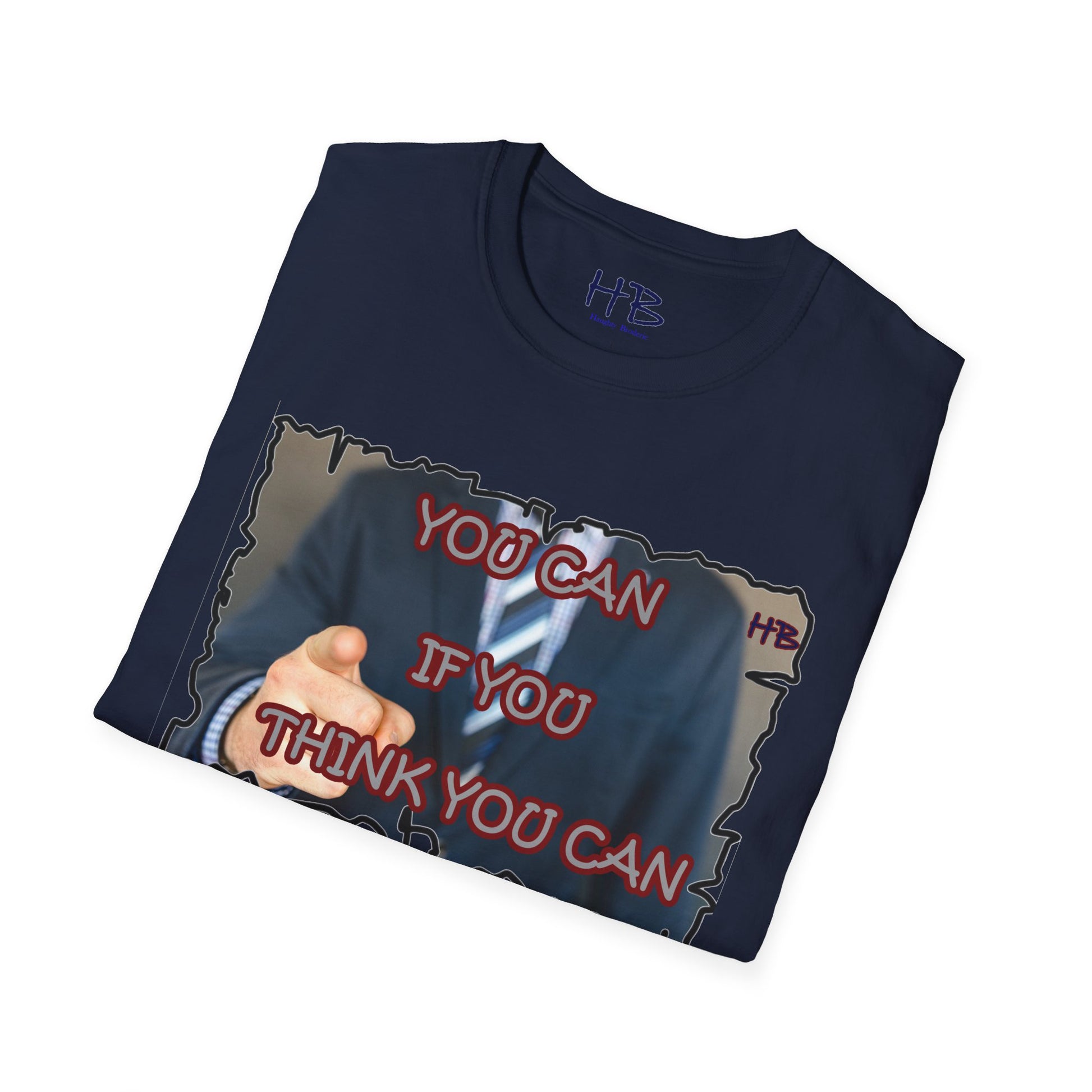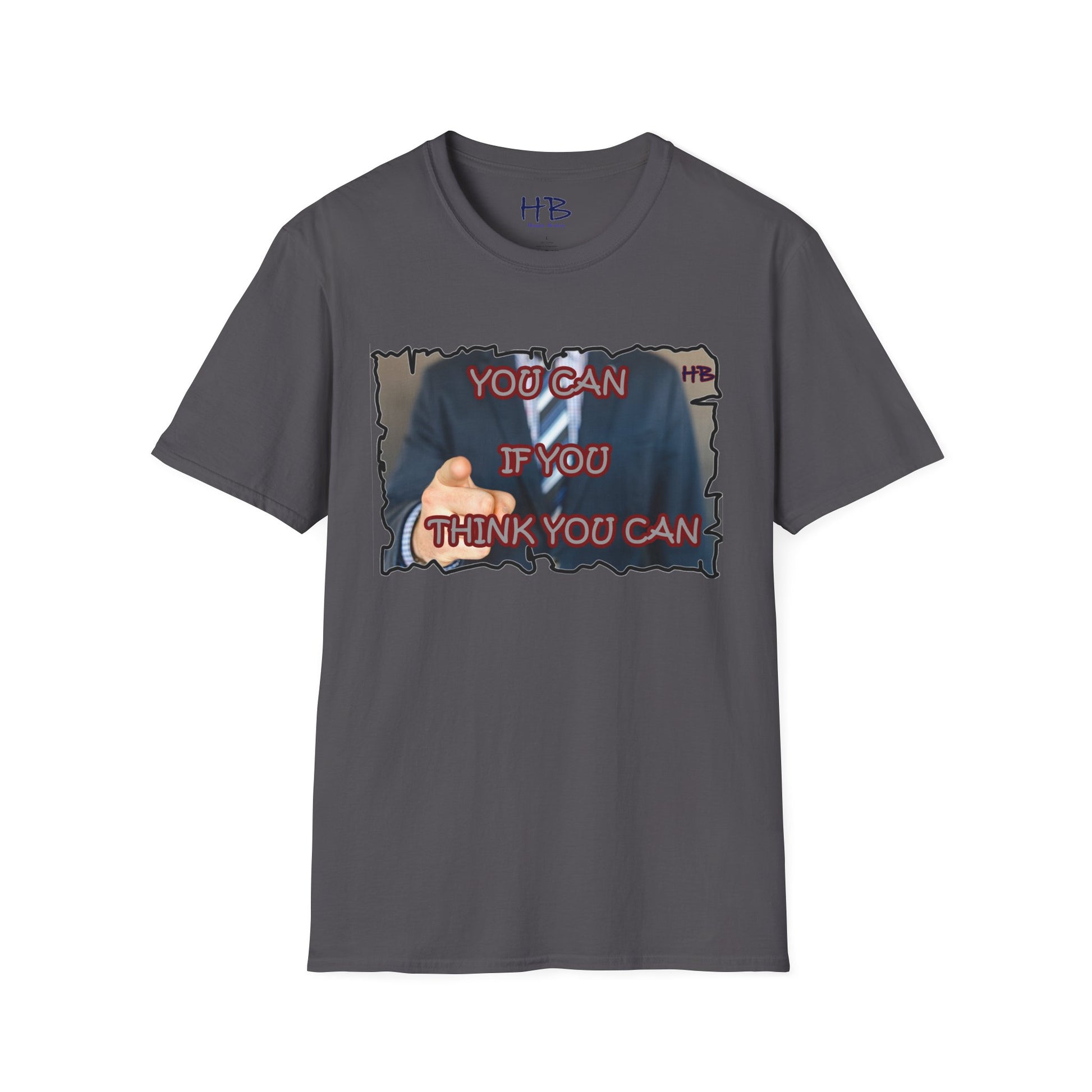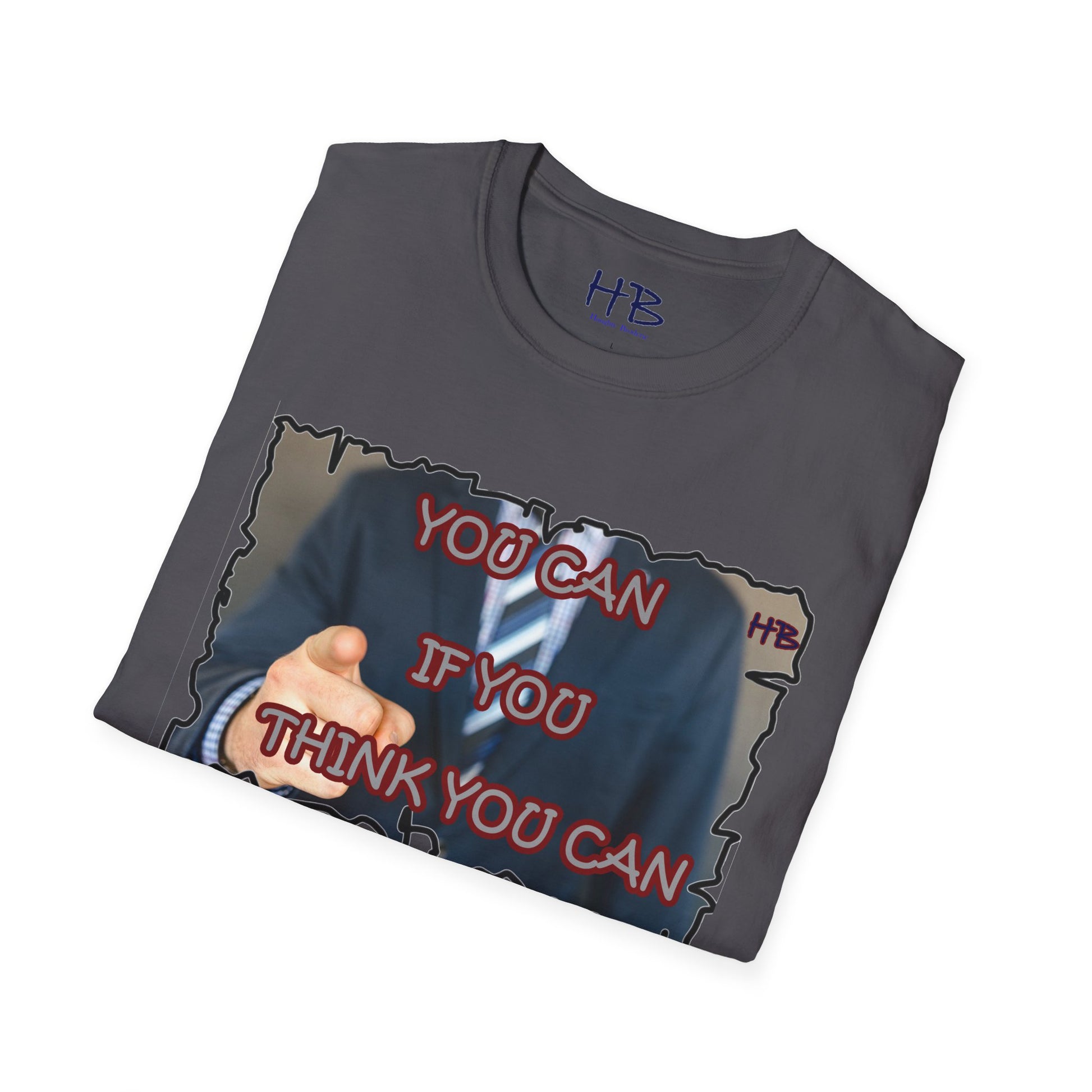 Introducing our empowering garment featuring a captivating image of a sharp-dressed businessman confidently pointing at you, accompanied by the powerful phrase, "You can if you think you can." This motivational quote serves as a constant reminder that with the right mindset and unwavering belief in oneself, there are no limits to what you can achieve.