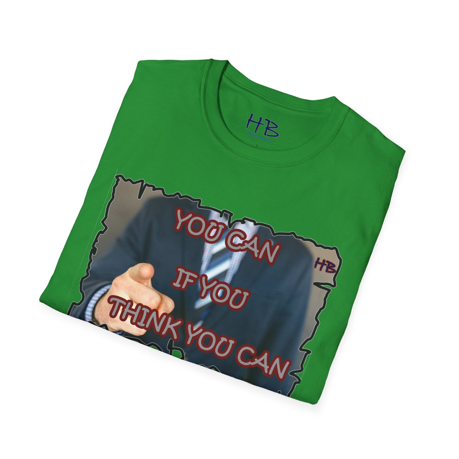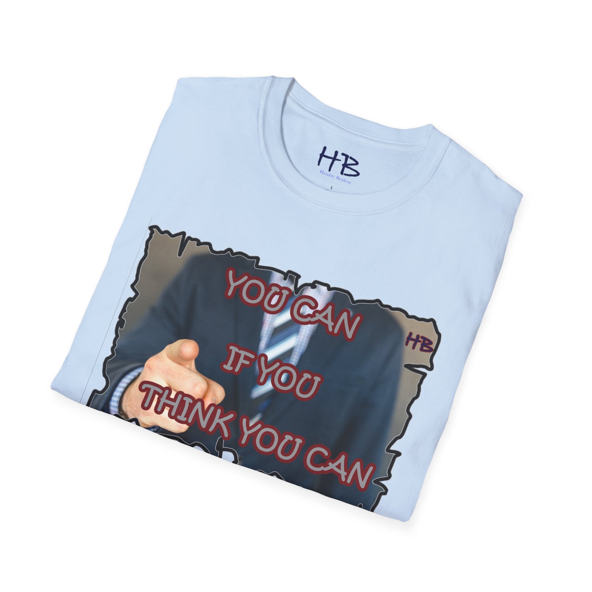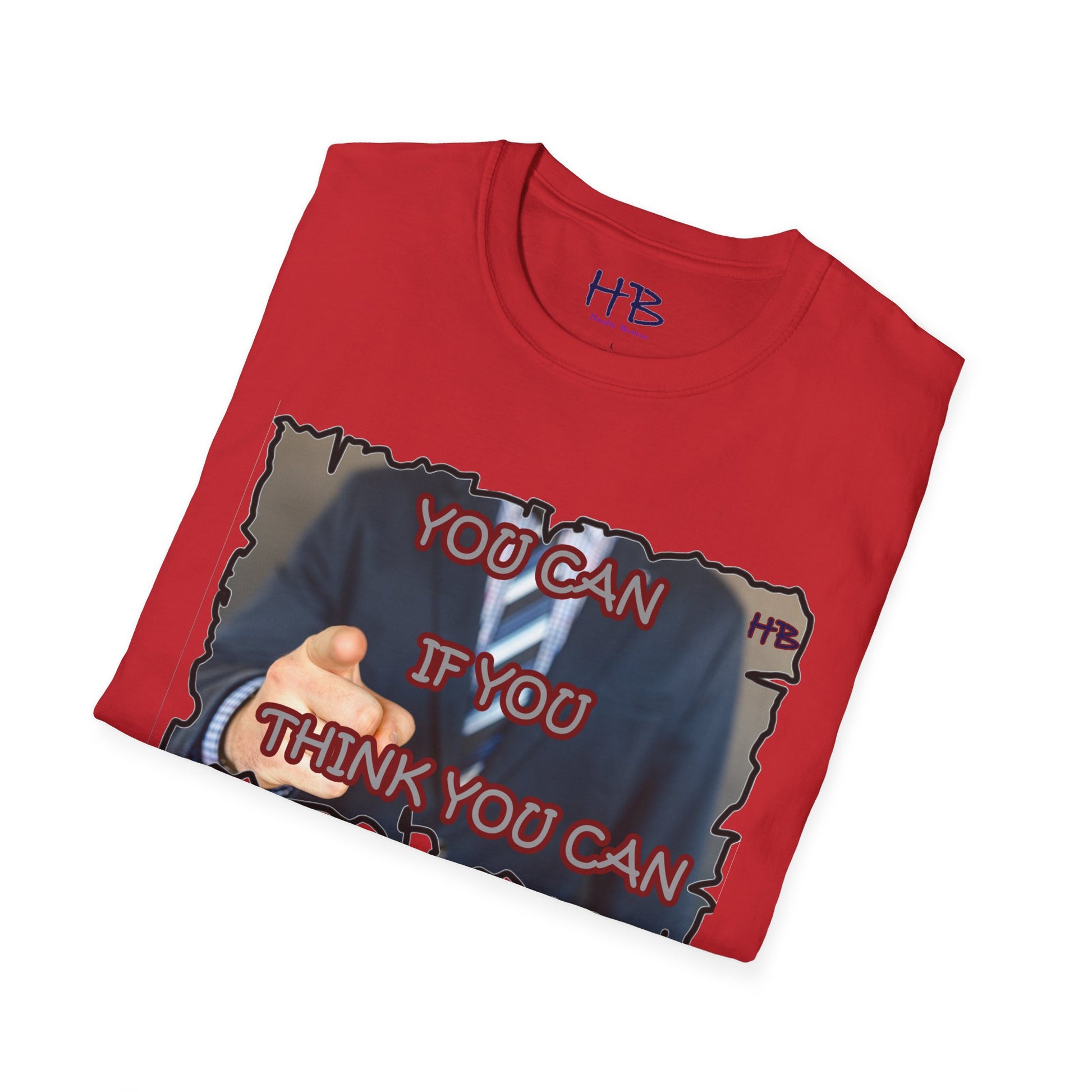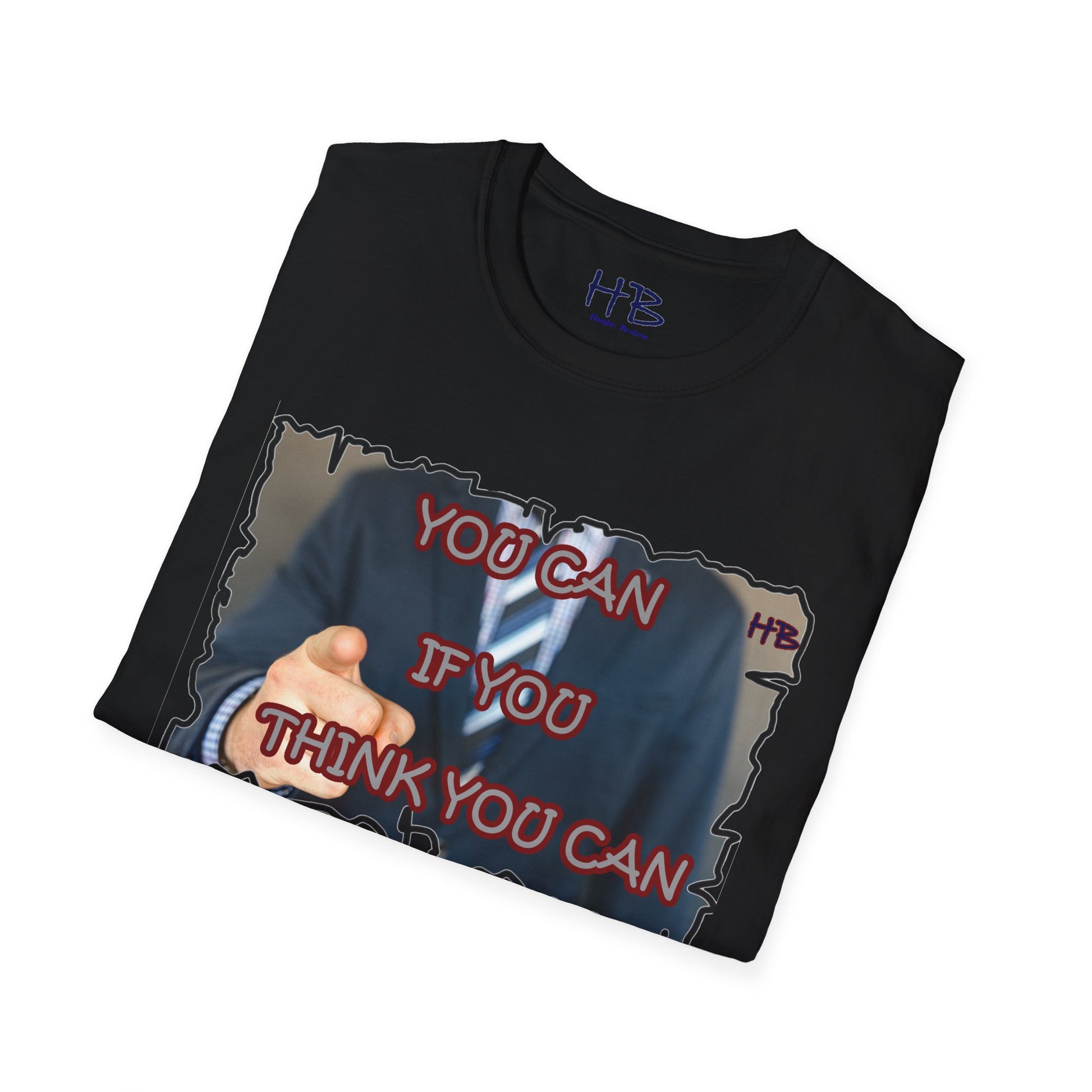 Introducing our empowering garment featuring a captivating image of a sharp-dressed businessman confidently pointing at you, accompanied by the powerful phrase, "You can if you think you can." This motivational quote serves as a constant reminder that with the right mindset and unwavering belief in oneself, there are no limits to what you can achieve.
