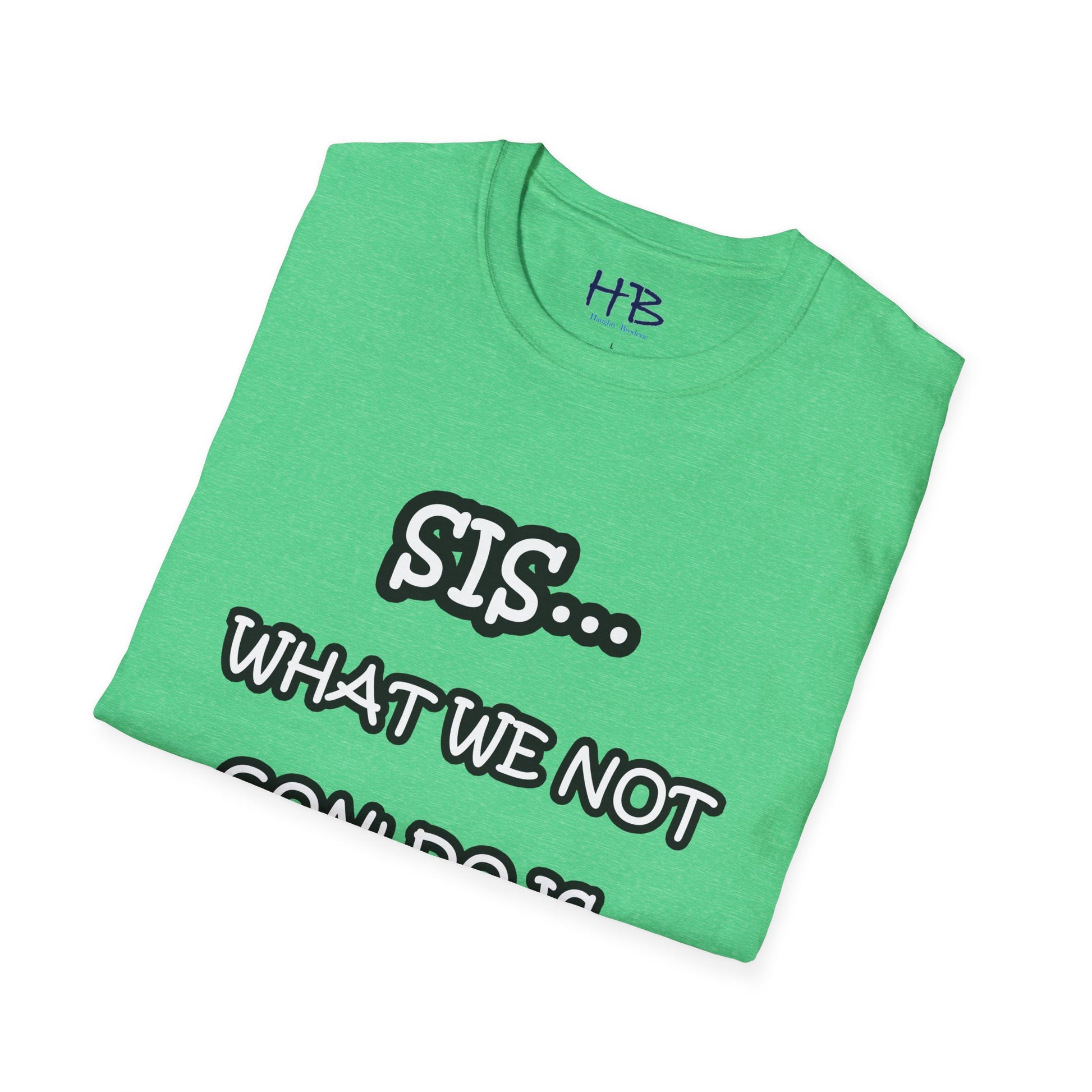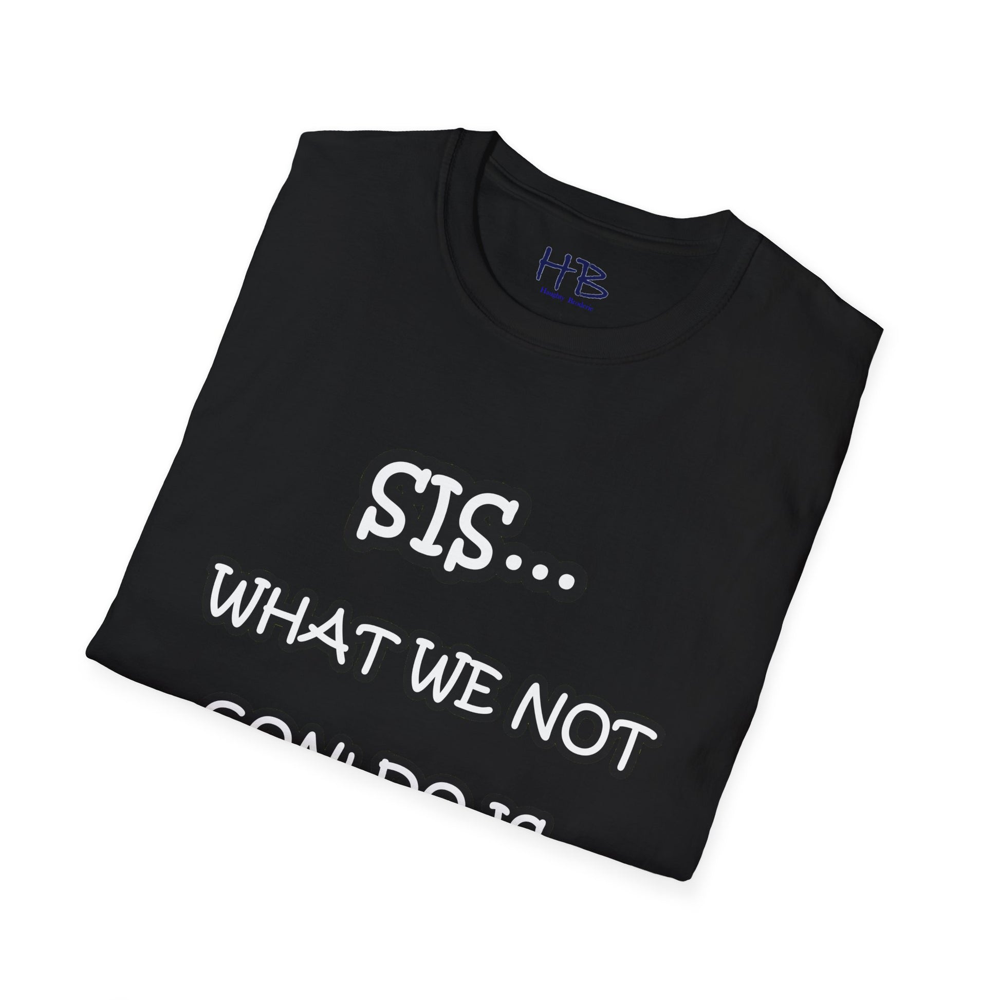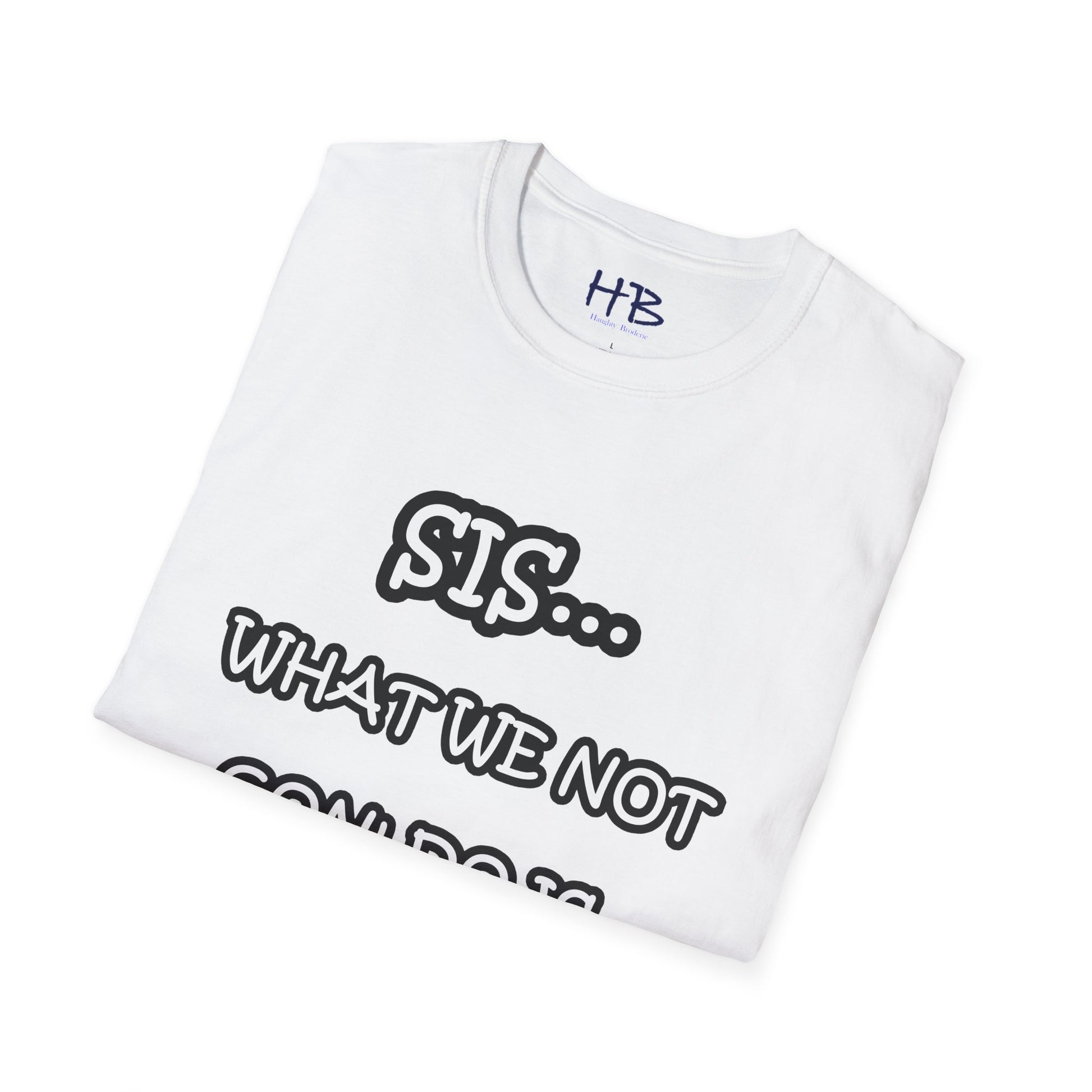 In a world brimming with challenges and obstacles, it's crucial to have a constant reminder of our unwavering spirit. Our new arrival showcases the phrase "Sis... WHAT WE NOT GON' DO IS GIVE UP" in a stylish and bold font, serving as an anthem of perseverance. This shirt is more than just fabric; it's a symbol of fortitude that every individual needs in their wardrobe.