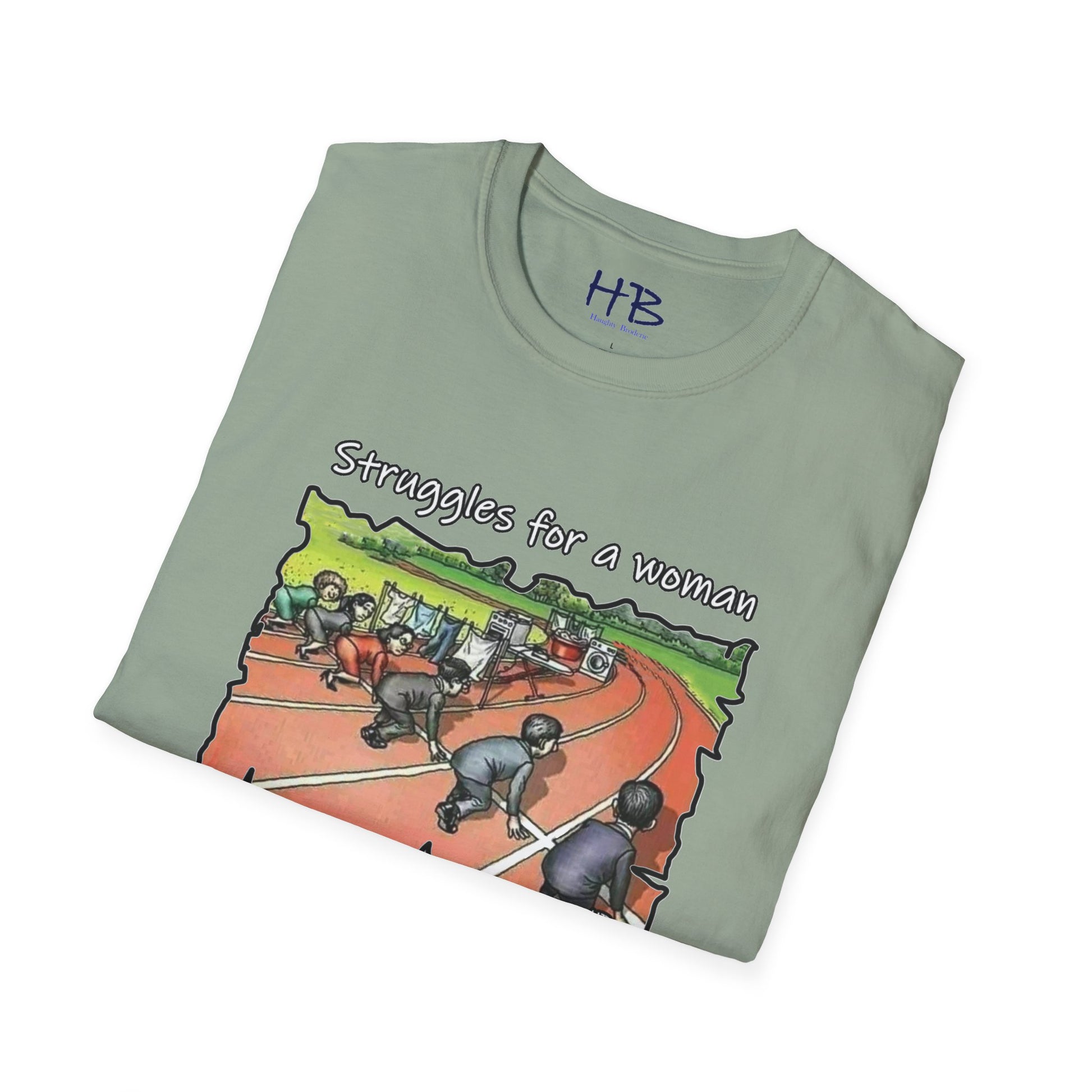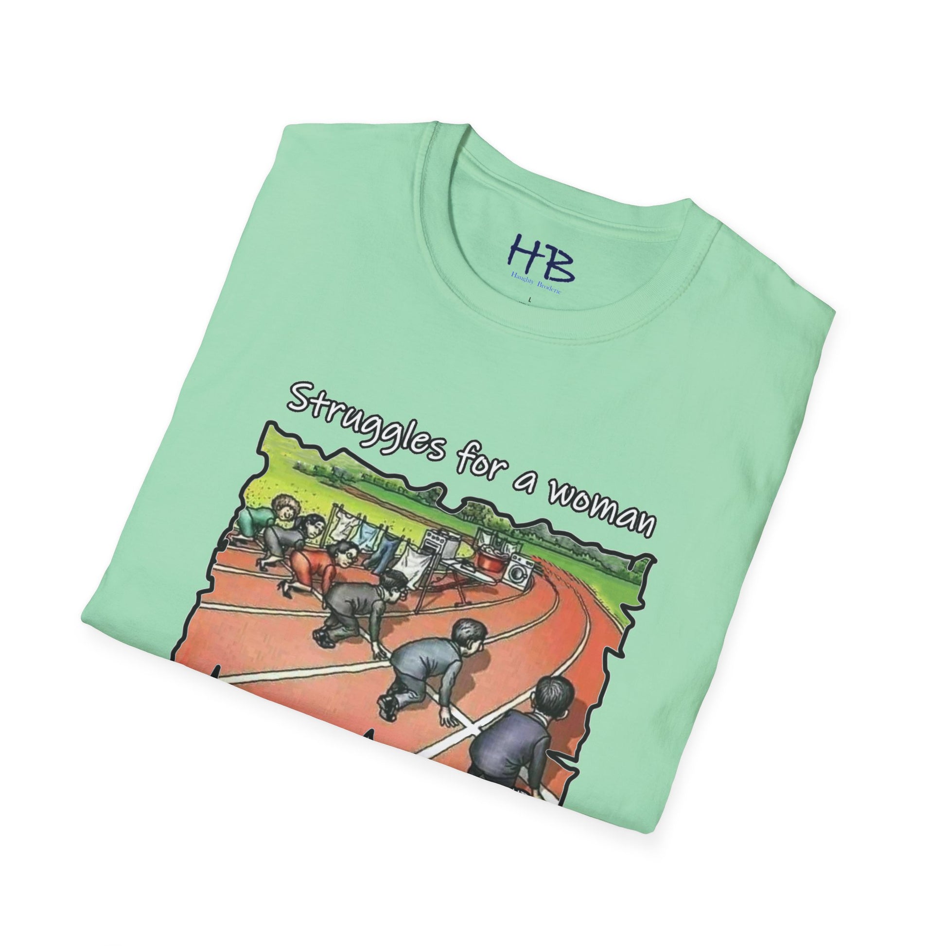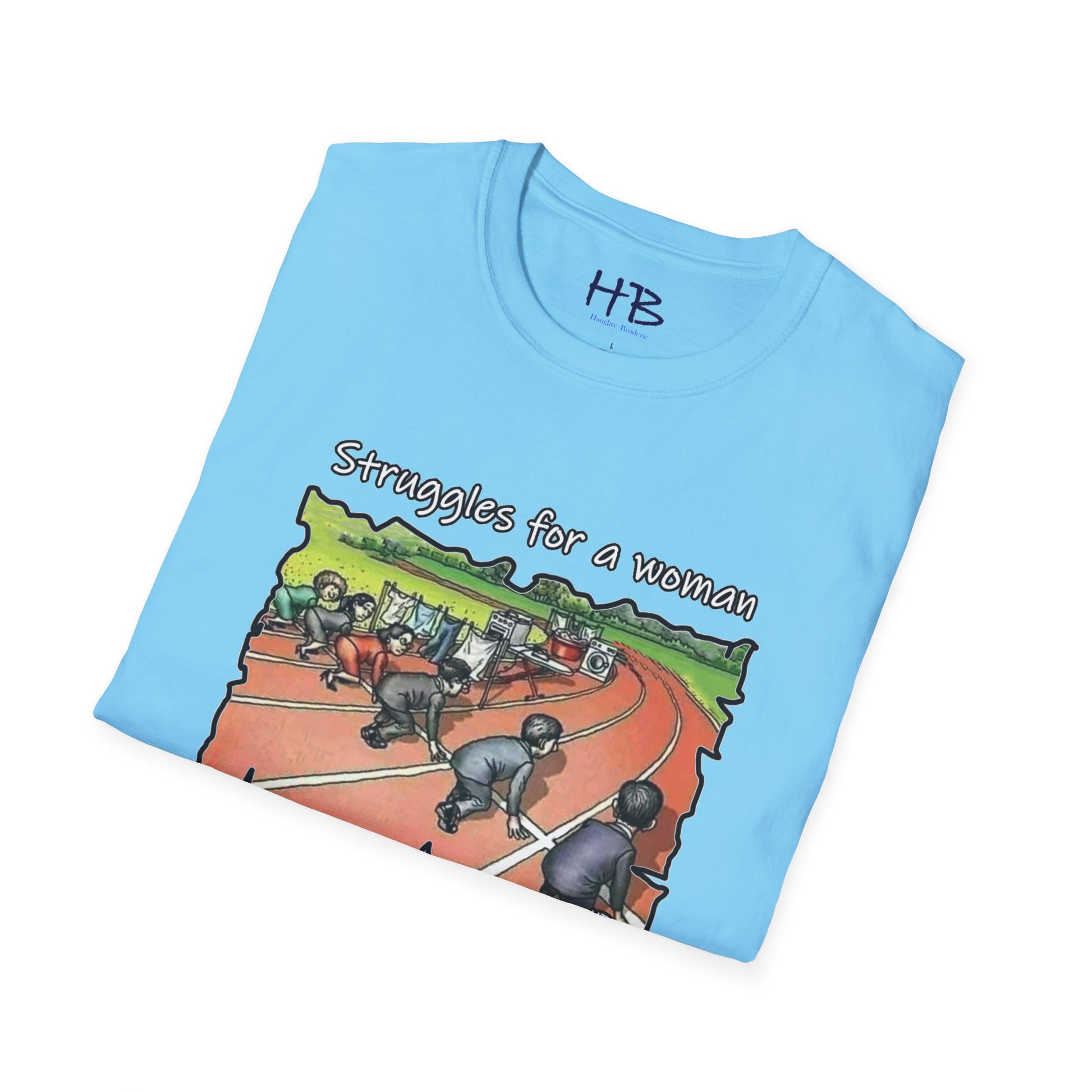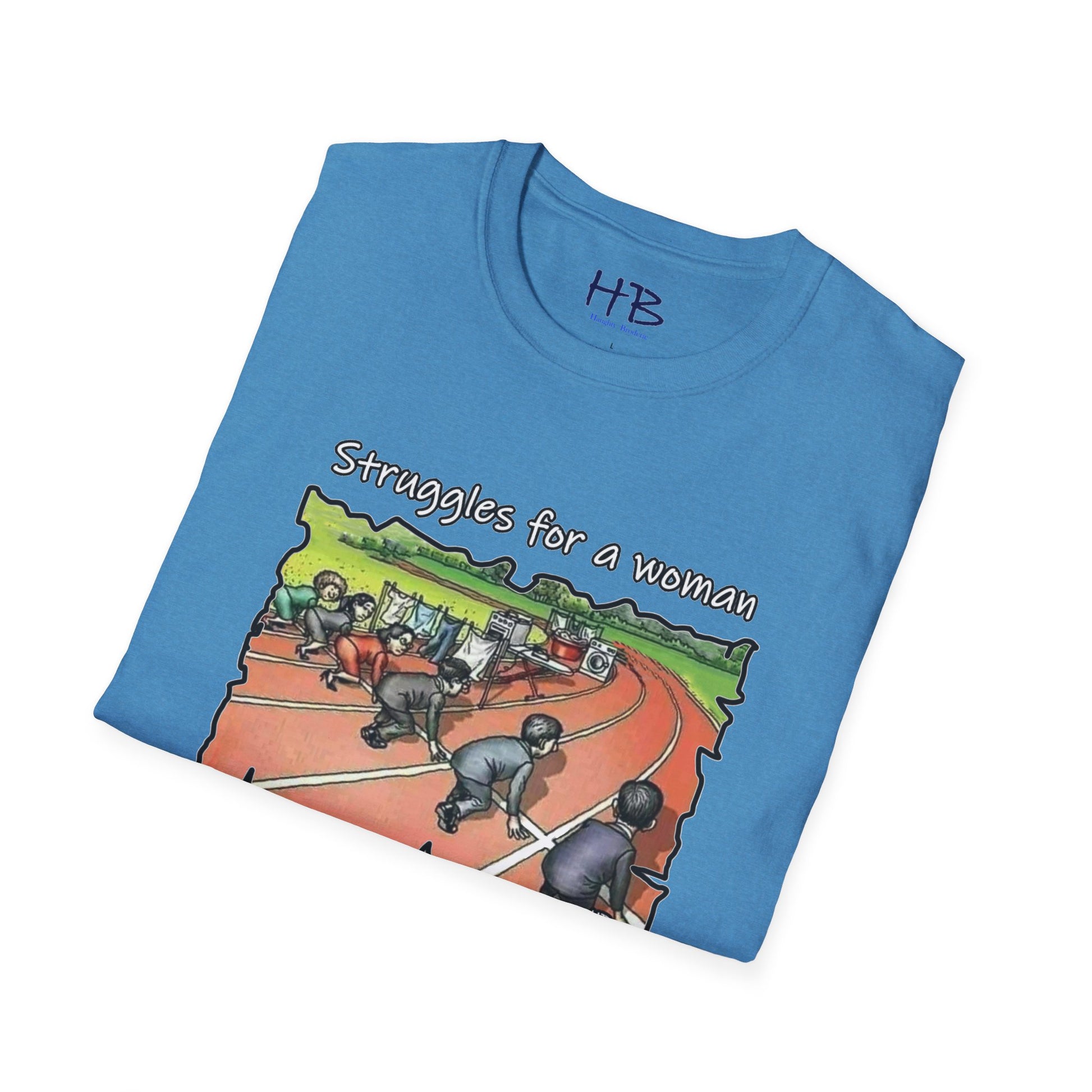 Wearing this tee shirt becomes a statement, a proclamation of solidarity with the journey of women striving to achieve their goals. The person adorned in this unique garment not only embodies empathy and understanding but also becomes a visual advocate for equality and recognition of the unique struggles faced by women.
