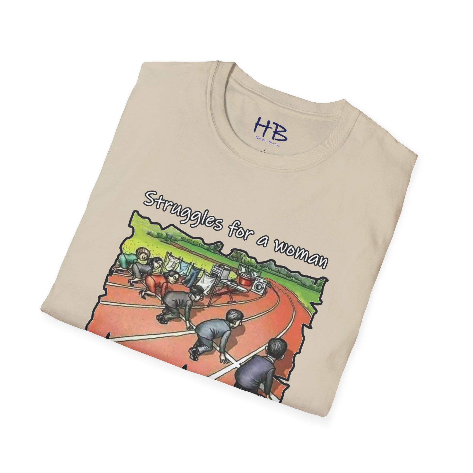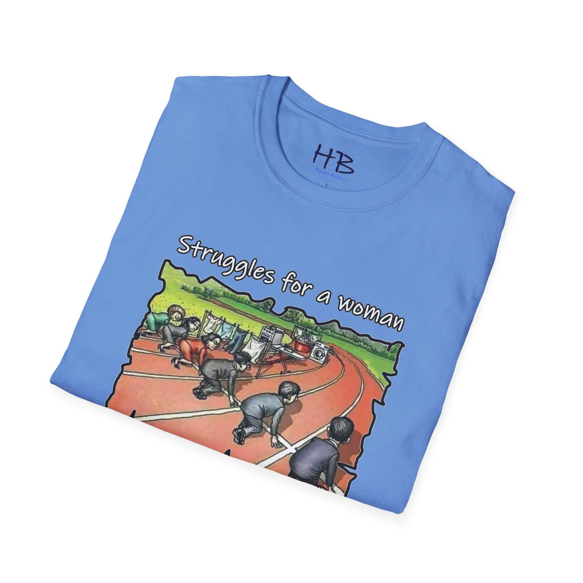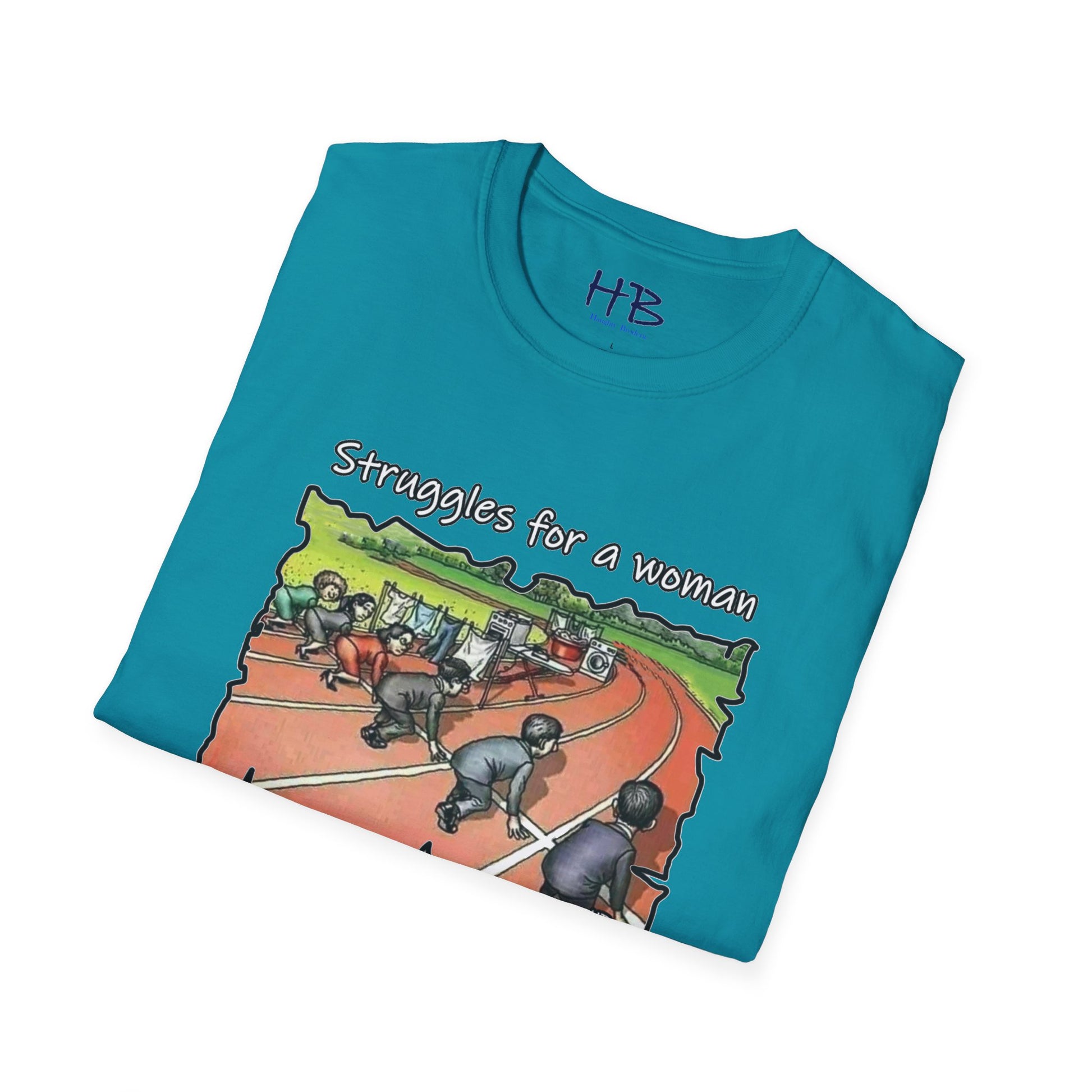Wearing this tee shirt becomes a statement, a proclamation of solidarity with the journey of women striving to achieve their goals. The person adorned in this unique garment not only embodies empathy and understanding but also becomes a visual advocate for equality and recognition of the unique struggles faced by women.