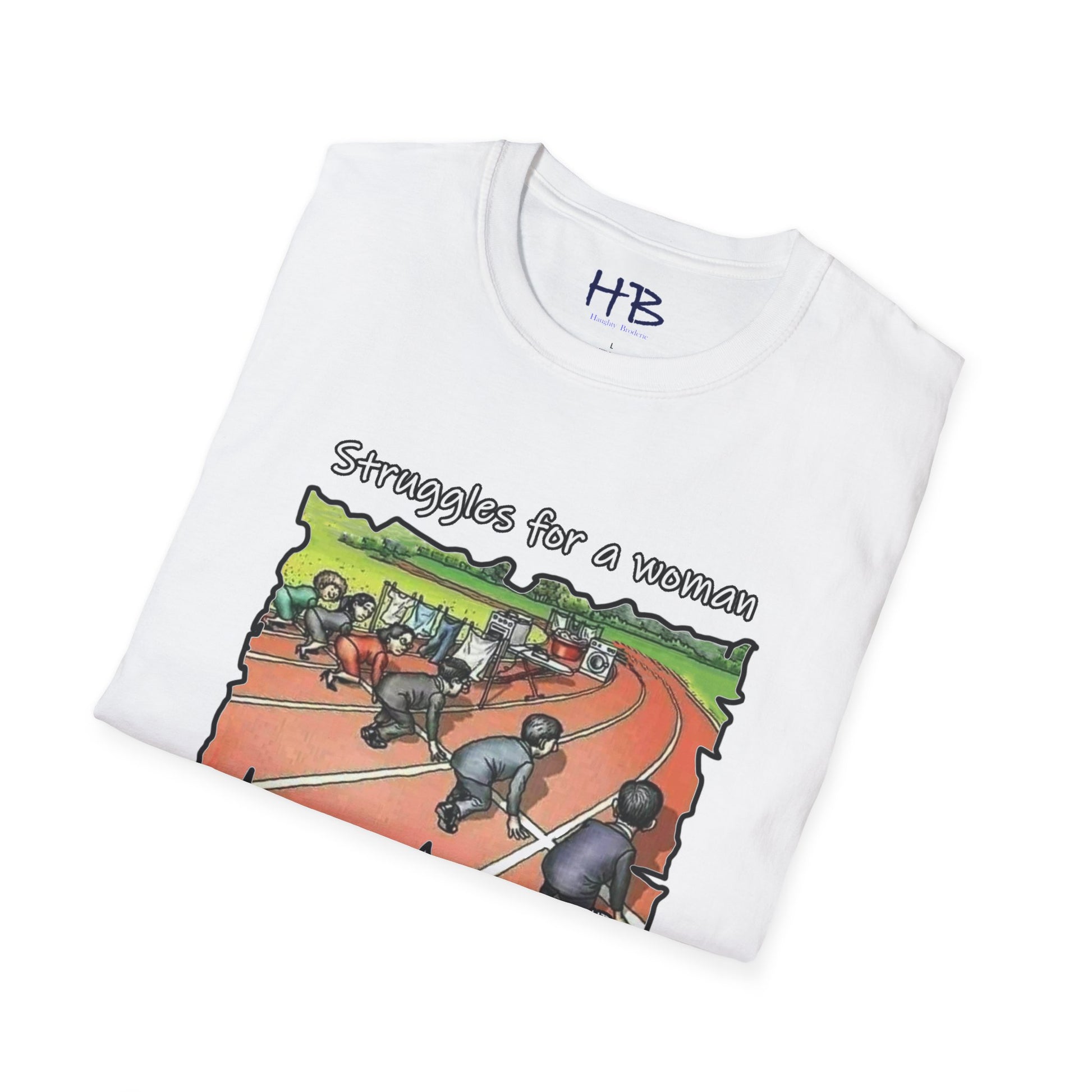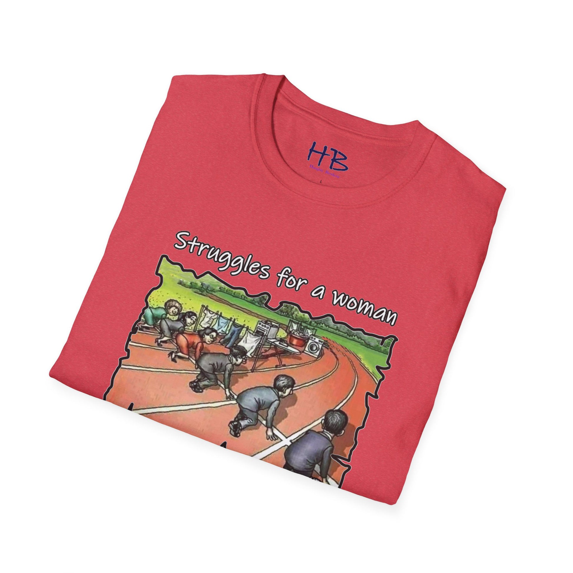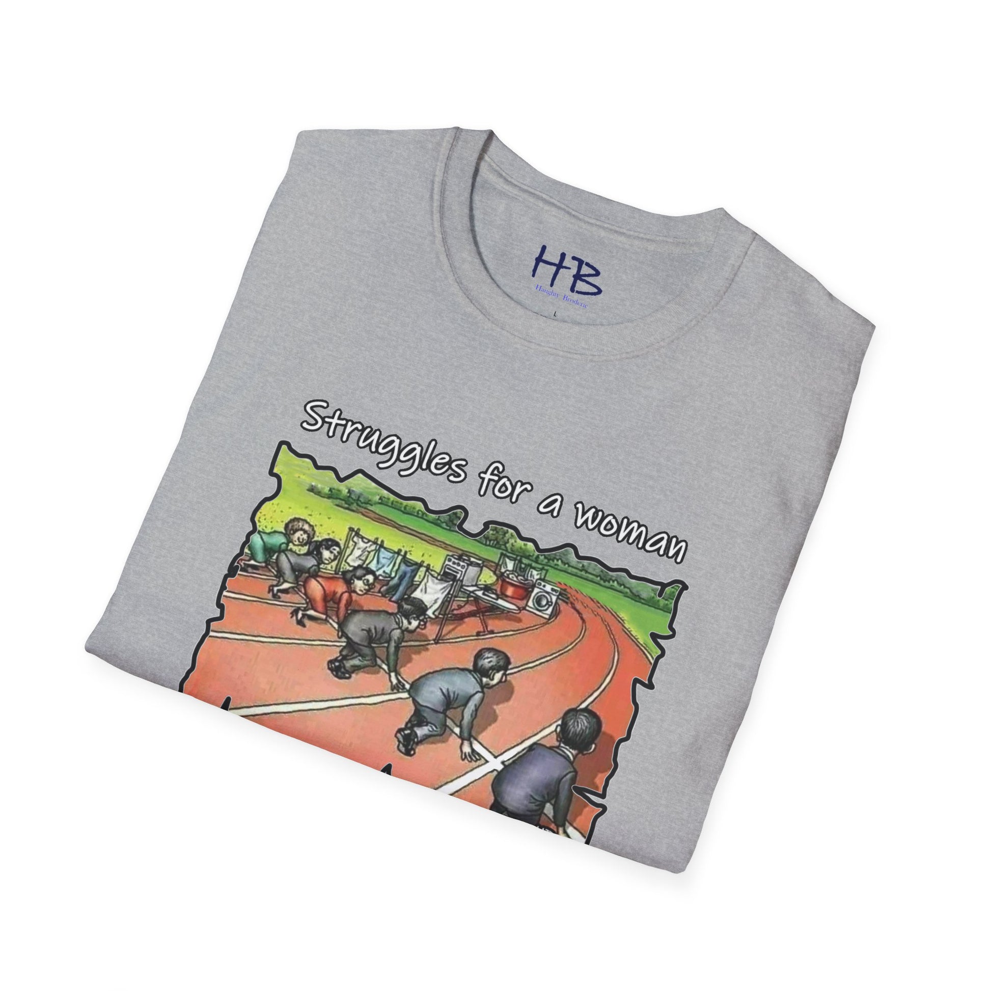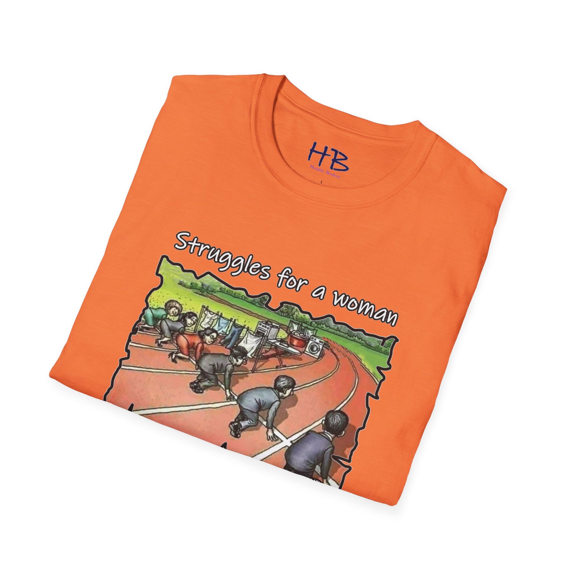 Wearing this tee shirt becomes a statement, a proclamation of solidarity with the journey of women striving to achieve their goals. The person adorned in this unique garment not only embodies empathy and understanding but also becomes a visual advocate for equality and recognition of the unique struggles faced by women.