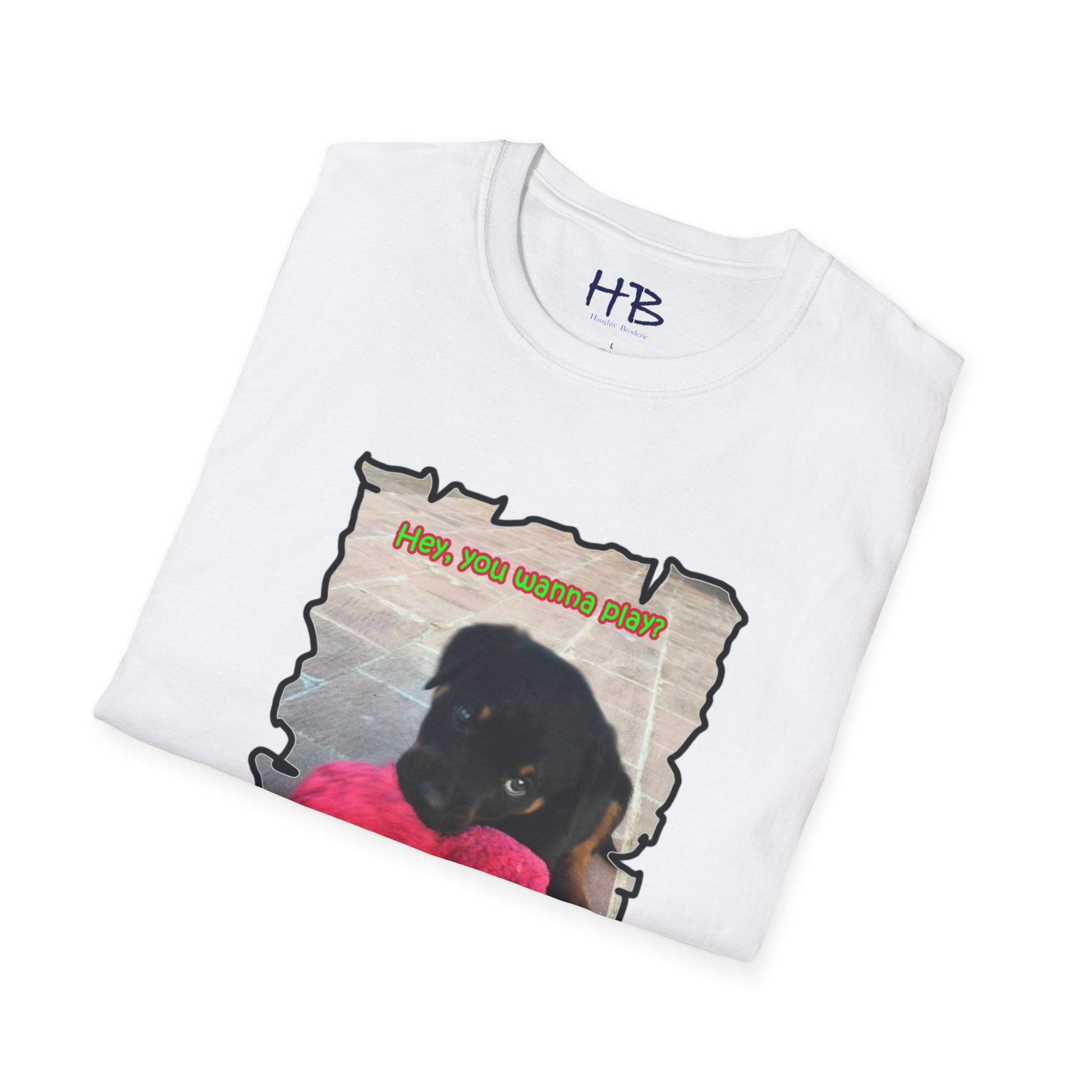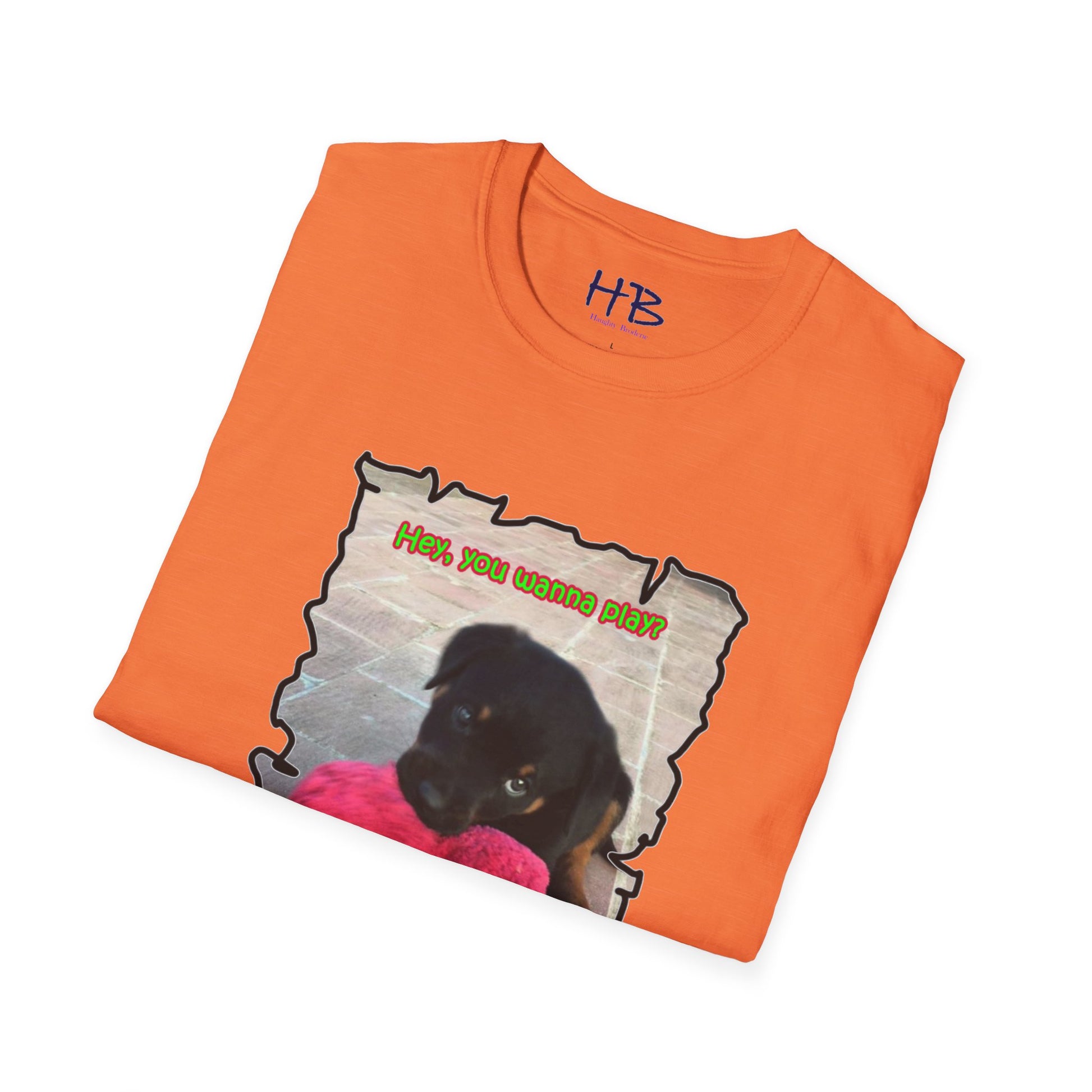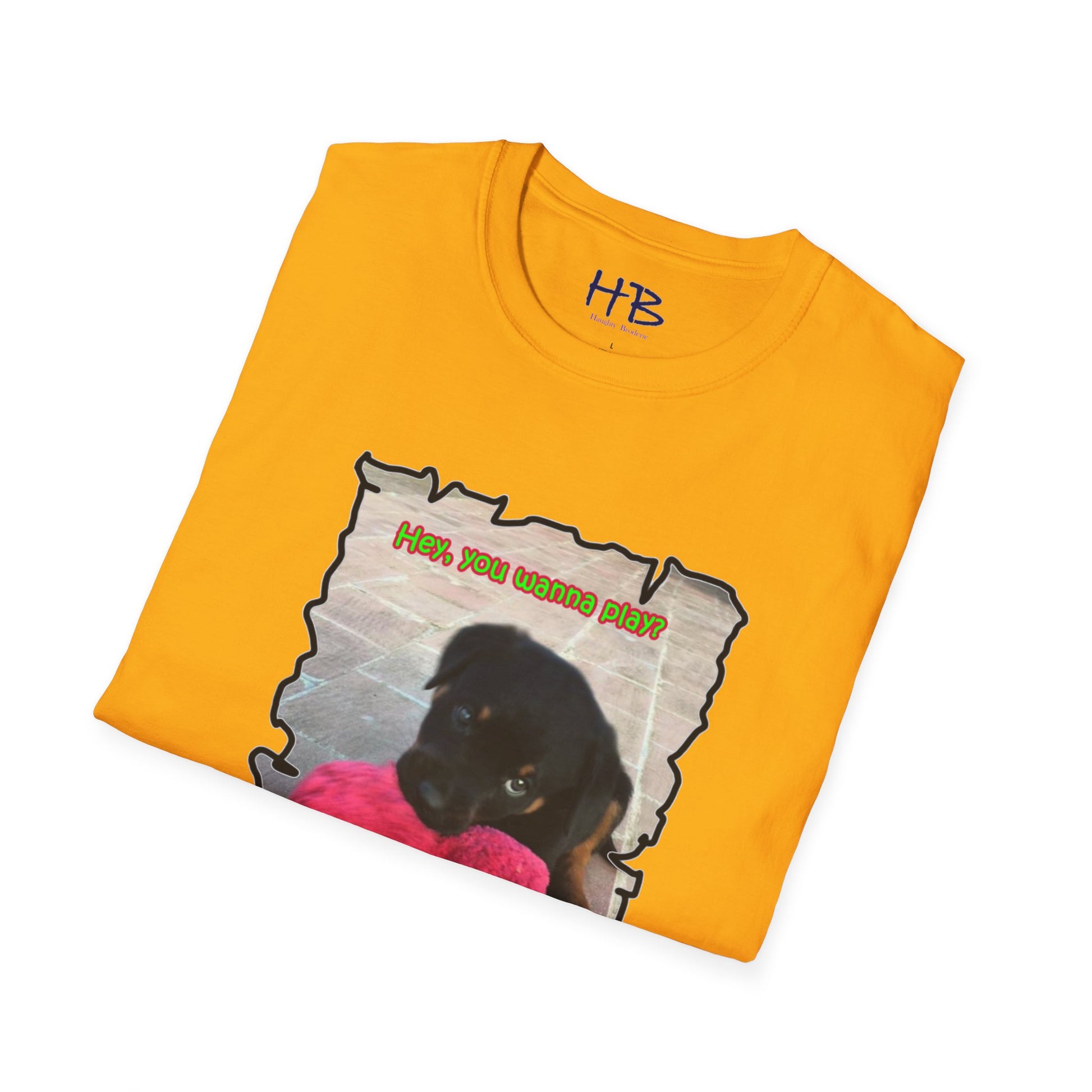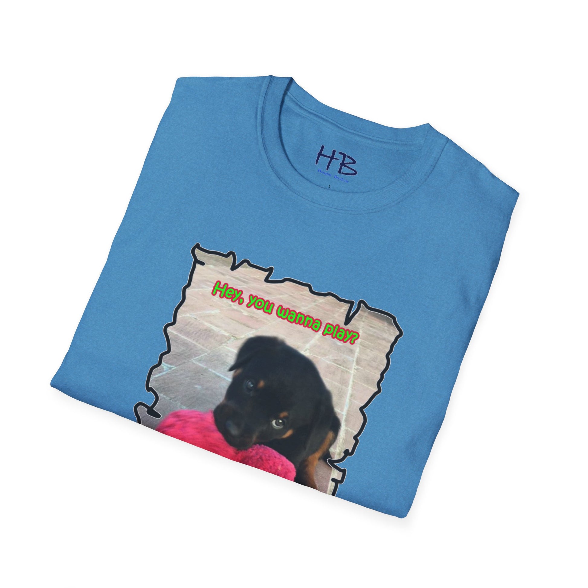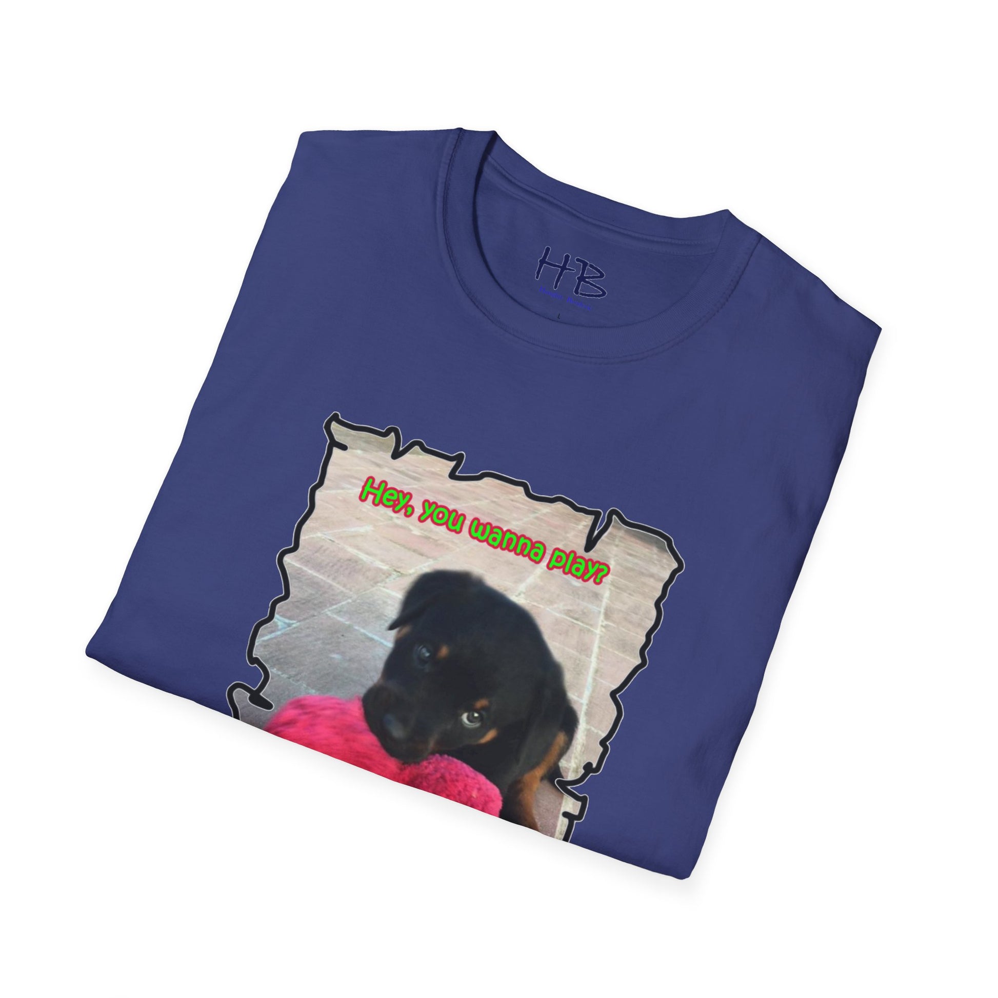 The captivating text accompanying the image—"Hey, you wanna play?"—adds a touch of delightful playfulness, inviting everyone around you to embrace their inner child and experience the joy of shared laughter and boundless enthusiasm.