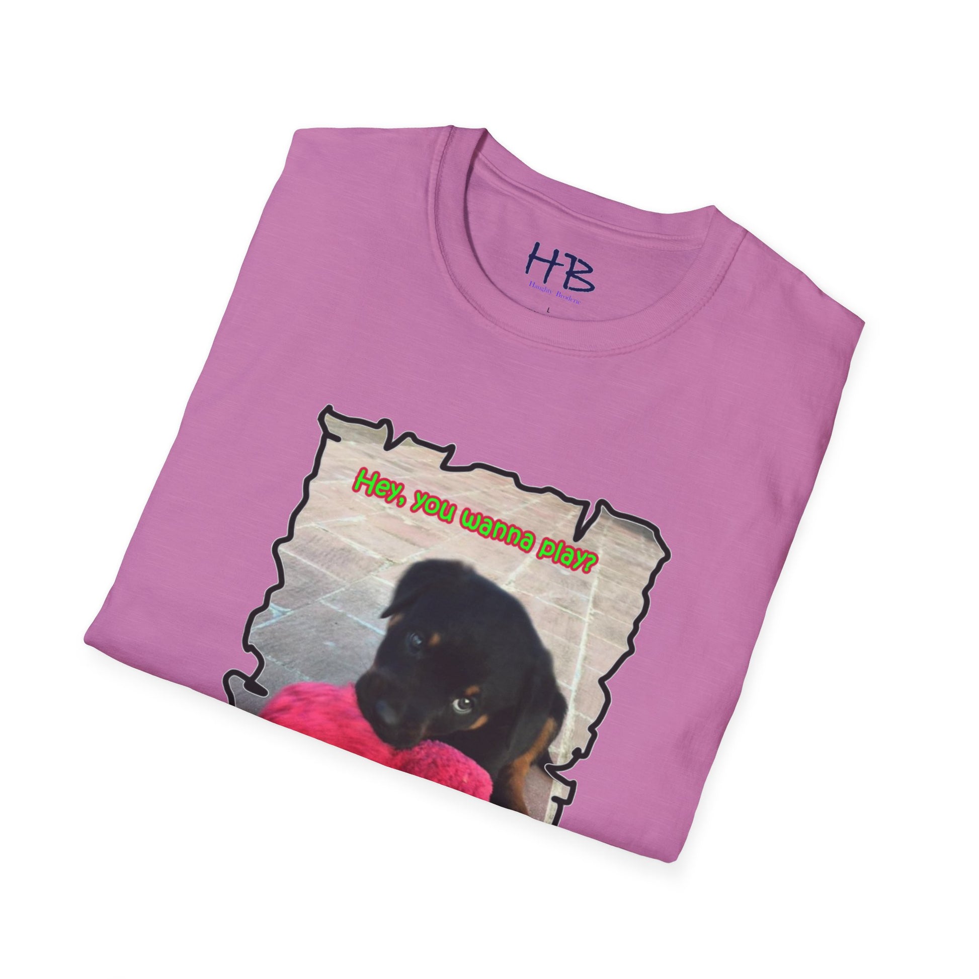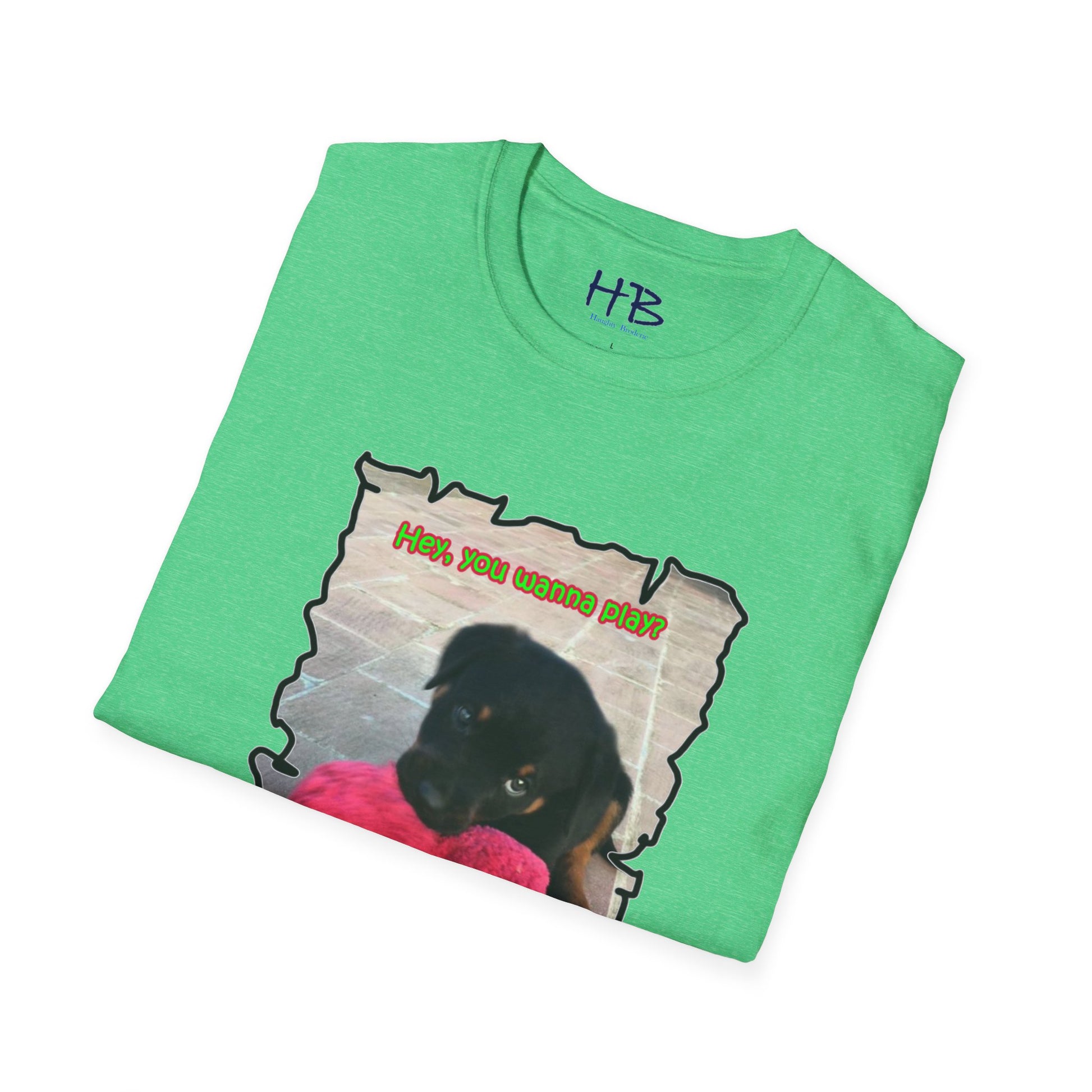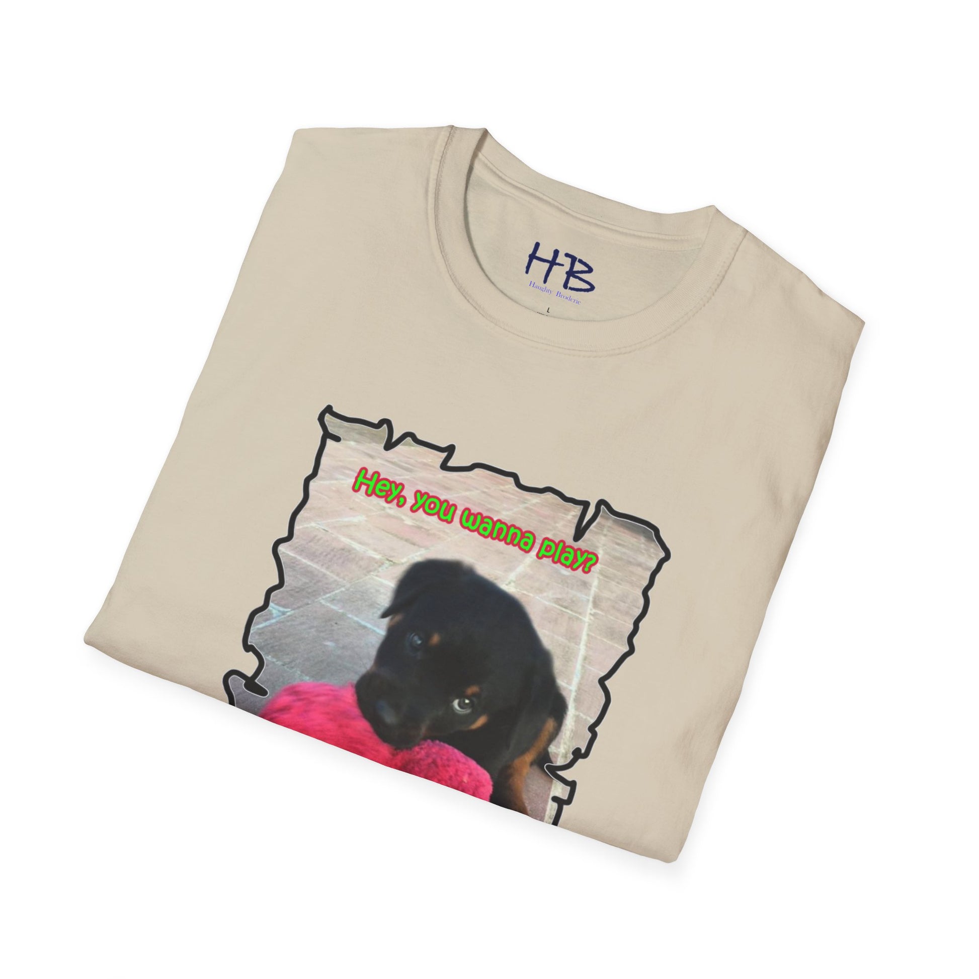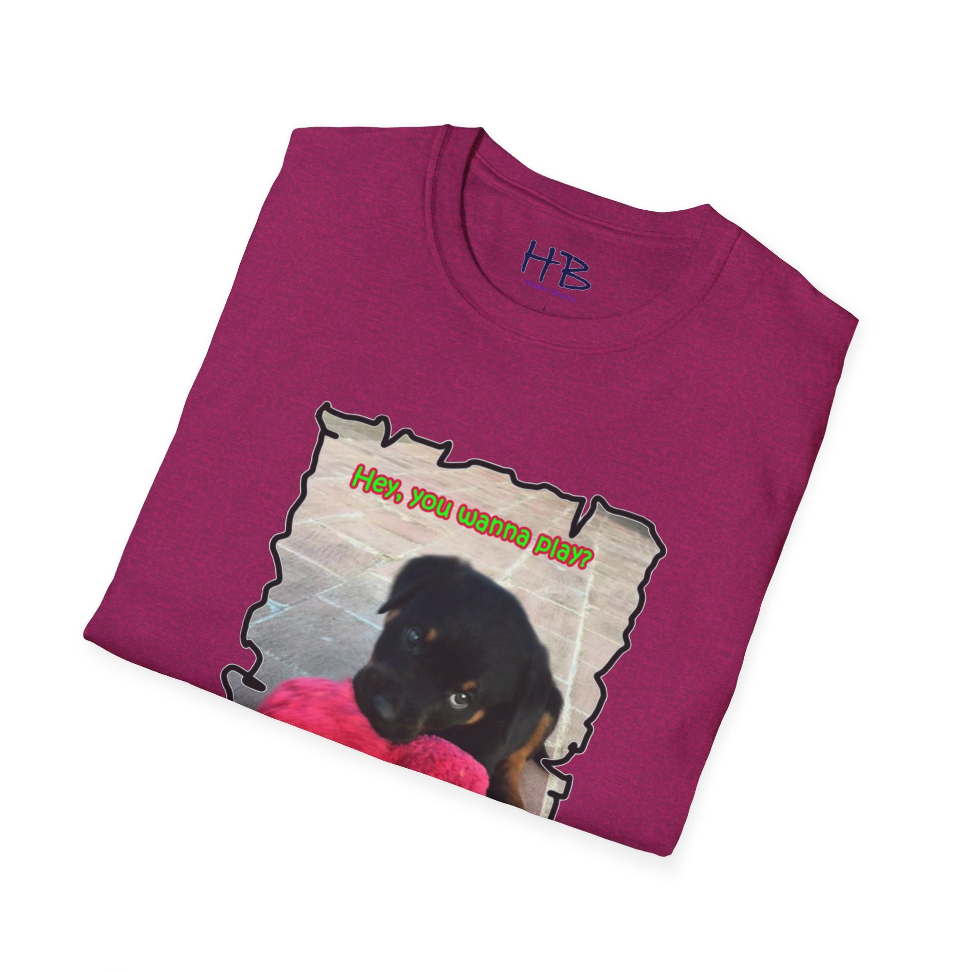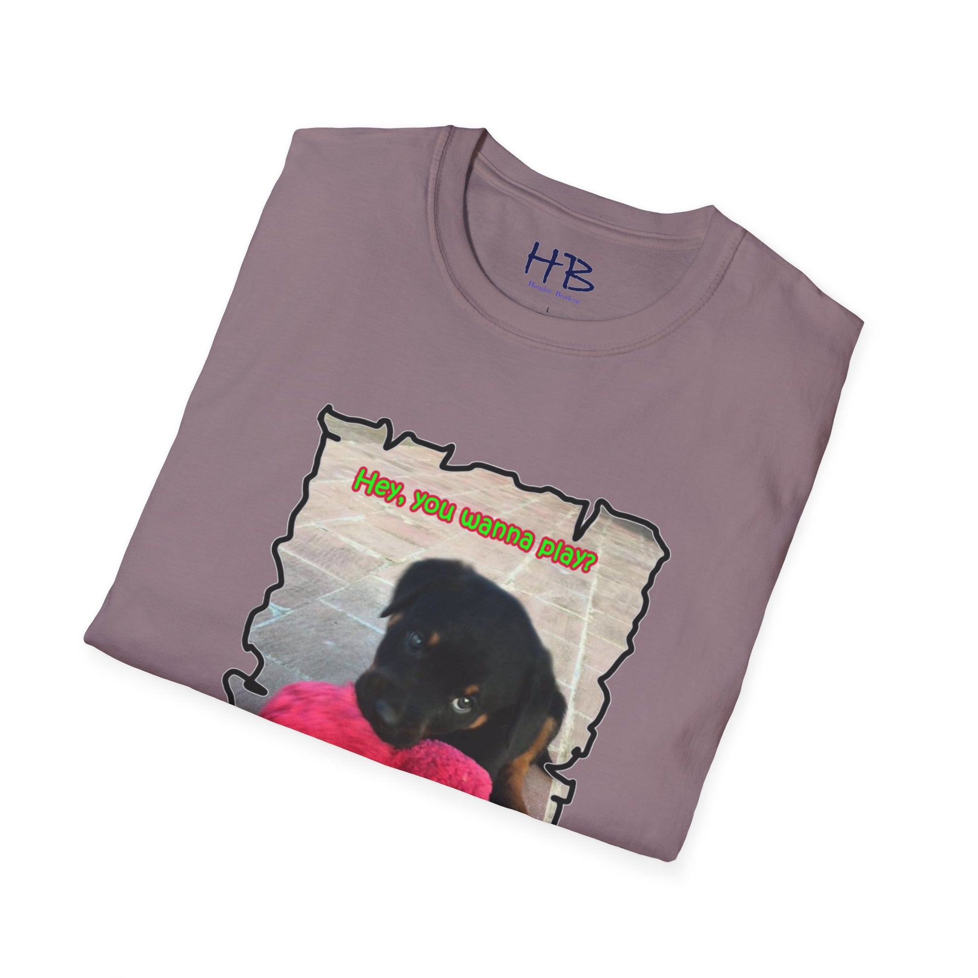 The captivating text accompanying the image—"Hey, you wanna play?"—adds a touch of delightful playfulness, inviting everyone around you to embrace their inner child and experience the joy of shared laughter and boundless enthusiasm.