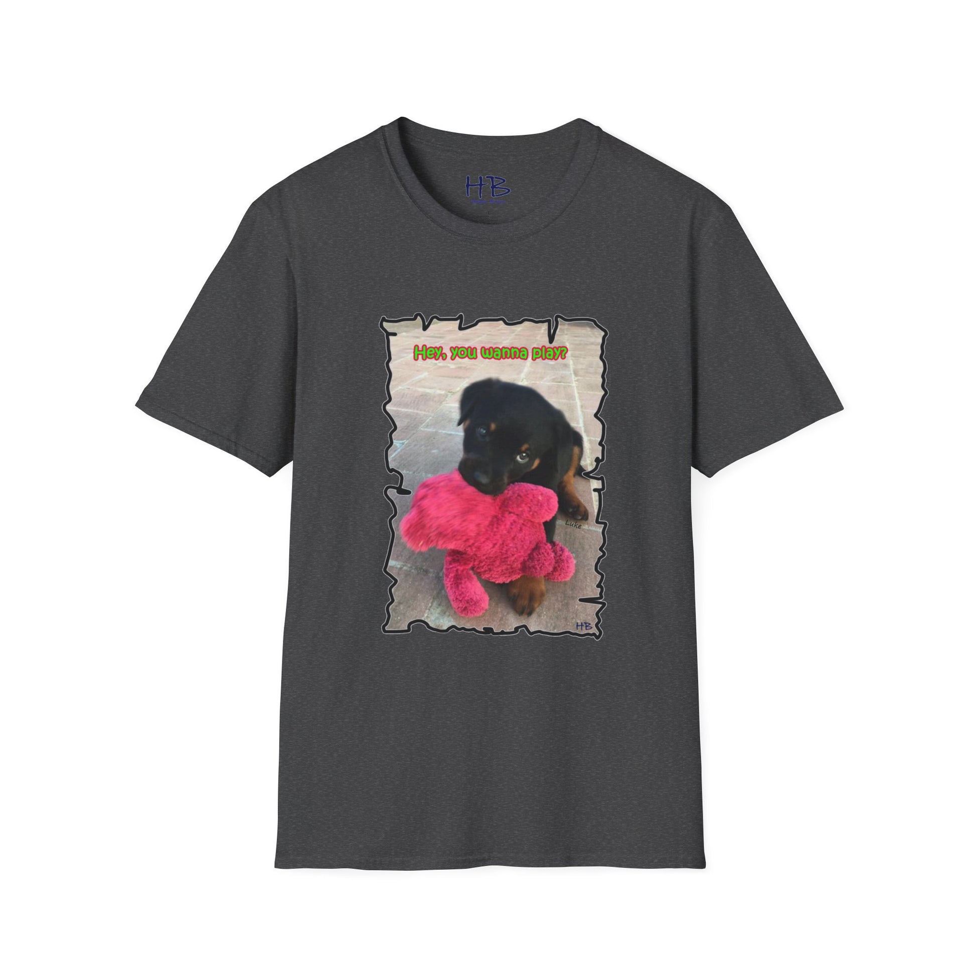 Introducing our exceptional tee shirt featuring an incredibly adorable baby Rothweiller, whose endearing charm and irresistible playfulness will capture your heart in an instant! This extraordinary design showcases the loveliest of sights, as this precious pup proudly clutches a sizable, vibrant pink teddy bear, creating an enchanting scene that exudes joy and affection.