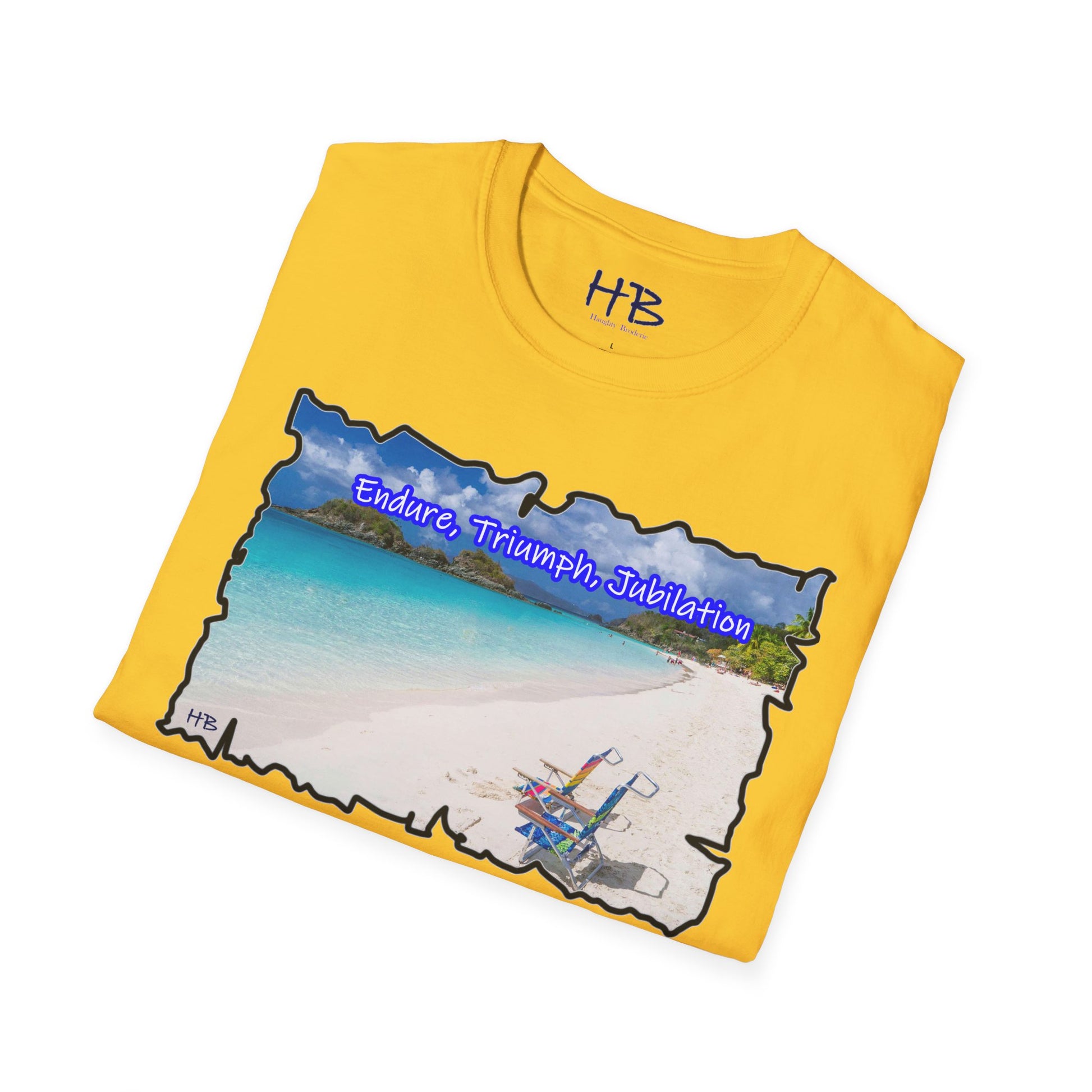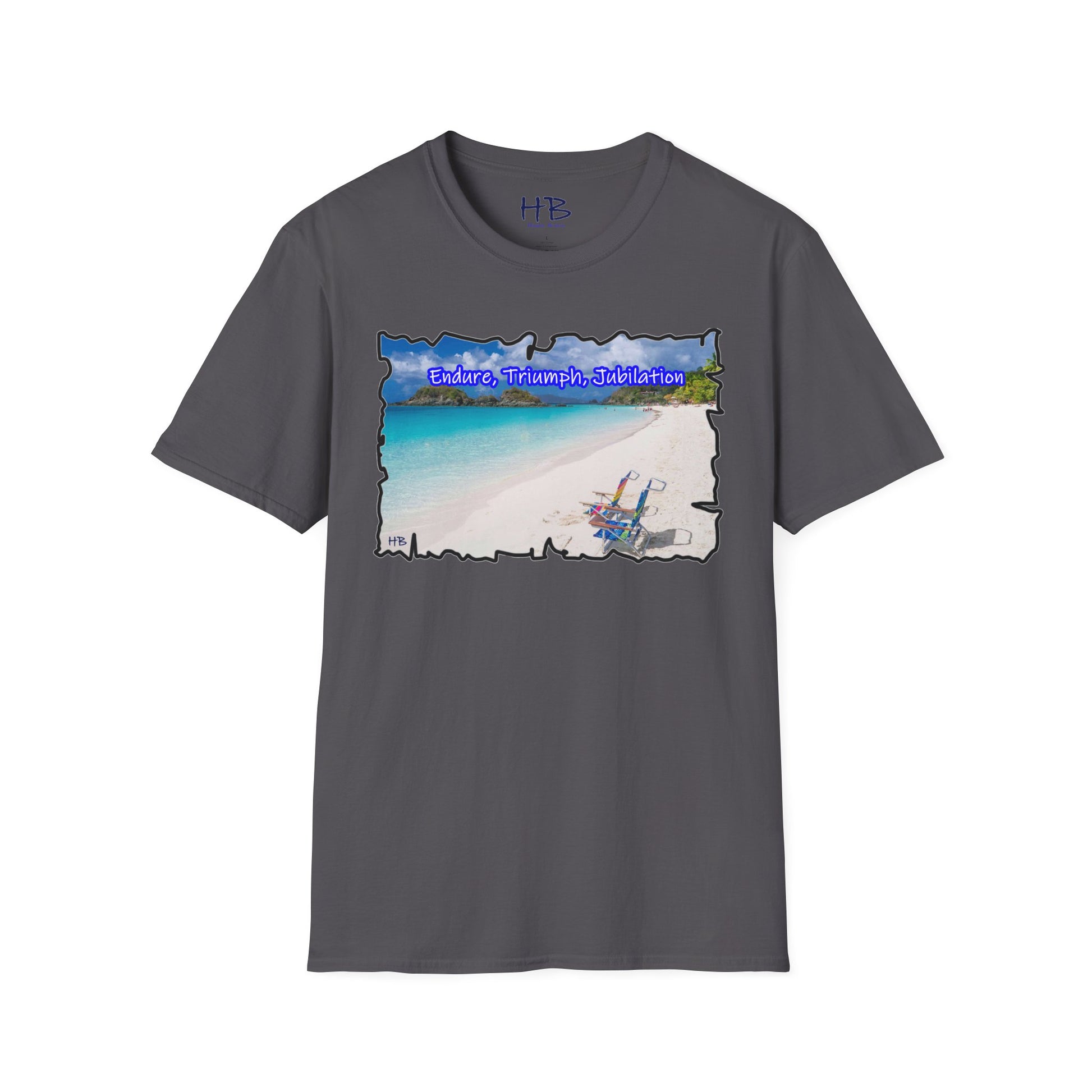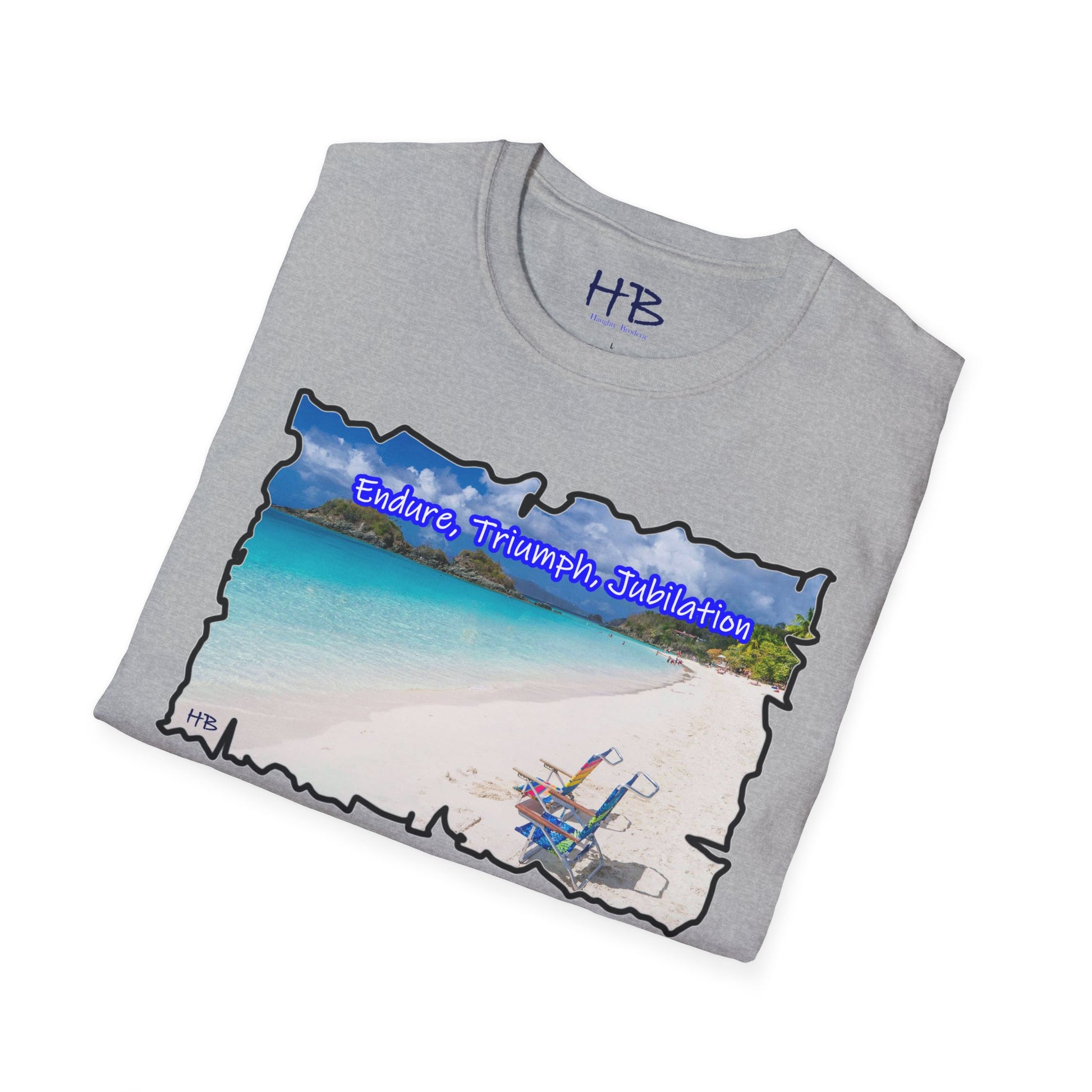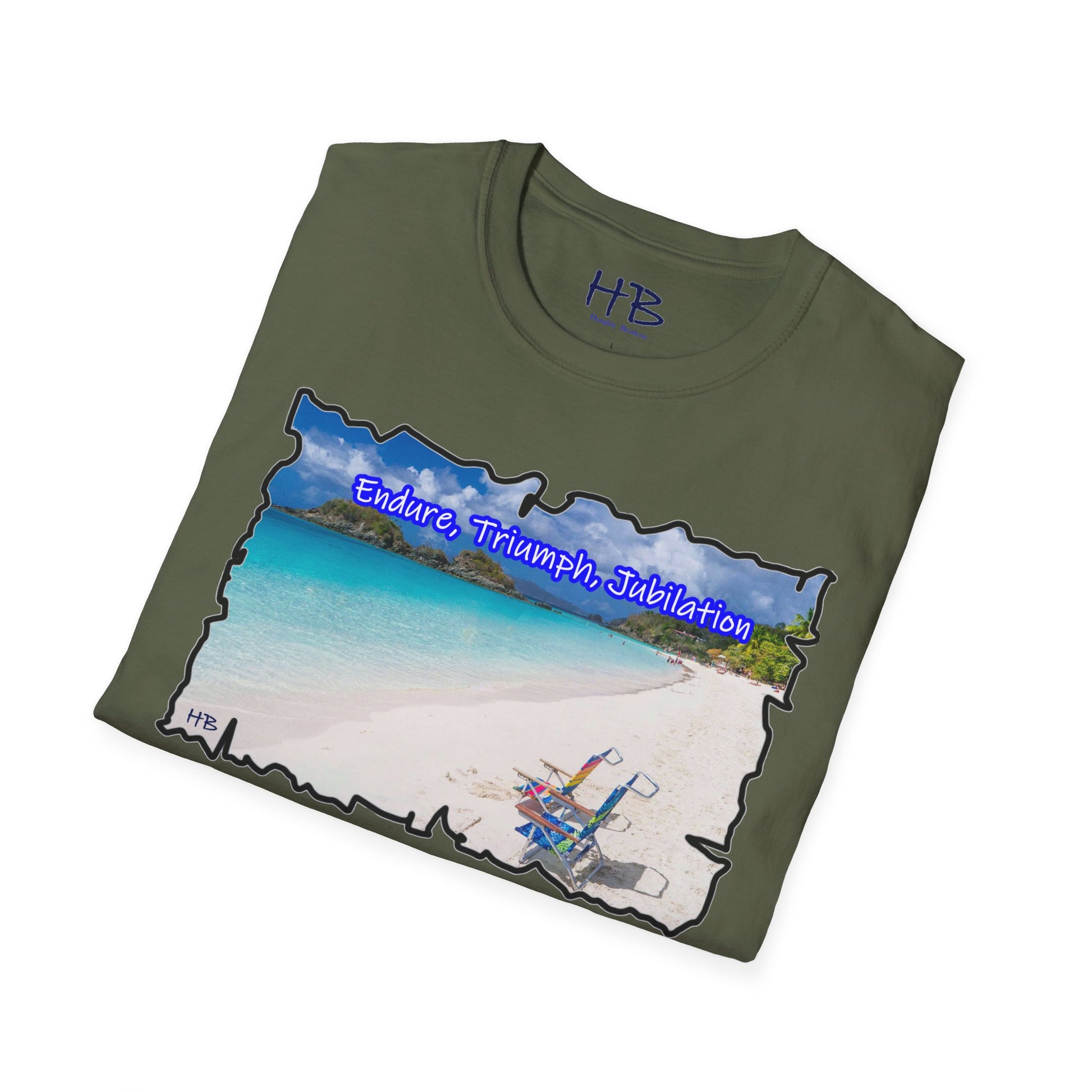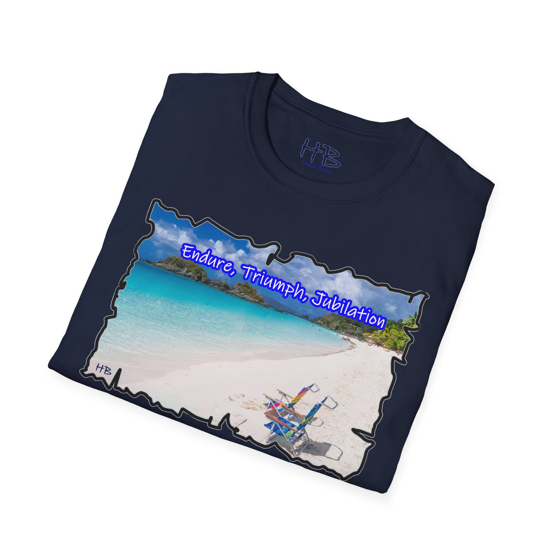 The heart of this design lies in the profound message it bears: "Endure, Triumph, Jubilation." These words are not just letters strung together; they are a testament to the arduous journey one undertakes throughout the year, toiling and persevering for that well-deserved vacation in a tropical paradise. The image reflects the enduring spirit required to navigate life's challenges, the triumphs that come with hard work, and the ultimate jubilation of basking in the sun-kissed bliss of a vacation well earned.
