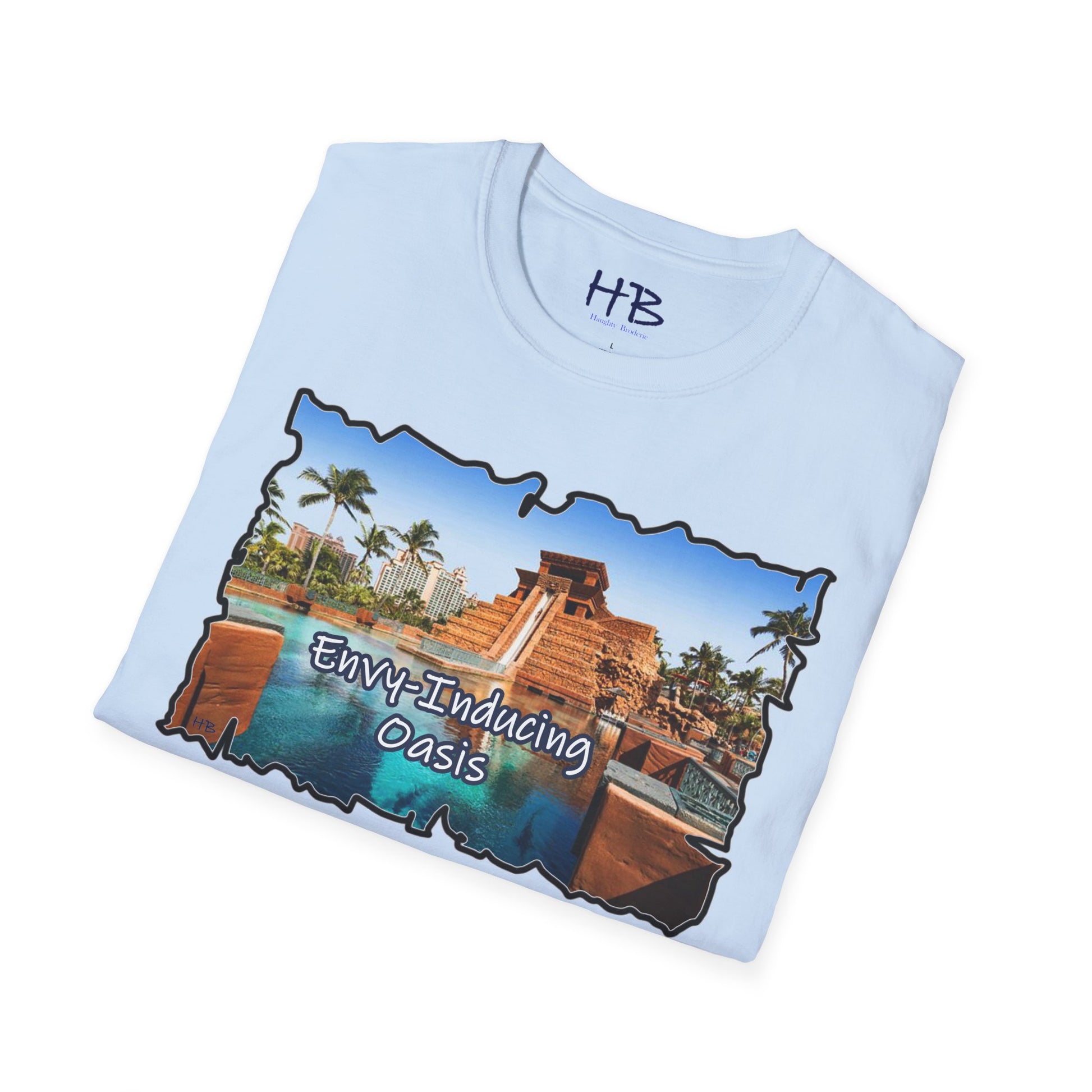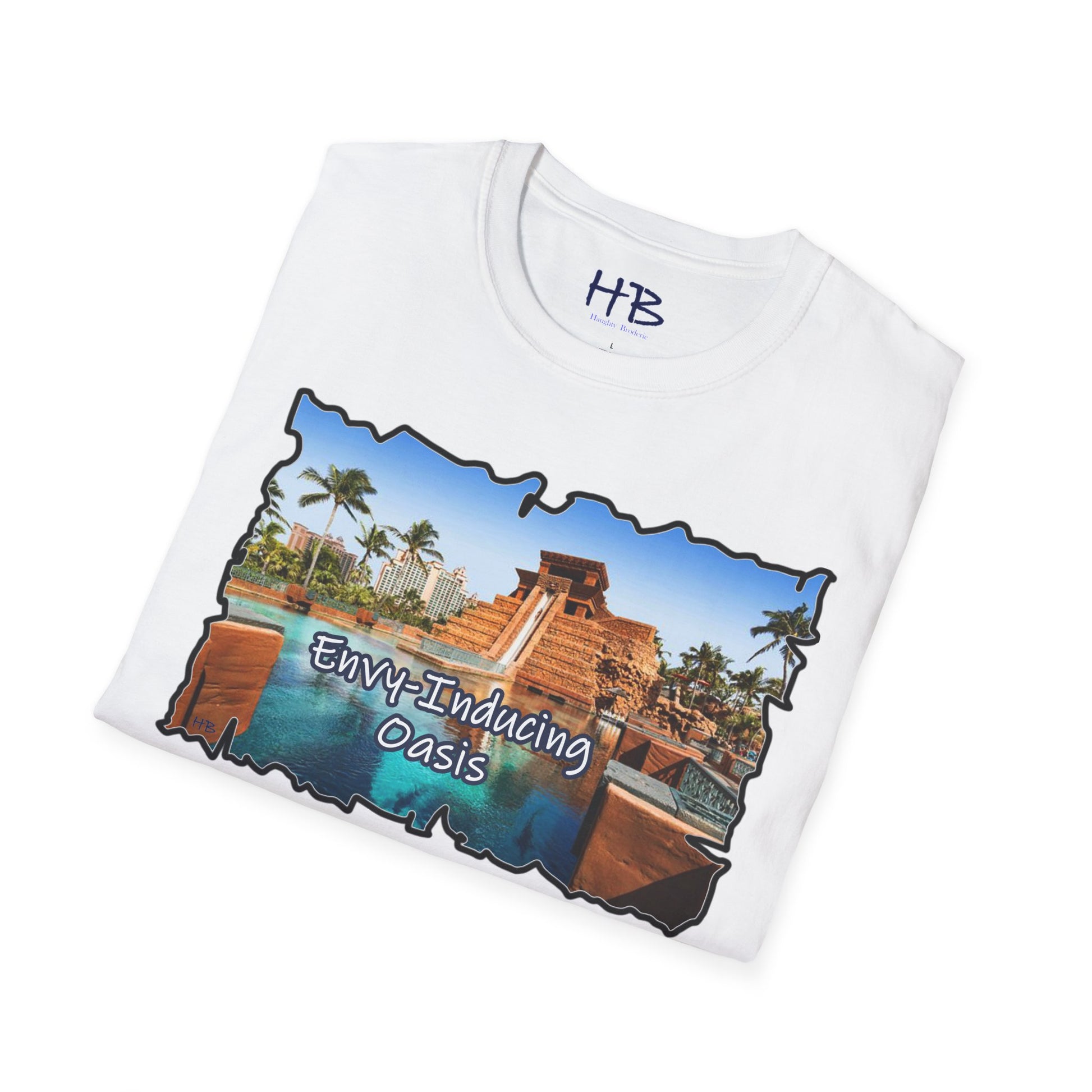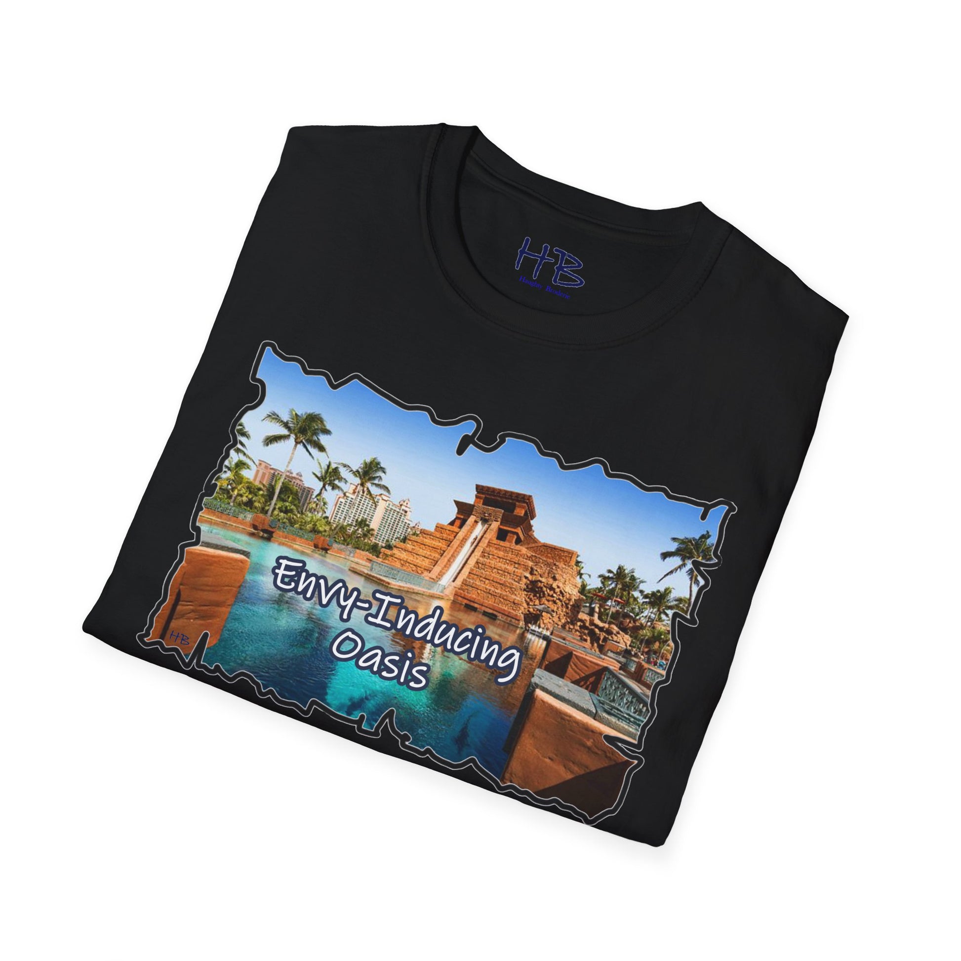 The awe-inspiring portrayal of this highly coveted destination, coupled with the bold proclamation "Envy-Inducing Oasis," serves as a powerful testament to the wearer's discerning taste and appreciation for life's luxuries. The imagery captures the essence of exclusivity, making this garment a symbol of aspiration and achievement.