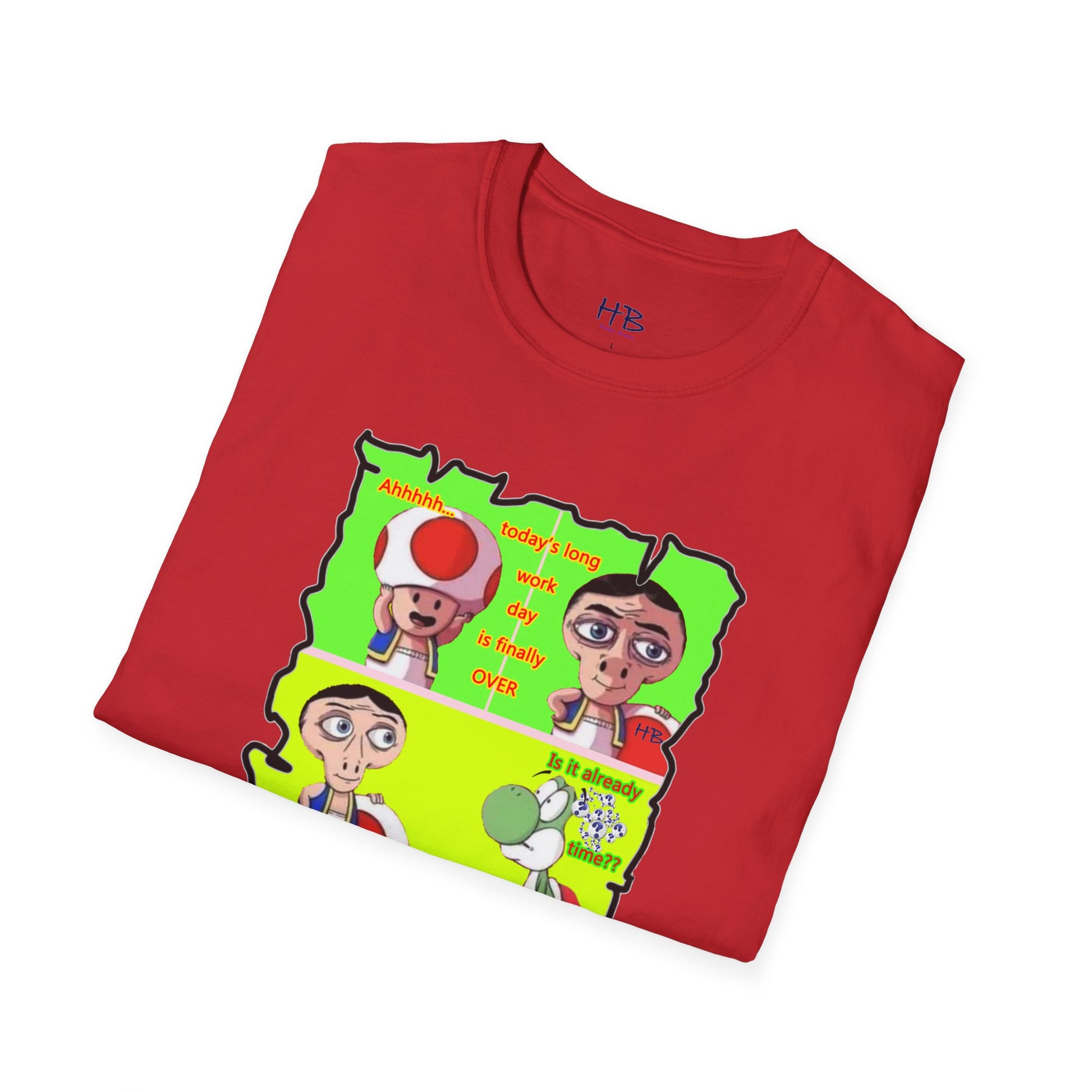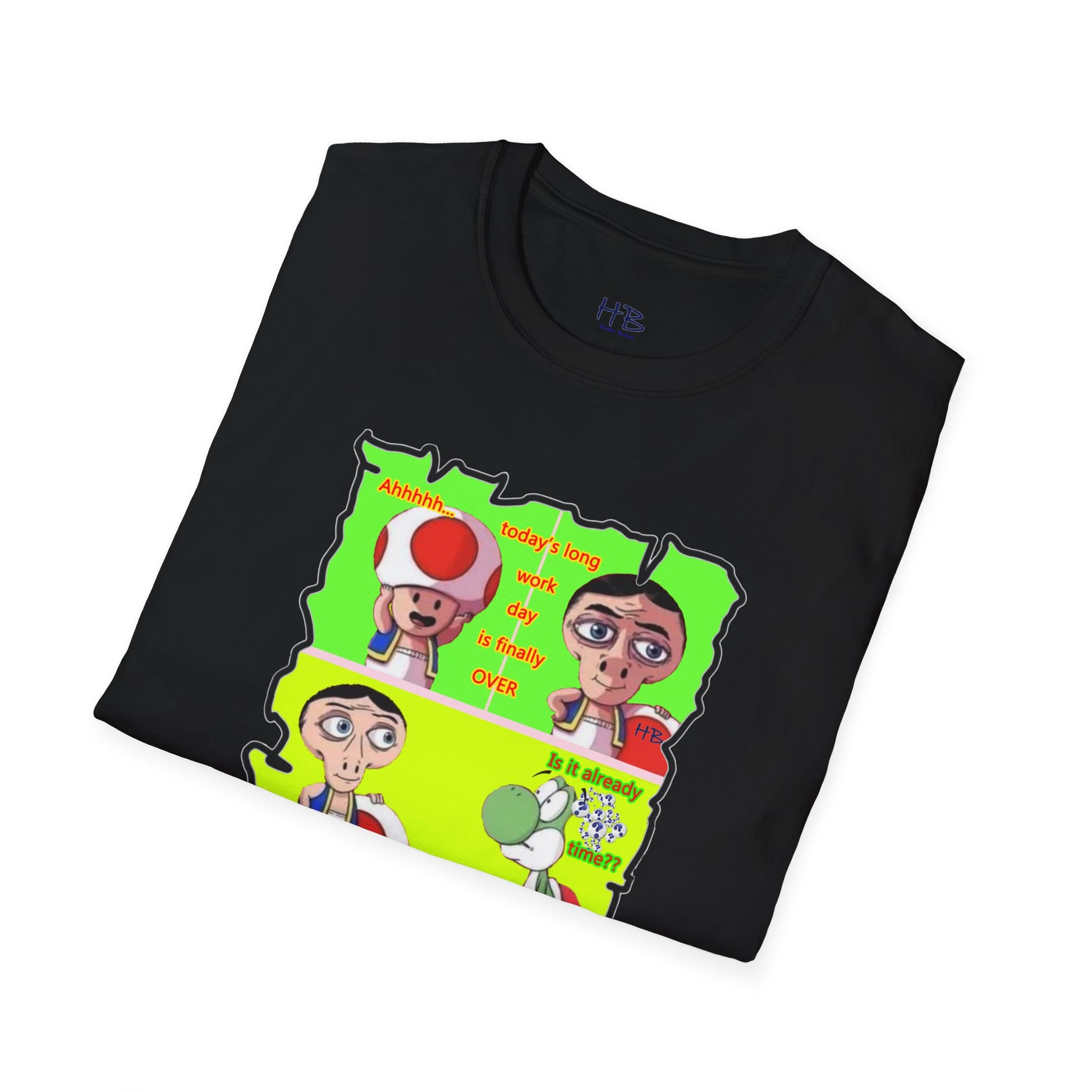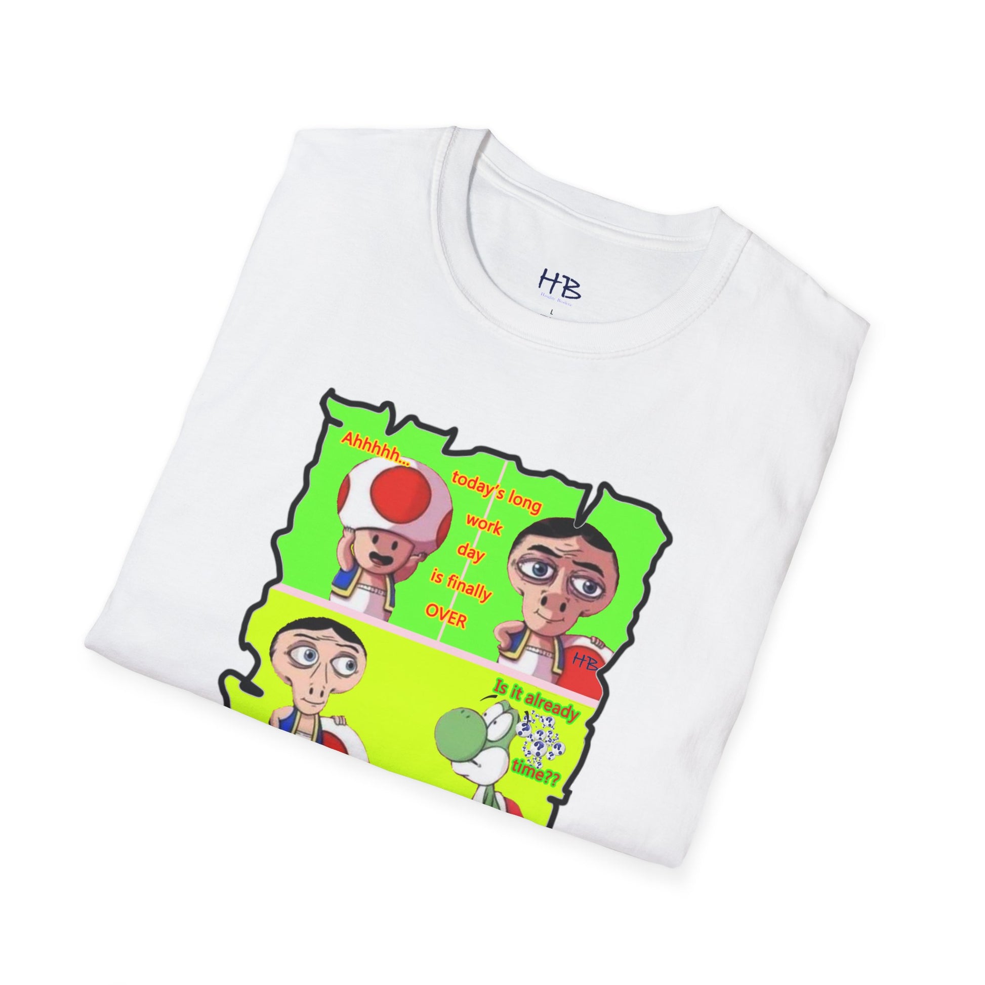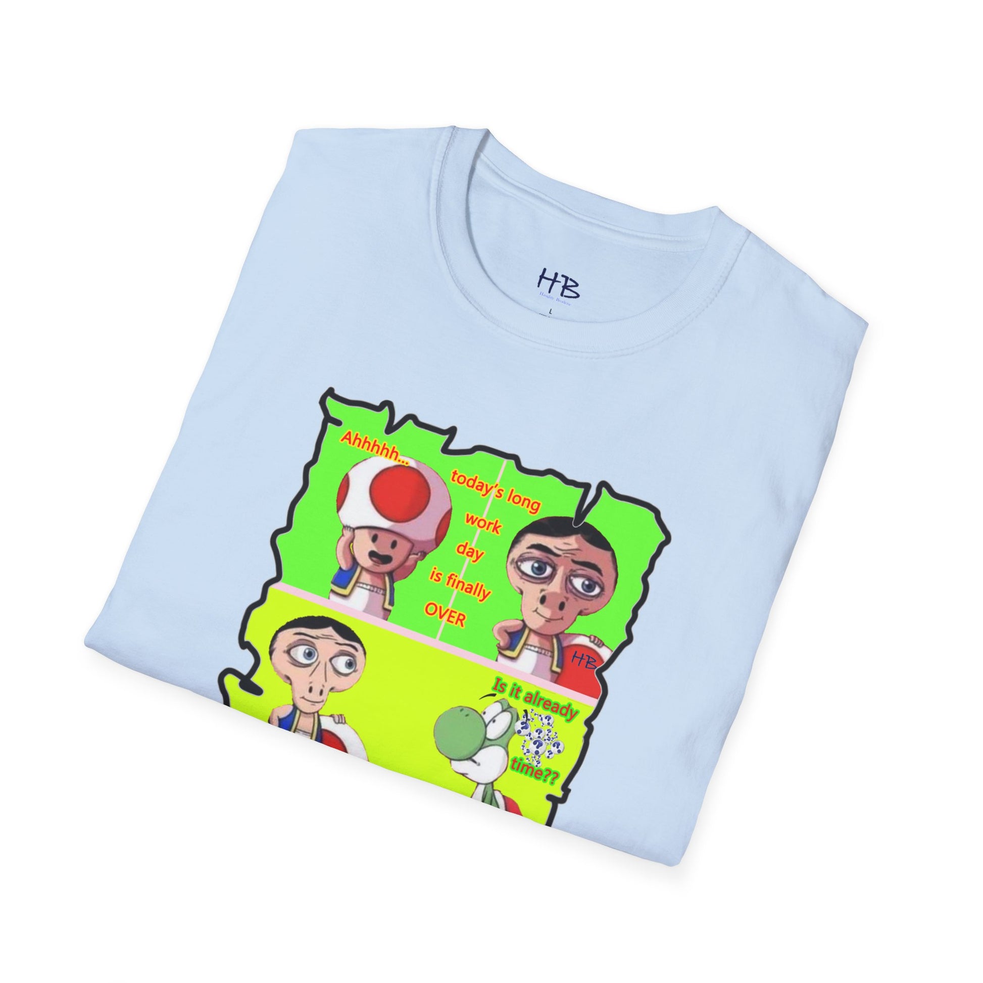 Presenting our newest tee shirt design showcasing everyone's cherished childhood characters, Toad and Yogi! These exclusive illustrations unveil a fresh perspective on these beloved characters, offering a glimpse never witnessed before. The initial depiction captures Toad post his day's toil, exhaling a sigh of relief as he sheds his head shell, revealing his entire face and eyes, exposing a notably large and imposing nose bound to grab attention.