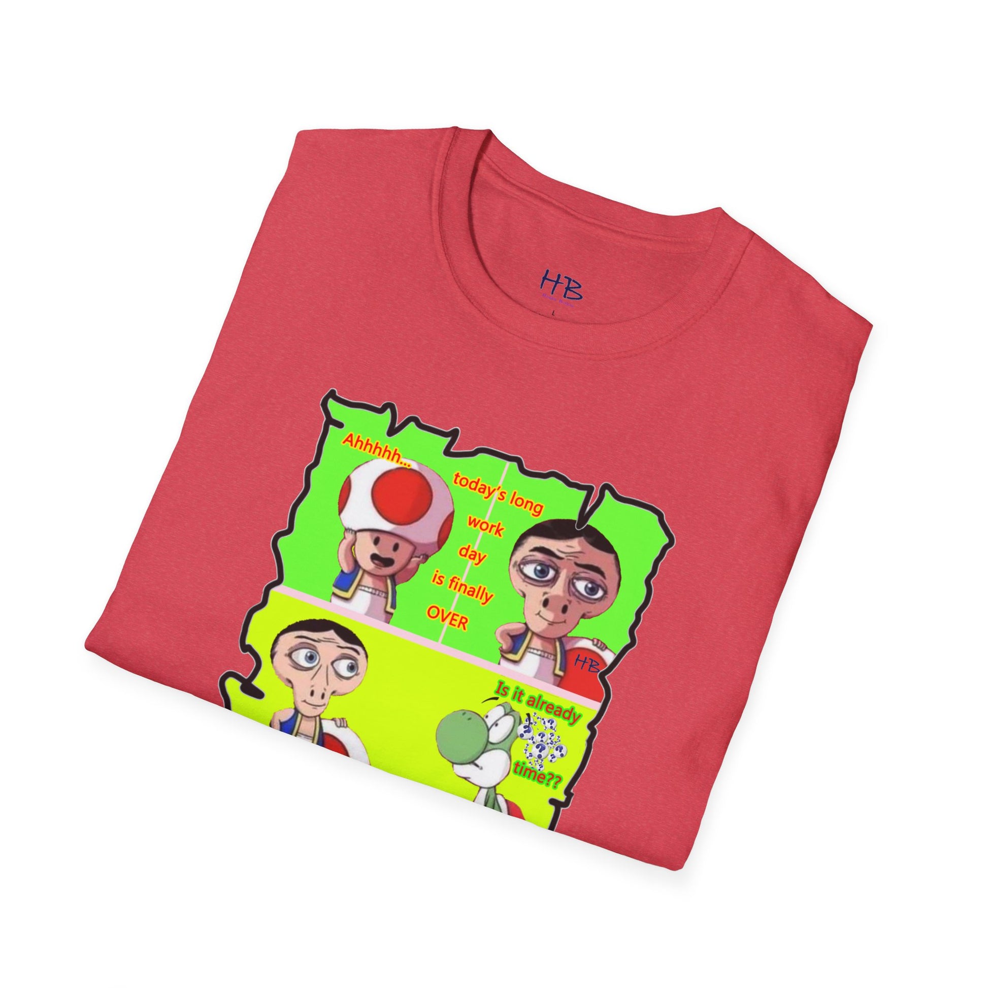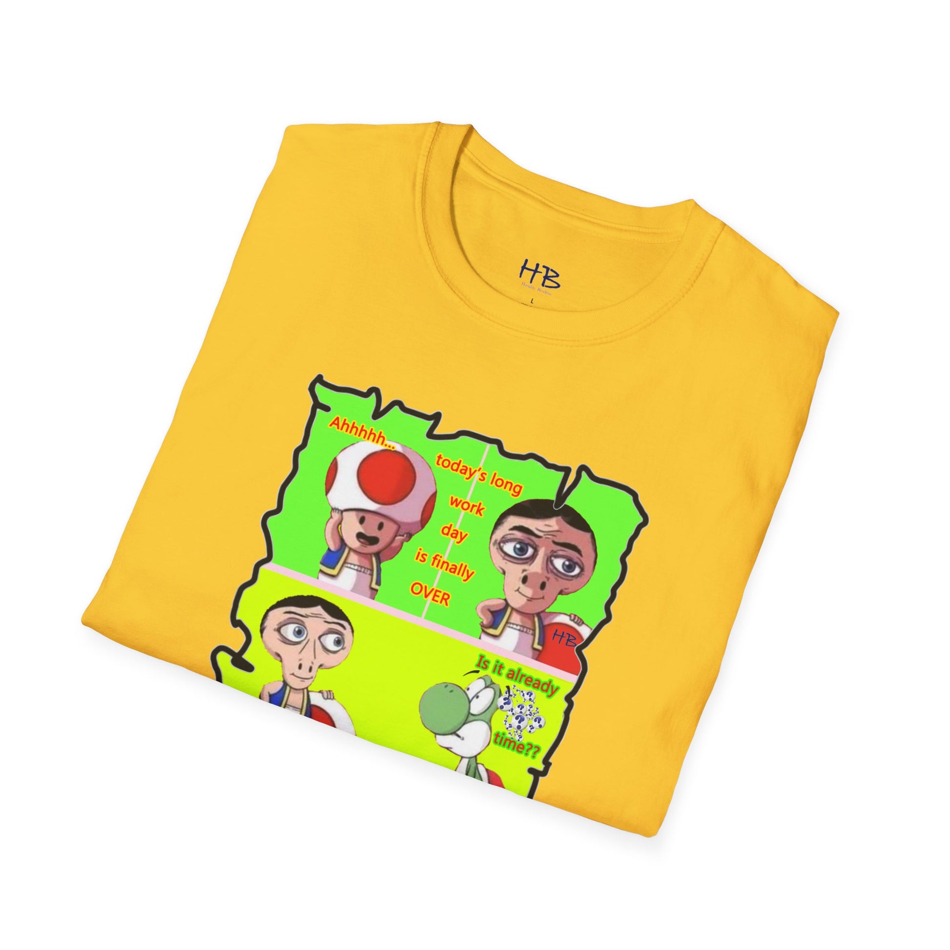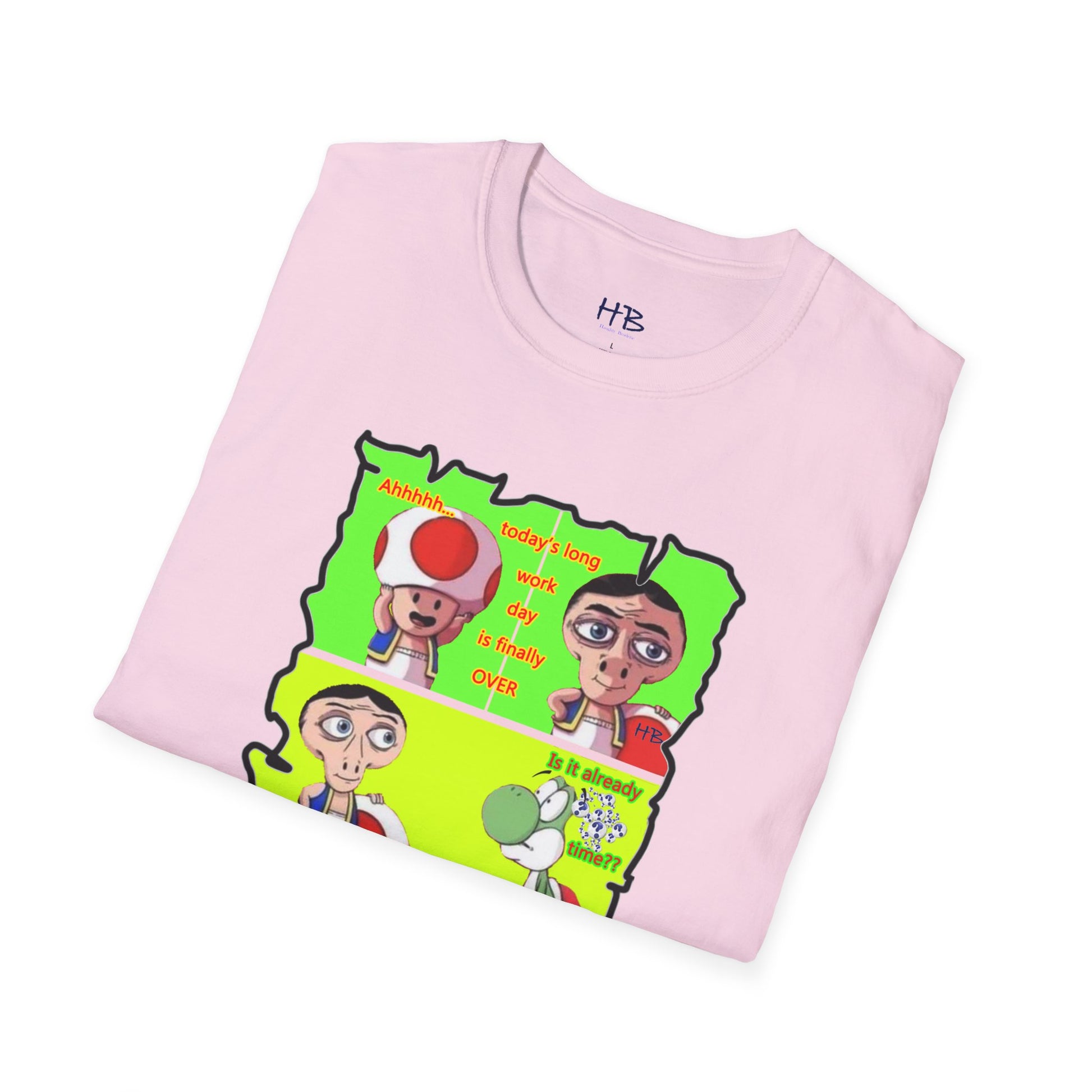 Presenting our newest tee shirt design showcasing everyone's cherished childhood characters, Toad and Yogi! These exclusive illustrations unveil a fresh perspective on these beloved characters, offering a glimpse never witnessed before. The initial depiction captures Toad post his day's toil, exhaling a sigh of relief as he sheds his head shell, revealing his entire face and eyes, exposing a notably large and imposing nose bound to grab attention.