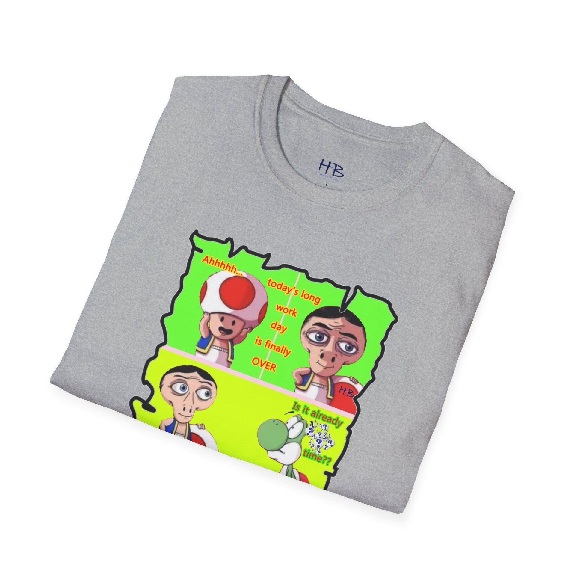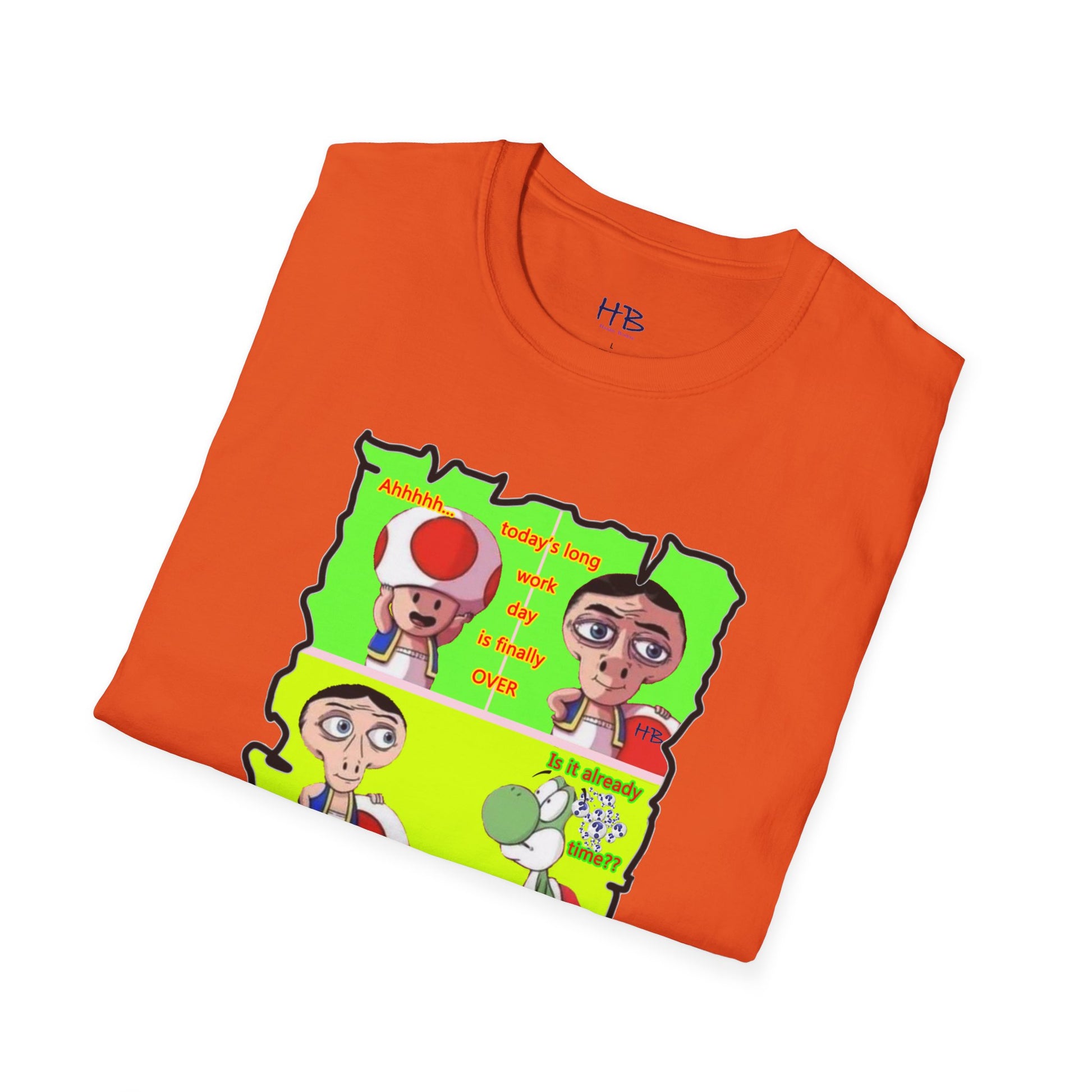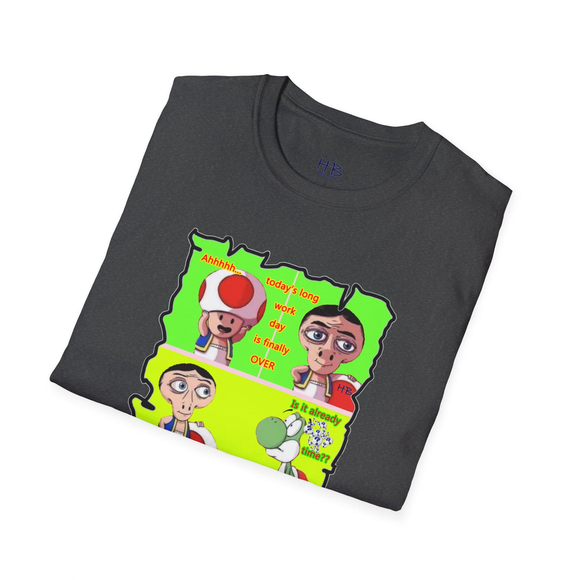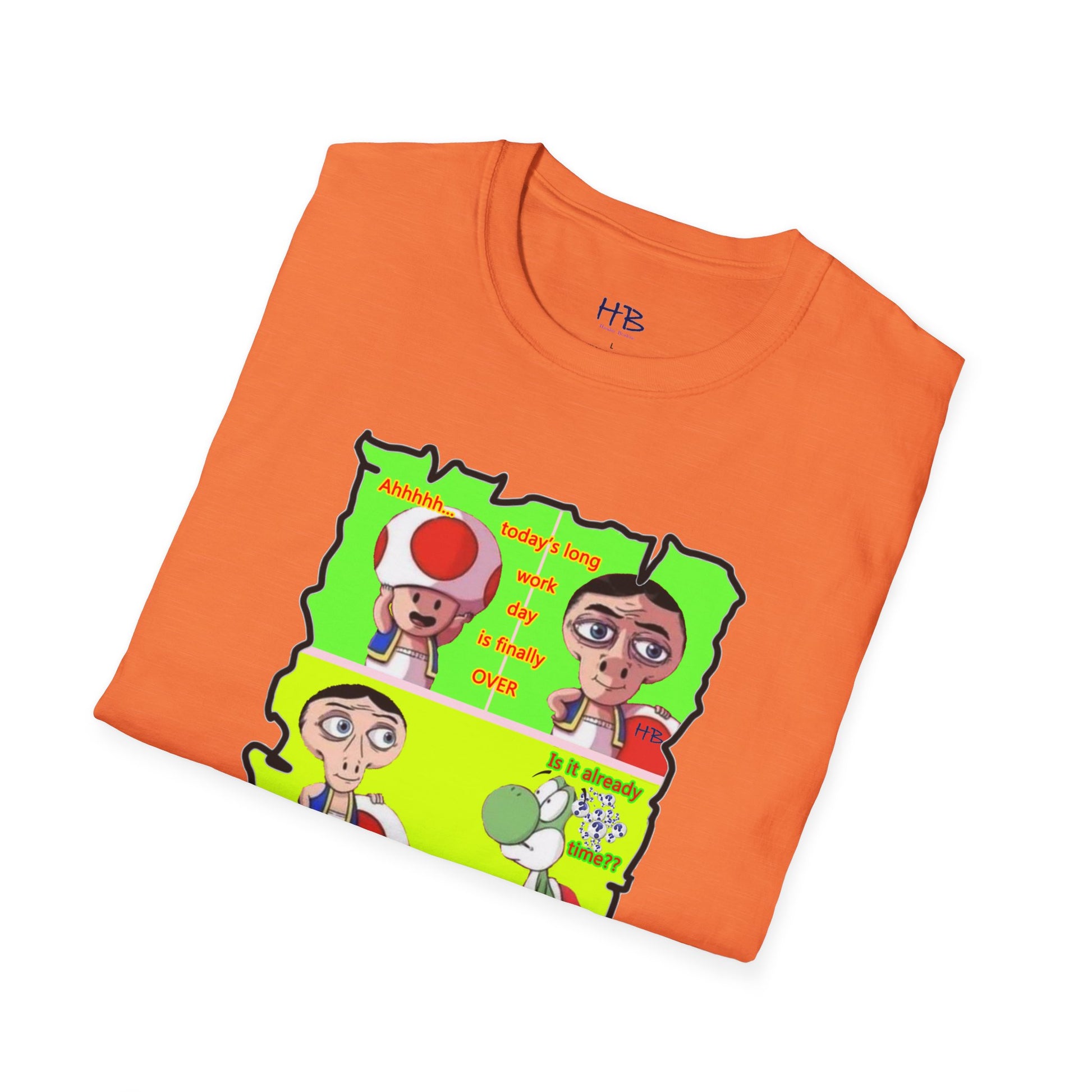 Presenting our newest tee shirt design showcasing everyone's cherished childhood characters, Toad and Yogi! These exclusive illustrations unveil a fresh perspective on these beloved characters, offering a glimpse never witnessed before. The initial depiction captures Toad post his day's toil, exhaling a sigh of relief as he sheds his head shell, revealing his entire face and eyes, exposing a notably large and imposing nose bound to grab attention.