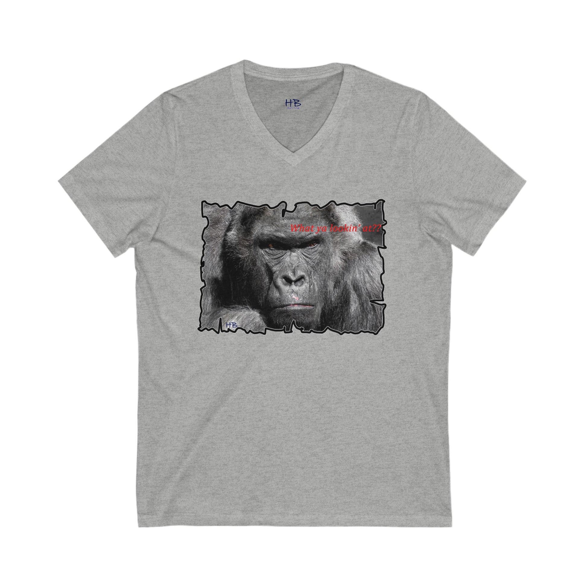Fearless Fierce Frown and Bold Gorilla Power What ya lookin' at? (Unisex Jersey Short Sleeve V-neck - Comfortable Everyday Wear)