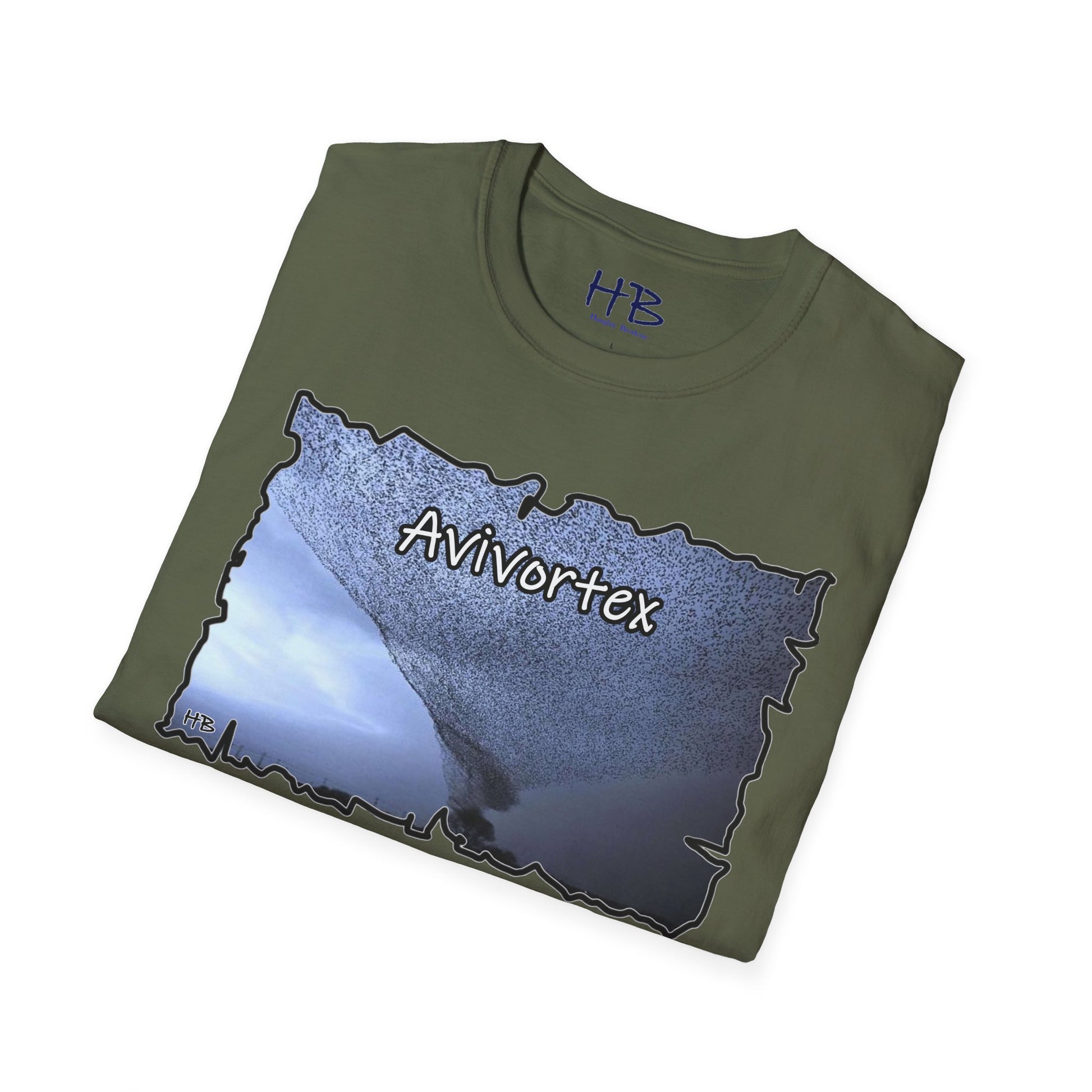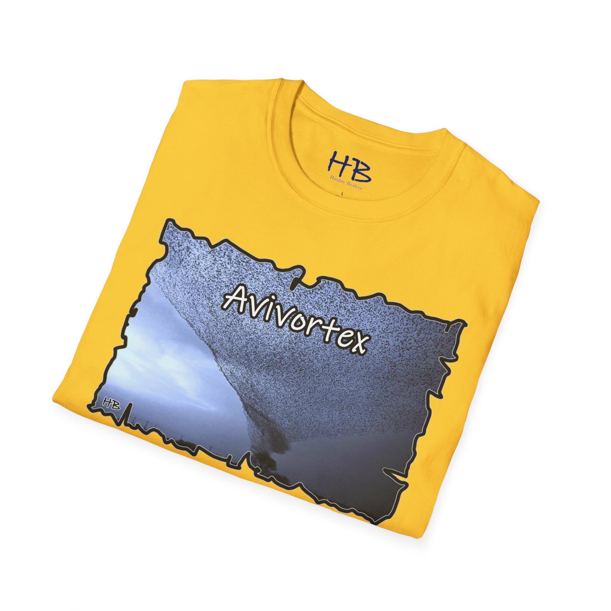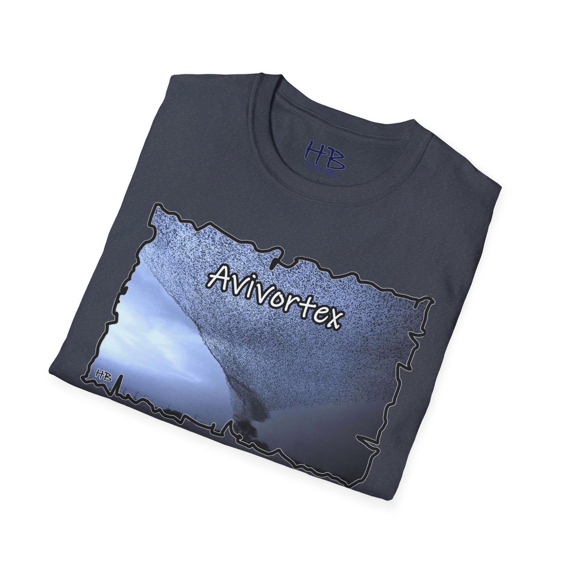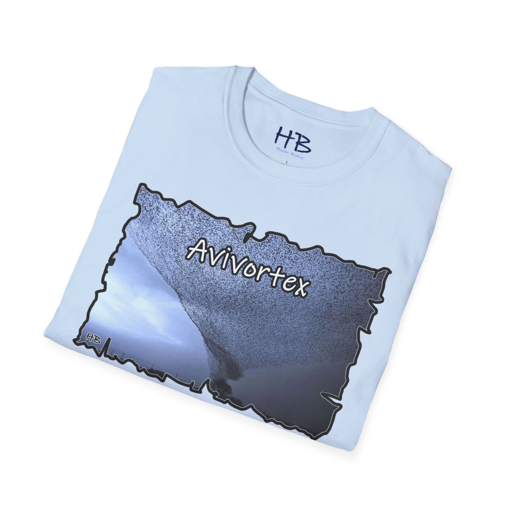Introducing our extraordinary creation, the "Avivortex" T-Shirt—a mesmerizing blend of avian elegance and elemental force. Picture this: a celestial tornado formed not of turbulent winds, but a symphony of birds, all twirling around each other in a breathtaking dance of flight. This dynamic masterpiece captures the essence of an aviary meeting a vortex, birthing an awe-inspiring phenomenon that defies the ordinary.
