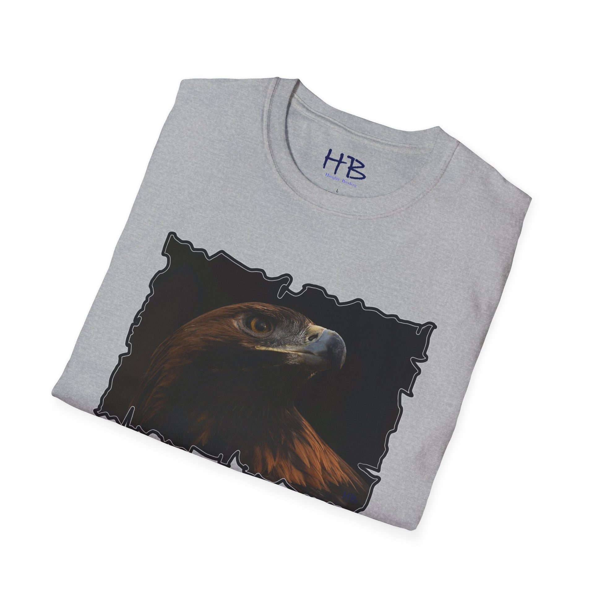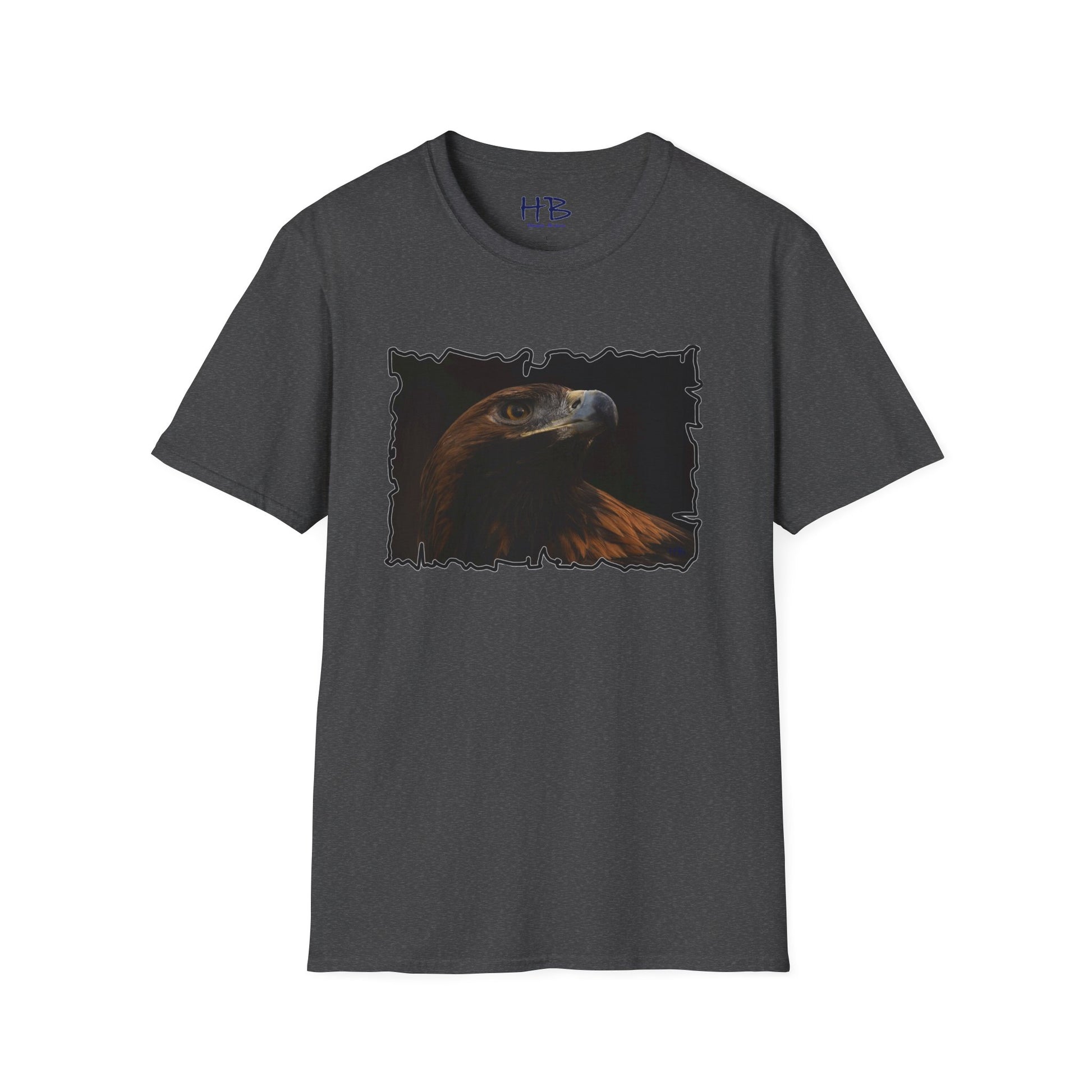 Introducing our awe-inspiring tee shirt featuring the captivating countenance of a magnificent golden eagle. This majestic avian wonder is portrayed with its piercing, keen eyes fixated like a sniper, and its beak, honed to a razor-sharp point, poised to strike at its unsuspecting prey.