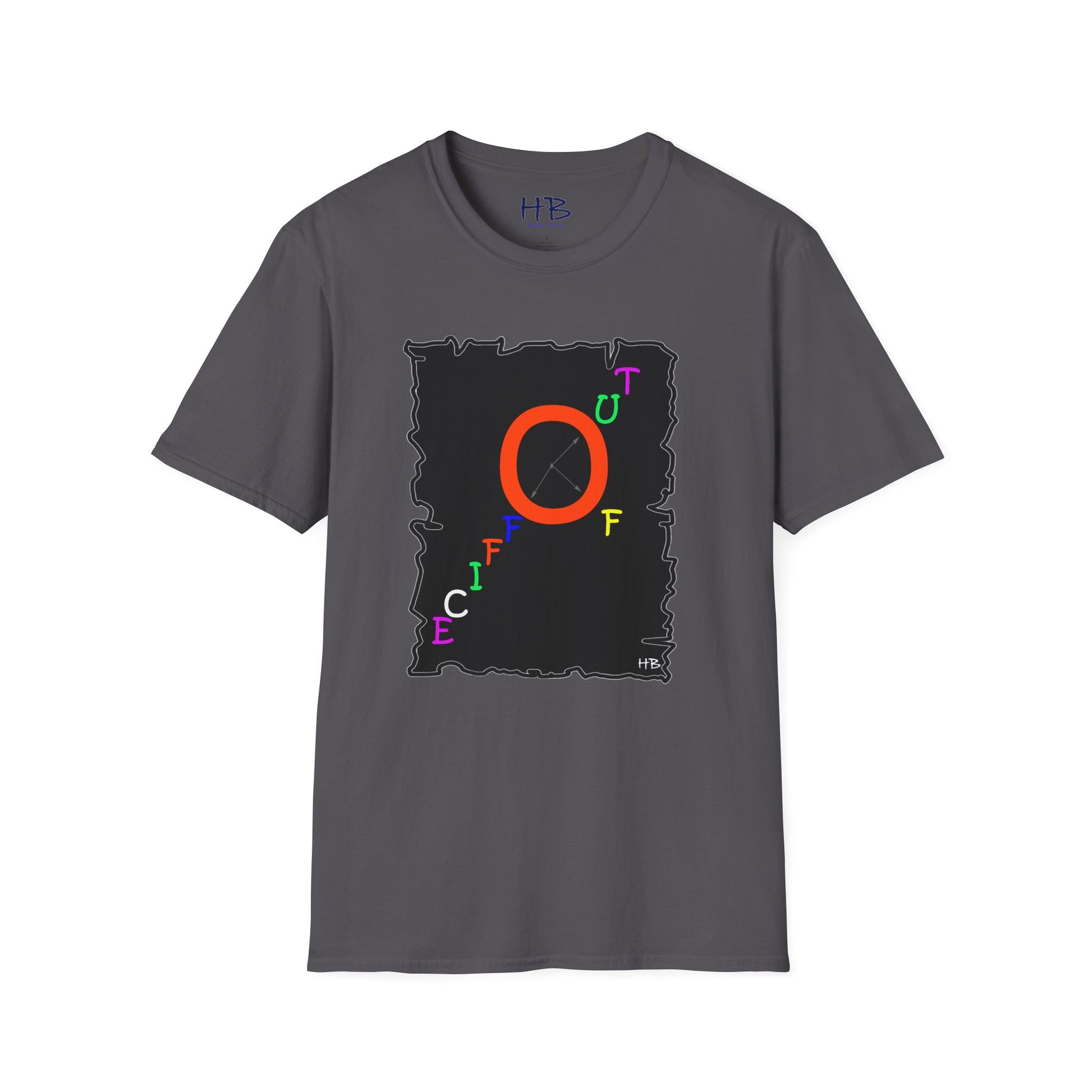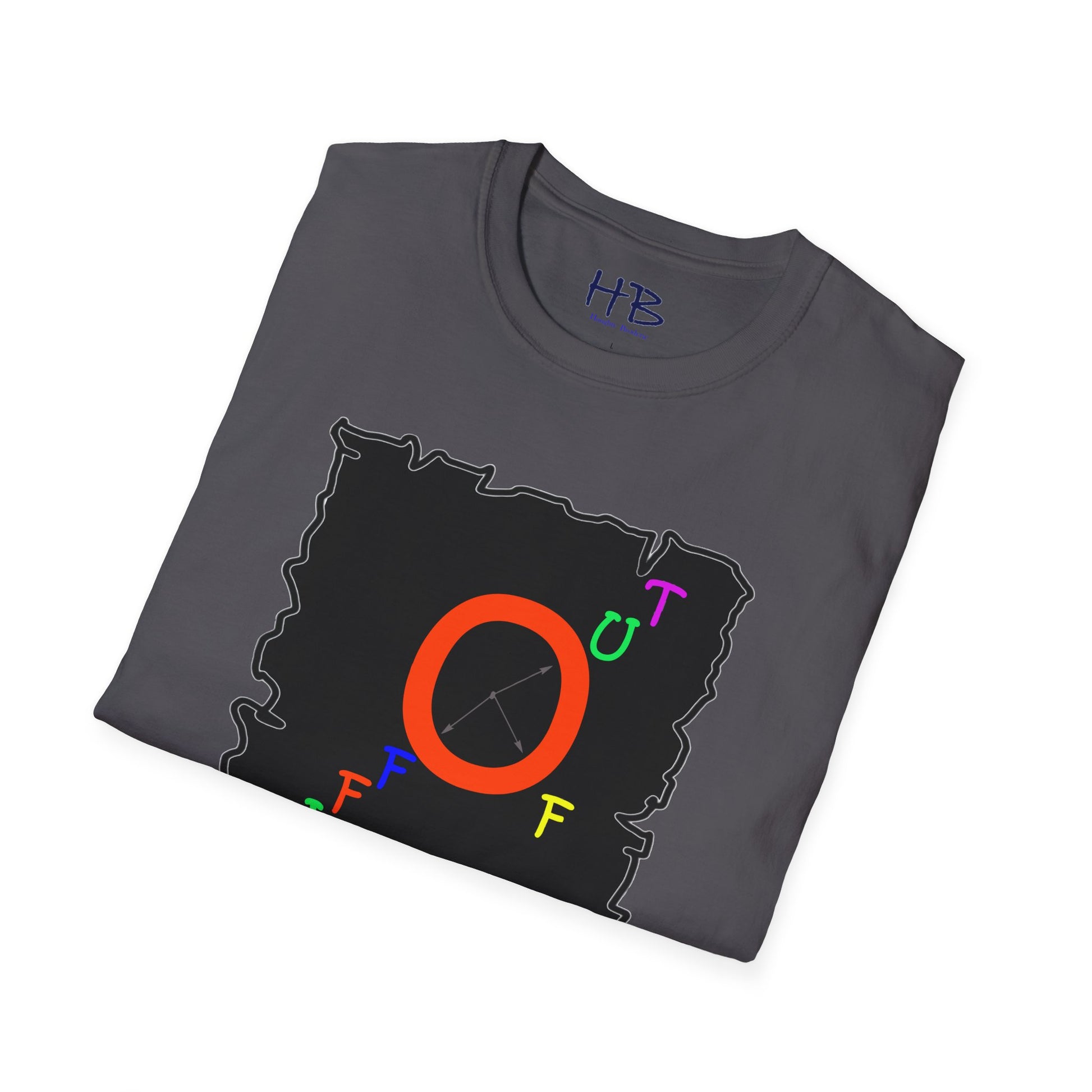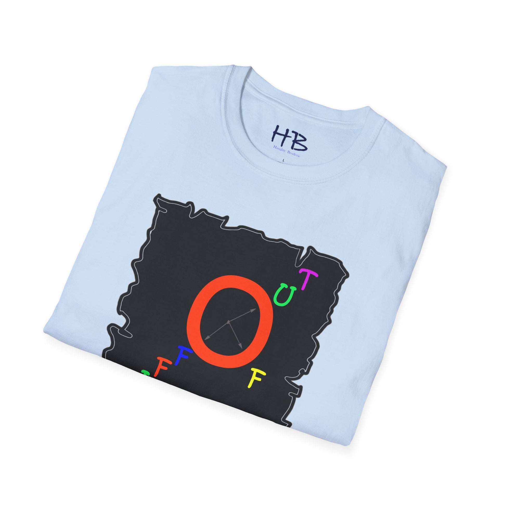 Introducing a fantastic apparel that is perfect for individuals who are looking for a comfortable and stylish way to express their current work status. This tee shirt features a unique and eye-catching design, with a large "O" symbol adorned with arrows pointing to the words "UT," "F," and "FFICE," which together read "Out of Office."