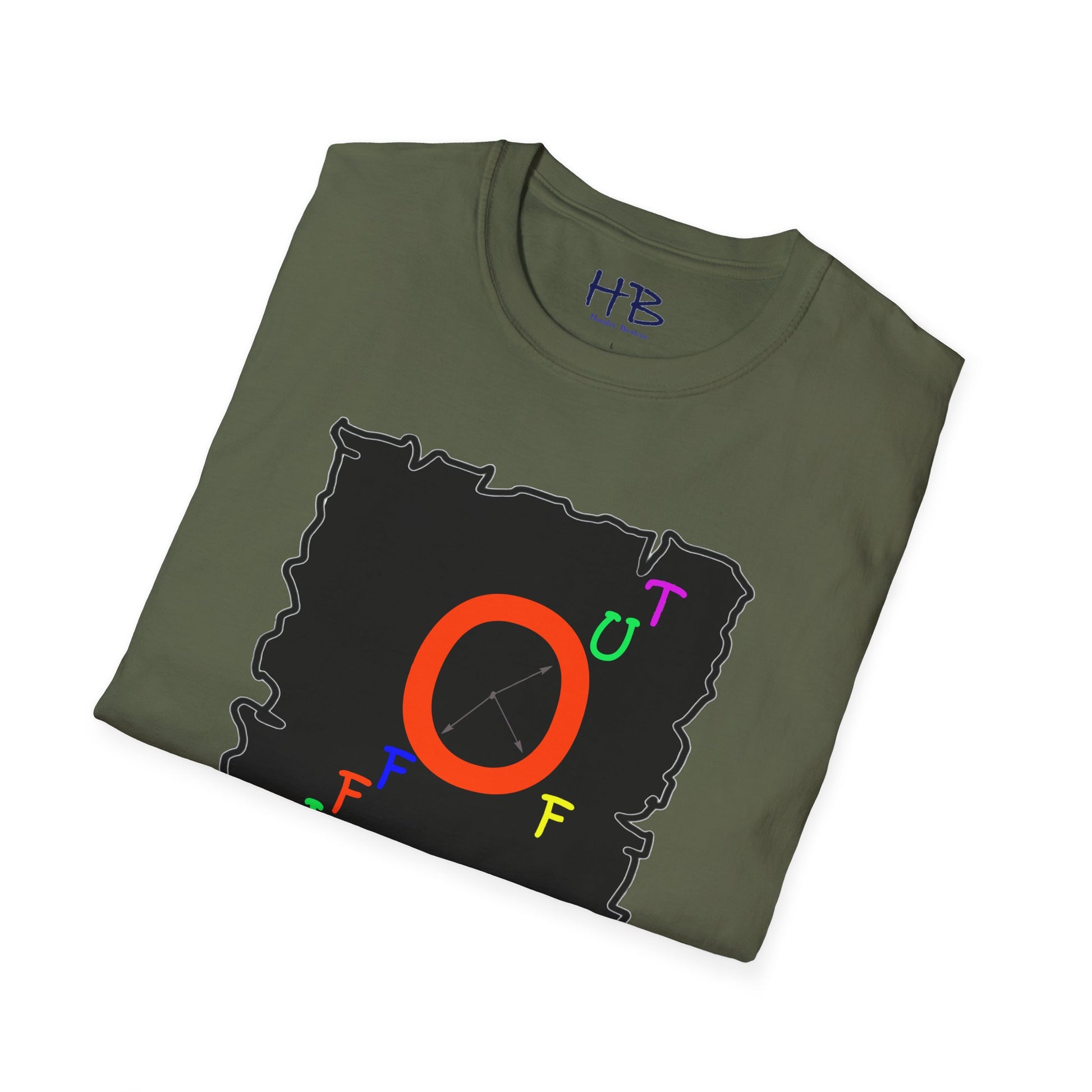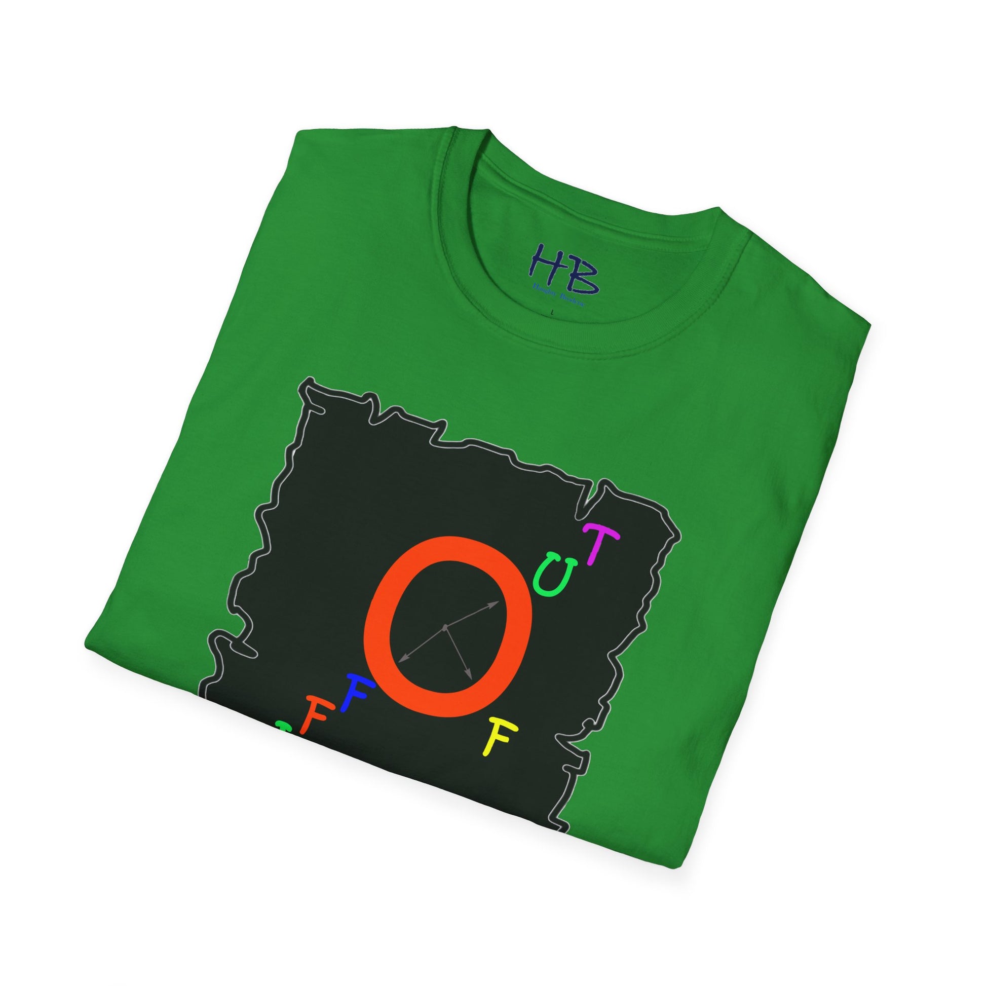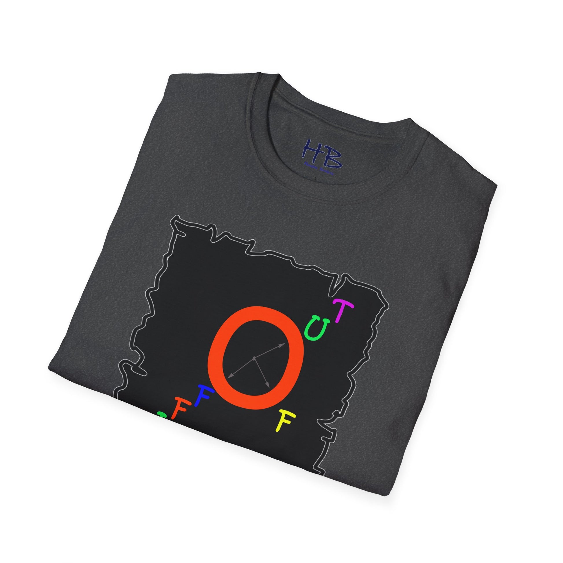Introducing a fantastic apparel that is perfect for individuals who are looking for a comfortable and stylish way to express their current work status. This tee shirt features a unique and eye-catching design, with a large "O" symbol adorned with arrows pointing to the words "UT," "F," and "FFICE," which together read "Out of Office."