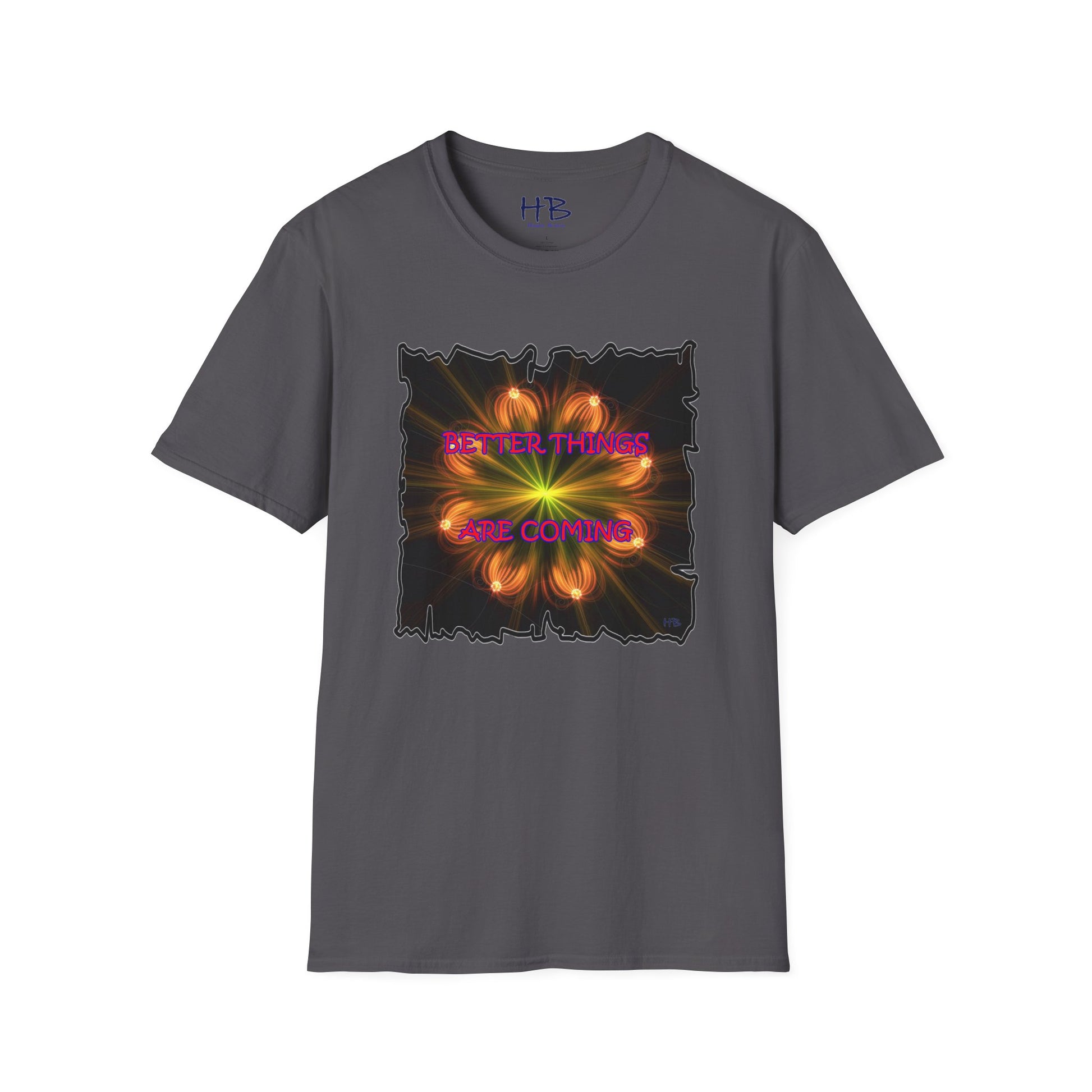 But it's not just the visual appeal that sets this tee shirt apart. The message it carries, "Better things are coming," resonates deeply with the spirit of today's world. In a time filled with uncertainty, challenges, and setbacks, wearing this tee shirt is a powerful statement.