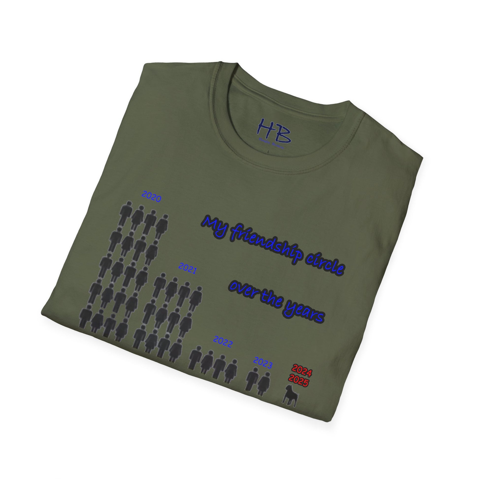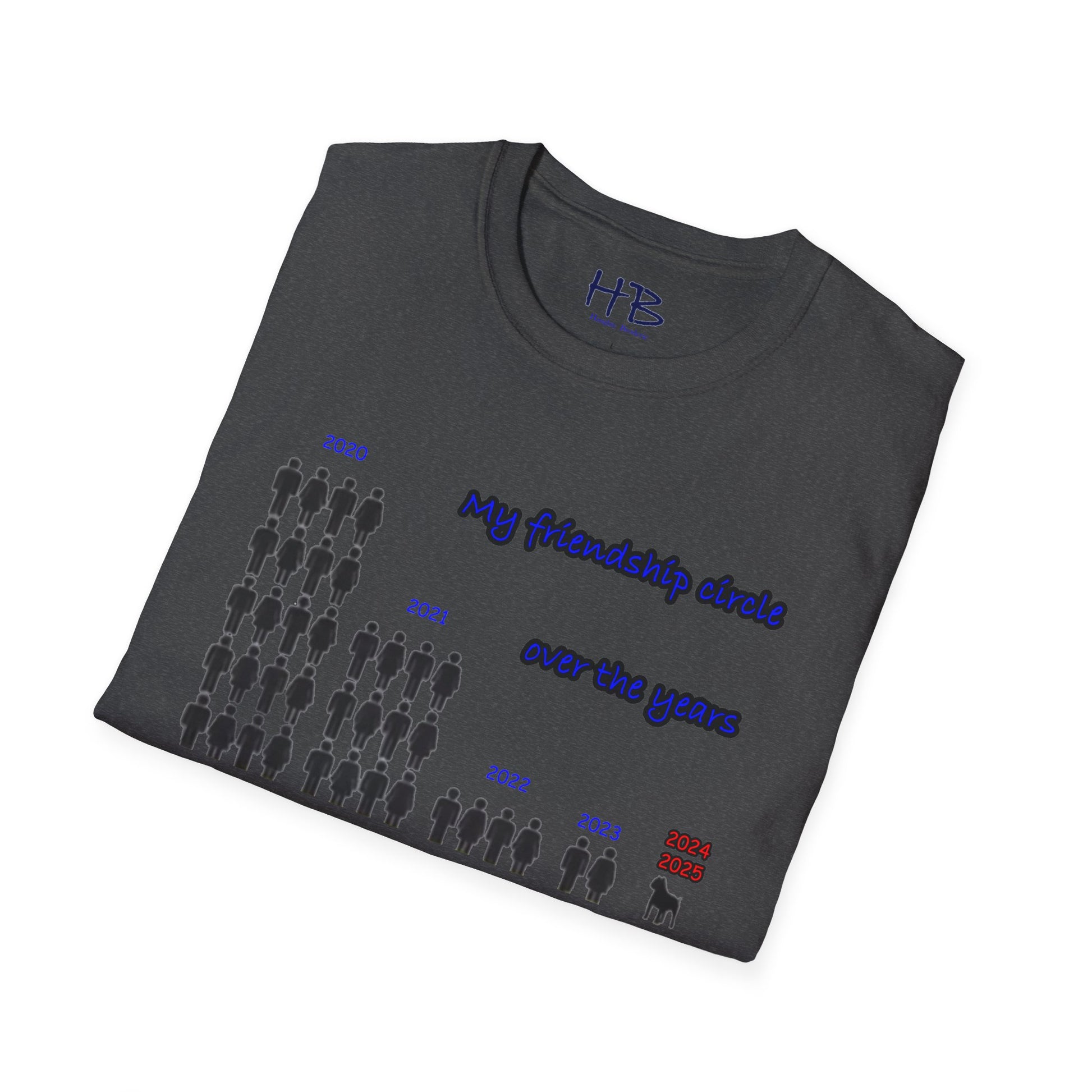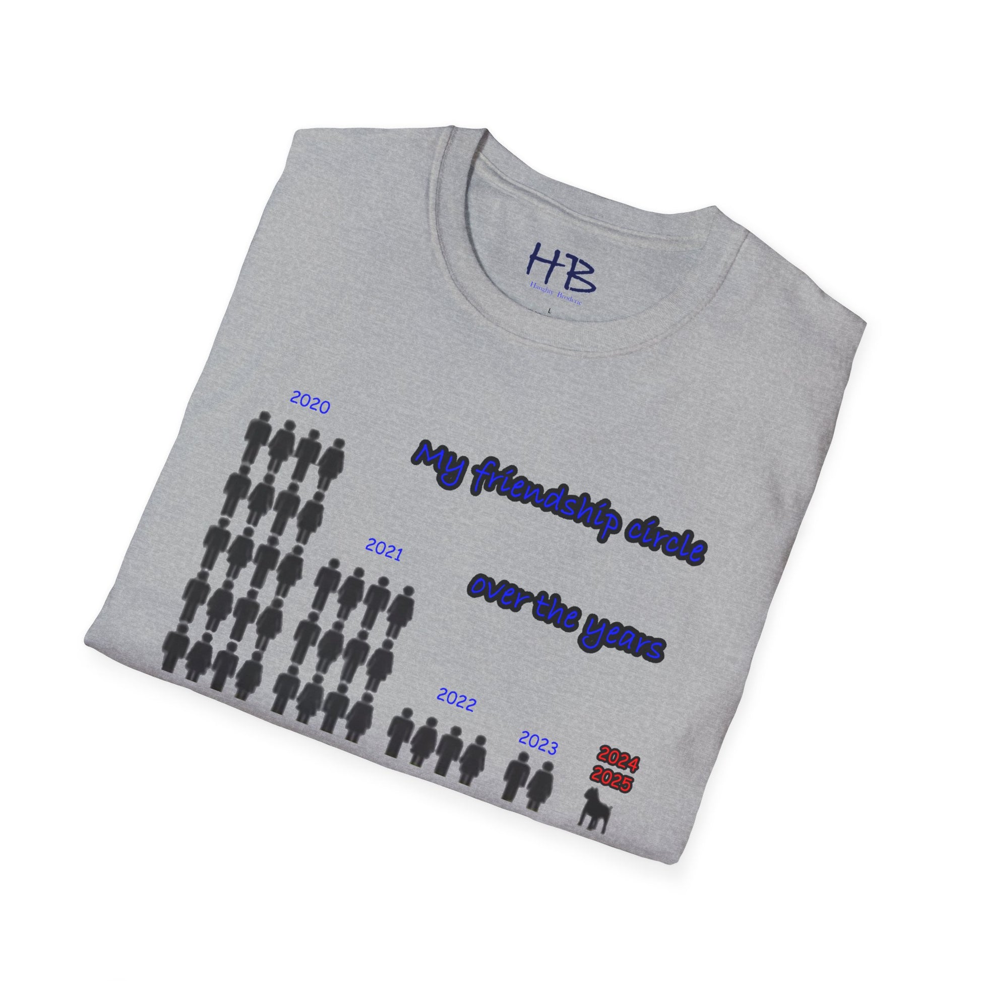 1. "Friendship Journey" Tee: Evolution of Bonds 2. "Dynamic Connections" Tee: Changing Circles 3. "Social Shifts" Tee: Yearly Evolution 4. "Relationship Timeline" Tee: Friends to Family 5. "Companion Chronicles" Tee: Pet Loyalty 6. "Social Evolution" Tee: Yearly Transition 7. "Friendship Spectrum" Tee: Shifting Dynamics 8. "Yearly Connections" Tee: Social Transformations 9. "Relationship Progression" Tee: Friends to Partners 10. "Loyal Companions" Tee: Pet Friendship 11. "Friendship Timeline" Tee: Changing Dynamics 12. "Evolving Bonds" Tee: Shifting Friendships 13. "Yearly Friendscape" Tee: Social Flux 14. "Relationship Journey" Tee: Friends to Spouse 15. "Pet Companionship" Tee: Loyalty Display 16. "Friendship Flux" Tee: Evolving Circles 17. "Yearly Transitions" Tee: Social Changes 18. "Relationship Evolution" Tee: Friendship to Family 19. "Pet Friendship Journey" Tee: Loyal Bonds 20. "Friendship Spectrum" Tee: Shifting Dynamics 21. "Yearly Connections" Tee: Evolving Relationships