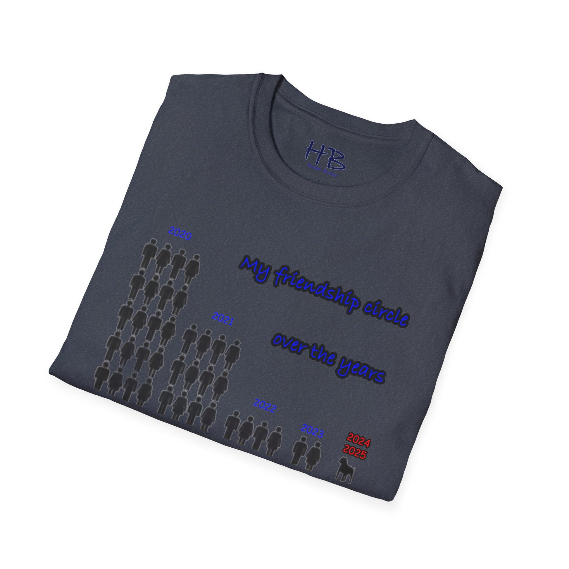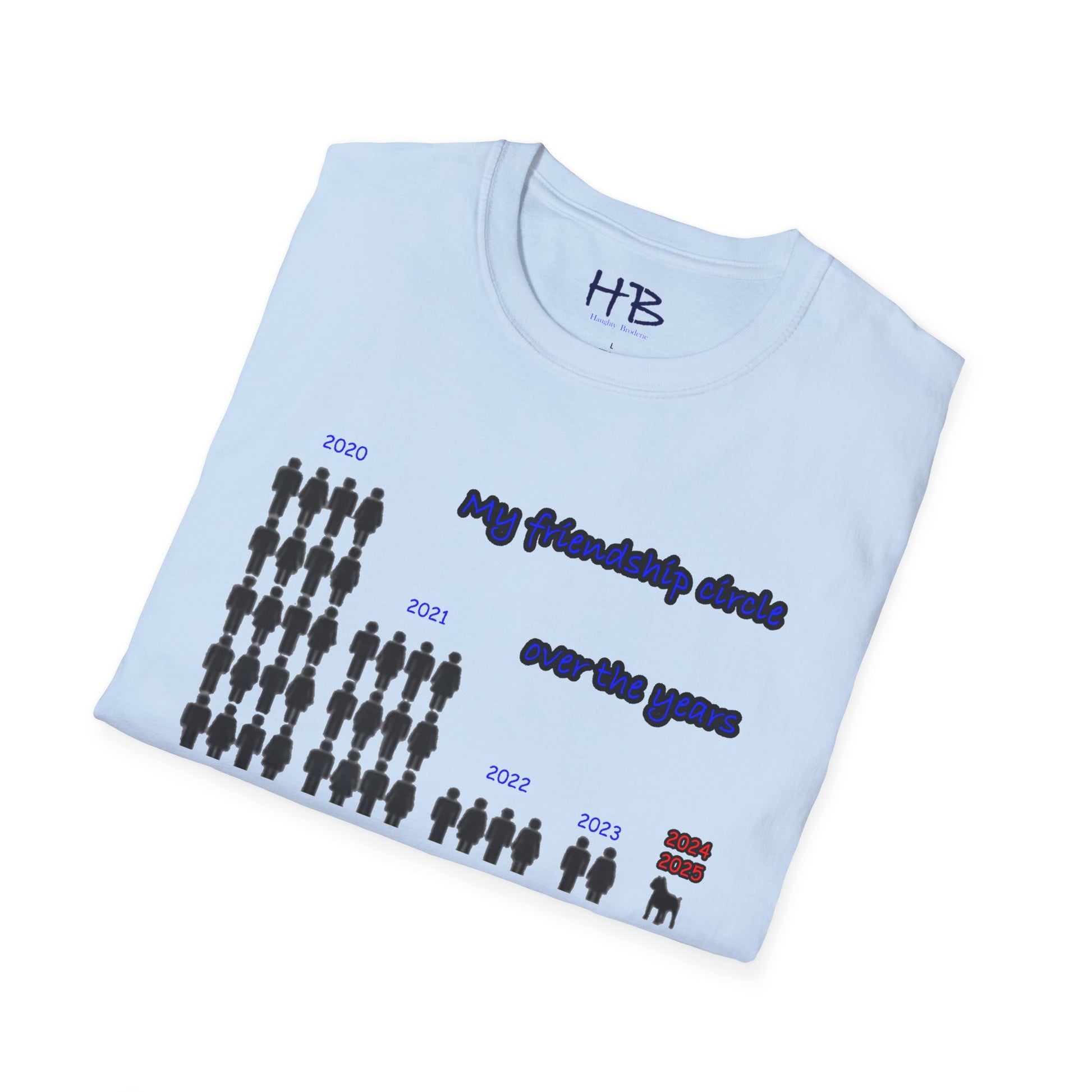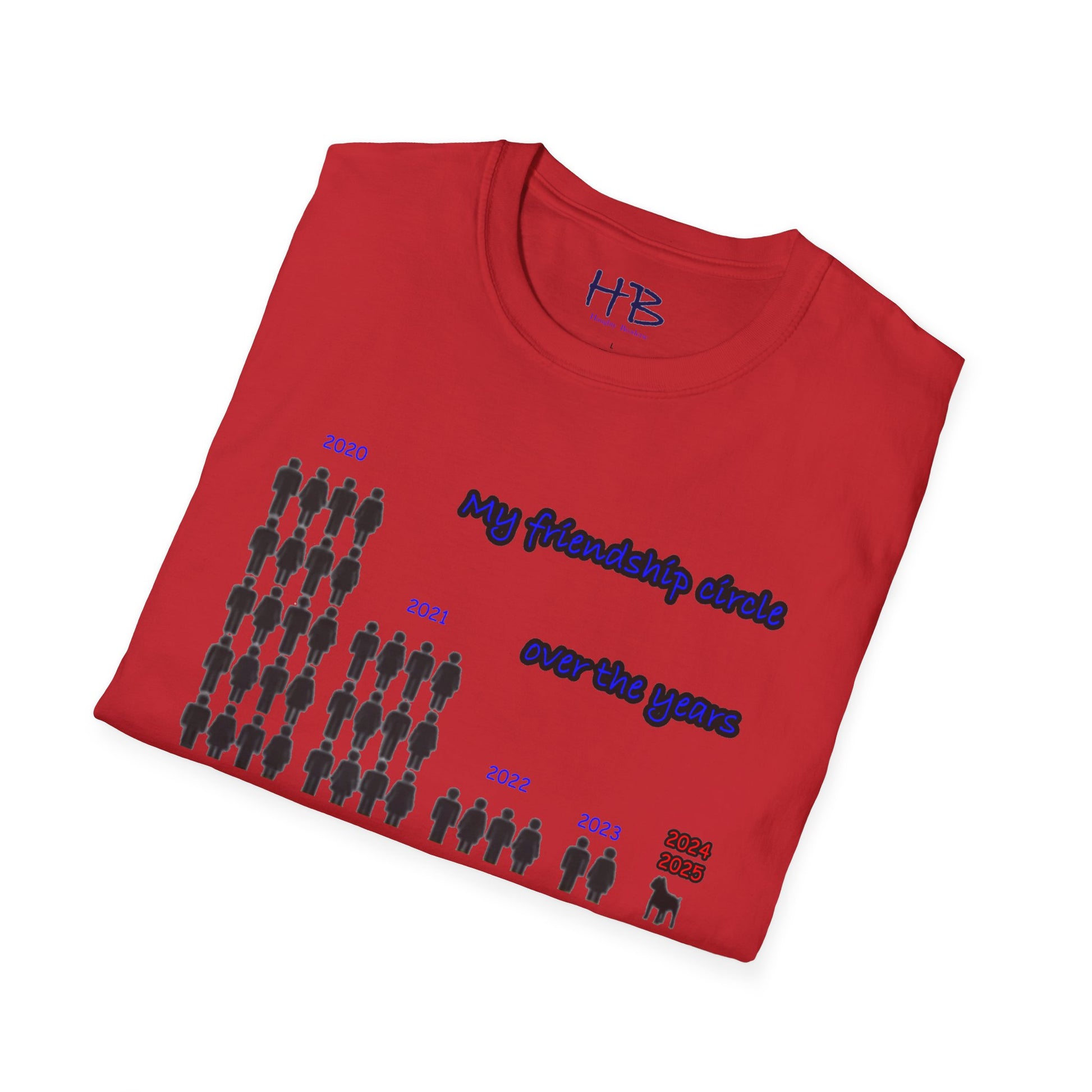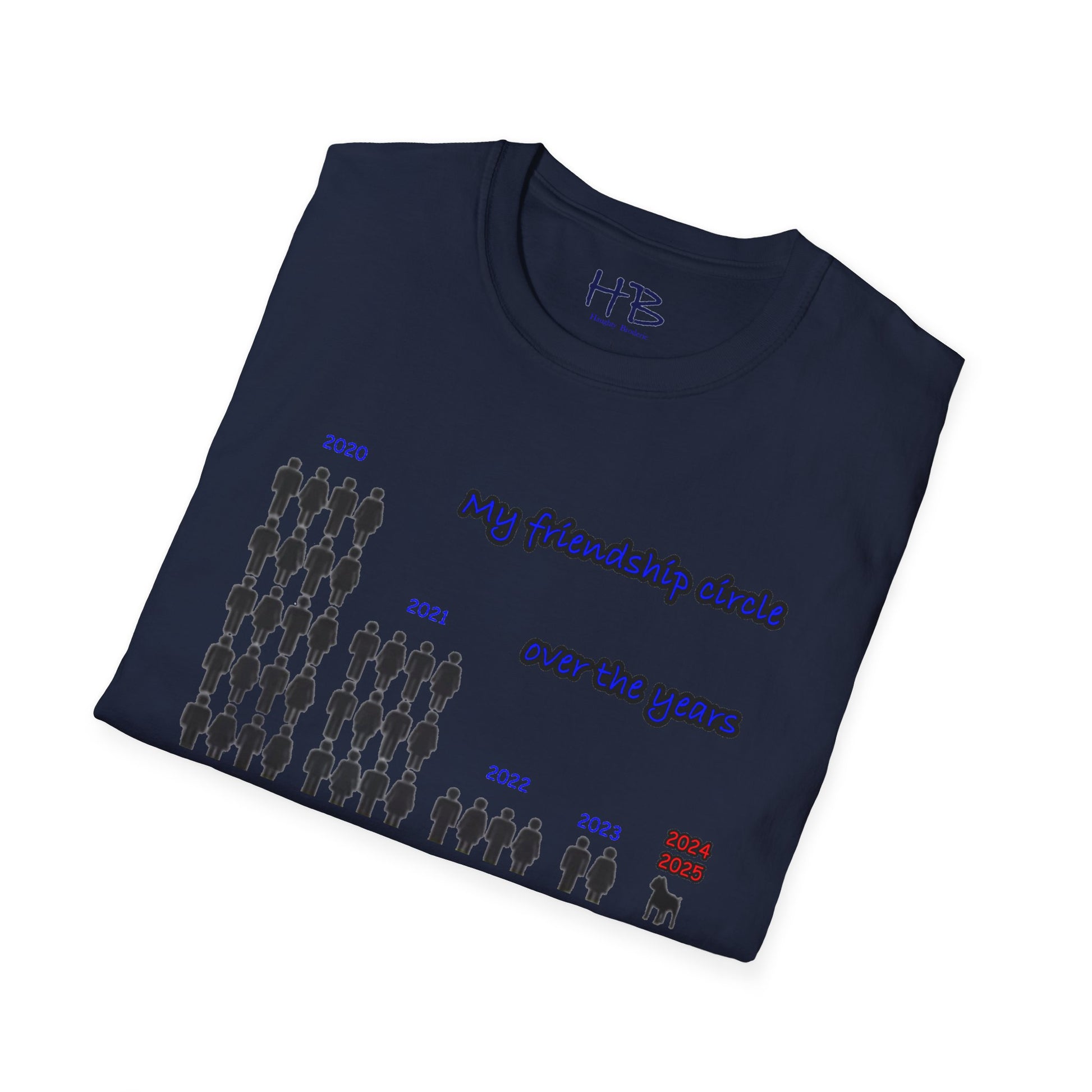 This tee shirt serves as a visual representation of the ebb and flow of our friendships and relationships throughout the years. It is a perfect conversation starter and a great way to showcase your unique sense of style. Made with high-quality materials and featuring a comfortable fit, this tee is a must-have addition to any wardrobe.