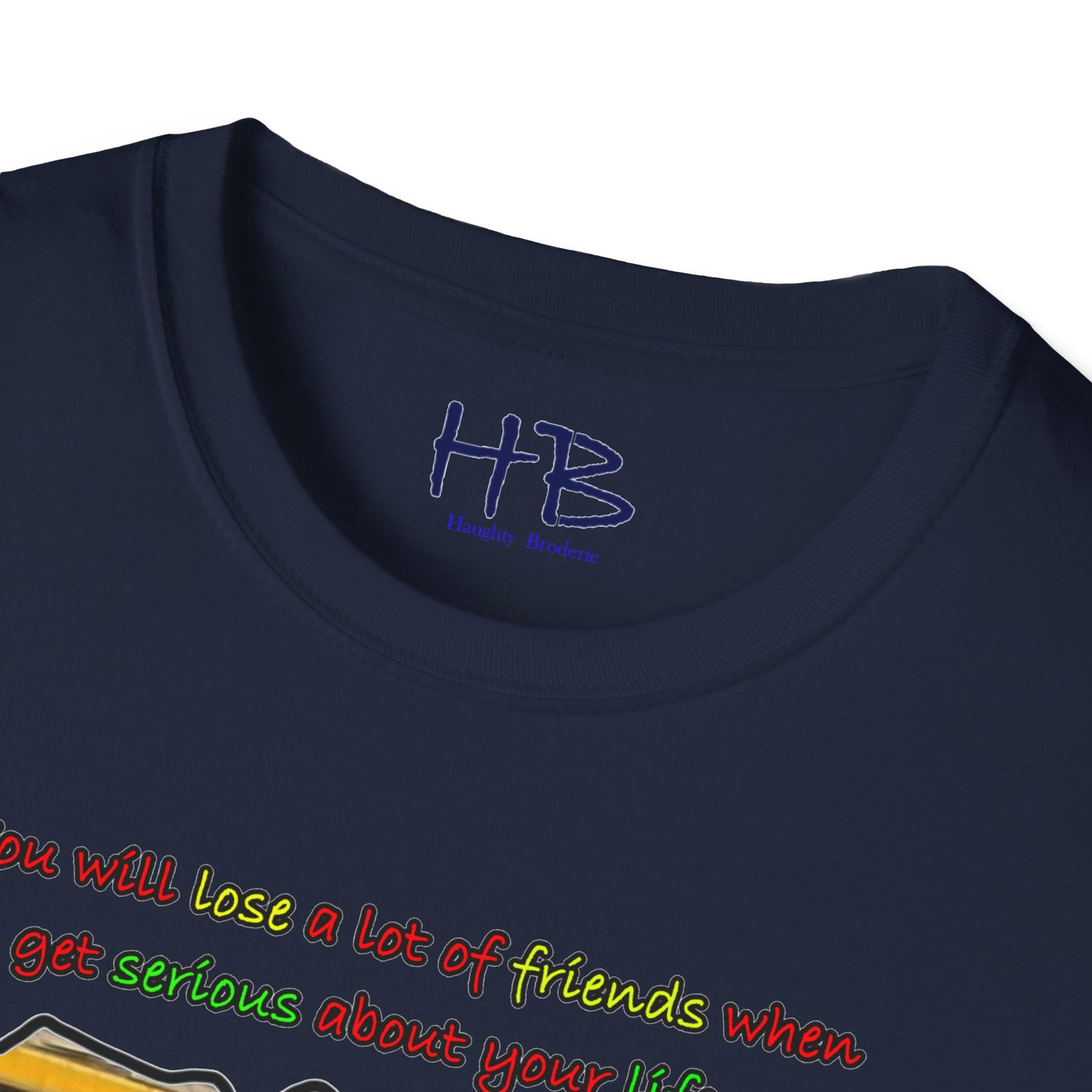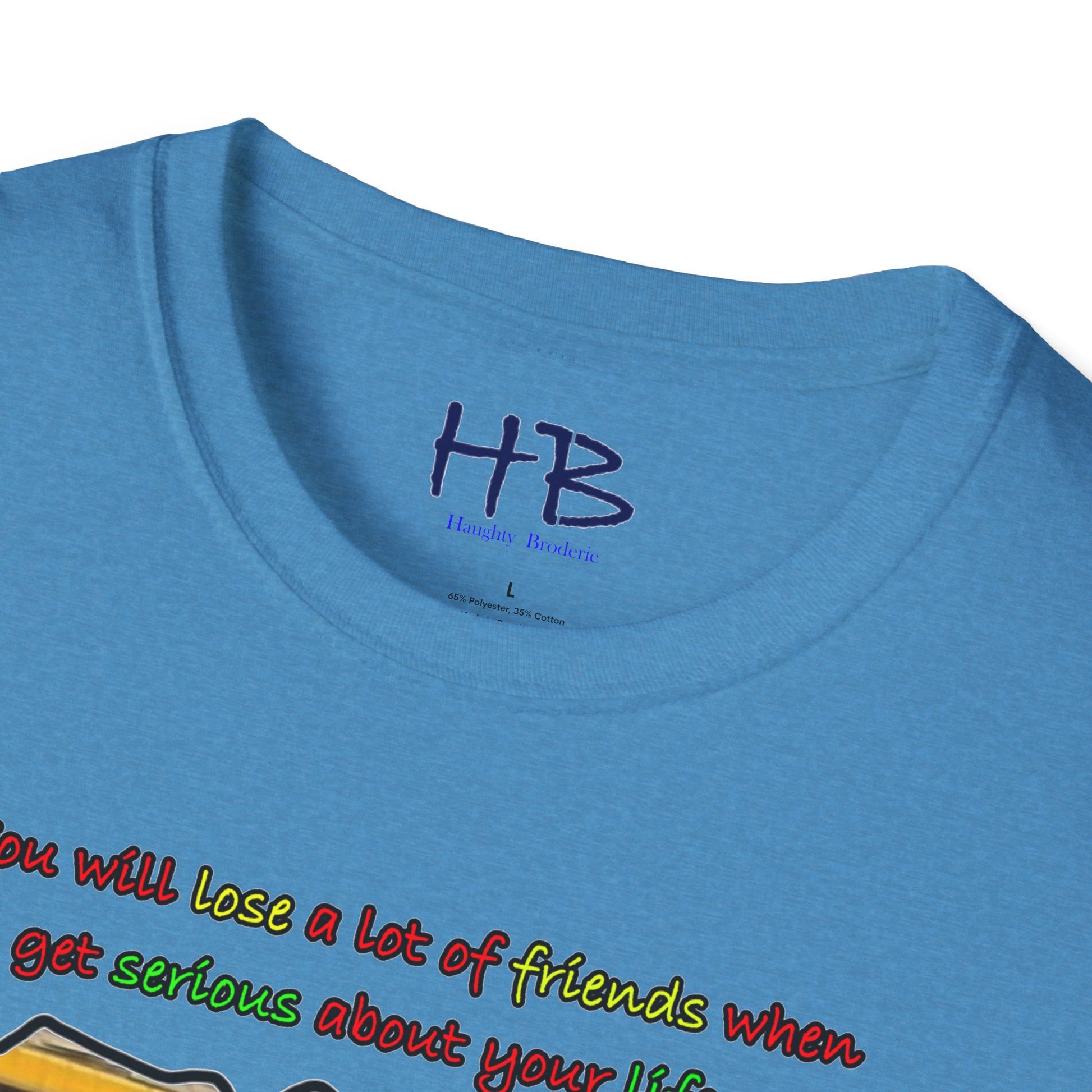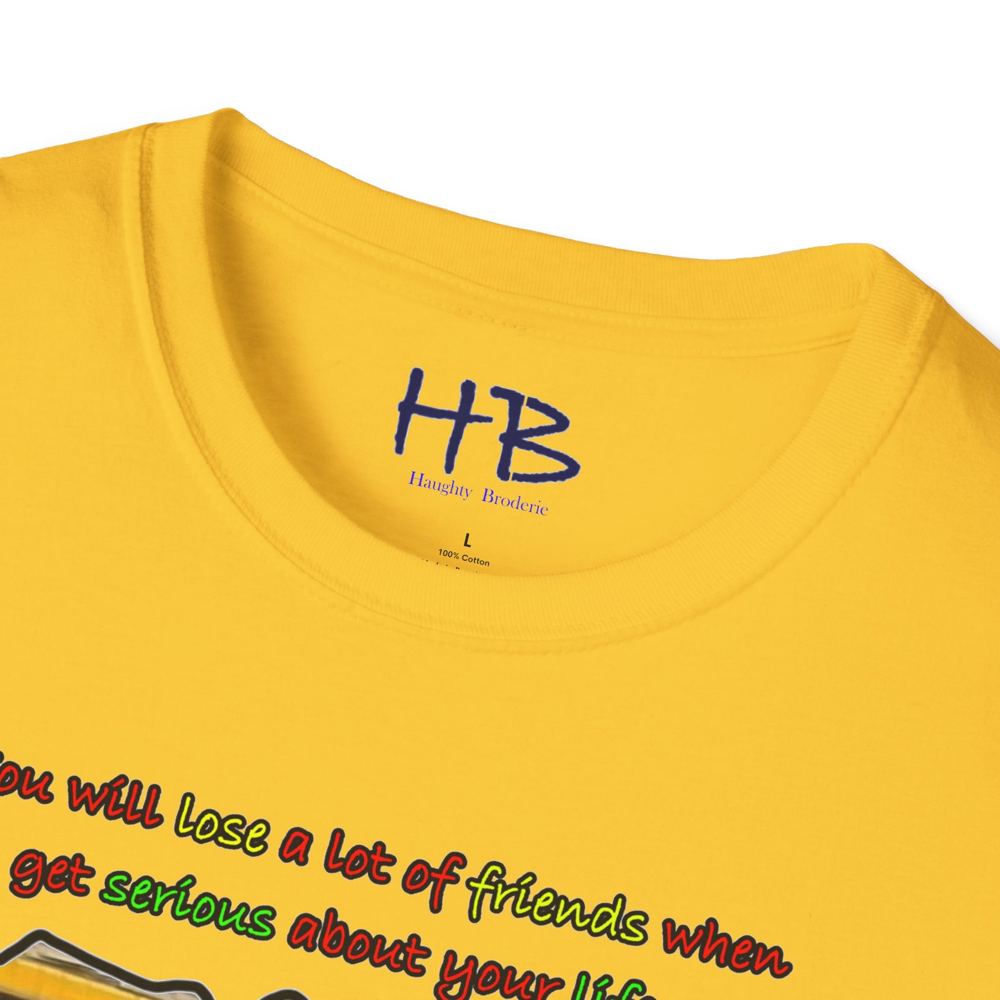 Introducing our trendy t-shirt that embodies the message of prioritizing your life goals and the sacrifices that come with it. The striking image on the shirt portrays a massive coach filled with passengers, all gazing down at a verdant and flamboyant Lamborghini, consumed by envy. The text overlay boldly declares that dedicating oneself to life goals can lead to losing friends, and highlights the contrast between the two-seater Lamborghini and the 50-seater bus. This image symbolizes the idea that when you pursue your passions and ambitions, you may have to leave behind people who do not share the same aspirations.