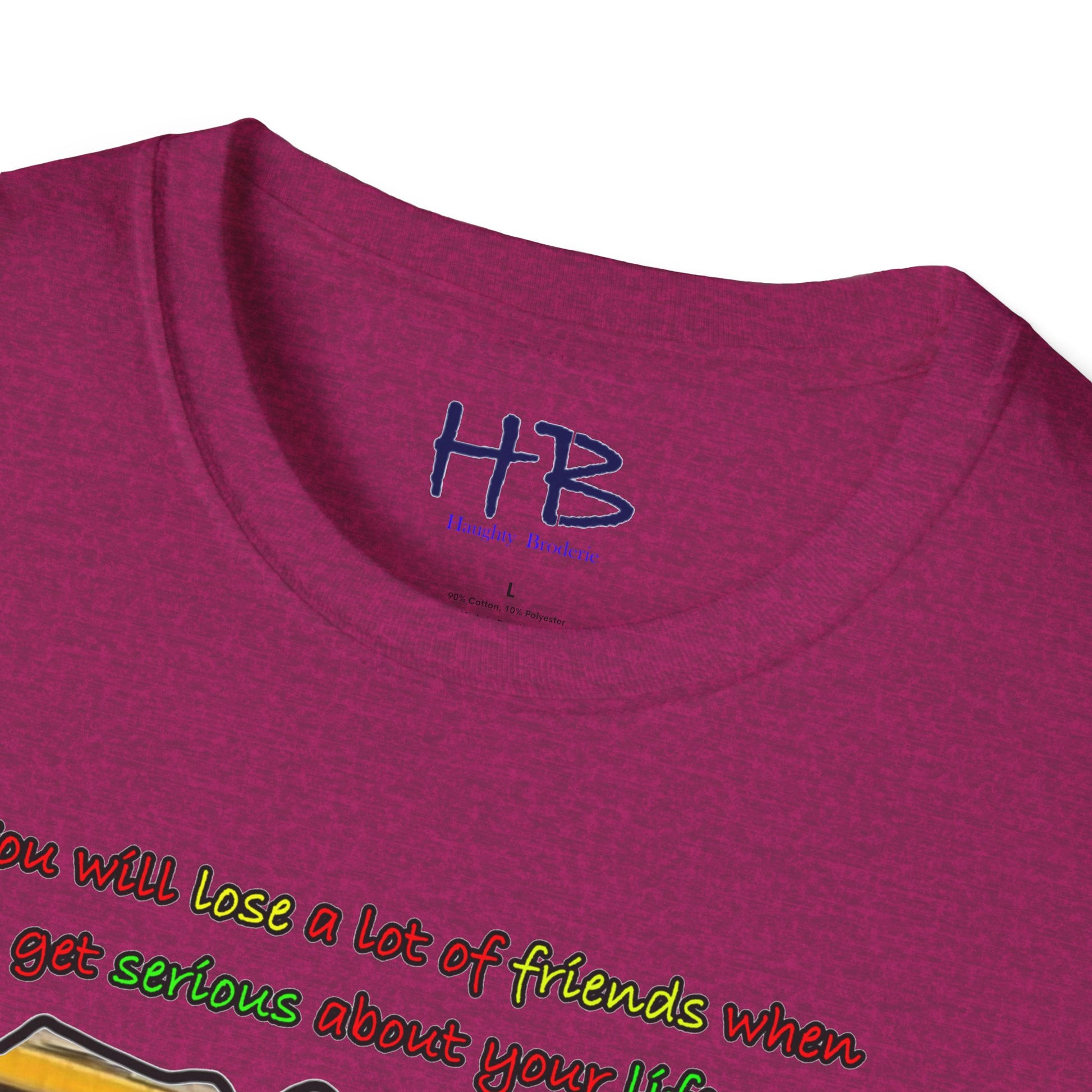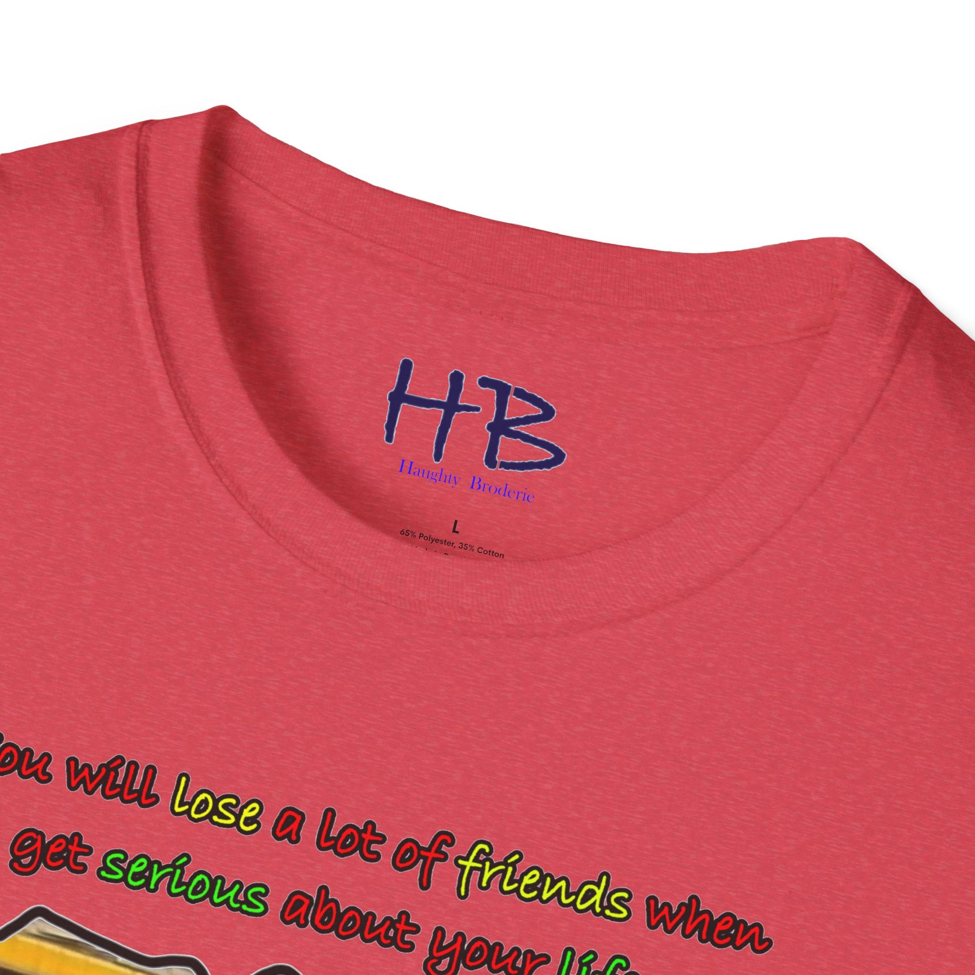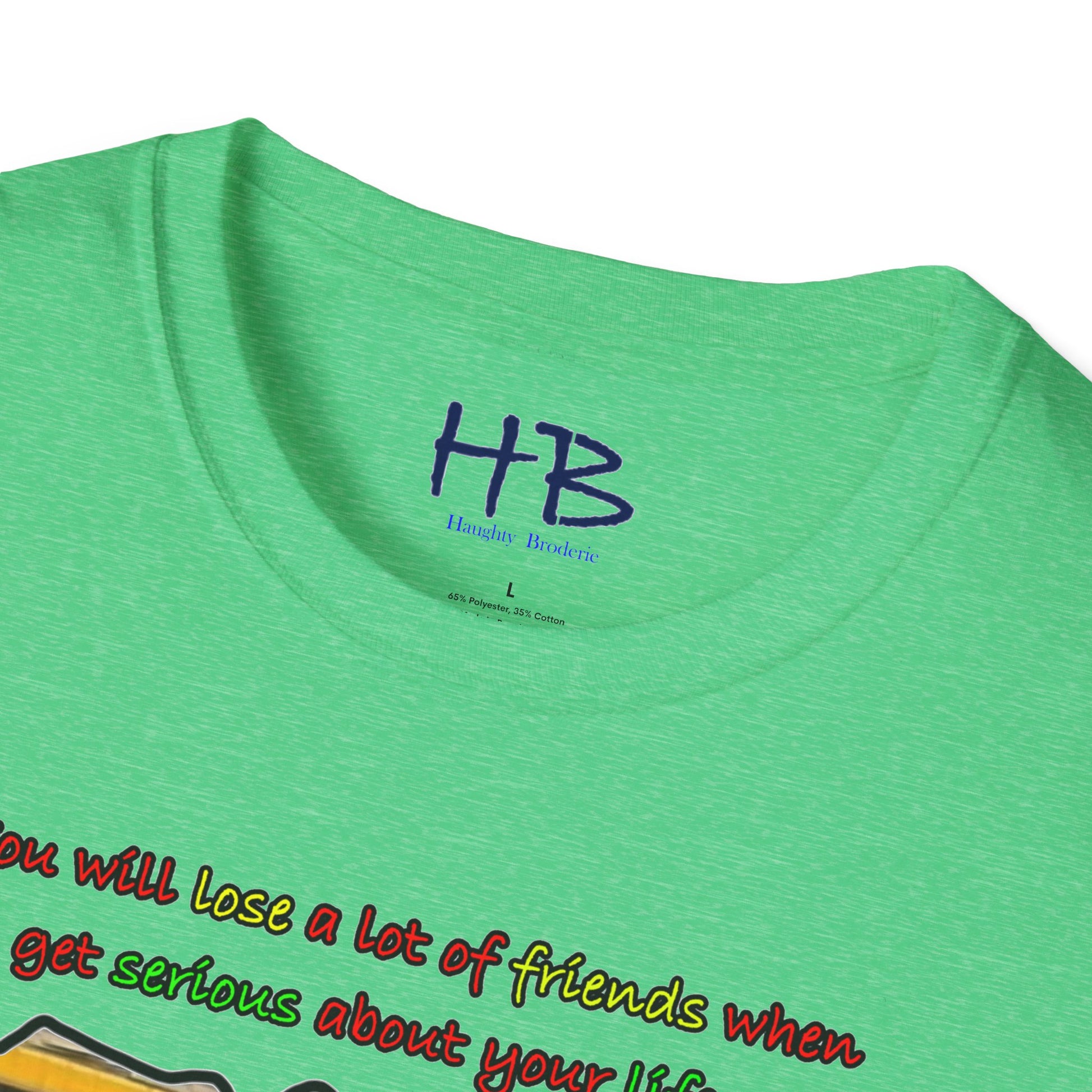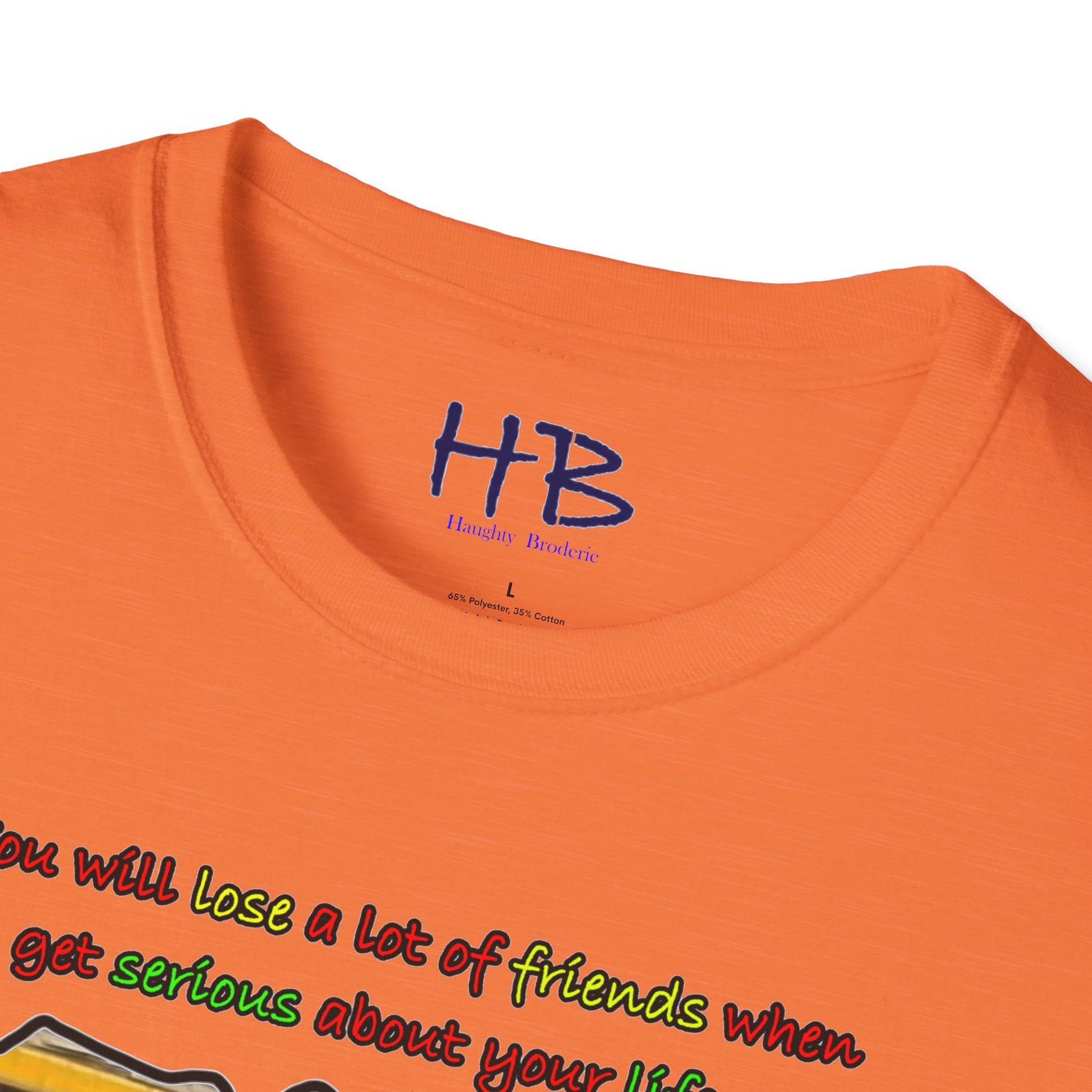 Introducing our trendy t-shirt that embodies the message of prioritizing your life goals and the sacrifices that come with it. The striking image on the shirt portrays a massive coach filled with passengers, all gazing down at a verdant and flamboyant Lamborghini, consumed by envy. The text overlay boldly declares that dedicating oneself to life goals can lead to losing friends, and highlights the contrast between the two-seater Lamborghini and the 50-seater bus. This image symbolizes the idea that when you pursue your passions and ambitions, you may have to leave behind people who do not share the same aspirations.