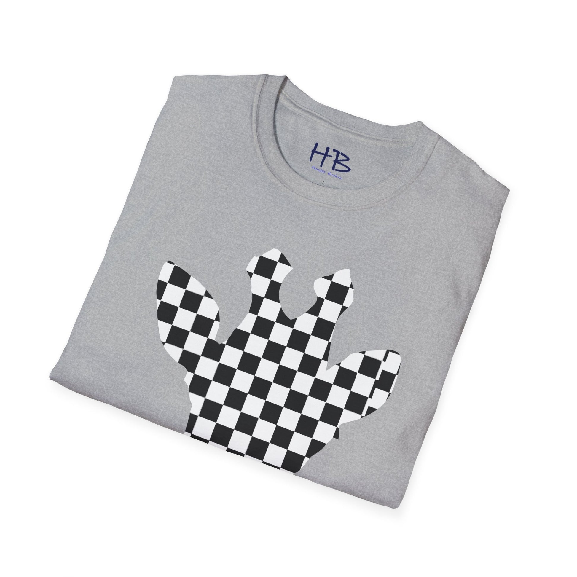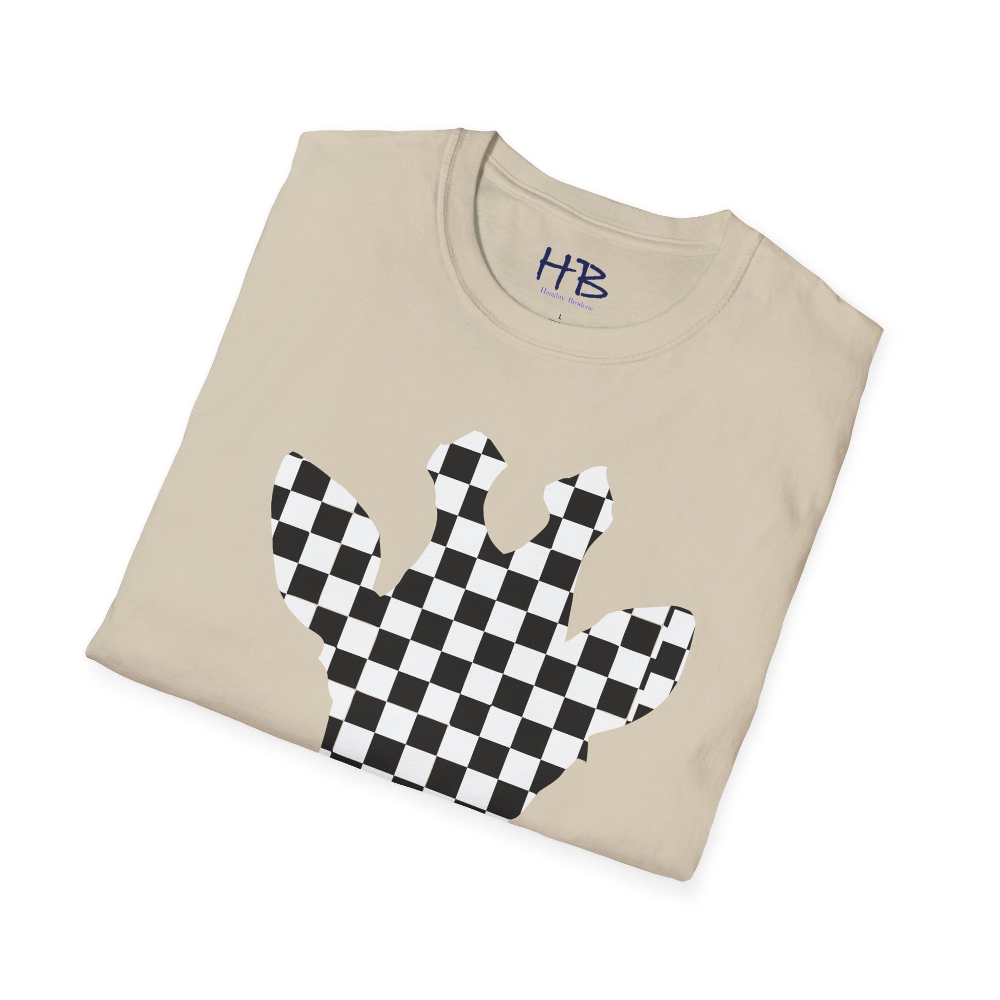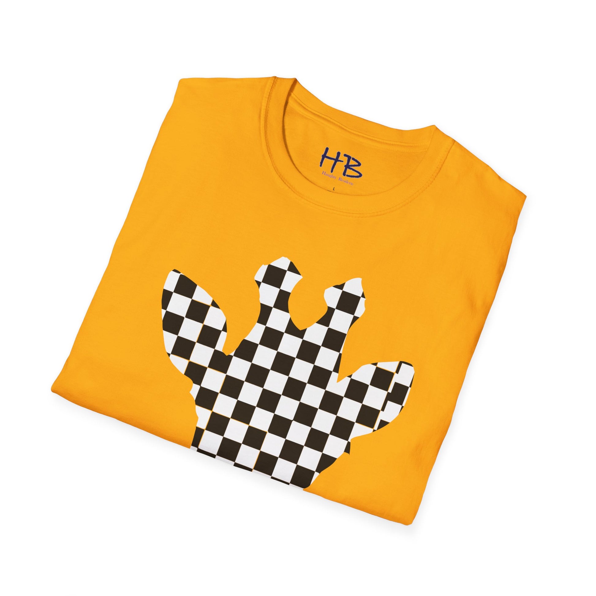 Step into the world of elegance and style with our latest creation: a remarkable tee shirt featuring a shaded drawing of a majestic giraffe. The intricate design showcases the head of the giraffe, beautifully composed with black and white checkered modules that fill its body, creating a visually captivating effect.