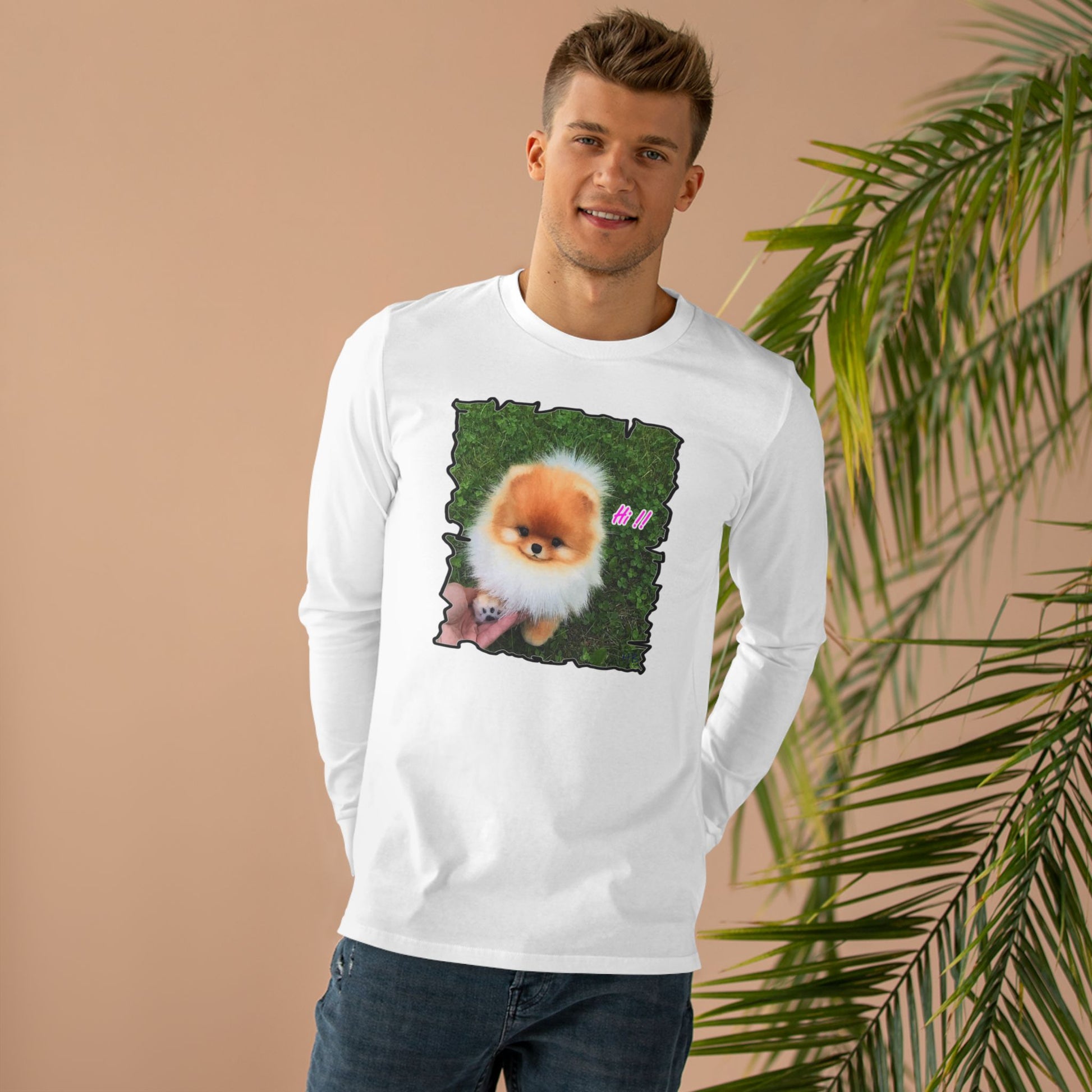 "Hi !!" Tiny adorable Bichon Maltese (Men's Base Longsleeve Tee - All-Season Wear)