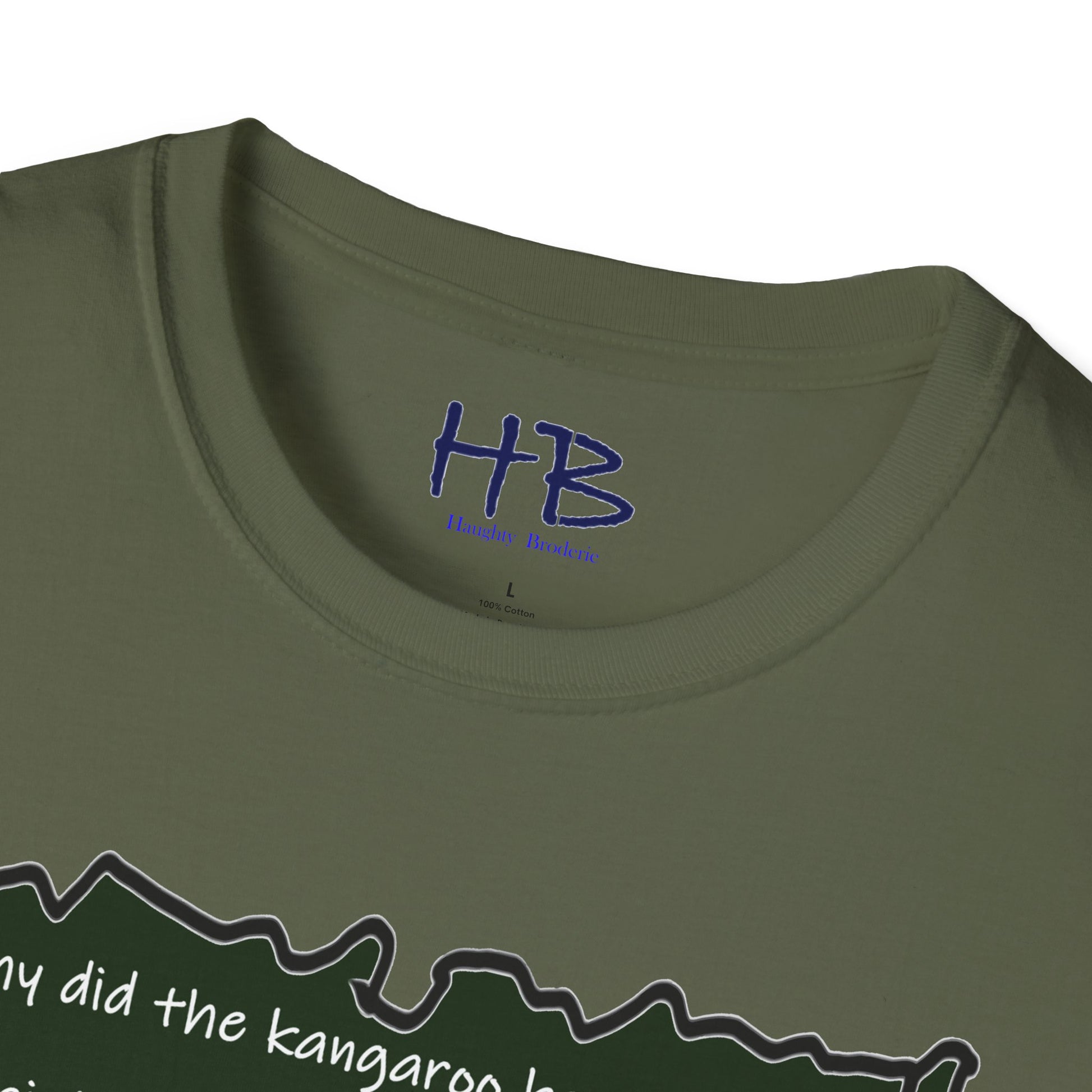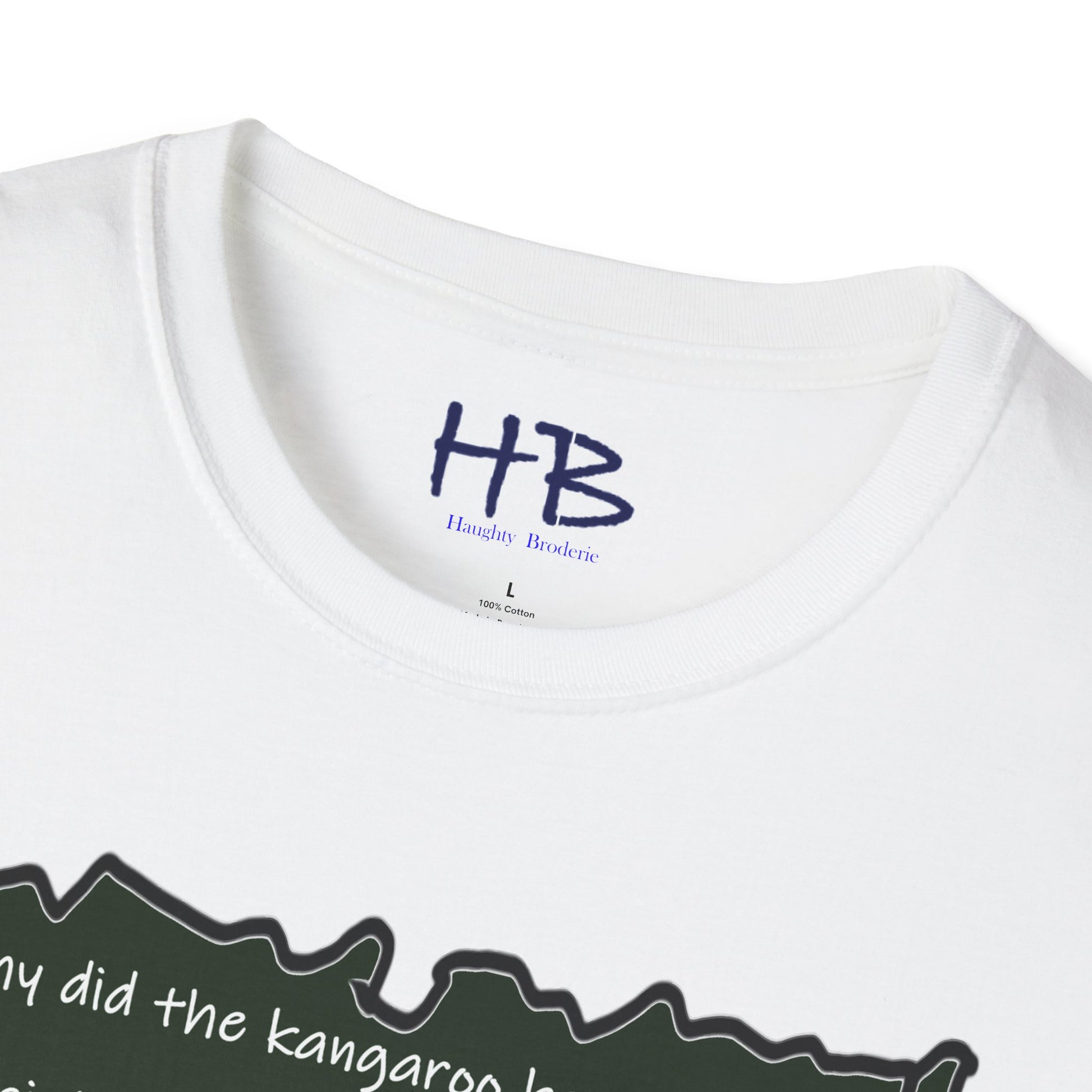 Introducing our incredible, one-of-a-kind garment – a wearable work of art! This exquisite piece showcases an absolutely stunning kangaroo, resplendent in its natural habitat, surrounded by lush, vibrant grasslands. Its colossal ears stand out like nature's own satellite dishes, tuning in to the world's secrets. And to add a touch of whimsy, we've paired this mesmerizing image with a light-hearted joke that's bound to leave you and those around you in stitches.