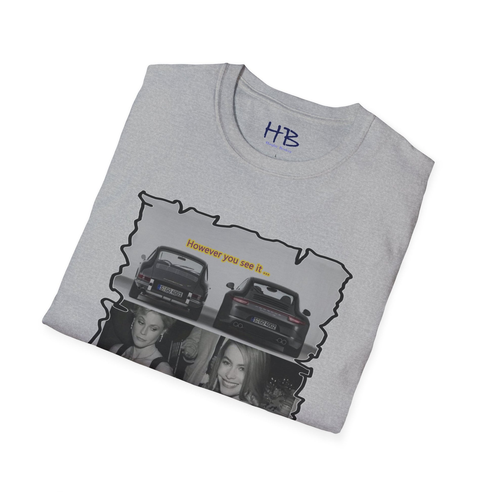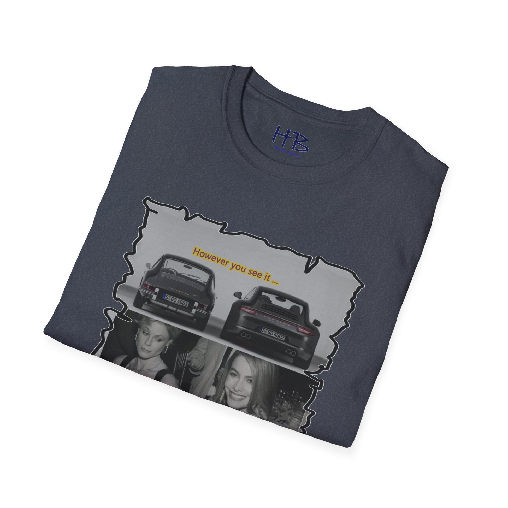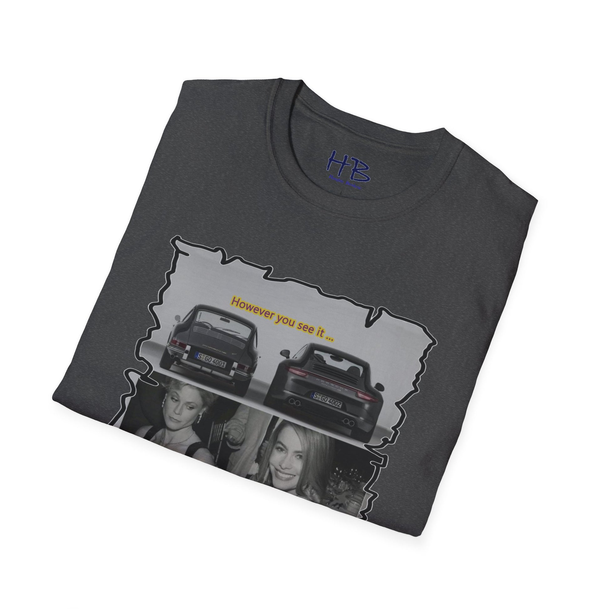 And what better way to show off your appreciation for classic cars and beauty than by wearing it on your chest? This tee shirt is made from high-quality materials, ensuring that it feels comfortable and lasts for a long time. Get yours today and make a statement with your style! "Porsche Classics vs. Modern: A Timeless Tee for Car Enthusiasts"