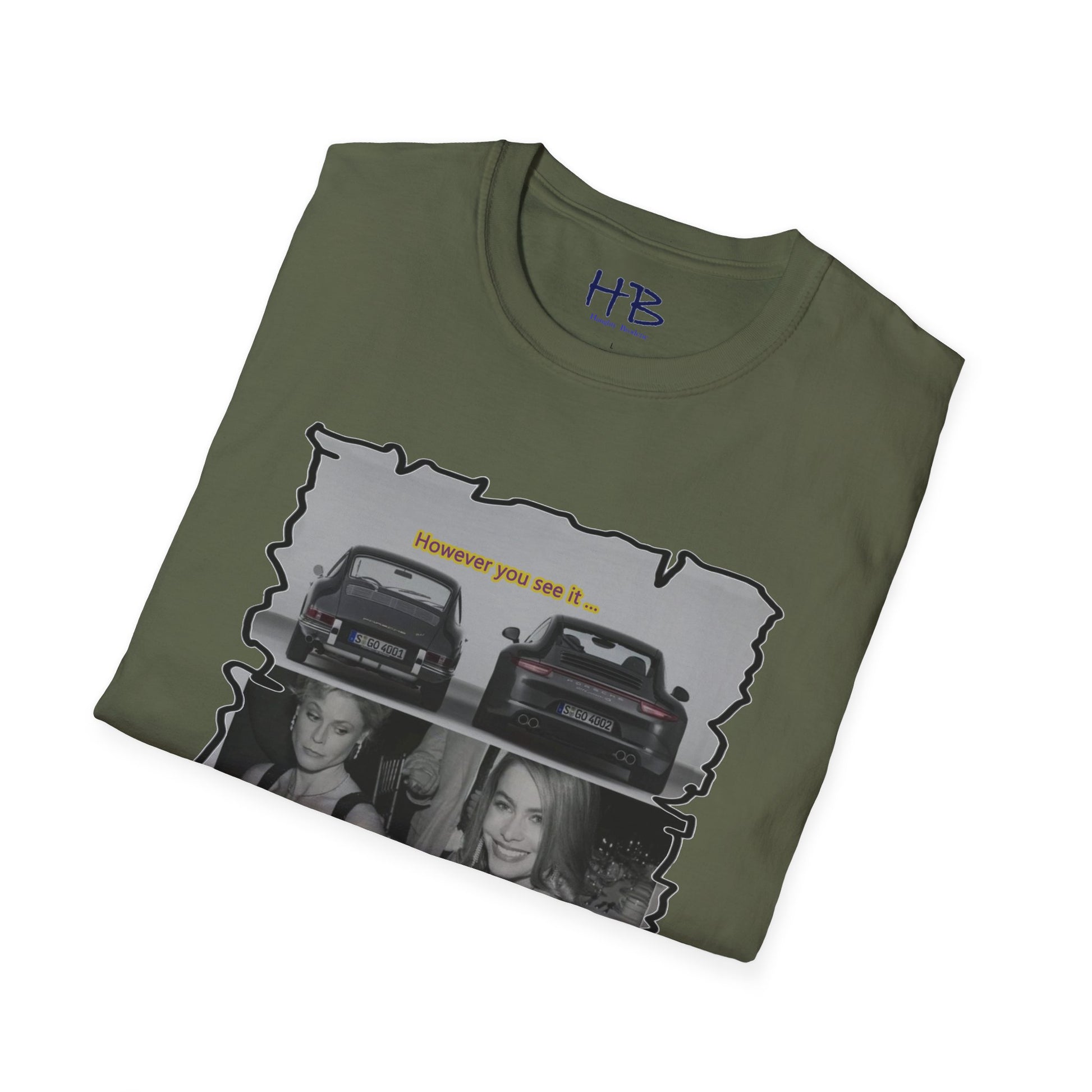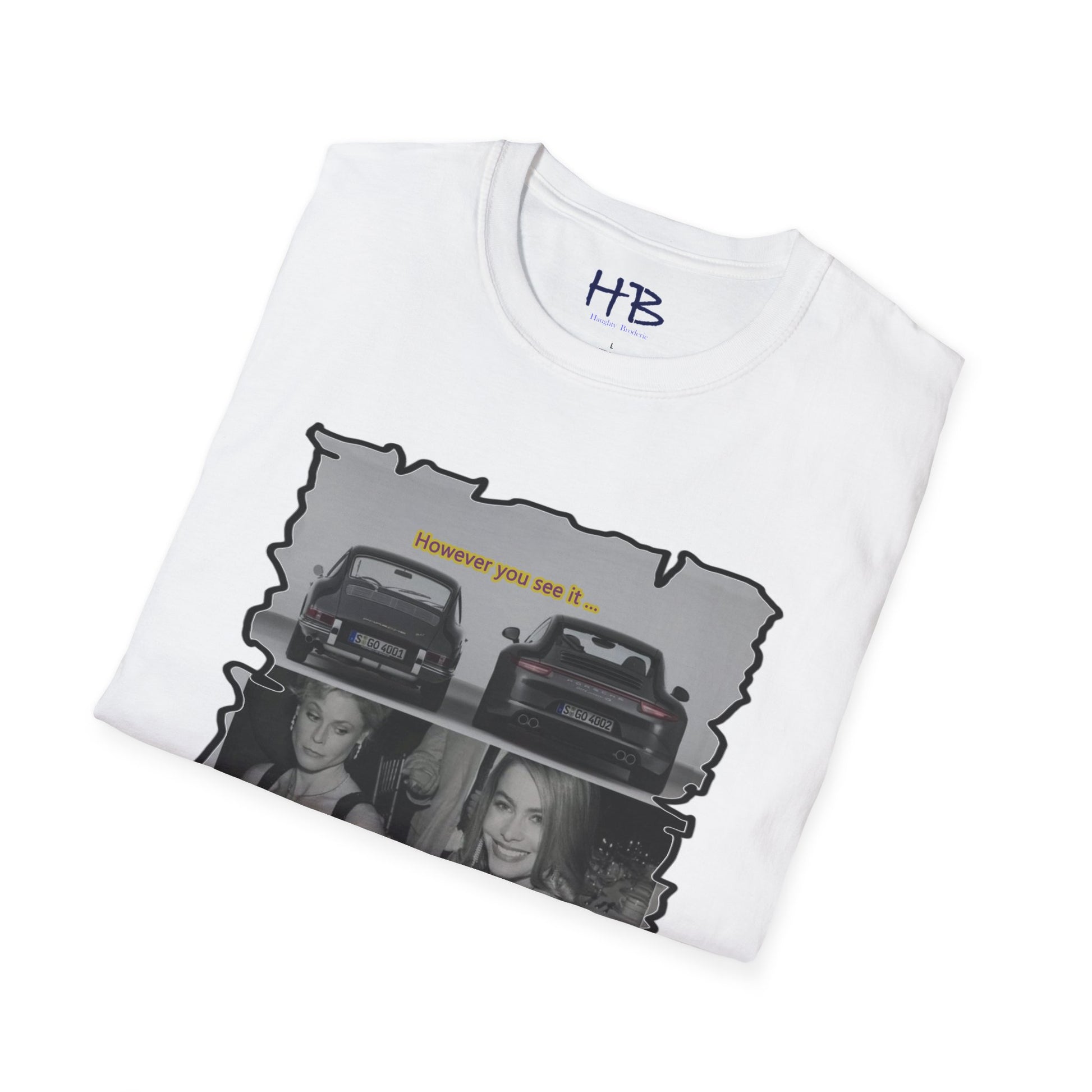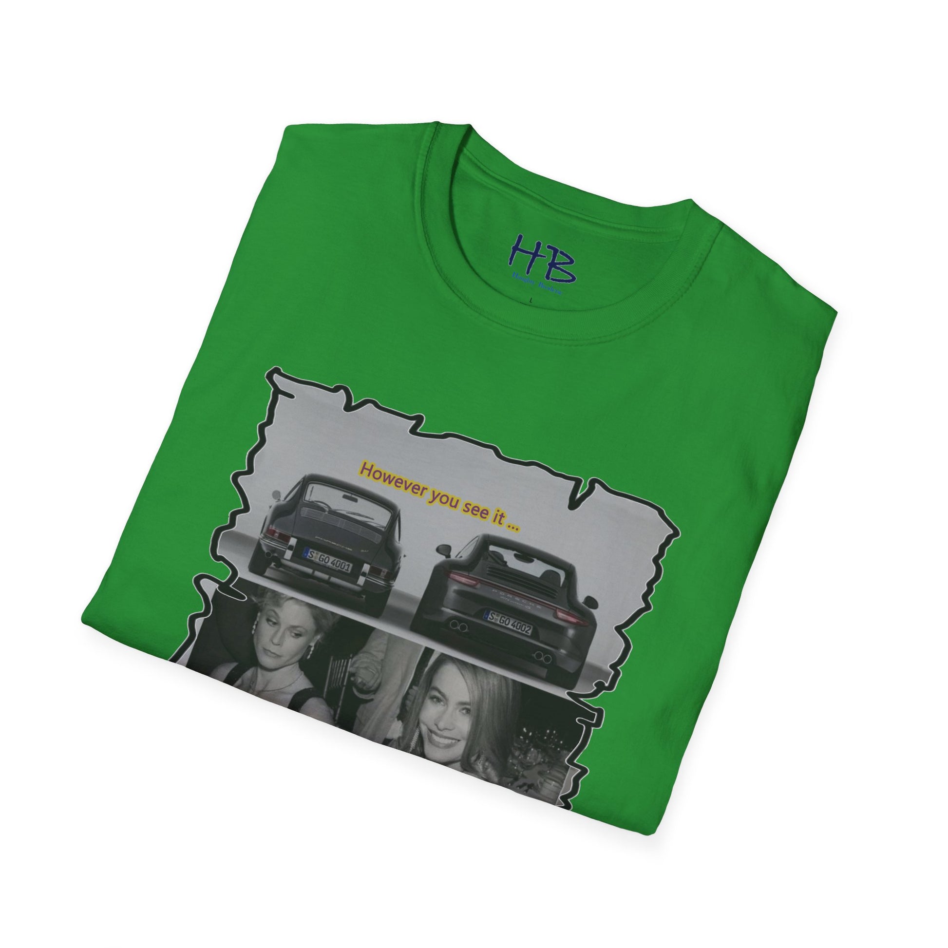 And what better way to show off your appreciation for classic cars and beauty than by wearing it on your chest? This tee shirt is made from high-quality materials, ensuring that it feels comfortable and lasts for a long time. Get yours today and make a statement with your style! "Porsche Classics vs. Modern: A Timeless Tee for Car Enthusiasts"