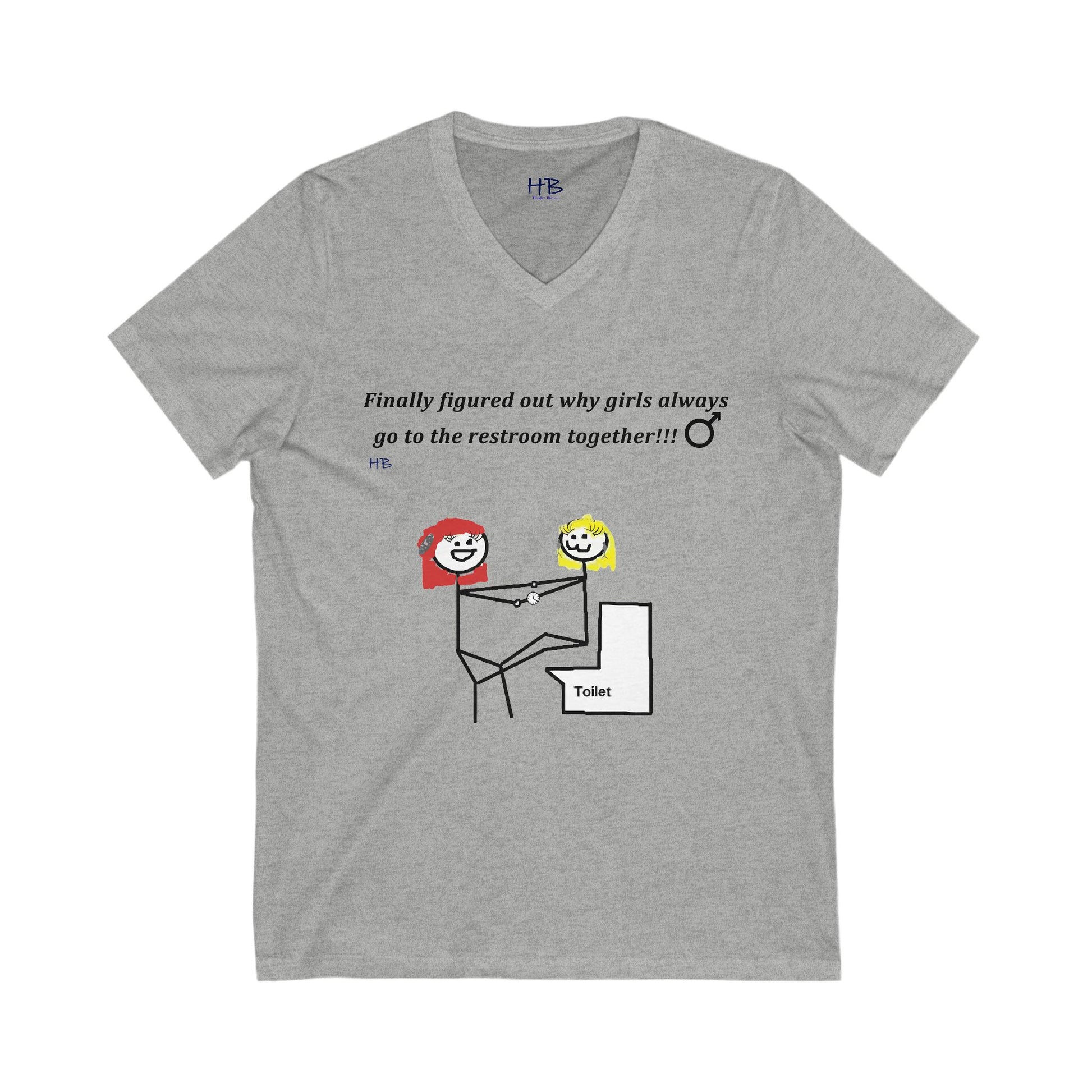 Humorous Restroom Companions Revelations (Unisex Jersey Short Sleeve V-neck - Comfortable Everyday Wear)
