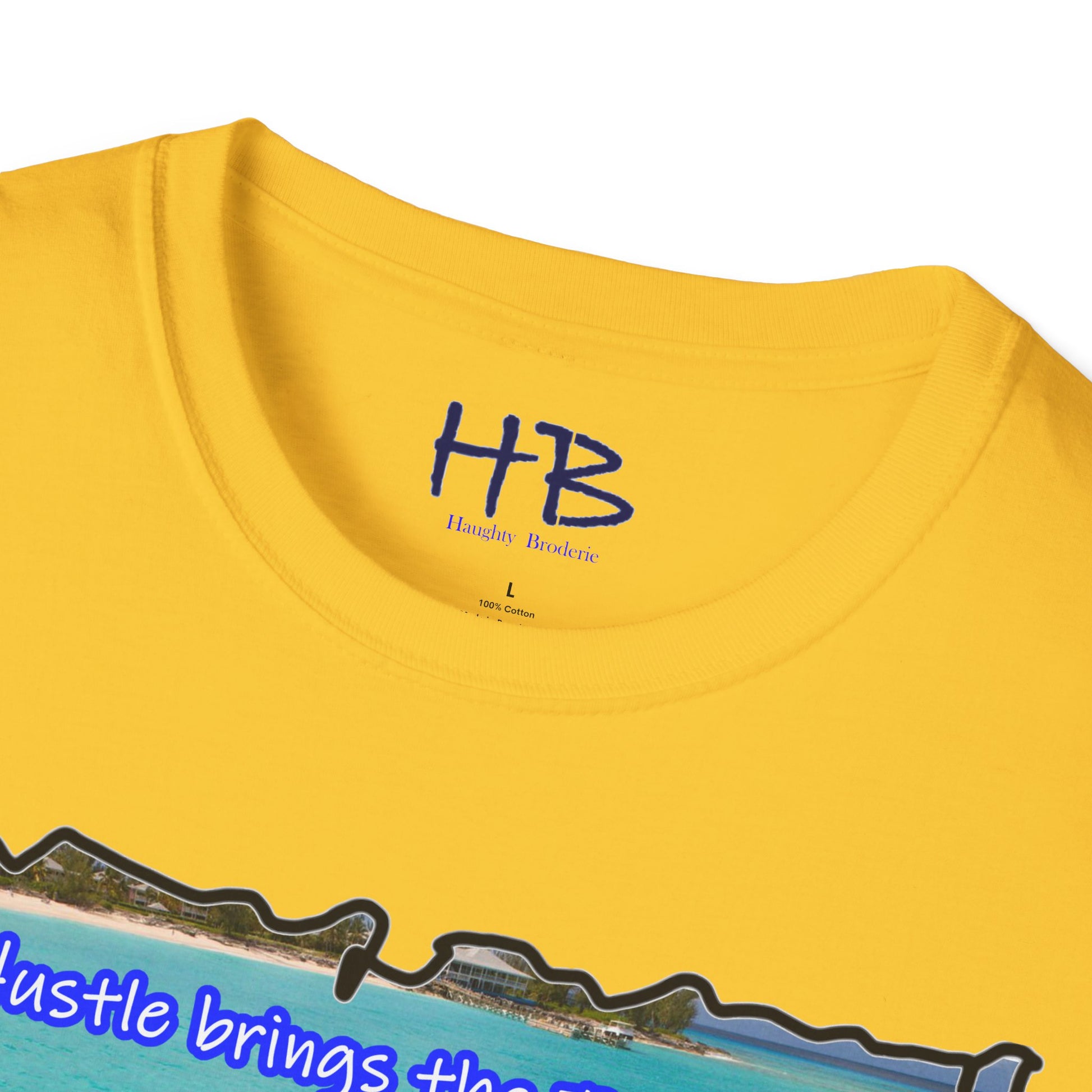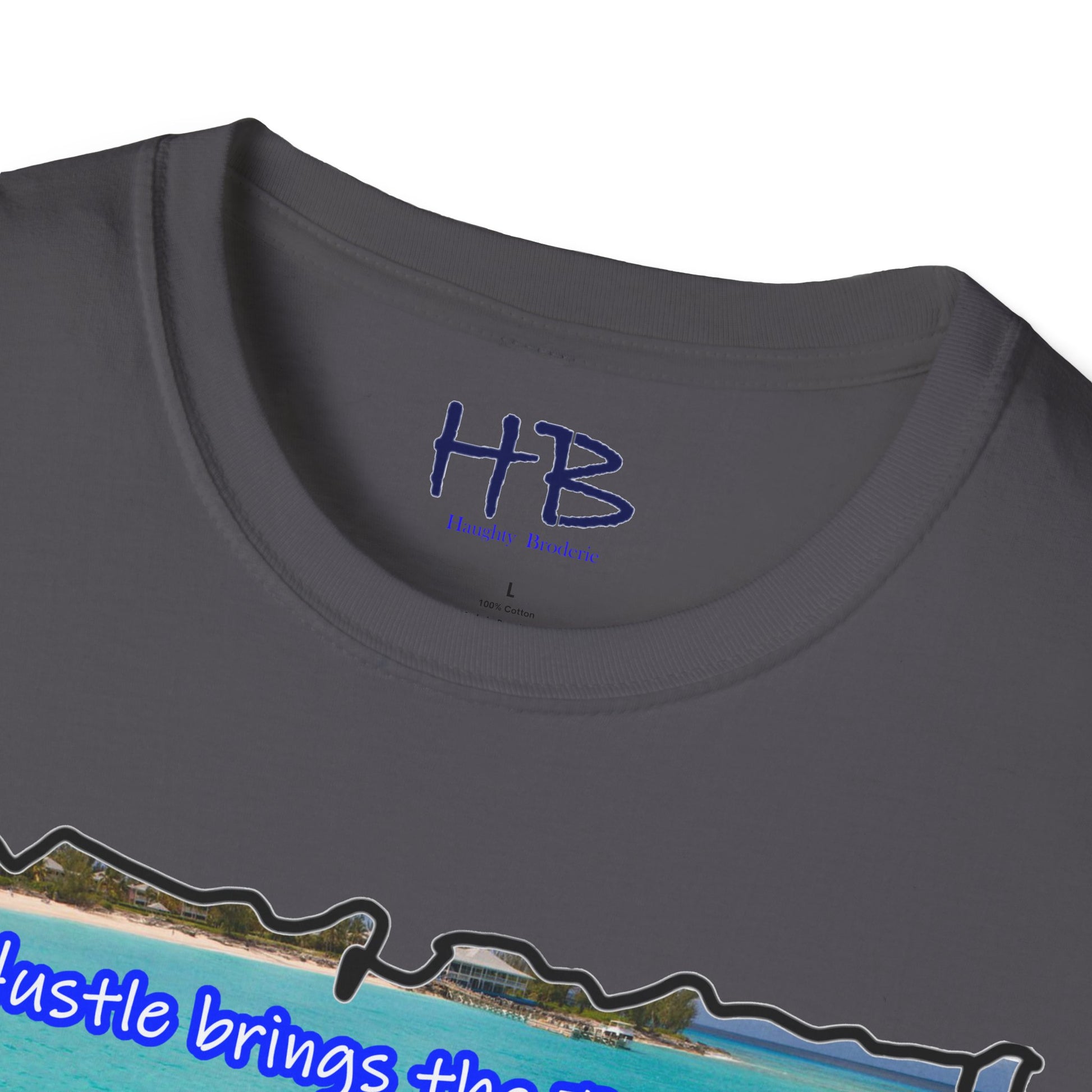 Elevate your style and mindset with this t-shirt, a tangible reminder that your hustle is the key to unlocking the treasures of life. Embrace the spirit of adventure, embody the pursuit of success, and let the world witness your dedication through the lens of this captivating Bahamian masterpiece.
