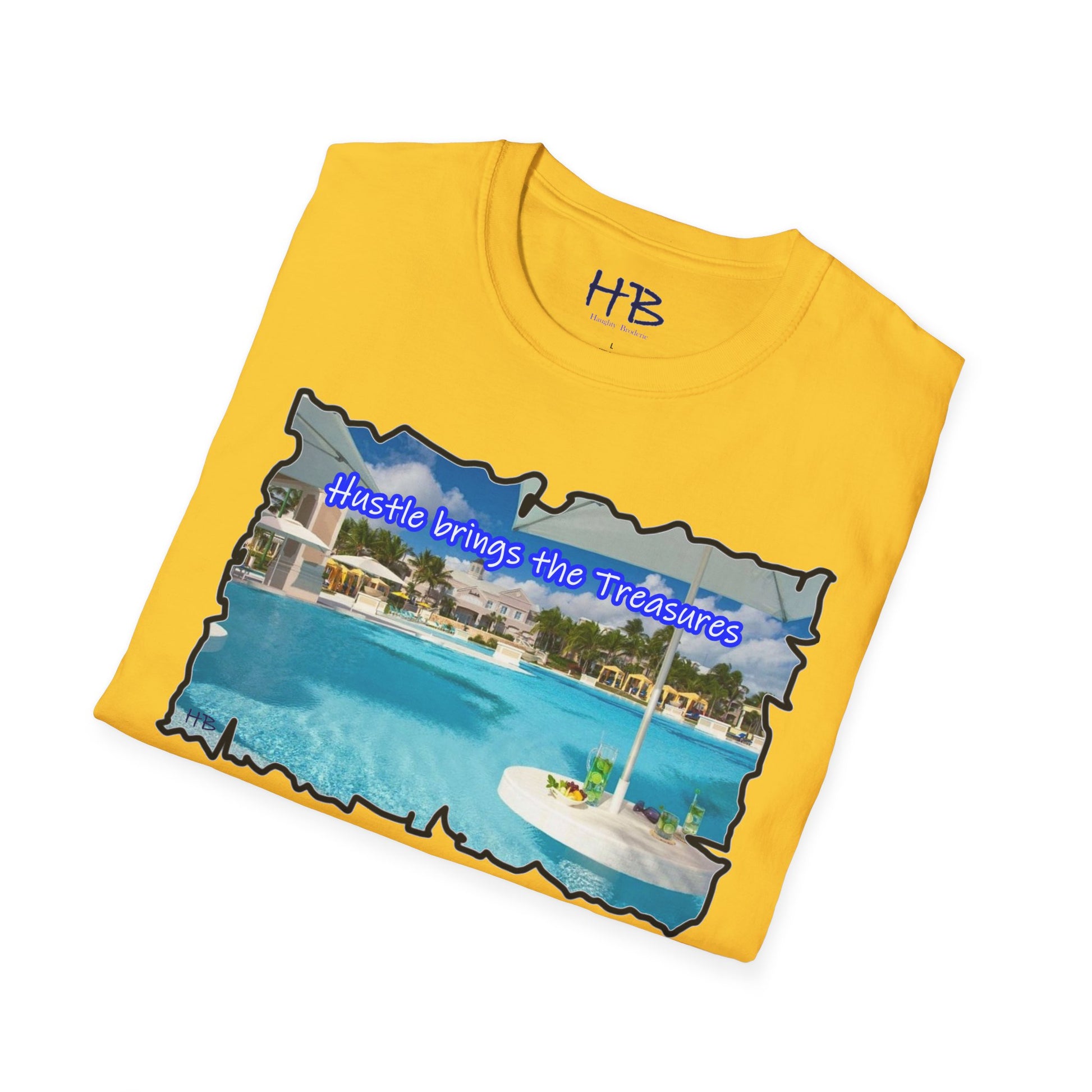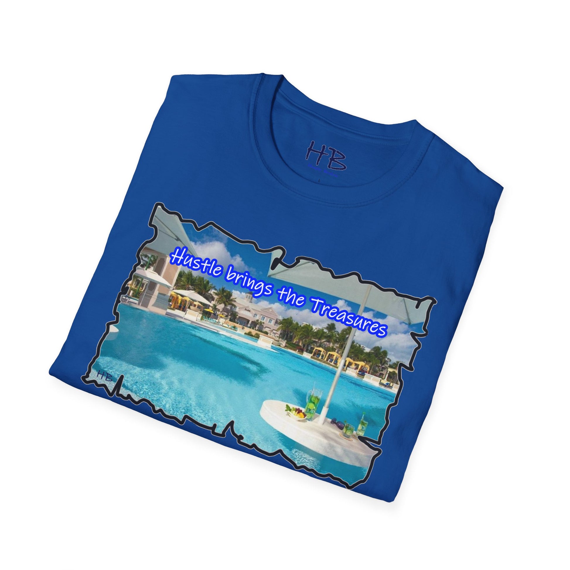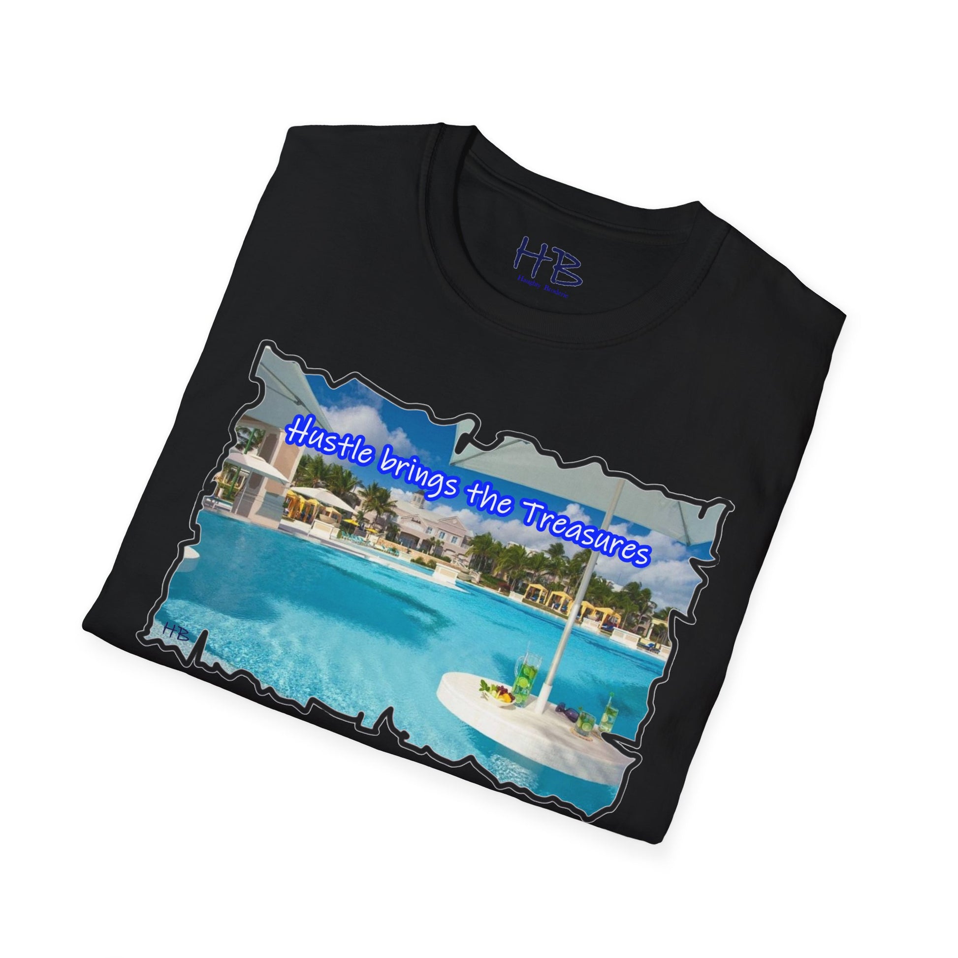 Embark on a sartorial journey with our exclusive "Hustle brings the Treasures" masterpiece, a wearable ode to the relentless pursuit of idyllic paradises. Crafted with the finesse of a bespoke tapestry, this shirt encapsulates the allure of a highly coveted tourist haven—a resplendent resort pool surrounded by opulence and unrivaled amenities.